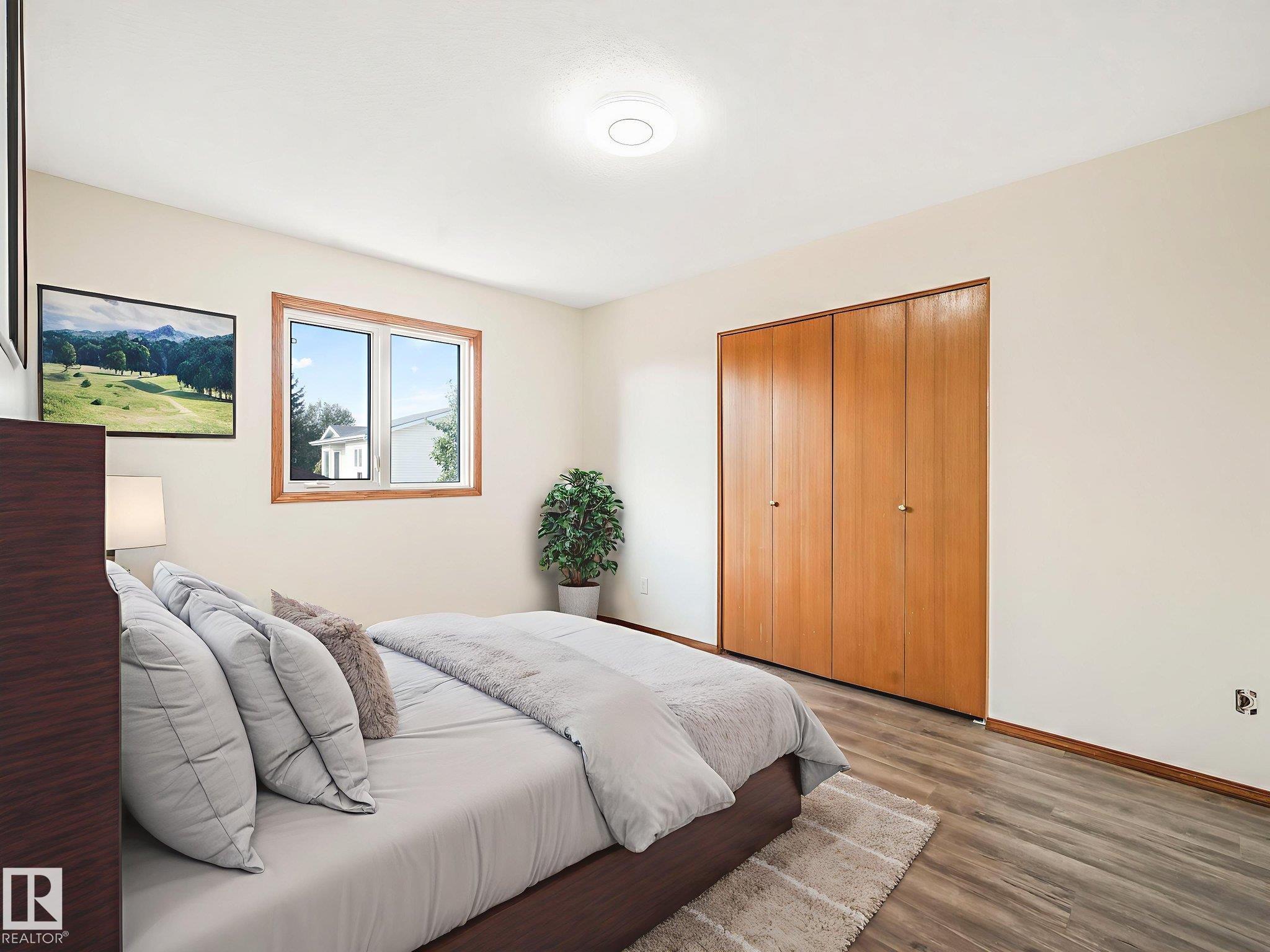 Step into this immaculately cared for 1,120 sq. ft. 3-level split, ACROSS from ANDORRA LAKE. The home offers BRAND NEW LUXURY VINYL PLANK THROUGHOUT and modern comfort. Featuring 3 spacious bedrooms total, the upper level boasts two large rooms, including a primary with a cheater door to the main 4 Pc bathroom accessed through a WALK-IN CLOSET with ORGANIZERS. The airy VAULTED CEILING enhances the MAIN FLOOR LIVING ROOM extending to the upper floor dining area next to the kitchen with QUARTZ COUNTERTOPS, NEW FRIDGE & DISHWASHER. The lower level hosts a cozy family room with a NEW ELECTRIC FIREPLACE, NEW HIGH EFFICIENCY FURNACE and NEWER HOT-WATER TANK. The third bedroom, a 3 Pc Bathroom, plus a laundry room with sink and plenty of storage in the crawl space. Enjoy year-round comfort with CENTRAL A/C, built-in vacuum . Outside, the OVERSIZED DOUBLE GARAGE, upgraded shingles, windows, concrete patio & walkways add to the value. A perfect blend of space, style, and upgrades?all move-in ready!
