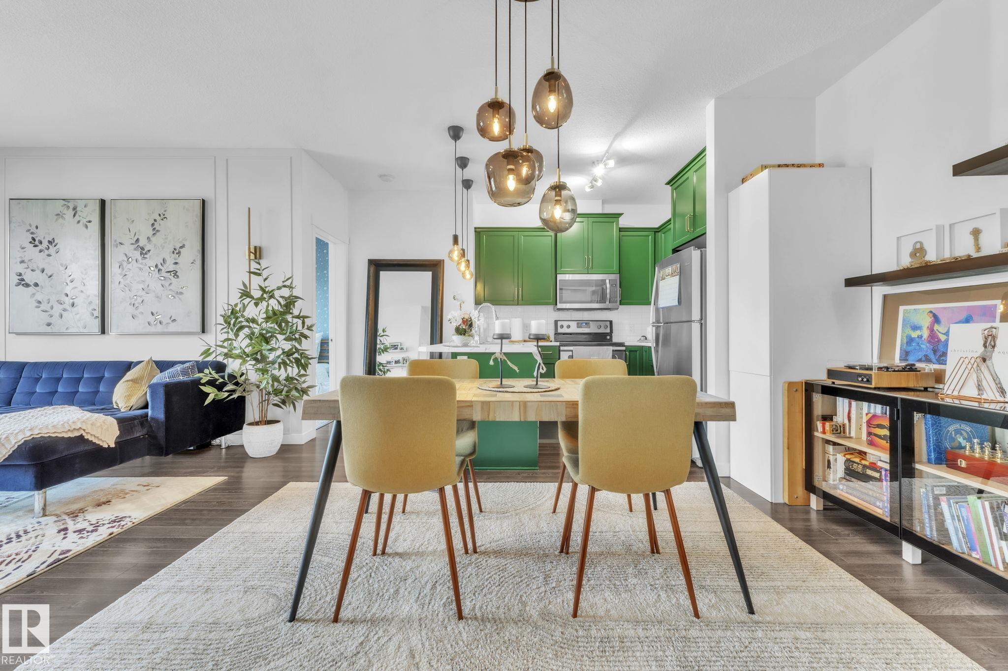 This owner-occupied show-stopper 2-bed, 2-bath condo is like no other. Boasting an updated kitchen with new counters and pendant lighting, elegant wainscoting, fresh paint, and in-suite air conditioning, it offers a perfect blend of style and comfort. The open layout is bright and welcoming, with a spacious primary bedroom featuring a full ensuite and ample closet space. Enjoy the convenience of in-suite laundry, a balcony for outdoor relaxation, and 1 underground heated parking stall. Condo fees cover all utilities, making ownership stress-free. Ideally located in The Village at Walker Lakes, you?re close to trails, schools such as Shauna May Seneca and Corpus Christi, shopping at South Edmonton Common, and have quick access to Ellerslie Road and Anthony Henday. A rare find combining luxury, convenience, and unbeatable value.