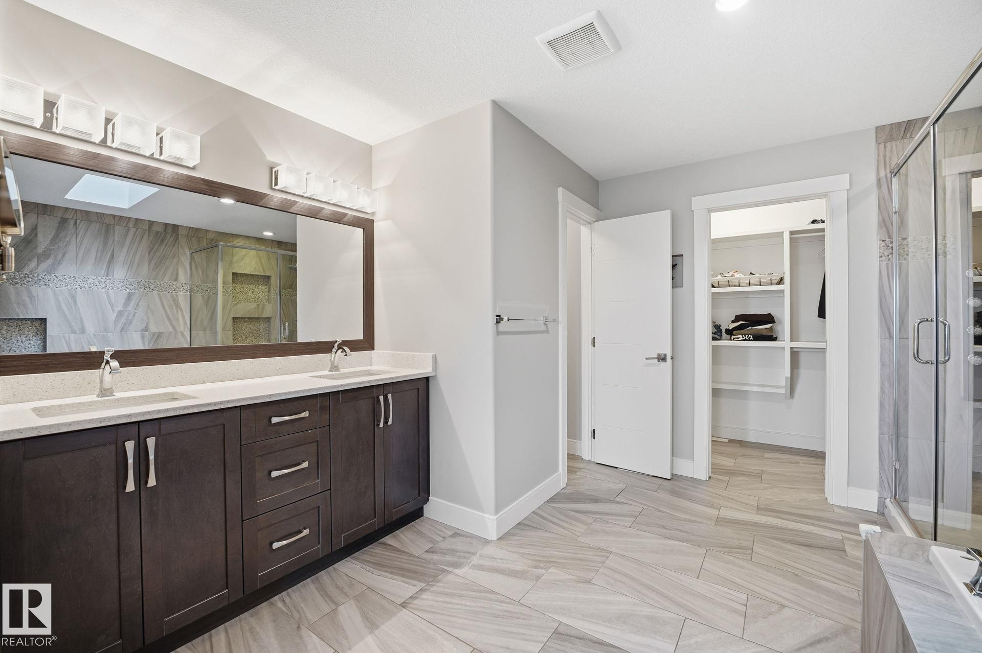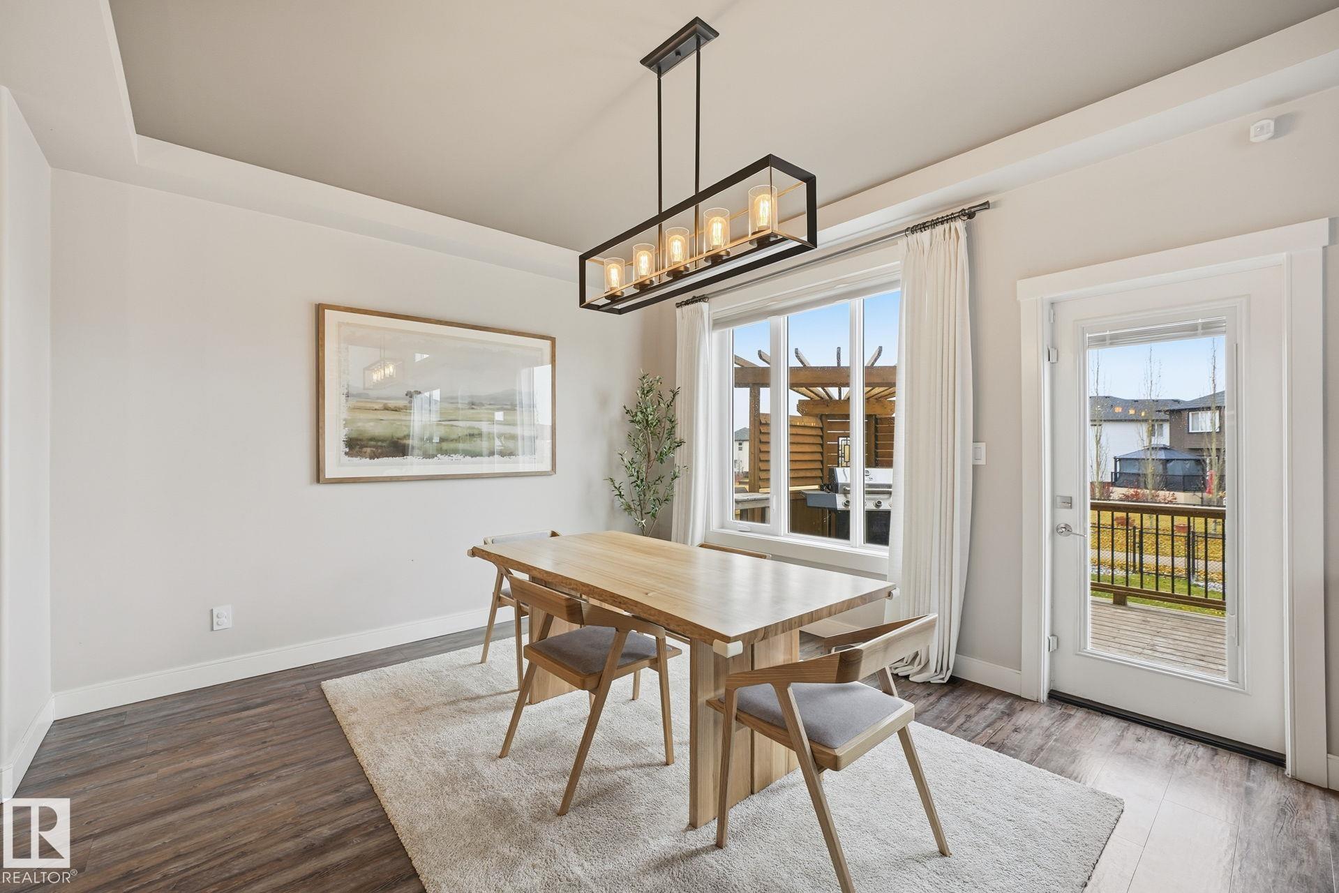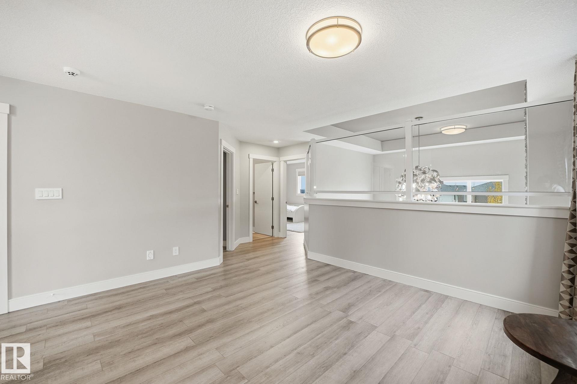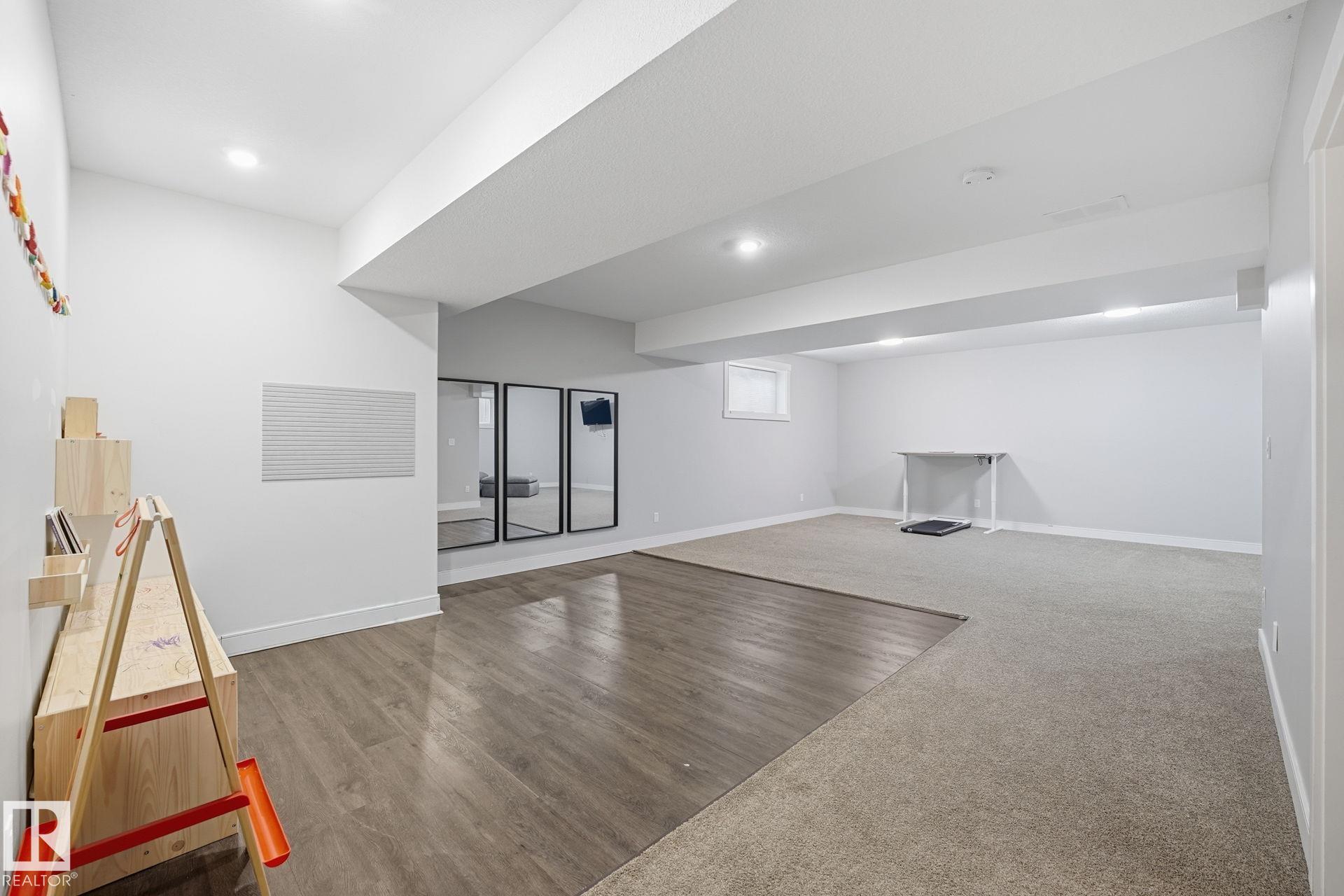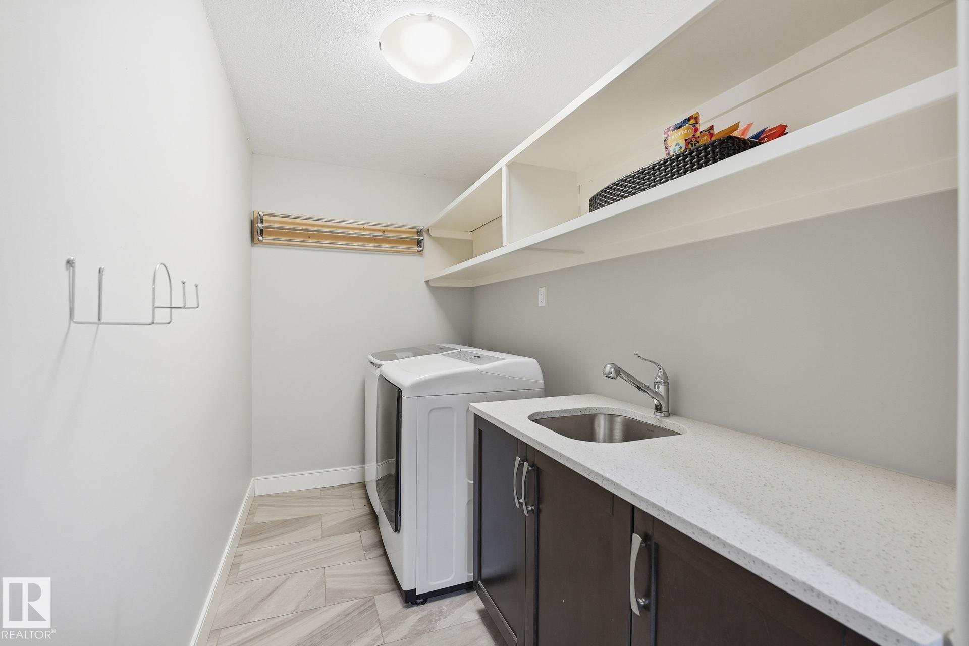 Tucked away on a quiet street, this architecturally distinct home blends thoughtful design with everyday function. Backing onto a beautiful multi-use path and steps from both Public and Catholic schools, it offers the perfect mix of privacy and community. Inside, soaring ceilings and oversized windows fill the open-concept main floor with natural light, showcasing the stone fireplace, coffered ceilings, and sleek quartz finishes. The layout includes 4 bedrooms, 4 bathrooms, a main-floor den, bonus room, and a fully finished basement. The massive triple-tandem garage features loft storage, an 18-ft door, and room for RV parking. The spa-inspired primary suite impresses with vaulted ceilings, electric blinds, a barn door, a walk-in shower with body jets, and a skylight that floods the ensuite with natural light. Outside, a multi-tiered deck with privacy walls and a hot tub extends the living space. Complete with durable vinyl plank flooring, designer lighting, gas range, gourmet fridge, and central air.