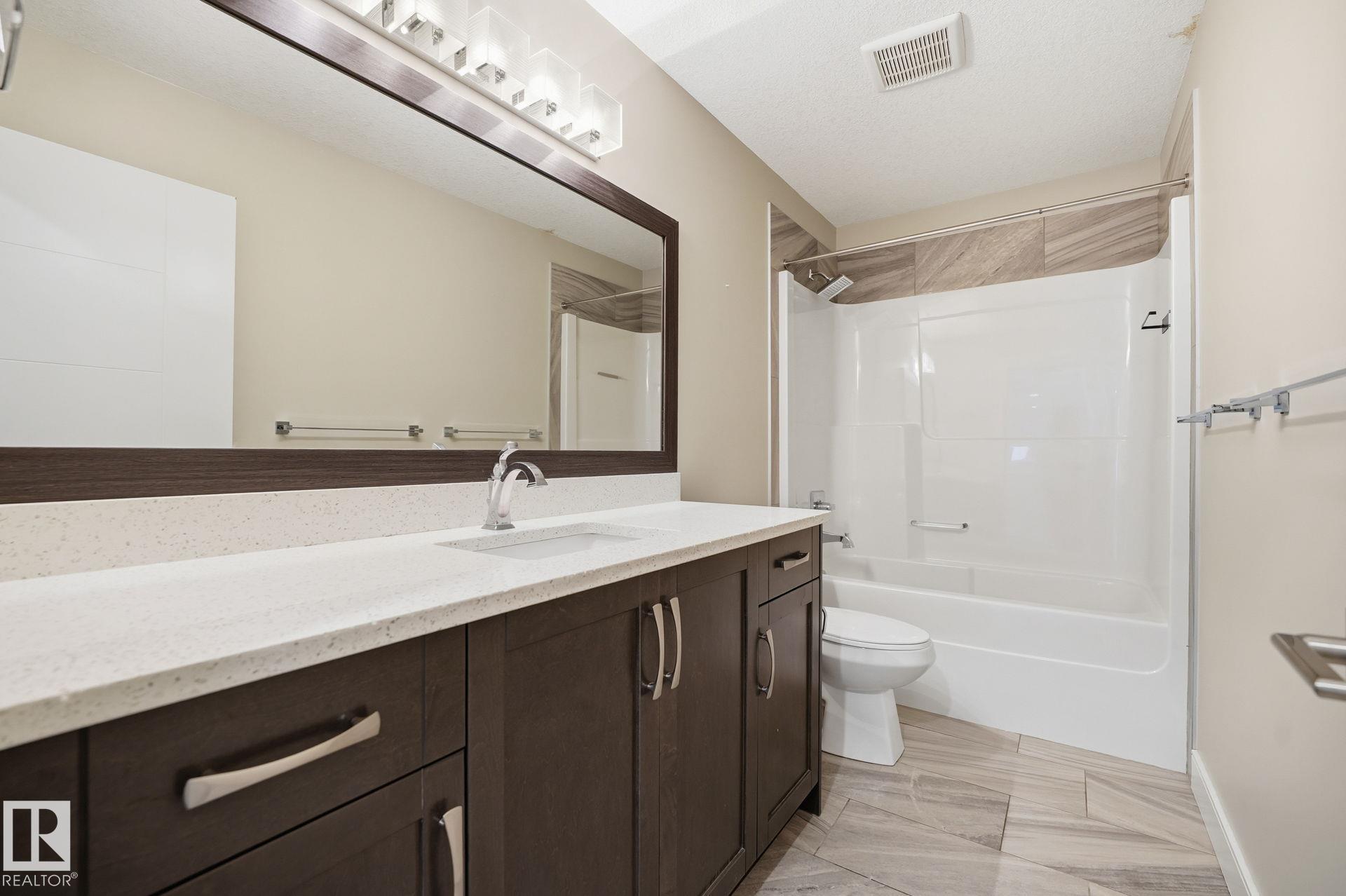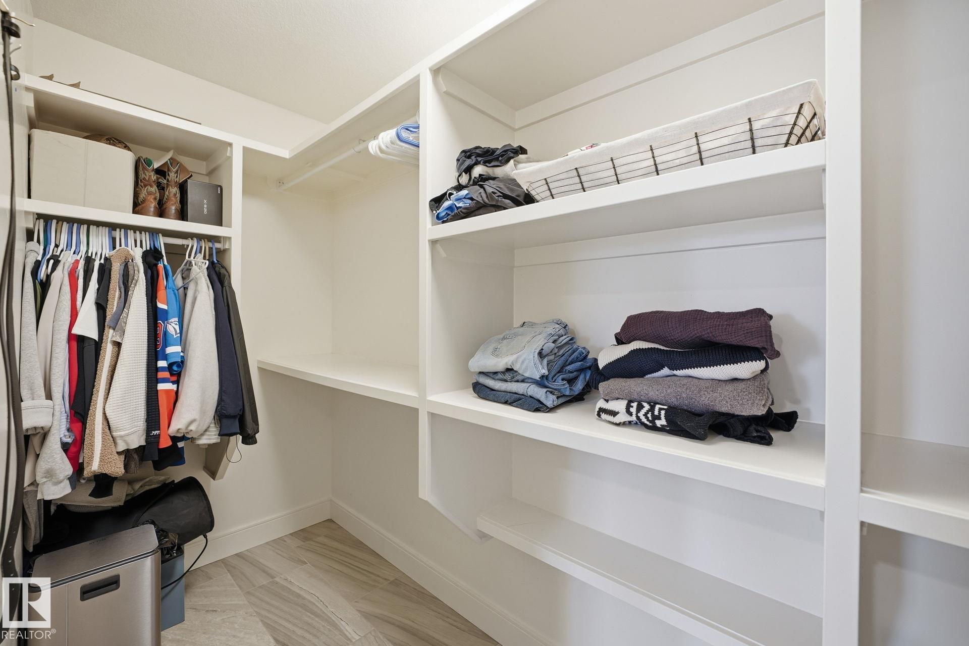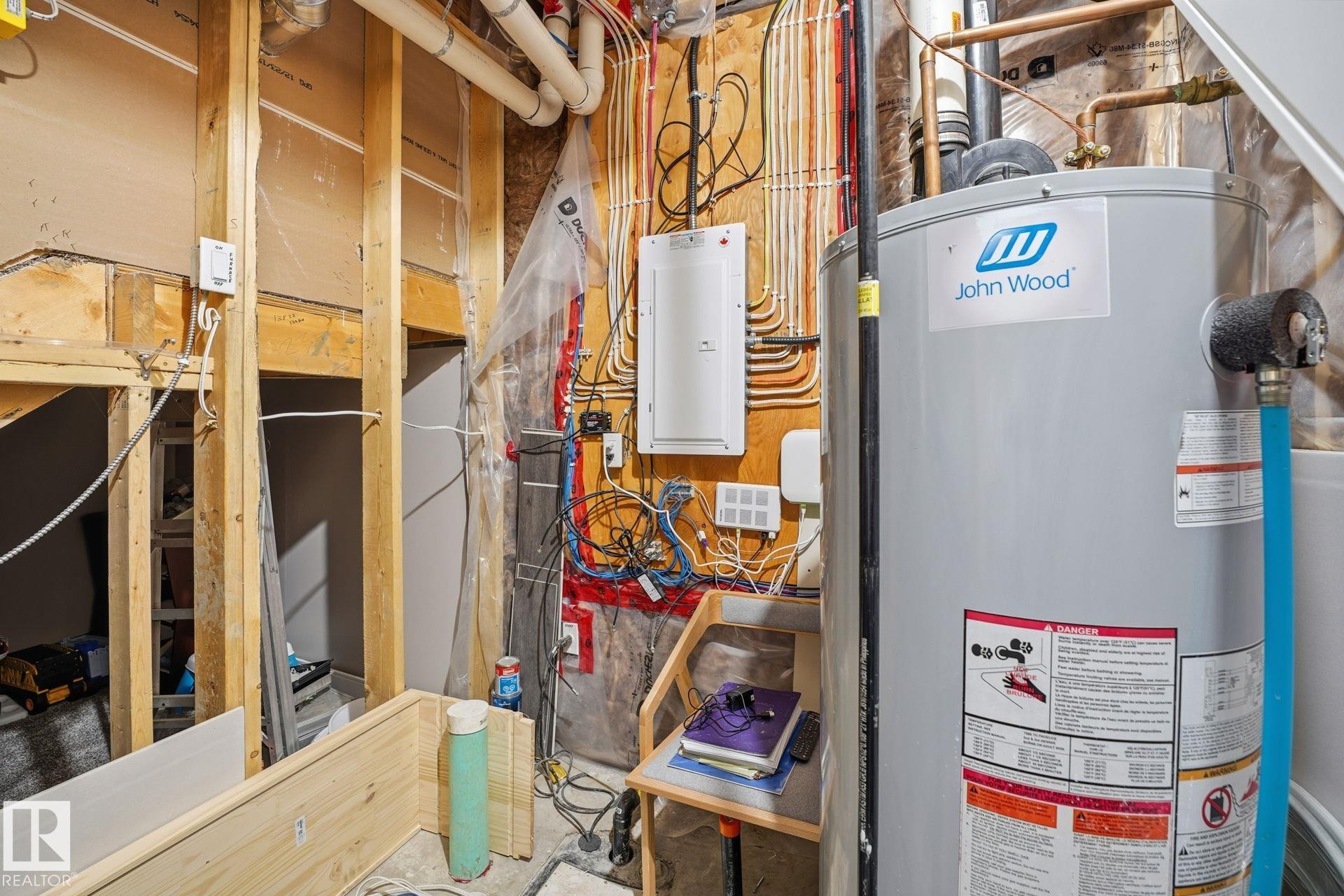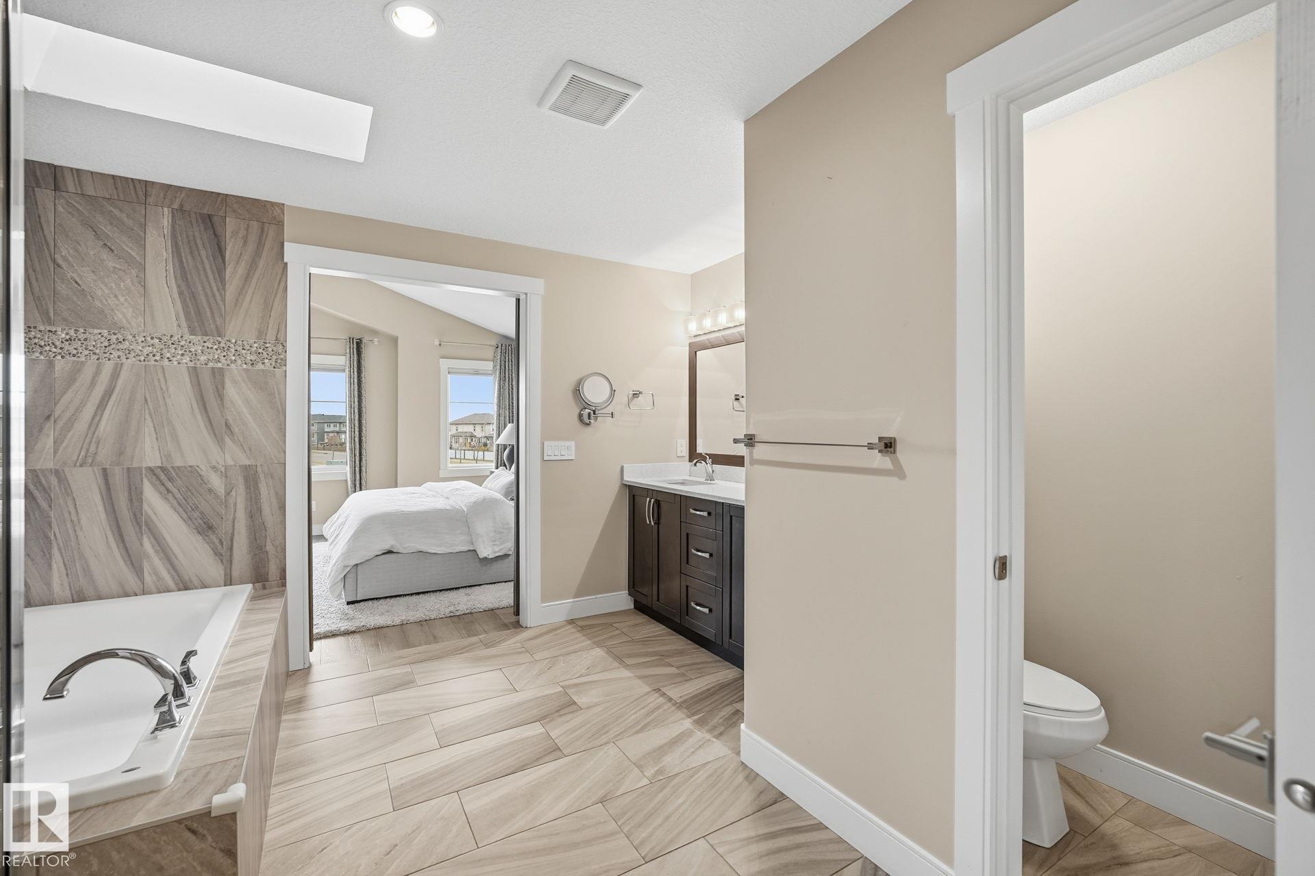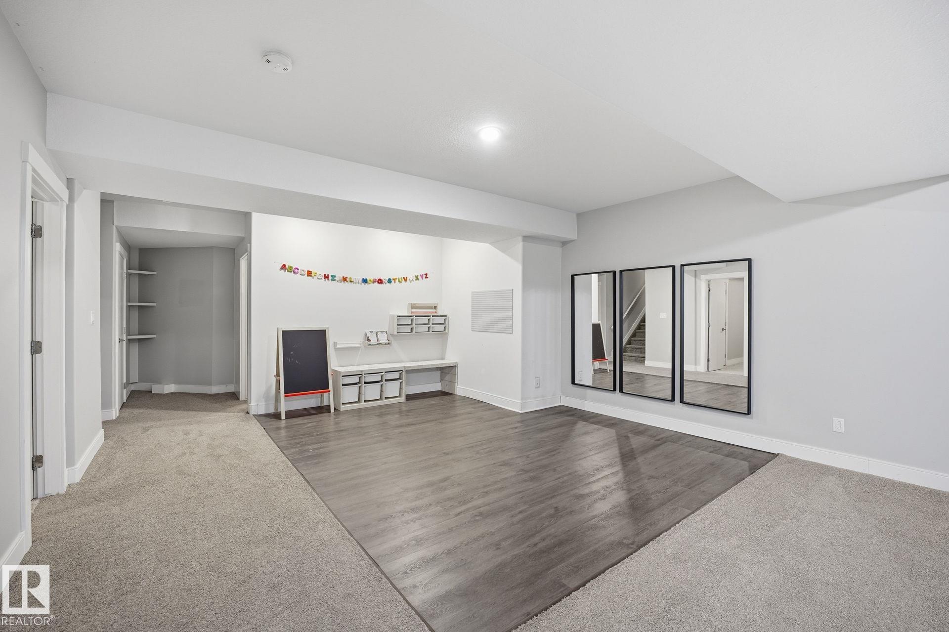 Tucked away on a quiet street, this architecturally distinct home blends thoughtful design with everyday function. Backing onto a beautiful multi-use path and steps from both Public and Catholic schools, it offers the perfect mix of privacy and community. Inside, soaring ceilings and oversized windows fill the open-concept main floor with natural light, showcasing the stone fireplace, coffered ceilings, and sleek quartz finishes. The layout includes 4 bedrooms, 4 bathrooms, a main-floor den, bonus room, and a fully finished basement. The massive triple-tandem garage features loft storage, an 18-ft door, and room for RV parking. The spa-inspired primary suite impresses with vaulted ceilings, electric blinds, a barn door, a walk-in shower with body jets, and a skylight that floods the ensuite with natural light. Outside, a multi-tiered deck with privacy walls and a hot tub extends the living space. Complete with durable vinyl plank flooring, designer lighting, gas range, gourmet fridge, and central air.