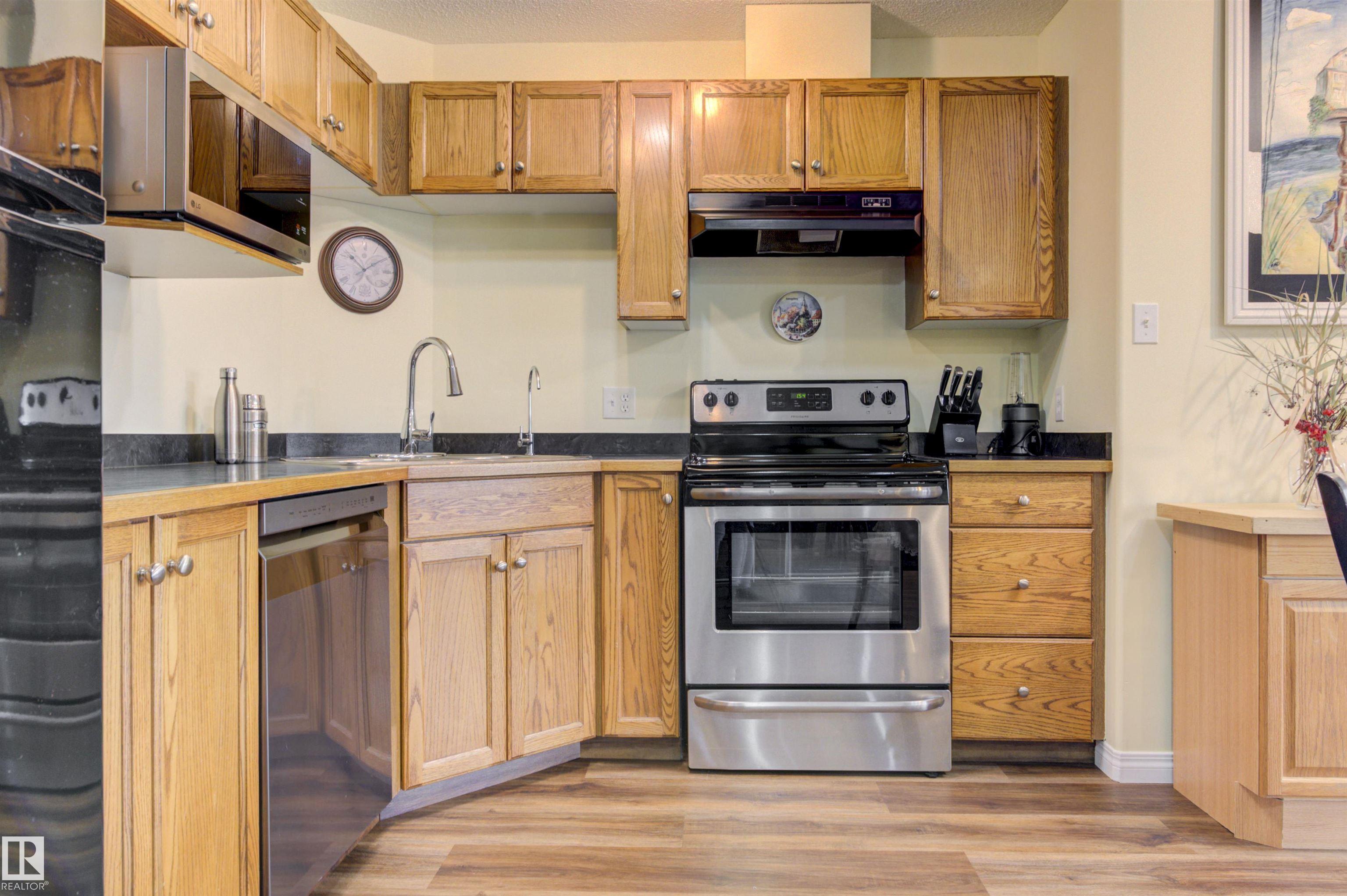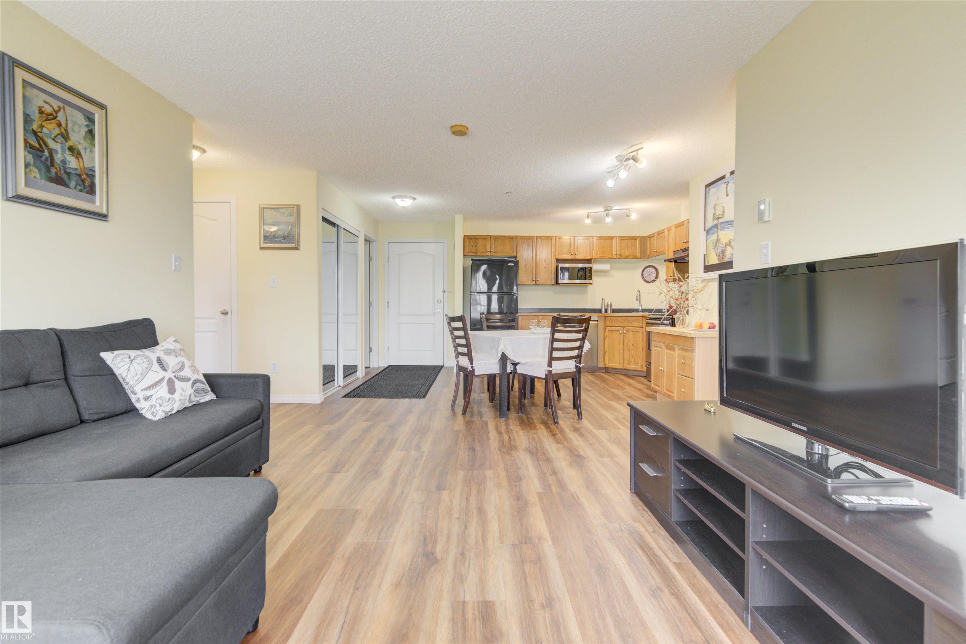 Step inside this bright 2 Bedroom and 2 full Bathroom condo apartment with 2 Titled Parking: one underground and one outdoor energized stall. The open concept living room/dining/kitchen area with large windows for loads of natural light leading to an east facing covered large balcony. Brand New vinyl plank floor. Dishwasher 2024. The master bedroom has a WIC and 4PC Bathroom. Good size second bedroom with sliding mirror door, and 4PC BT. In-suite laundry with ample storage. Apartment located on the 3rd floor, elevators served, very well managed secure building. It is a small pet friendly building as well. The unit was recently painted, all new faucets, Water OSMOS system in the kitchen is included. Great location, close easy access to the Whitemud, Anthony Henday, Schools, Shopping and Public Transportation.