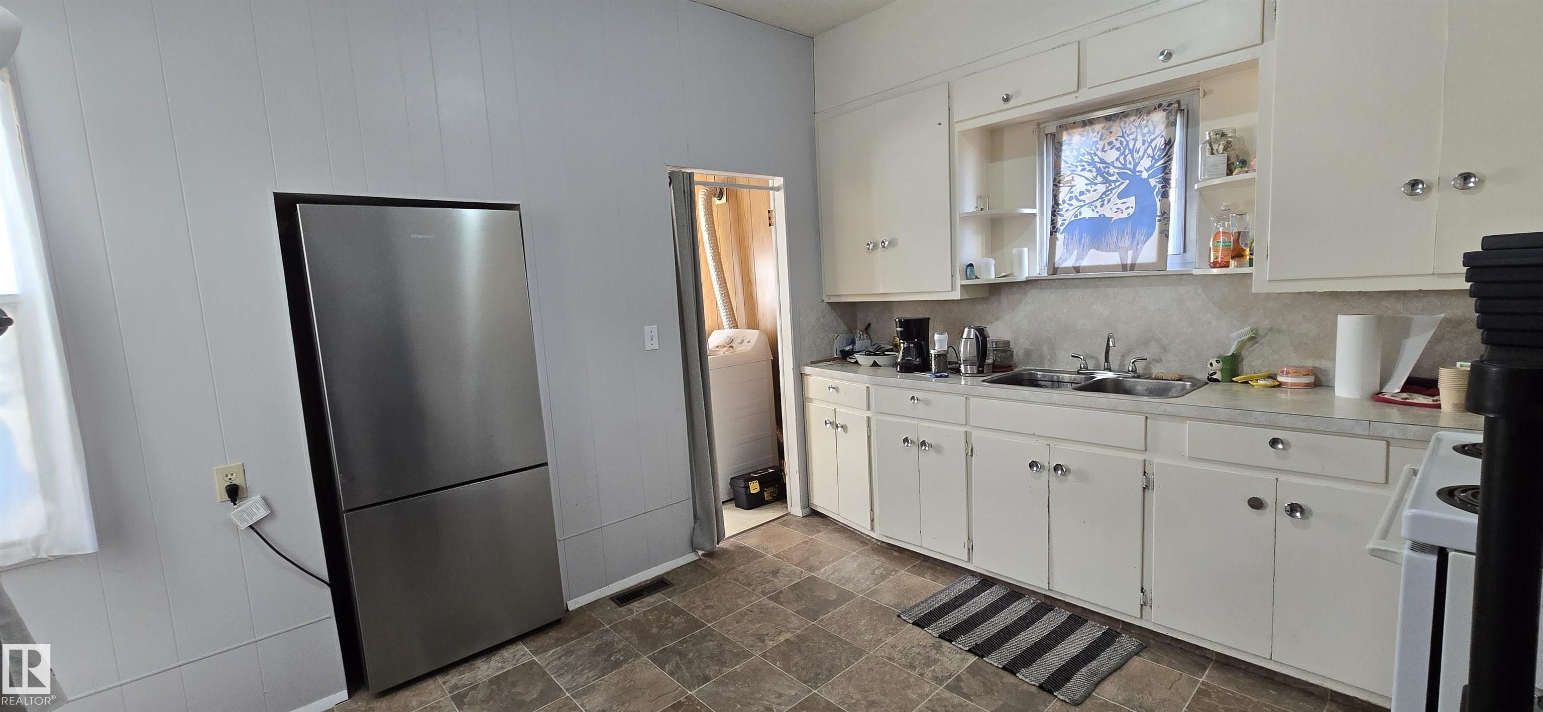 Located only 10 minutes east of Vegreville in the community of Lavoy! Two bedroom bungalow which would make perfect of 1st time home owner, retired couple or rental property! Big 7800 sq.ft lot with single detached garage with back alley access.