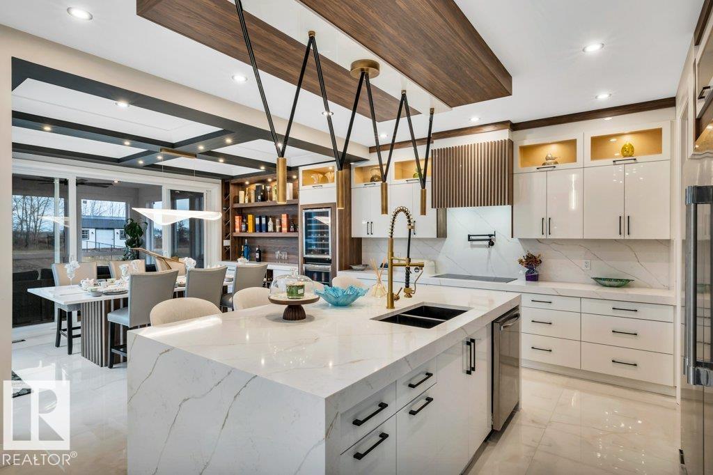 A Story of Modern Luxury & Craftsmanship From the moment you arrive, this 1-acre show home estate tells a story of passion and perfection. Every corner reflects over a year of dedicated craftsmanship?6000+ sq ft of pure sophistication designed for those who expect more. Step through the grand entrance into soaring spaces filled with light?a sunroom that glows year-round, a chef?s dream kitchen with a 68-inch fridge and full spice prep area, and California closets that whisper elegance. The main floor den with ensuite offers comfort and flexibility, while the designer patio invites evening gatherings under the stars. Upstairs, four suites with private ensuites, balconies, and a serene loft await. The lower level is a world of its own?theatre, gym, bar, rec room, 6th bedroom, and two baths. With two triple garages, city services, and just 8 minutes from WEM, this masterpiece is more than a home?it?s a lifestyle. Immediate possession available.