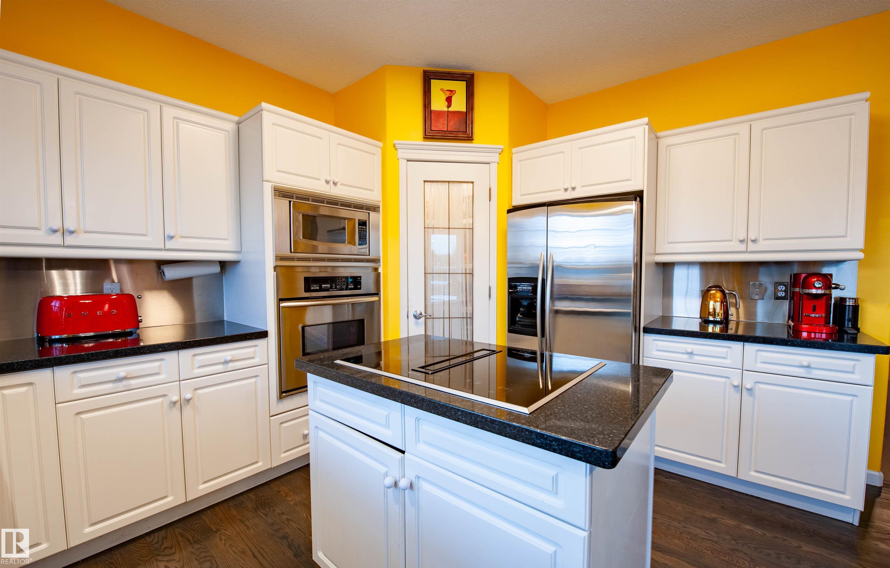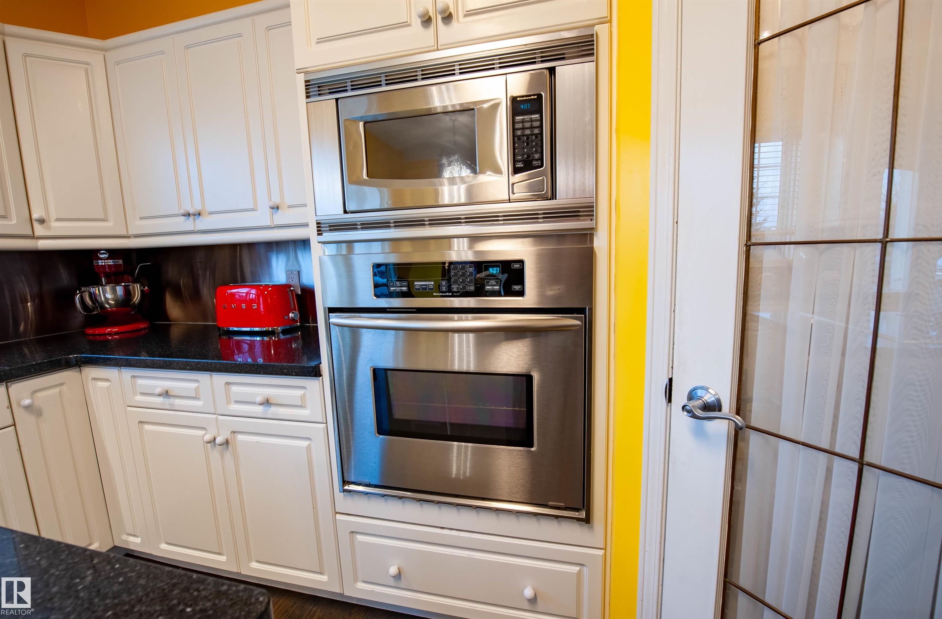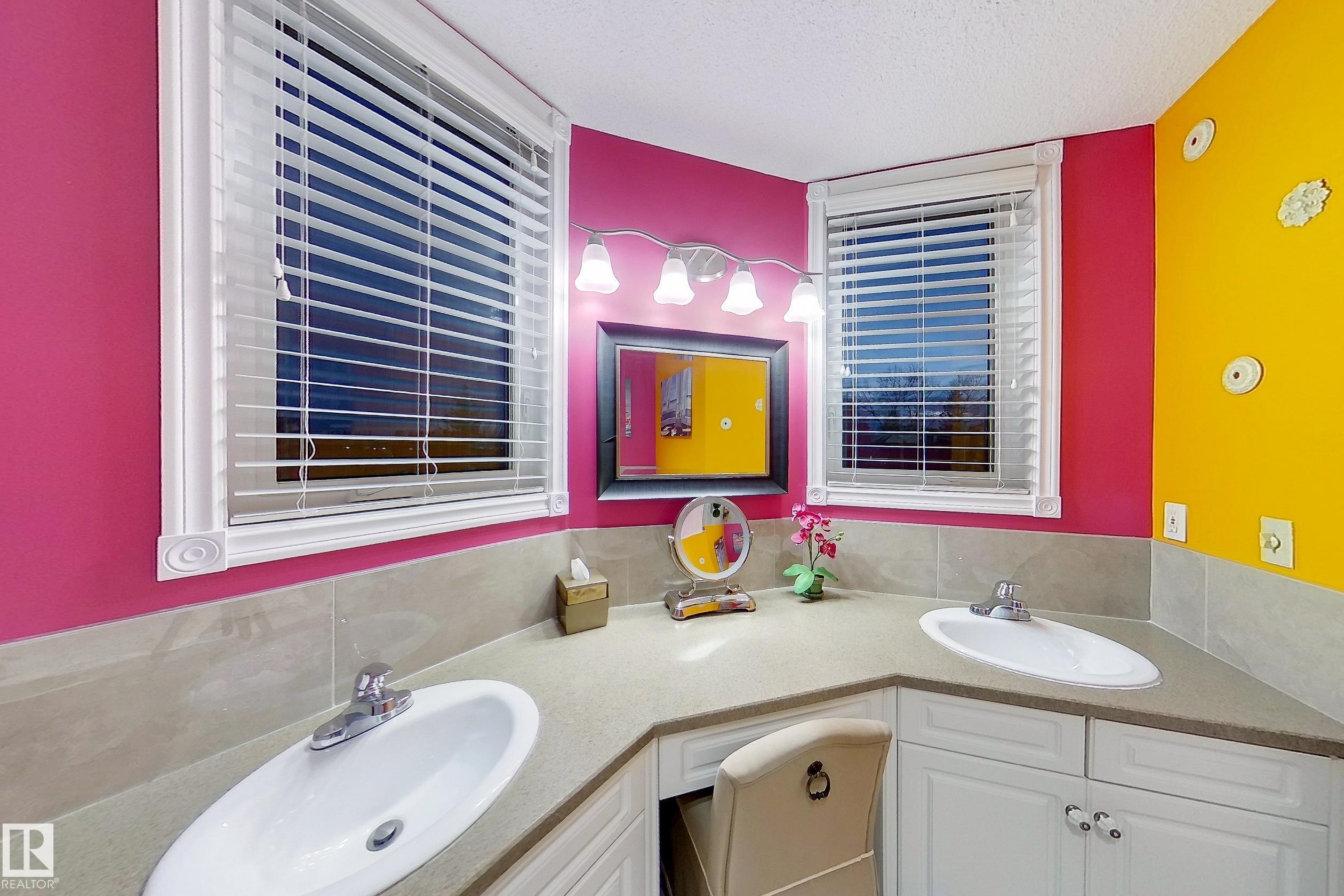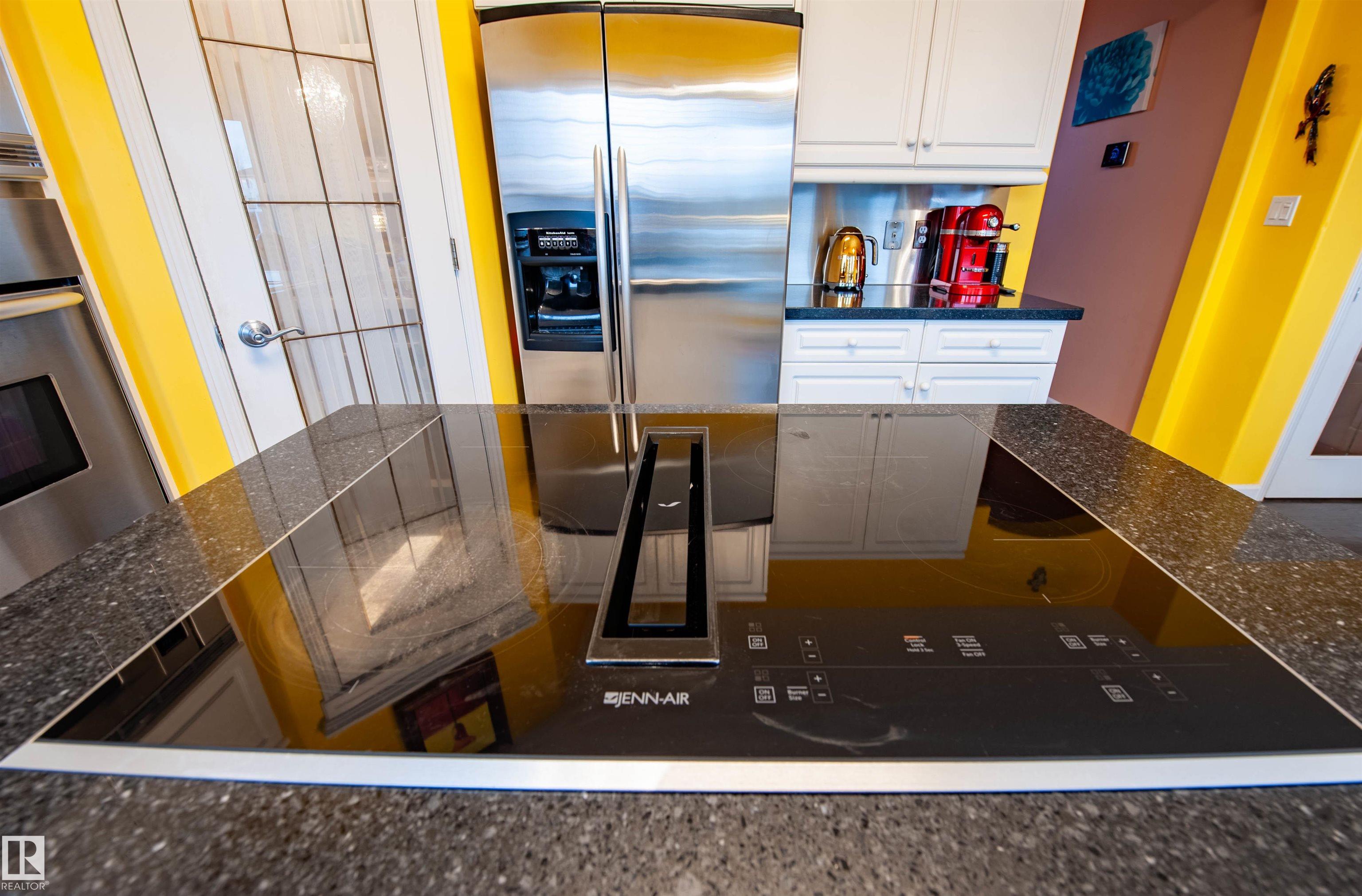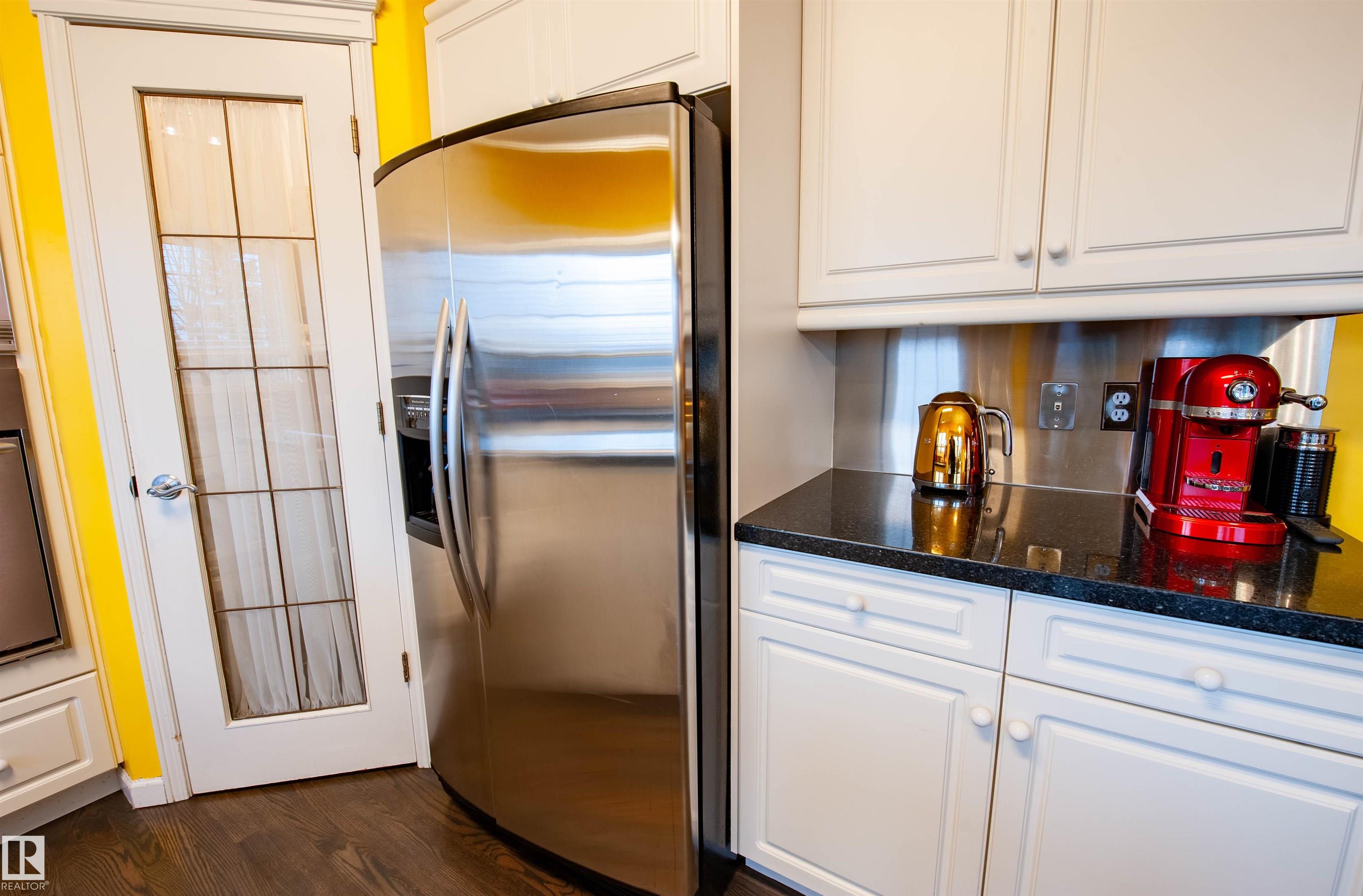 Live the Good Life in Larkspur! This exceptional home is in a quiet cul-de-sac close to schools, shopping, golf, & Whitemud Dr. The south-facing backyard offers a gorgeous Lake view! Enjoy peaceful scenery year-round. Inside, the bright layout features a formal family rm. hardwood floors, a living room with a gas fireplace, a beautifully updated kitchen with granite counters, JennAir cooktop with downdraft, built-in oven & a breakfast nook overlooking the water! The main floor laundry room features an Extra-Large W/D. Upstairs, a rare 4-bedroom layout, including a king-sized primary suite with triple-glazed windows, his-and-hers closets, & a spa-like ensuite. The fully finished 9' tall basement adds 2 more bedrooms (6 total), a full bath. Recently installed: a New High-Efficiency Furnace, On-Demand Hot Water, a Water Softener, & Plush Carpet. Outside, relax in your Hot-Tub & enjoy the view from the 2-tier deck, plus extra RV parking. Some pics virtually staged. Visit REALTORŪ website for more info.