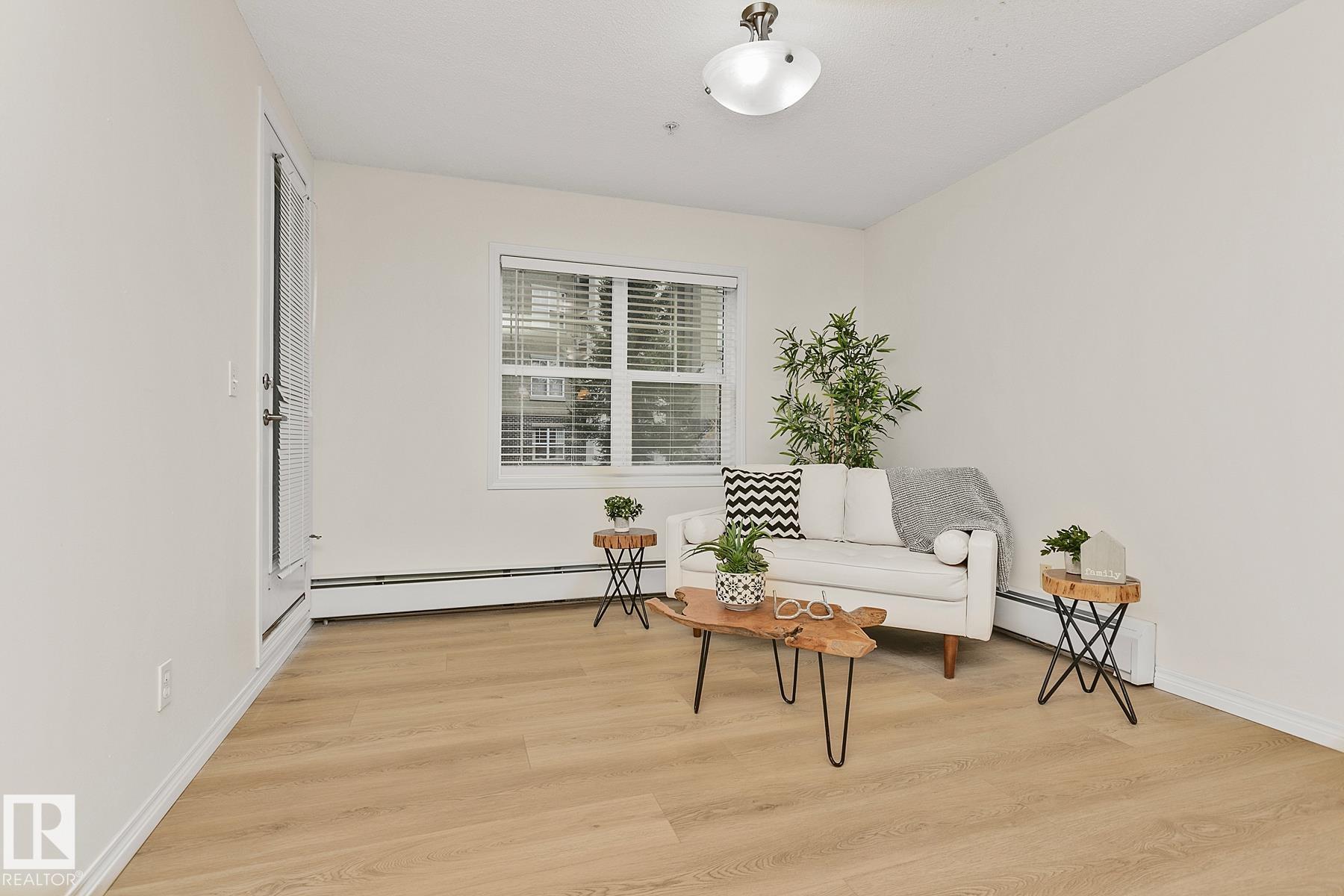 Discover this stylish 2-bedroom, 2-bathroom condo for sale in MacEwan Village?a true hidden gem. Brand new warm vinyl flooring and a warm white paint through this condo. This private ground unit backs onto a serene green space, making it the perfect spot for savoring your morning coffee on the covered patio. The master bedroom featuring a walk-through closet that leads to a 4-piece bathroom. For added convenience, in-suite laundry is included, making it ideal for first-time buyers or as a savvy investment opportunity. Enjoy amenities such as heated underground parking and all-inclusive utilities, covering heat, water, and electricity. The condo features a bright, open-concept floor plan with modern cabinetry and a spacious breakfast bar. You'll also appreciate the convenient access to Anthony Henday, Ellerslie Shopping, and public transit.