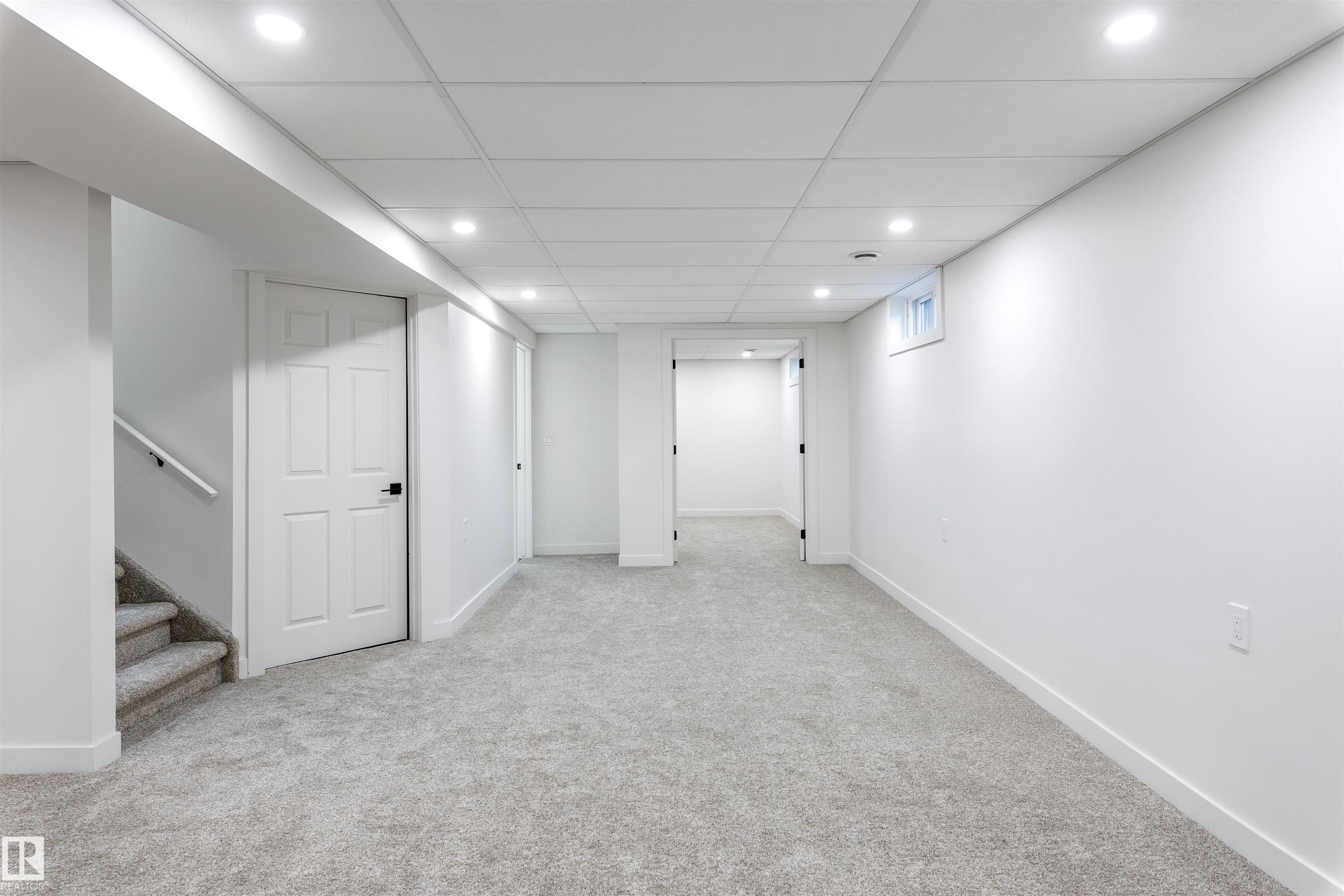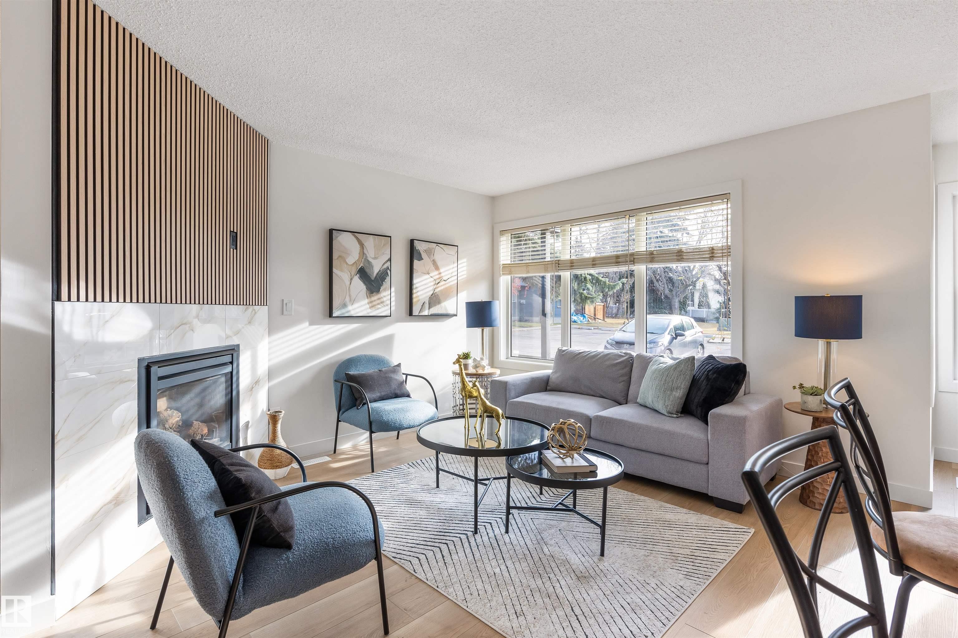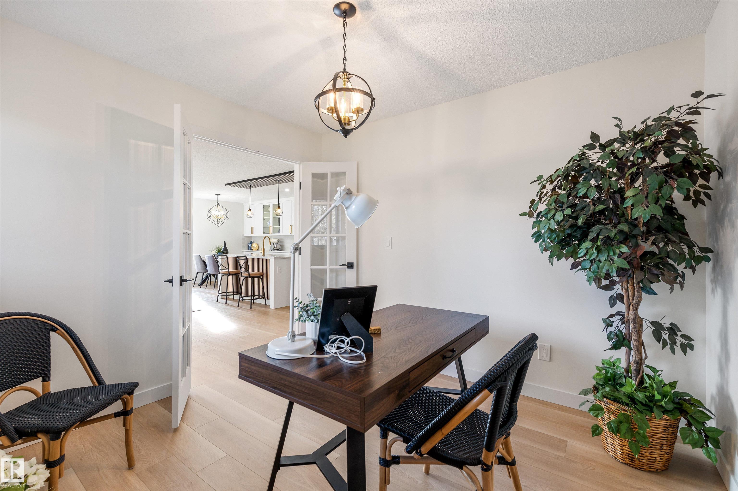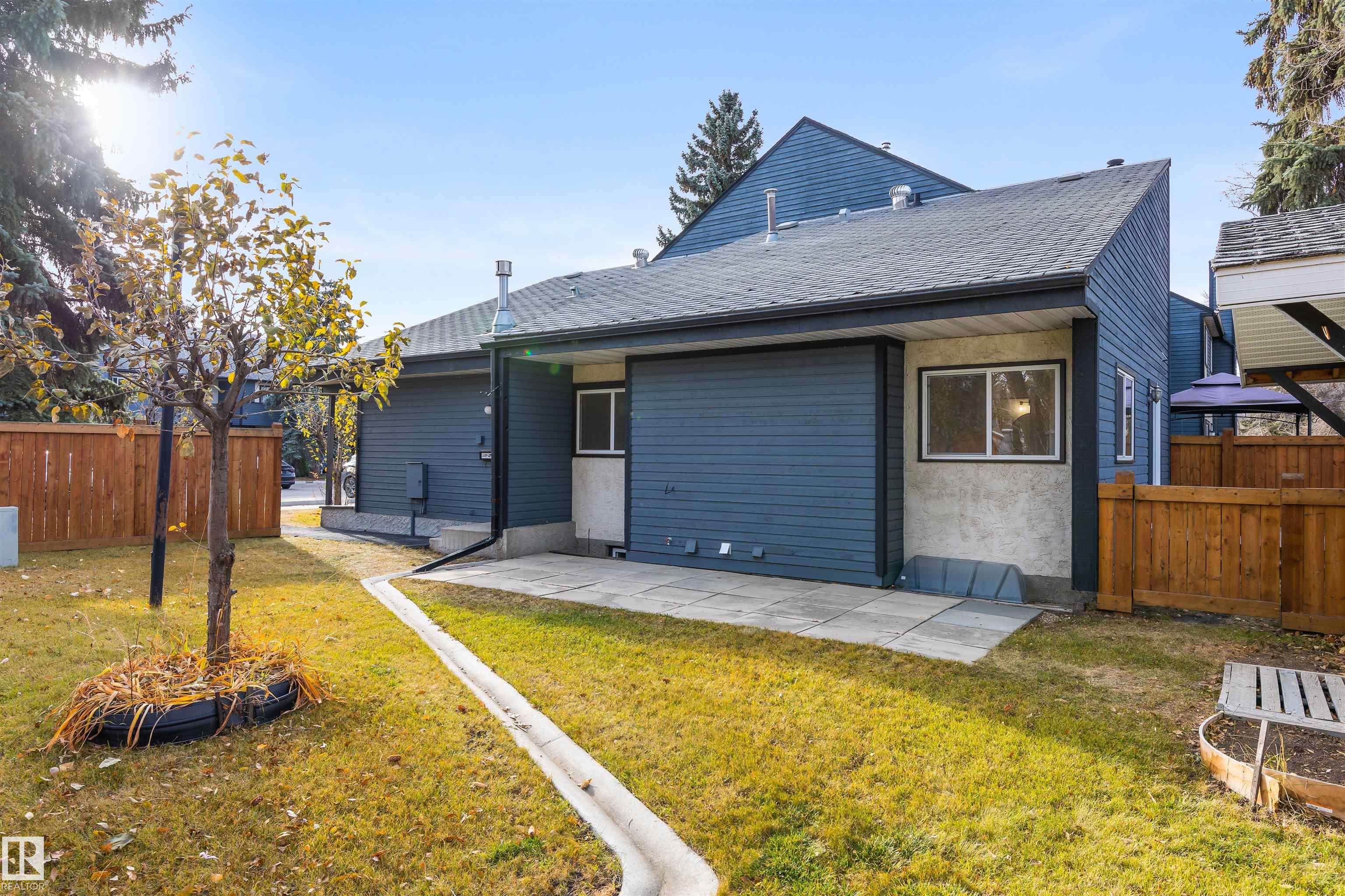 Discover this RENOVATED fully finished BUNGALOW in Granding Estates. Siding onto GREENSPACE, this unit has an amazing location w/ a fenced yard & a large storage shed. The entrance enters into a modernized OPEN DESIGN. VINYL FLOORING spreads throughout the main floor. The kitchen has white cabinetry, QUARTZ COUNTERS, eating bar island, tiled back splash, pot/pan drawers, s/s appliances & more. The living room has large windows looking out front & a corner GAS F/P. There are double French doors off the entrance into the flex room, which makes an amazing office or an ADDITIONAL BEDROOM. The main bathroom is completely renovated w/ new cabinetry, tub/shower & fixtures. The spacious primary bedroom has double closets, sliding doors to a private back deck & a brand new 3pce ENSUITE. Across from the primary bedroom is the laundry. The basement is finished w/ a massive family room, 3pce bath & flex room. There are 2 assigned parking stalls in front of this unit!
