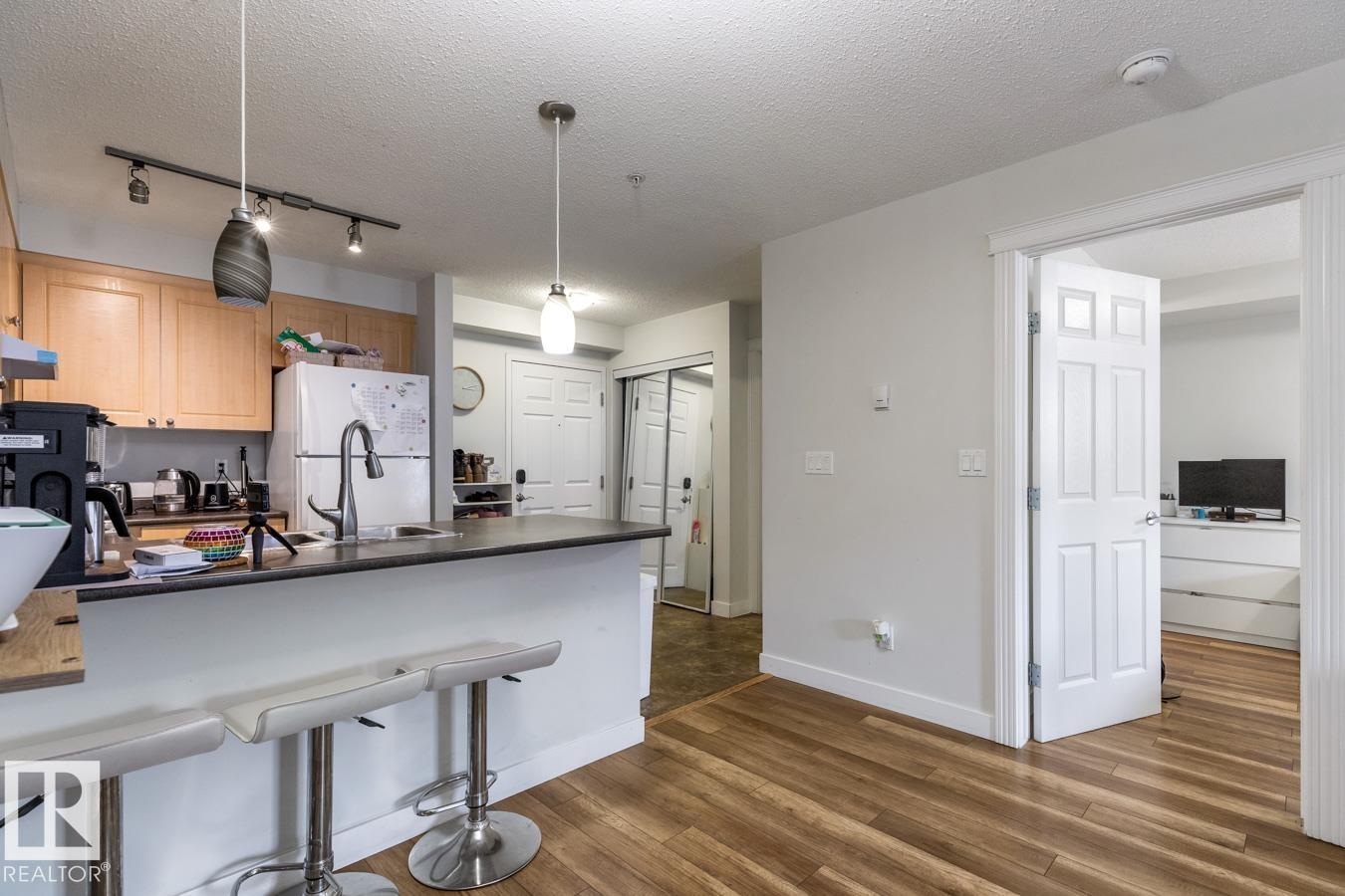 Move In Ready & Perfectly Located! This bright and stylish 597 sq ft 1 bedroom, 1 bath condo is the perfect blend of comfort and convenience. Situated on the second floor with underground parking, it?s been beautifully maintained and is ready for you to move right in. Step inside to discover an open-concept layout with a smartly designed u-shaped kitchen featuring maple cabinetry and white appliances. The inviting living space is filled with natural light and opens onto a large balcony with natural gas hook up ideal for summer BBQs! The bedroom offers a walk-through closet leading to the full bath, while the added bonus of in-suite laundry makes life easy. Nestled in desirable Macewan, you?ll love the location! Close to shopping, amenities, two golf courses, and quick access to Anthony Henday. Condo fees cover everything except property taxes. Whether you?re a first-time buyer, downsizer, or investor, this home is a fantastic find!