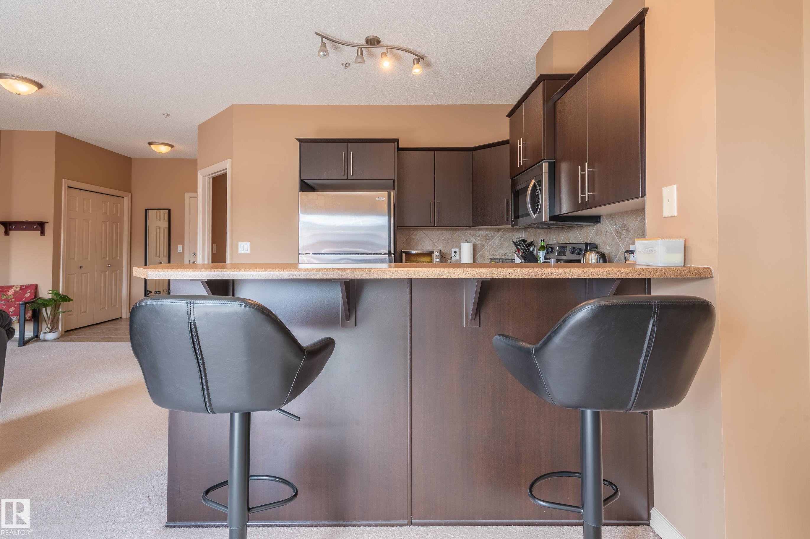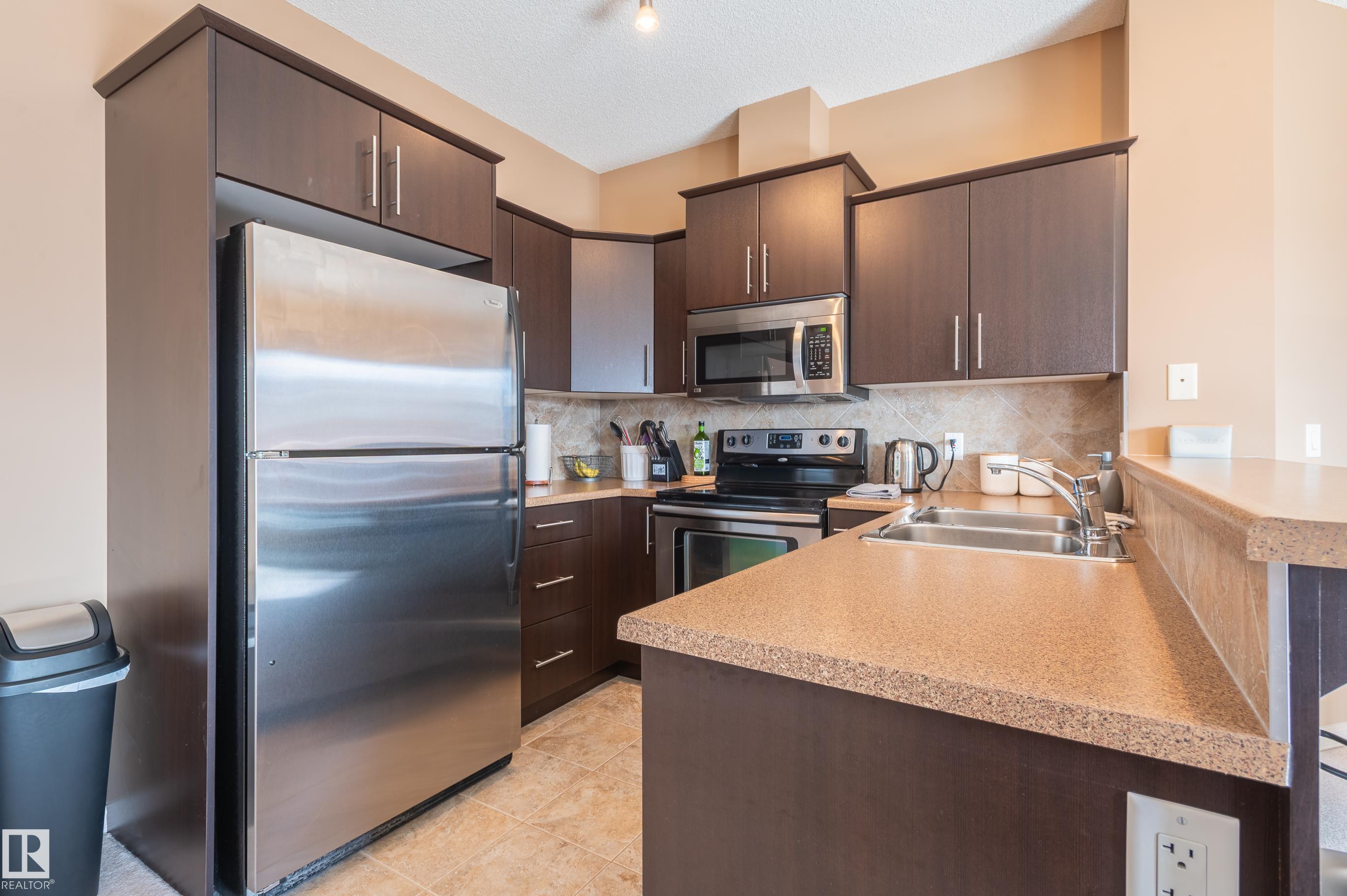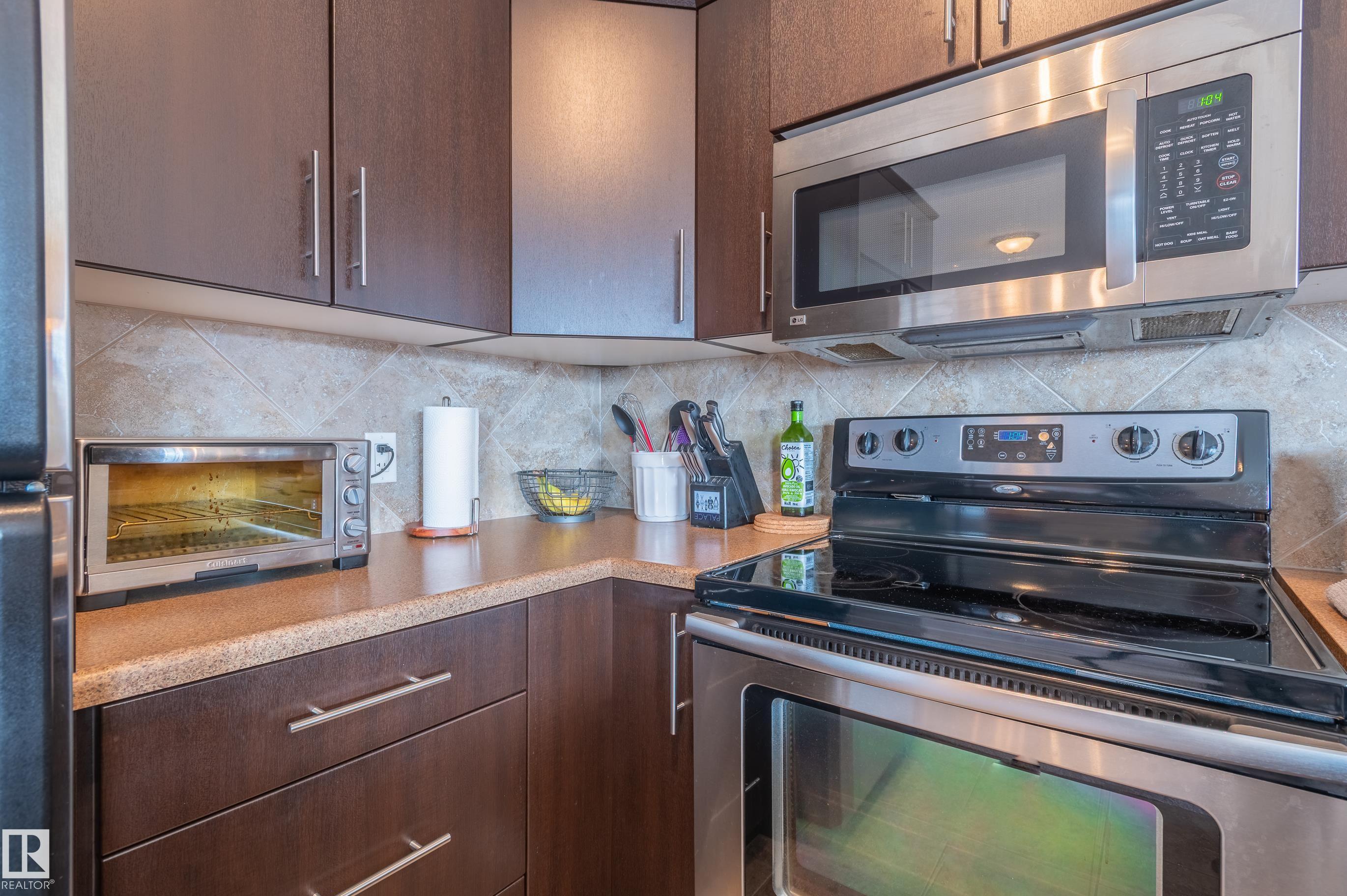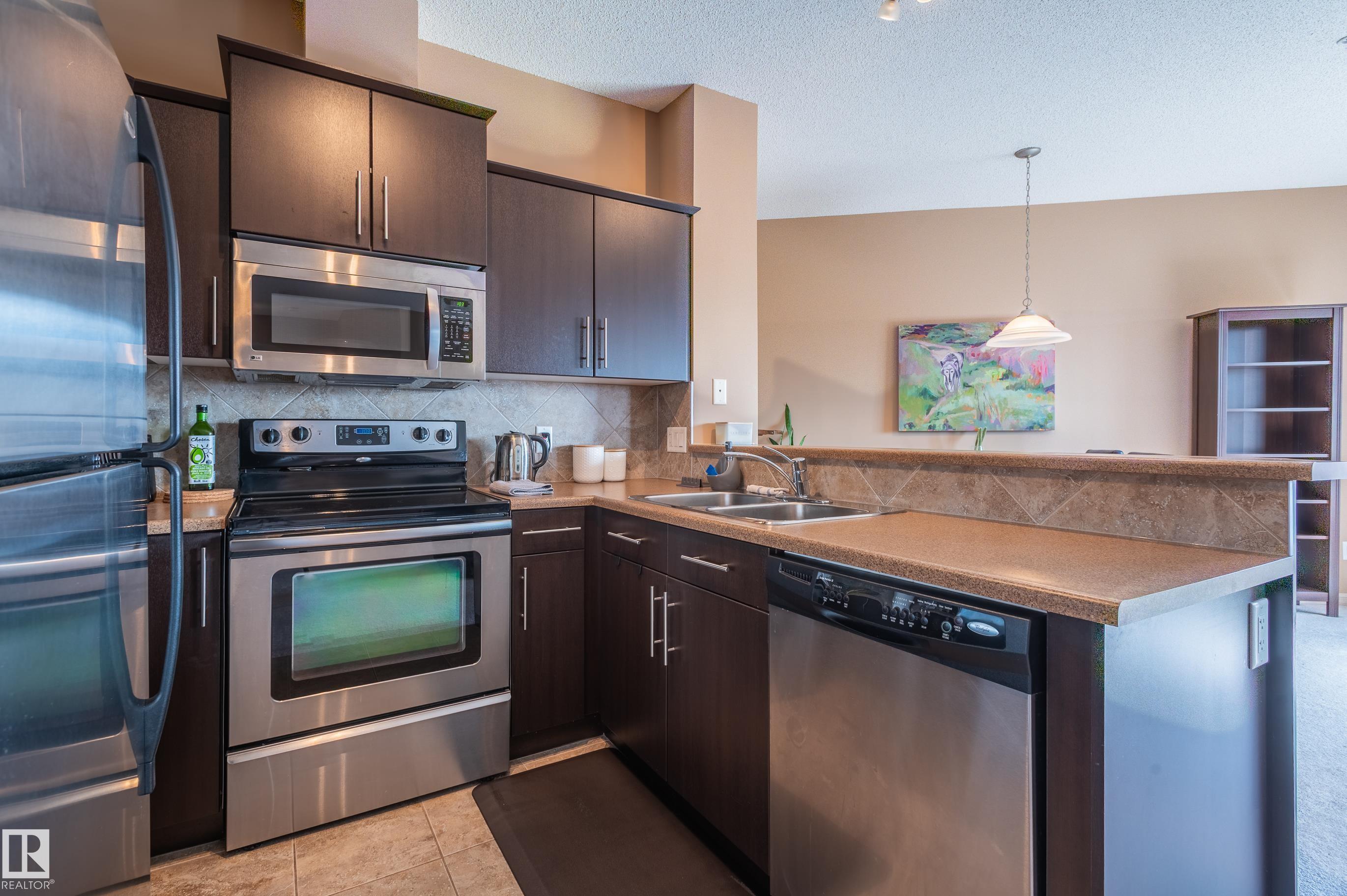 This spacious 936 sq ft 1 bedroom plus den condo is perfect for you! Enjoy cooking and eating in the open concept kitchen that features upgraded cabinets, countertops, backsplash and breakfast bar that opens on to a dining area big enough for a full sized dining table. The large living room has enough space for all of your furniture and a patio door that opens to your enormous patio and incredible fourth floor courtyard view. The large master suite features a walkthrough closet that leads to a 4-piece jack and jill bath. Incredibly spacious, the den is the same size as a bedroom! Large storage room with laundry! Includes a secure storage room down the hall! The building is pet friendly, provides an exercise room, AND THE CONDO FEE INCLUDES ALL UTILITIES. In a great south west location across from a park/playground, you are in close proximity to schools, shopping, public transit and have easy access to the LRT, the International Airport, Nisku, Ellerslie RD, and both the Whitemud and Anthony Henday!