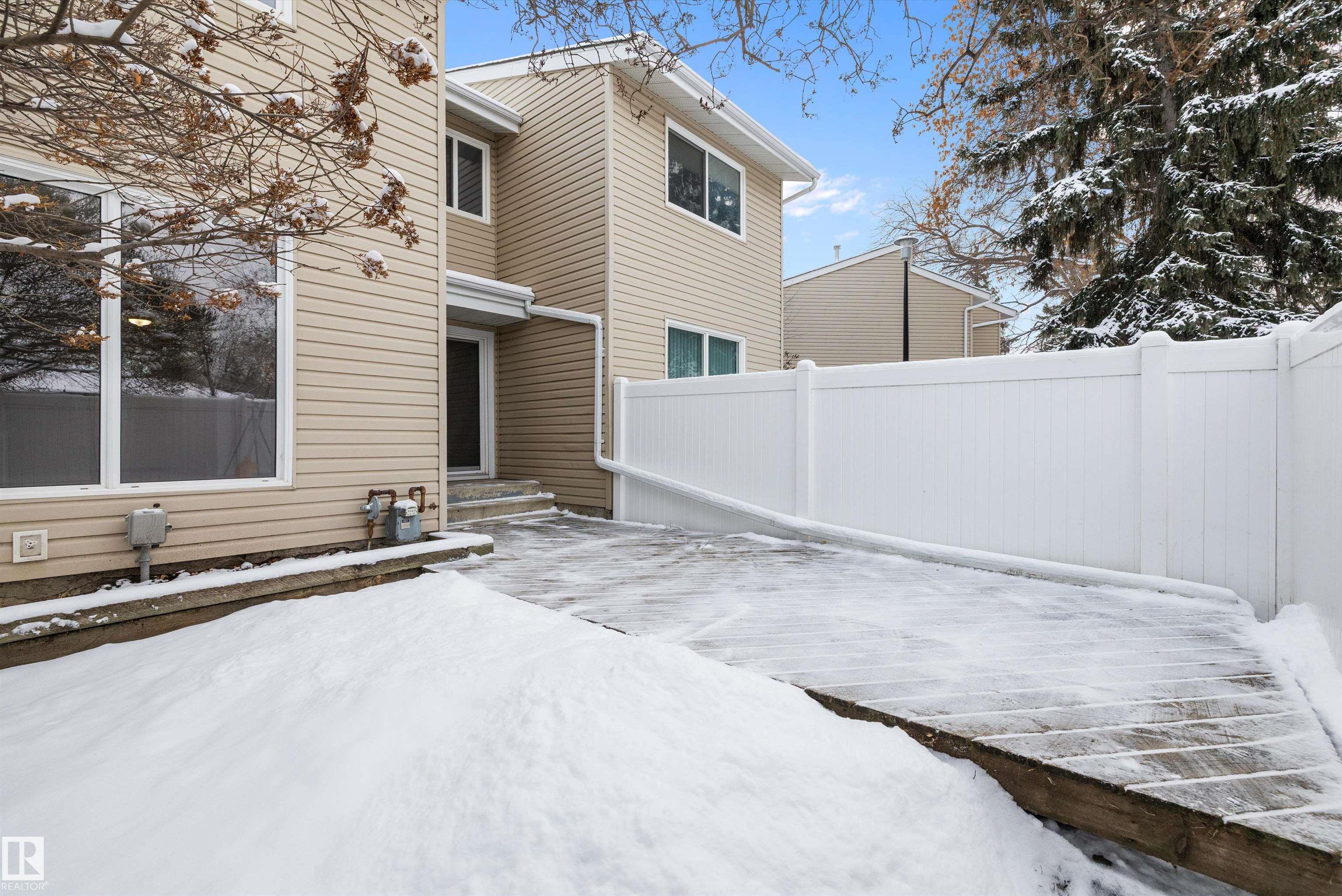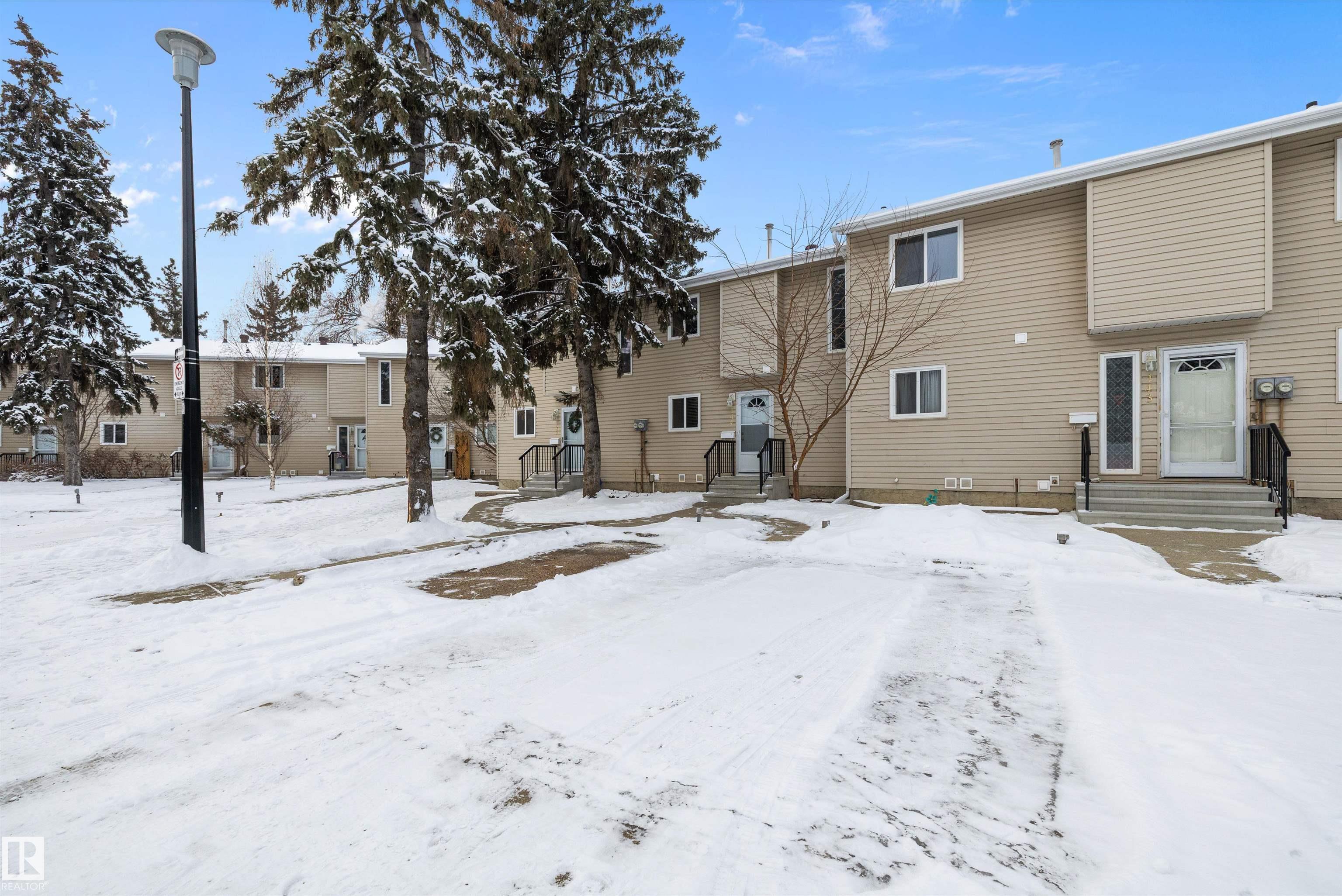 Perfect for empty nesters or first-time home buyers, this cozy 3 bed|1.5 bath two-storey townhouse offers incredible value and comfort. Enjoy a west-facing, fully fenced, low-maintenance backyard.This well-maintained home has been FRESHLY PAINTED and is centrally located, sitting right beside elementary and junior high schools with plenty of amenities just steps away.The bright and open main floor features a functional U-shaped kitchen, a separate dining area, and a spacious living room with large windows overlooking the backyard. Upstairs, you?ll find three generously sized bedrooms?including a primary suite with a large closet, and a 4-piece Jack & Jill bathroom with access from both the hallway and the primary bedroom.The basement is currently set up with a cozy rec area, storage and laundry room. Outside, the home includes one front parking stall, and the condo fees cover landscaping, snow removal, exterior maintenance, and garbage pickup, with plenty of visitor parking available.