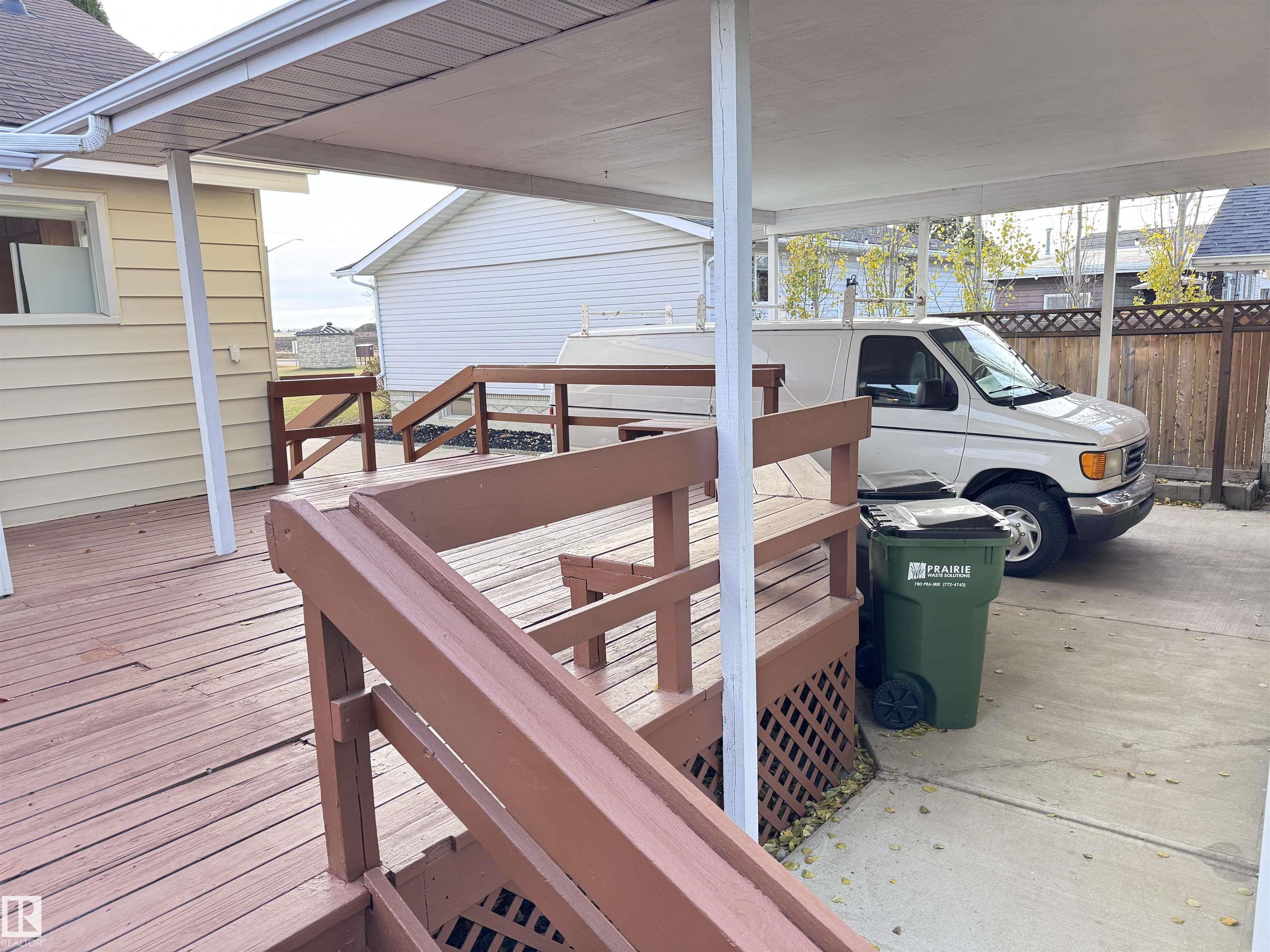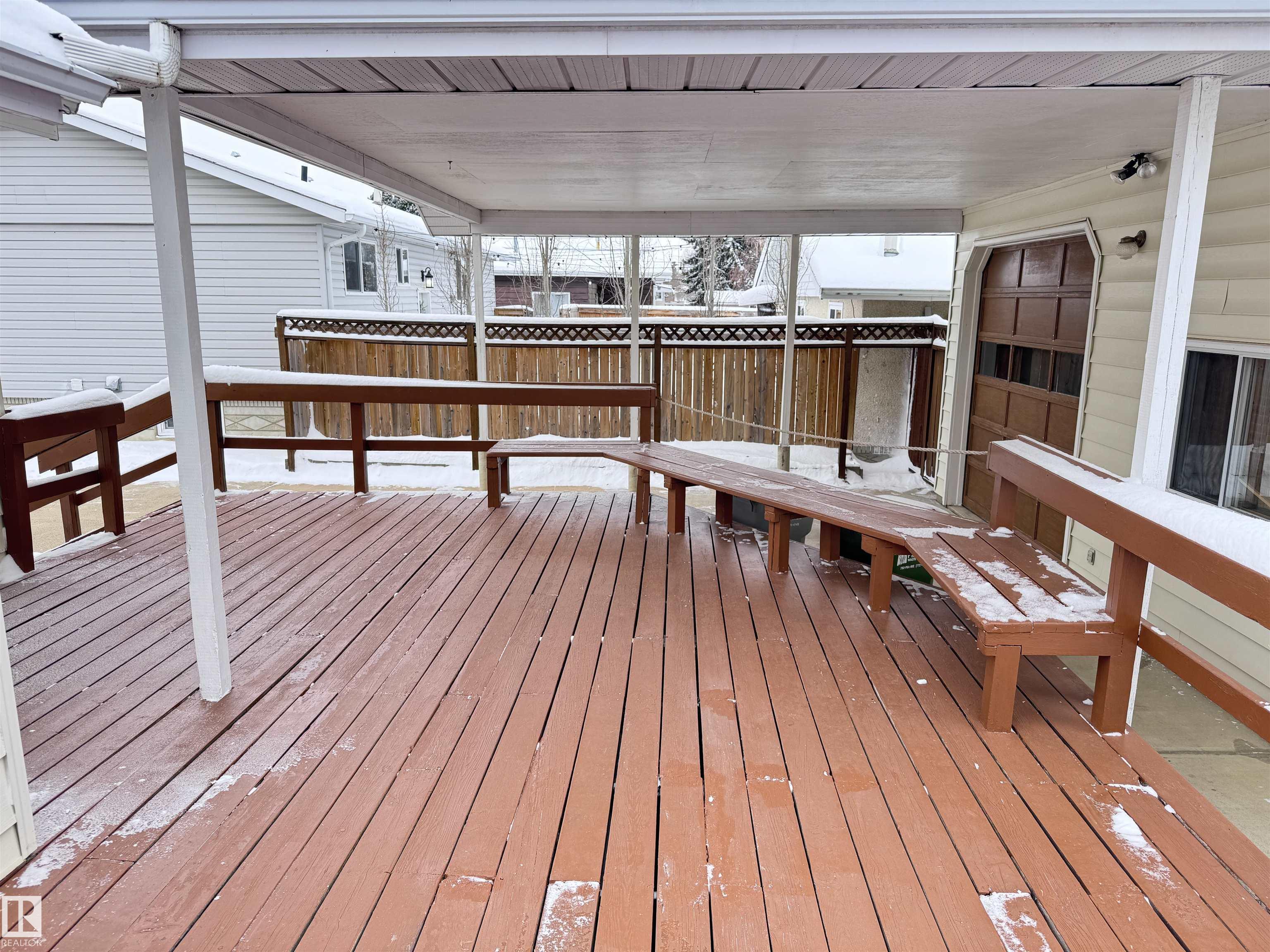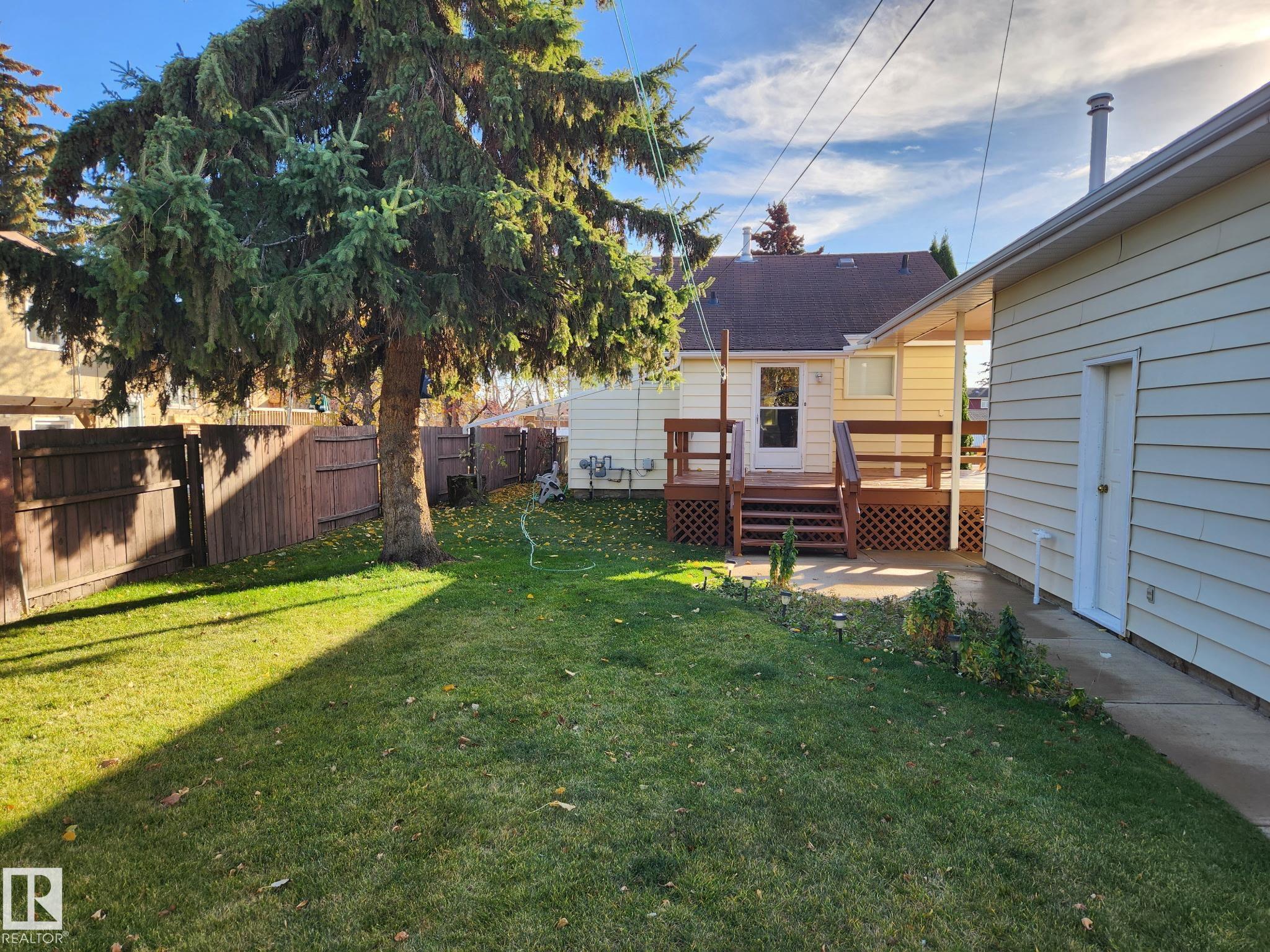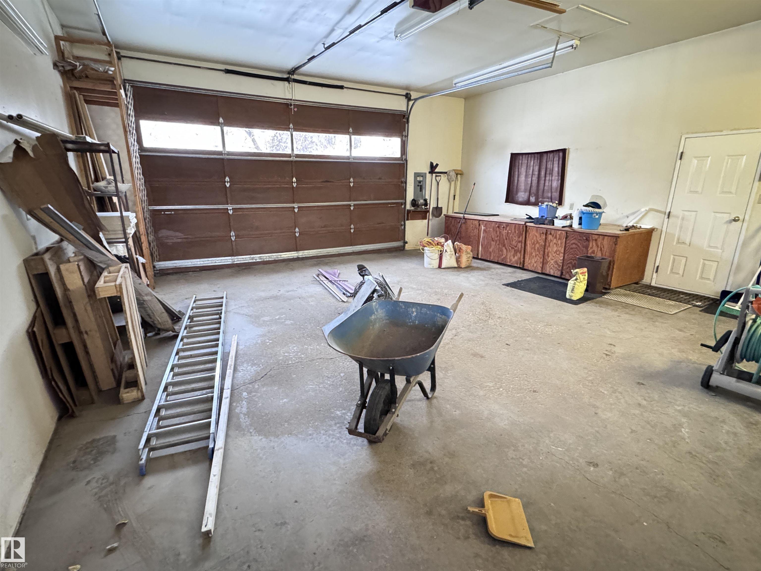 Tidy and full of character is this 900 sq.ft. bungalow in the fabulous Southview area of Westlock. Oak kitchen cabinets with sunshine box light & built-in microwave. Bright living room is right-sized & has a garden window. 2+2 bedrooms. Bright front den. Main floor laundry at rear entrance. Full bathroom is attractively appointed & has a jet-soaker tub. Basement features a 3-piece bathroom, rumpus room, 2 bedrooms & storage. Massive 26x24 heated, lined, 12' high wall, 10' high doors garage with carport on the front of it. Overhead doors on front and rear of garage (drive right through). Covered deck is large and will be repaired to ensure the next summer BBQ is enjoyable. Super-sized driveway in front, plus double parkpad at rear. 2 blocks to downtown core. 2 blocks to Westlock Rotary Spirit Centre (multi-plex sports facility). Close to schools, playground & grocery store. 2012 Hot Water Tank, Newer HE furnace.