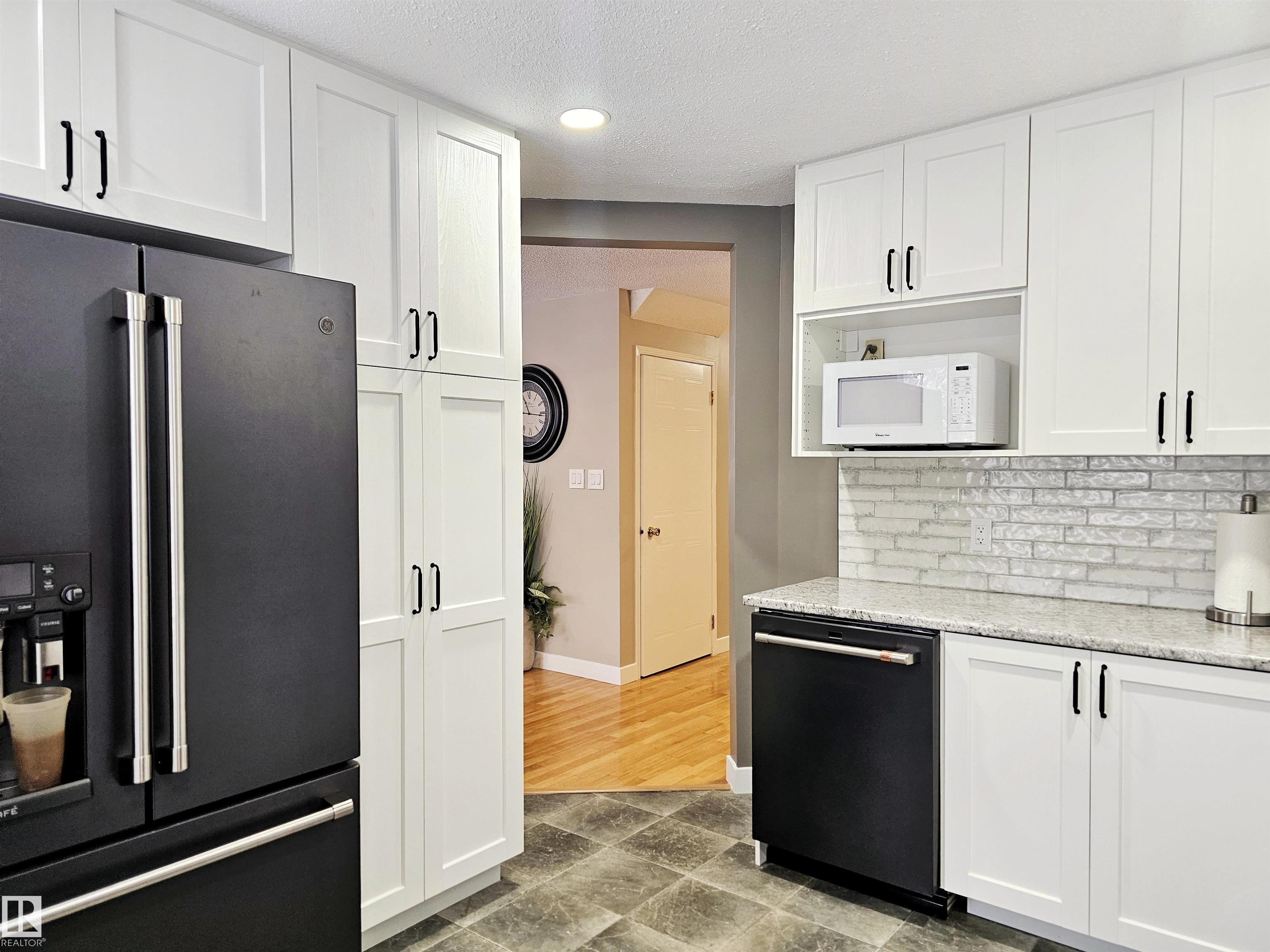 Looking for everything on your wish list? This lovely 2 story townhome condo in Gentry Lane has it all with a total of 4 beds, 3 full baths, hardwood floors, wood burning fireplace, a gorgeous new kitchen complete with new Cafe appliances, fenced yard with deck + gas hookup, heated double attached garage, A/C and fresh paint! The main floor provides a bright and cozy living space, a functional kitchen with gas stovetop and plenty of storage, spacious dining area, main floor bedroom, full bath and laundry leading to the garage. Upstairs you will find a large primary bedroom with 3pc ensuite plus 2 more generously sized bedrooms and a 4pc bath. The basement is awaiting your future plans or just use it for extra storage! Nestled just steps away from shopping, trails and transit, this beautiful home is the perfect place to plant new memories in The Gardens!