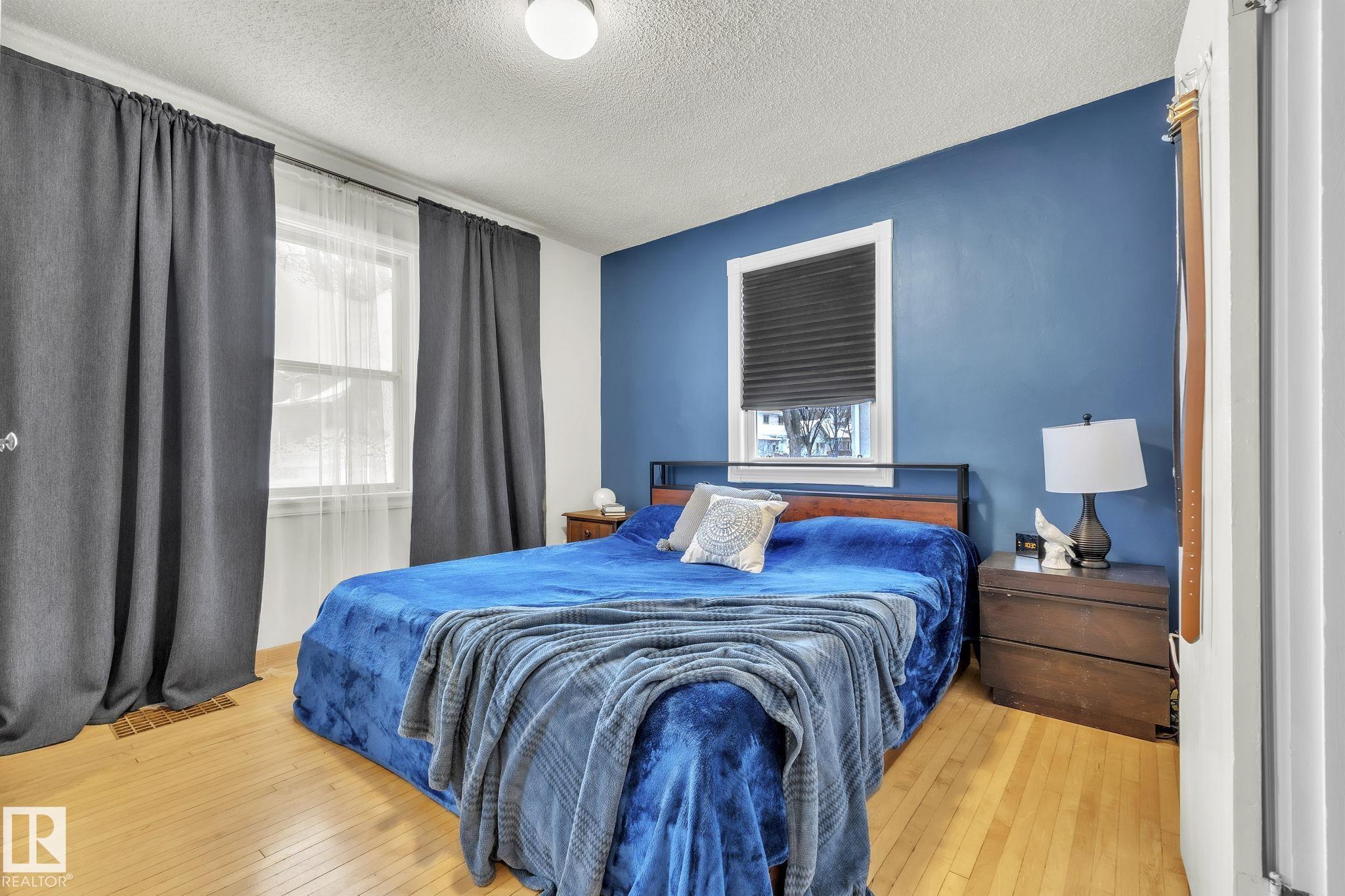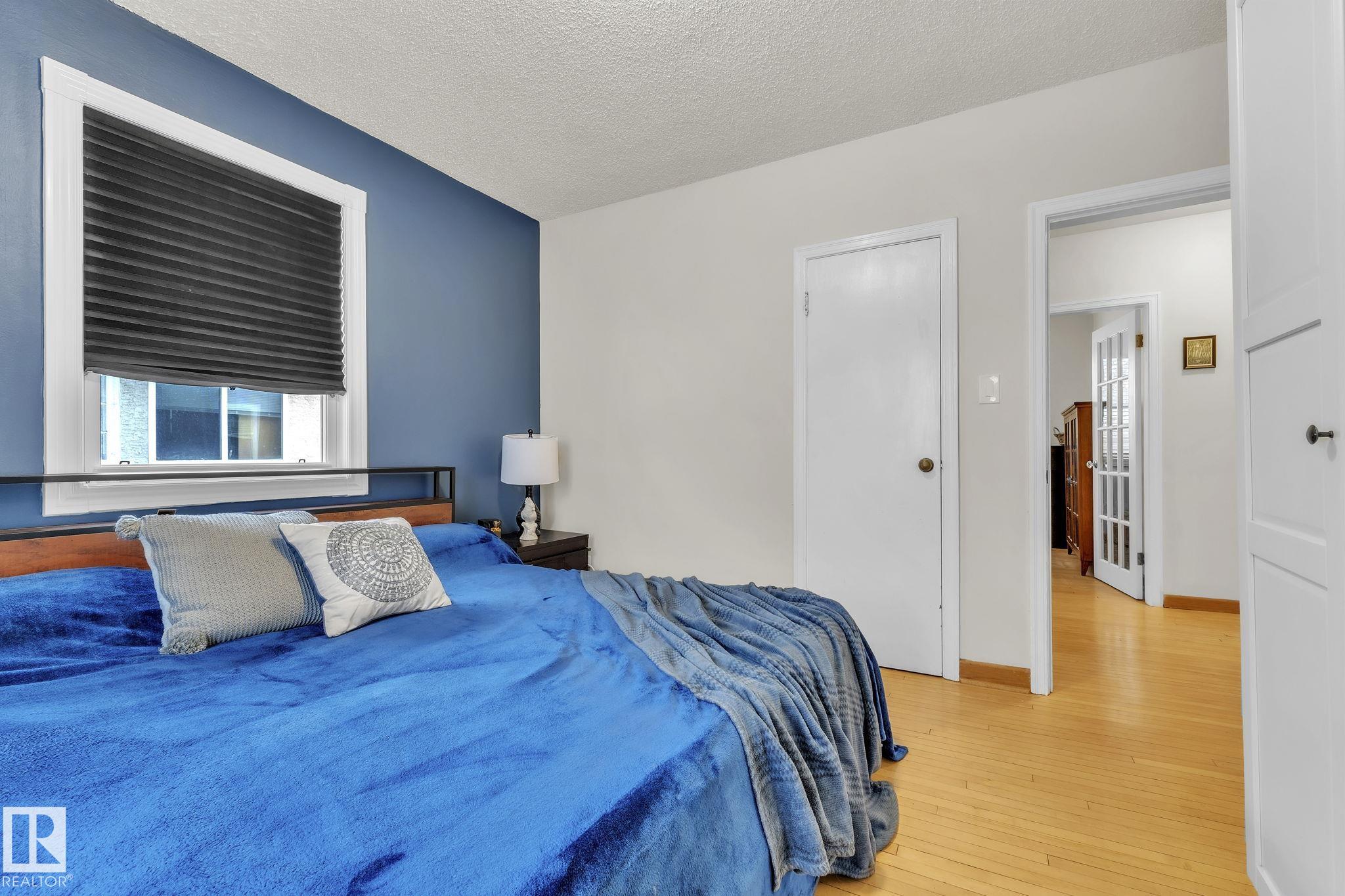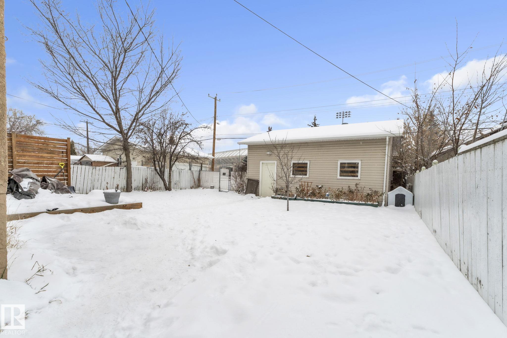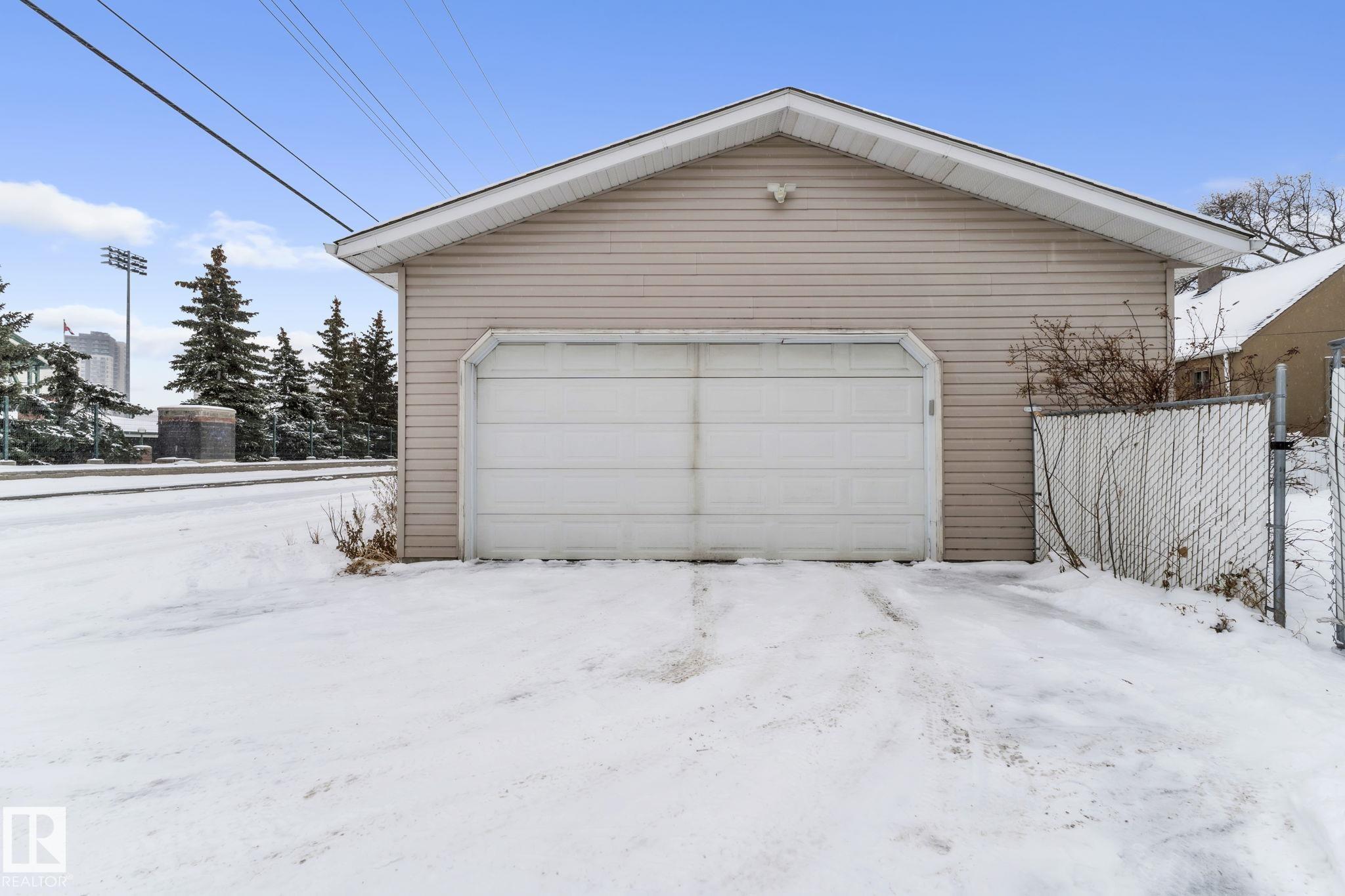 Located on a TREELINED STREET this mid century Bungalow has UPGRADED shingles & eavestroughs. It is CONVENIENTLY located close to ALL AMENITIES including LRT, backing Joe Clarke Athletic Grounds w/ a a paved REAR LANE & BIKE LANE to enjoy. The front PICKET FENCE greets you w/ a secured front yard, great for GARDENING; the front steps are large and eclectic. Enter into the Livingroom w/ original HARDWOOD, COVED ceilings and plenty of windows to bring in the LIGHT. Cook in the U-SHAPED kitchen with raised panel OAK CABINETS & an EAT IN NOOK. 2 bedrooms & a full bath complete the main floor. A cozy FULLY FINISHED BASEMENT is yours featuring a large REC ROOM, ample 3 piece bath & a third bedroom for guests or family. Play in the rear yard, it is FULLY FENCED, large & offers a PRIVATE DECK to enjoy morning coffee or an evening chat. Park in the newer, OVERSIZED, INSULATED, DOUBLE DETACHED GARAGE its the newest on the block and will keep your cars cozy! Come see it, you'll LOVE the CHARM this place offers!