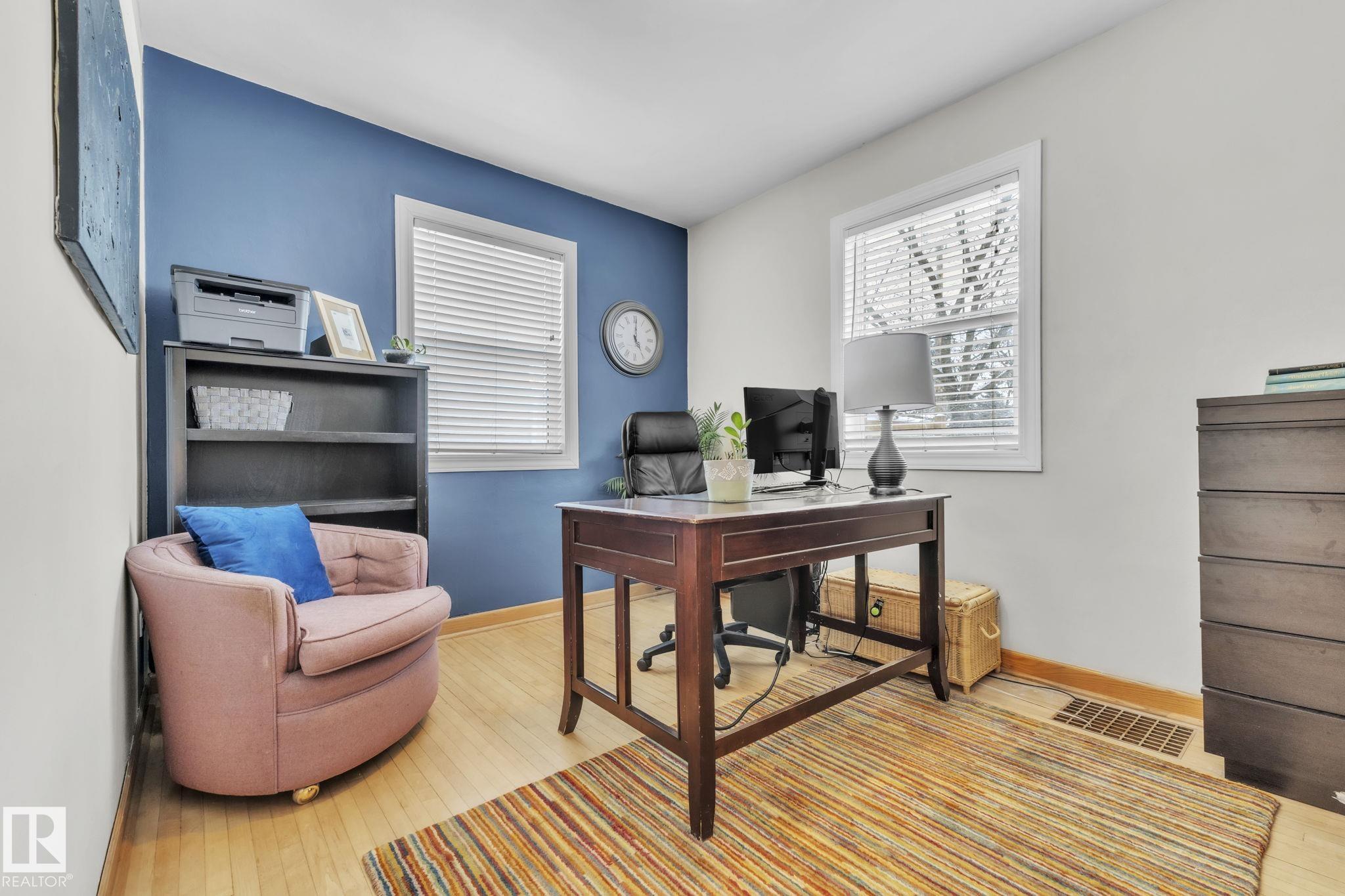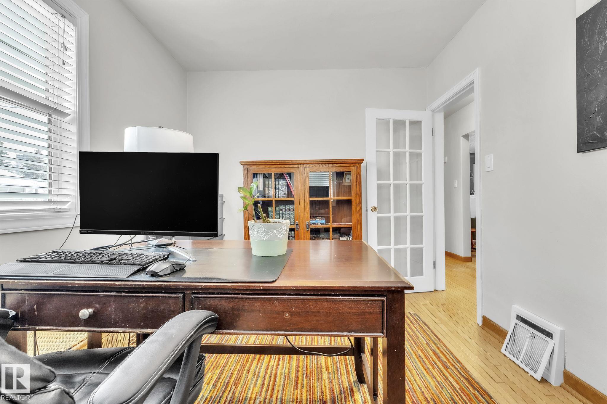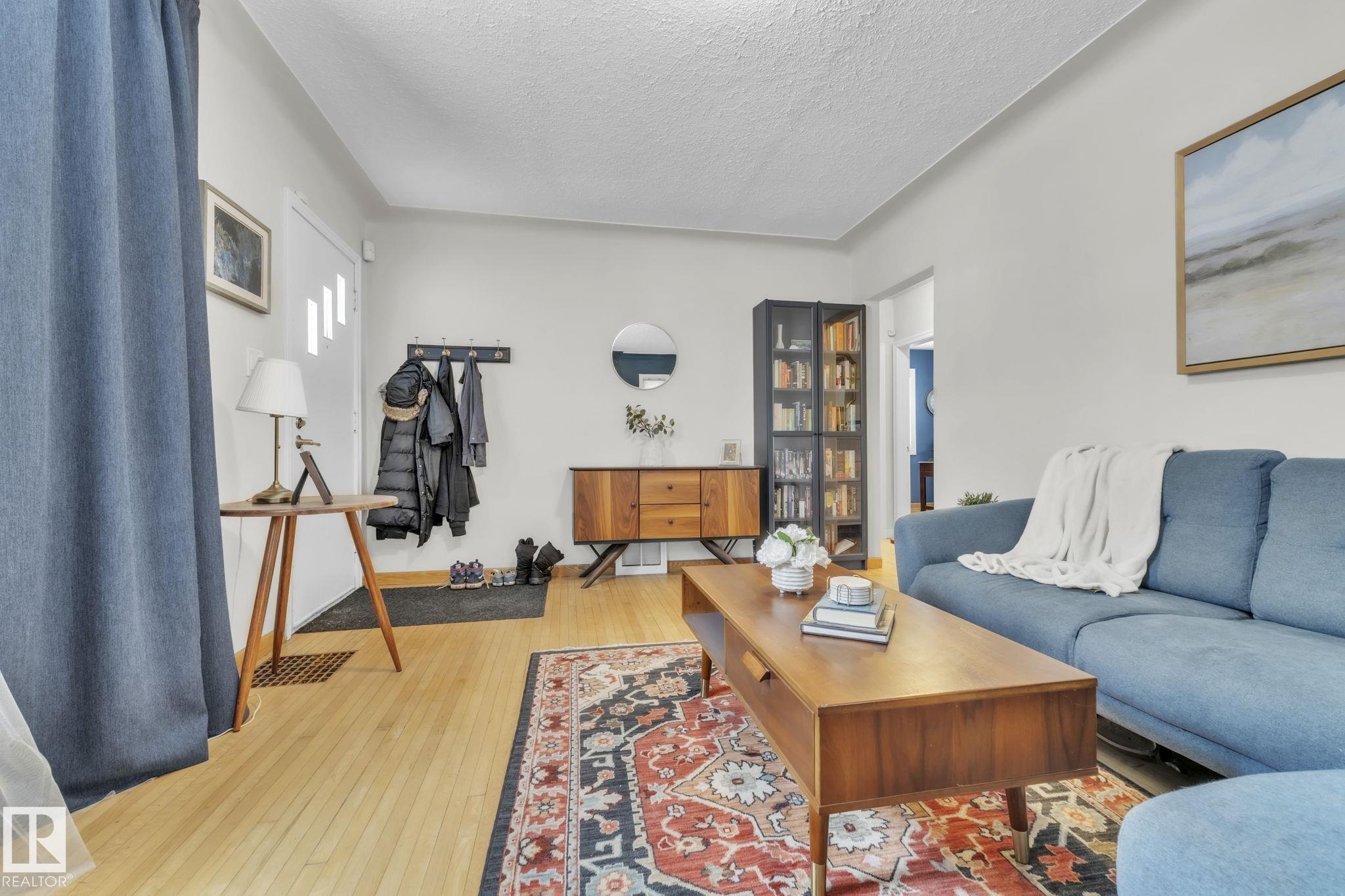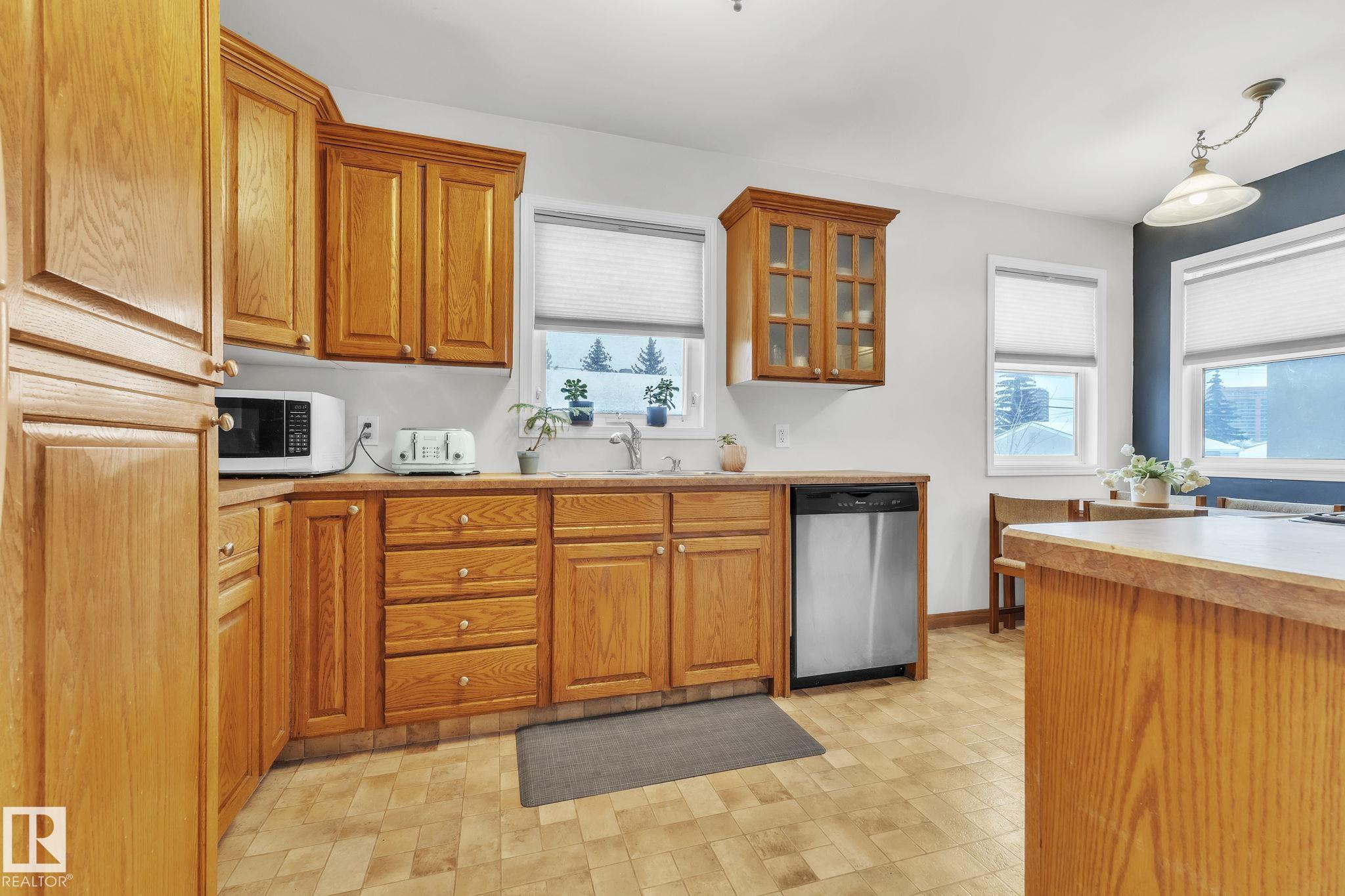 Located on a TREELINED STREET this mid century Bungalow has UPGRADED shingles & eavestroughs. It is CONVENIENTLY located close to ALL AMENITIES including LRT, backing Joe Clarke Athletic Grounds w/ a a paved REAR LANE & BIKE LANE to enjoy. The front PICKET FENCE greets you w/ a secured front yard, great for GARDENING; the front steps are large and eclectic. Enter into the Livingroom w/ original HARDWOOD, COVED ceilings and plenty of windows to bring in the LIGHT. Cook in the U-SHAPED kitchen with raised panel OAK CABINETS & an EAT IN NOOK. 2 bedrooms & a full bath complete the main floor. A cozy FULLY FINISHED BASEMENT is yours featuring a large REC ROOM, ample 3 piece bath & a third bedroom for guests or family. Play in the rear yard, it is FULLY FENCED, large & offers a PRIVATE DECK to enjoy morning coffee or an evening chat. Park in the newer, OVERSIZED, INSULATED, DOUBLE DETACHED GARAGE its the newest on the block and will keep your cars cozy! Come see it, you'll LOVE the CHARM this place offers!