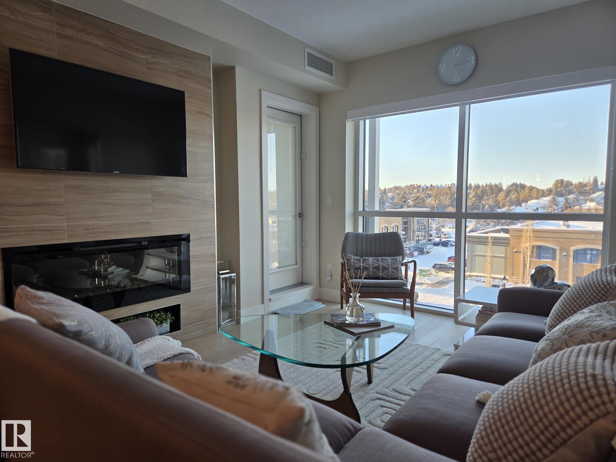 A beautiful and bright 2 bedroom suite nestled into the banks of the Sturgeon River Valley in St Albert's most desired condominium complex, Botanica! Concrete construction offers enhanced sound protection and fire safety. Premium features include; 9 ft ceilings, oversized windows, quartz countertops, porcelain tile, large balcony with gas and water hookups, forced air heating and A/C & a premium appliance package. Botanica offers well designed amenities such as; an impressive lobby, spacious social hall, exercise room, guest suites, rooftop patio & more. Enjoy the no maintenance condo lifestyle, all within walking distance to tranquil river valley trails, boutique shopping, Mercato Italian Market, unique restaurants and professional services. A great place to live at a great price! Low condo fees include gas & water!!
