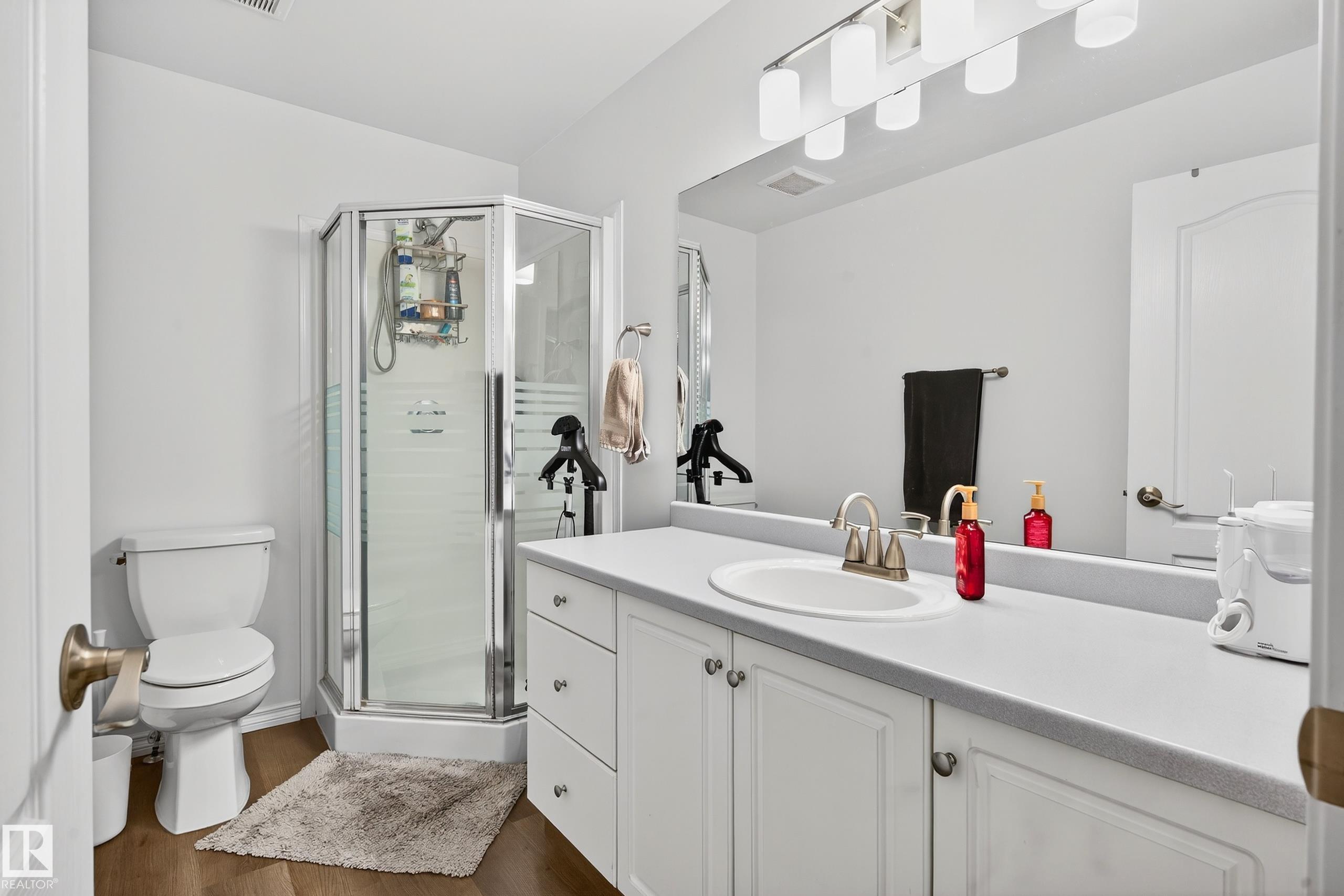 Welcome to this beautifully maintained 3-level split, perfectly suited for a starter family or anyone looking to downsize in a quiet neighbourhood. This thoughtfully designed home offers 3 bedrooms and 3 full bathrooms. The main floor features a bright kitchen with a beautiful sitting area and adjacent dining space, creating a warm and functional layout ideal for everyday living and entertaining. Upstairs, you?ll find two bedrooms, including a spacious primary suite with a 3-piece ensuite, as well as an additional 4-piece bathroom. The fully finished basement offers a large recreation area, a full bedroom, a 3-piece bathroom, and a separate storage room?perfect for guests, teens, or a home office setup. Recent upgrades include new flooring in the basement and bathrooms (2023) and a new hot water tank (2025) for added peace of mind. Complete with a double attached garage and located in a welcoming, well-established community close to parks, and walking trails, this home is move-in ready and full of value!