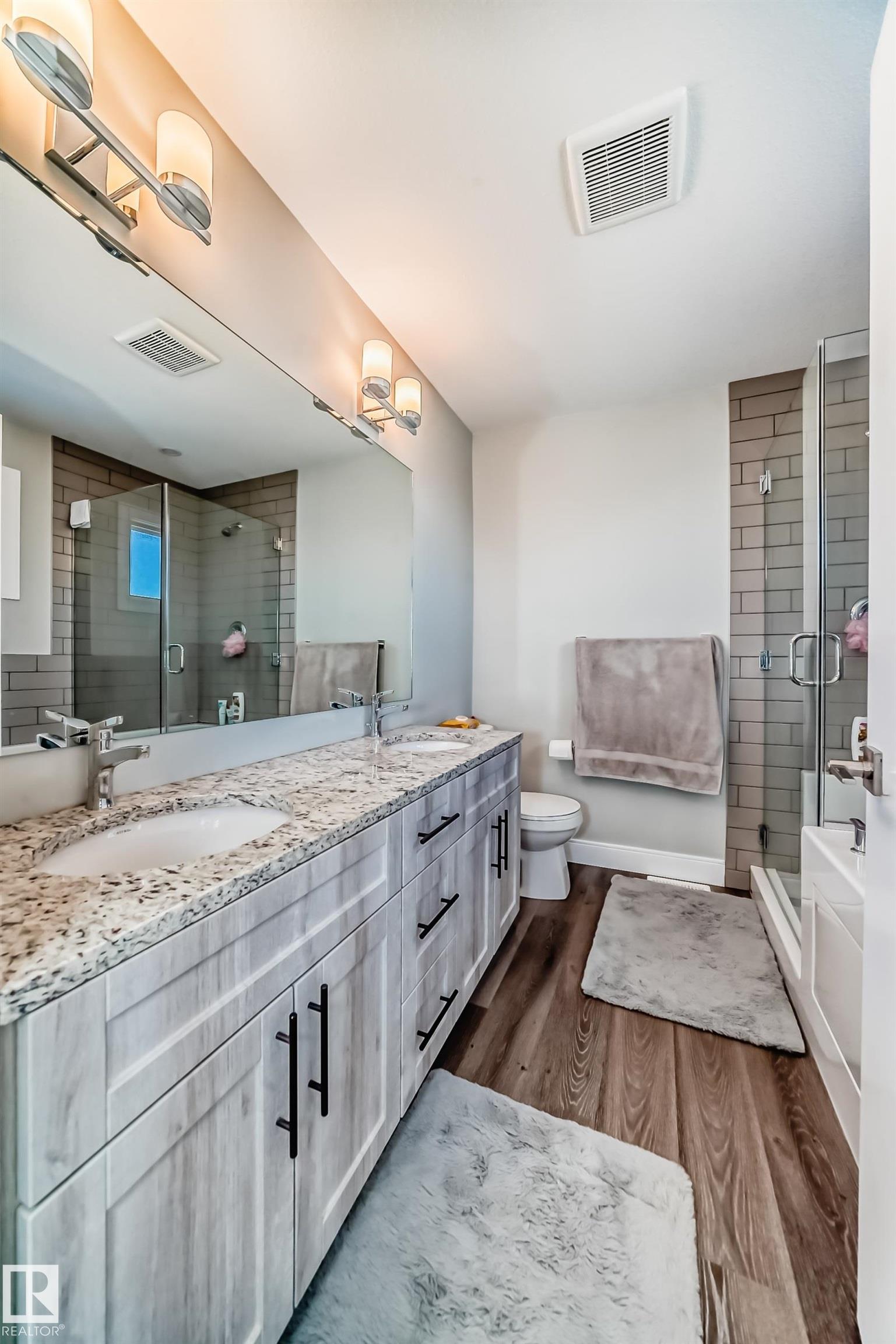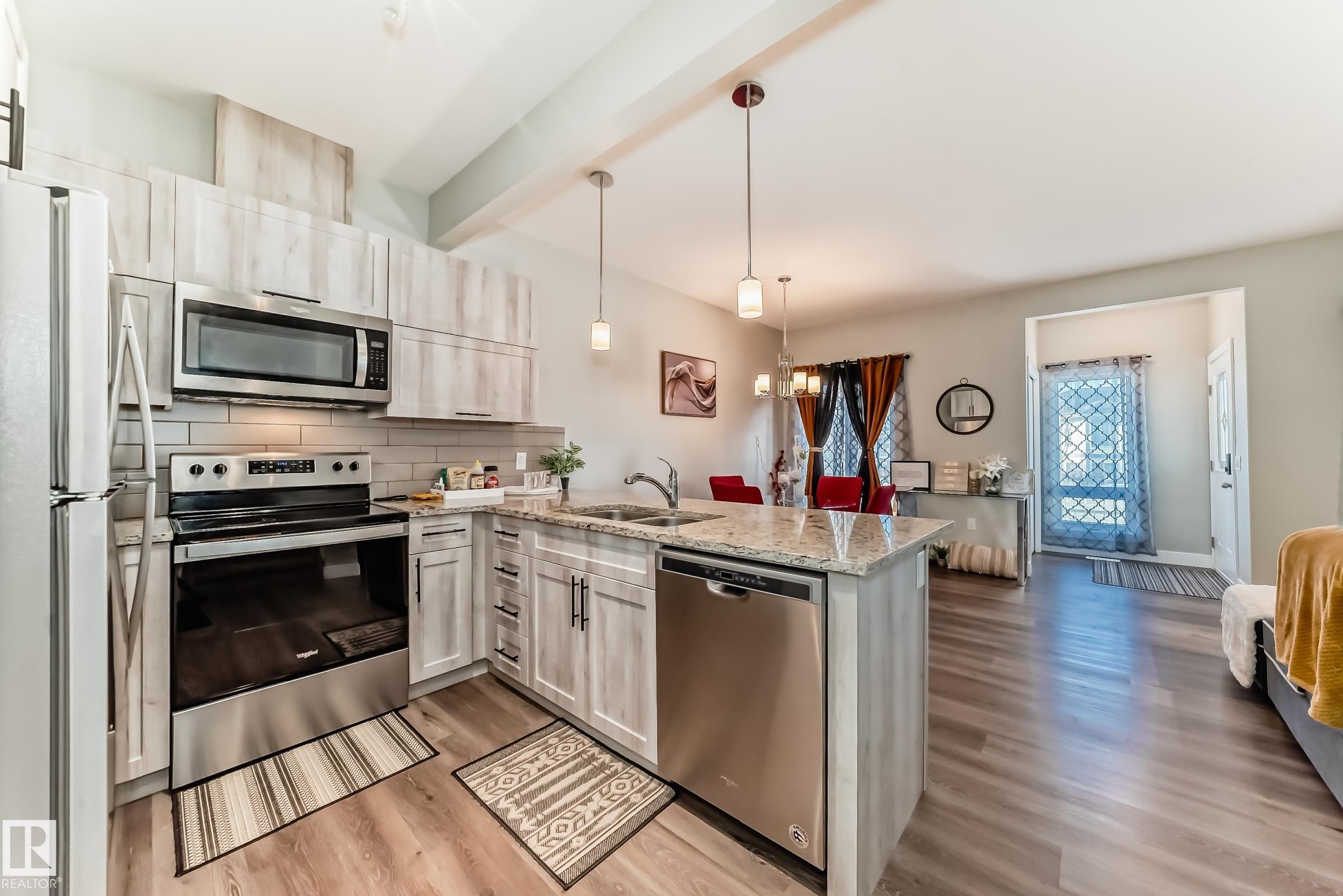 Elegant 1,244 sq. ft. 3-bedroom, 2-bath townhouse offering modern comfort and exceptional parking: double attached garage, full driveway, 2 additional stalls, plus street parking right in front of your gated yard. The open-concept main floor is filled with natural light from oversized windows and features a stylish kitchen made for entertaining, flowing into a spacious living/dining area. Upstairs you?ll find three well-appointed bedrooms, including a generous primary suite with a luxurious 5-piece ensuite featuring a soaker tub, glass-enclosed shower, and double vanity. The unfinished basement is ready for your future gym, office, or rec room. Ideally located next to Athlone Park, playgrounds, schools, shopping, and the library, with quick access to Yellowhead Trail (2 min), Anthony Henday Drive (5 min), and only 15 minutes to downtown?close to NAIT and the Royal Alex Hospital.