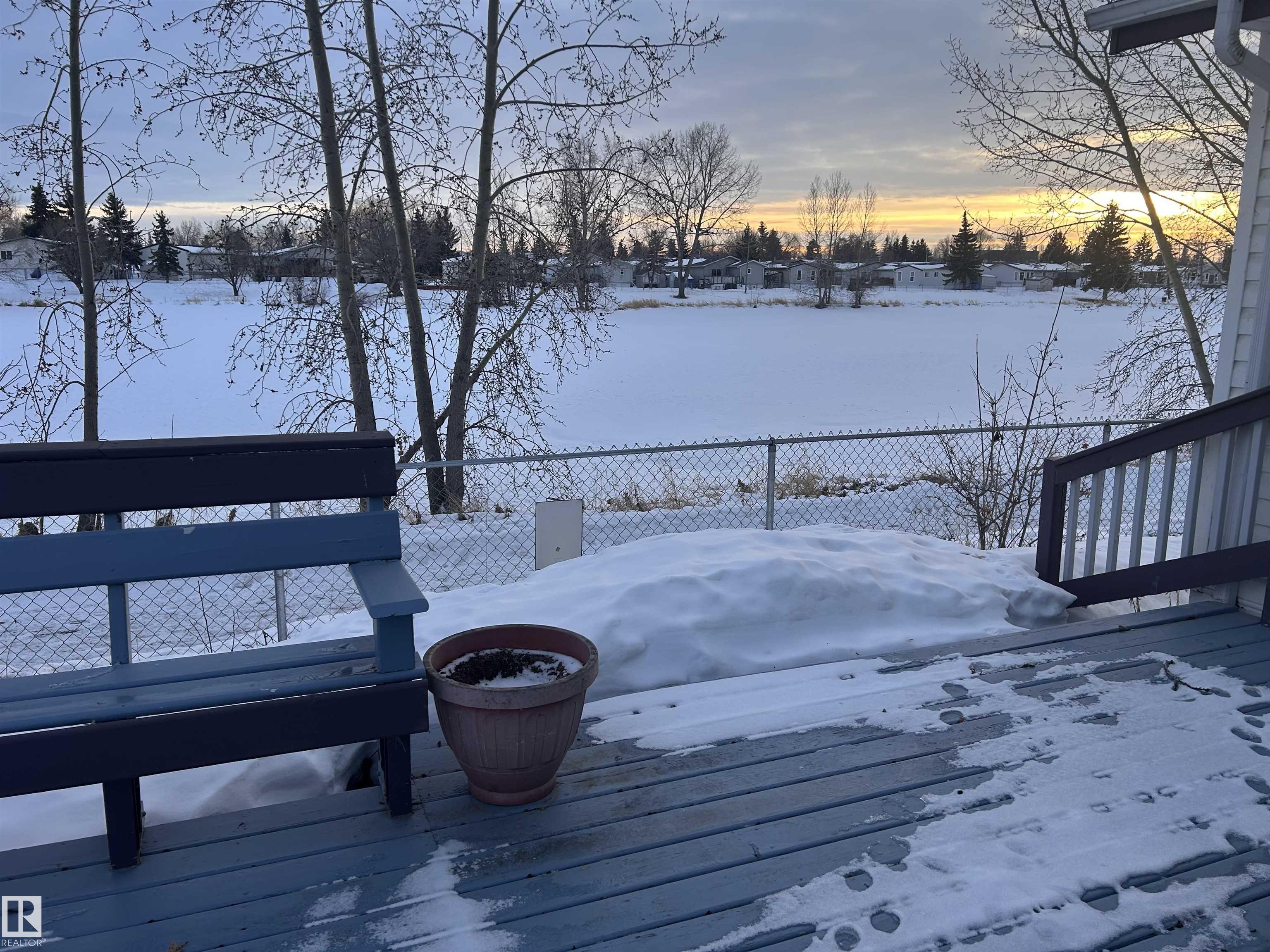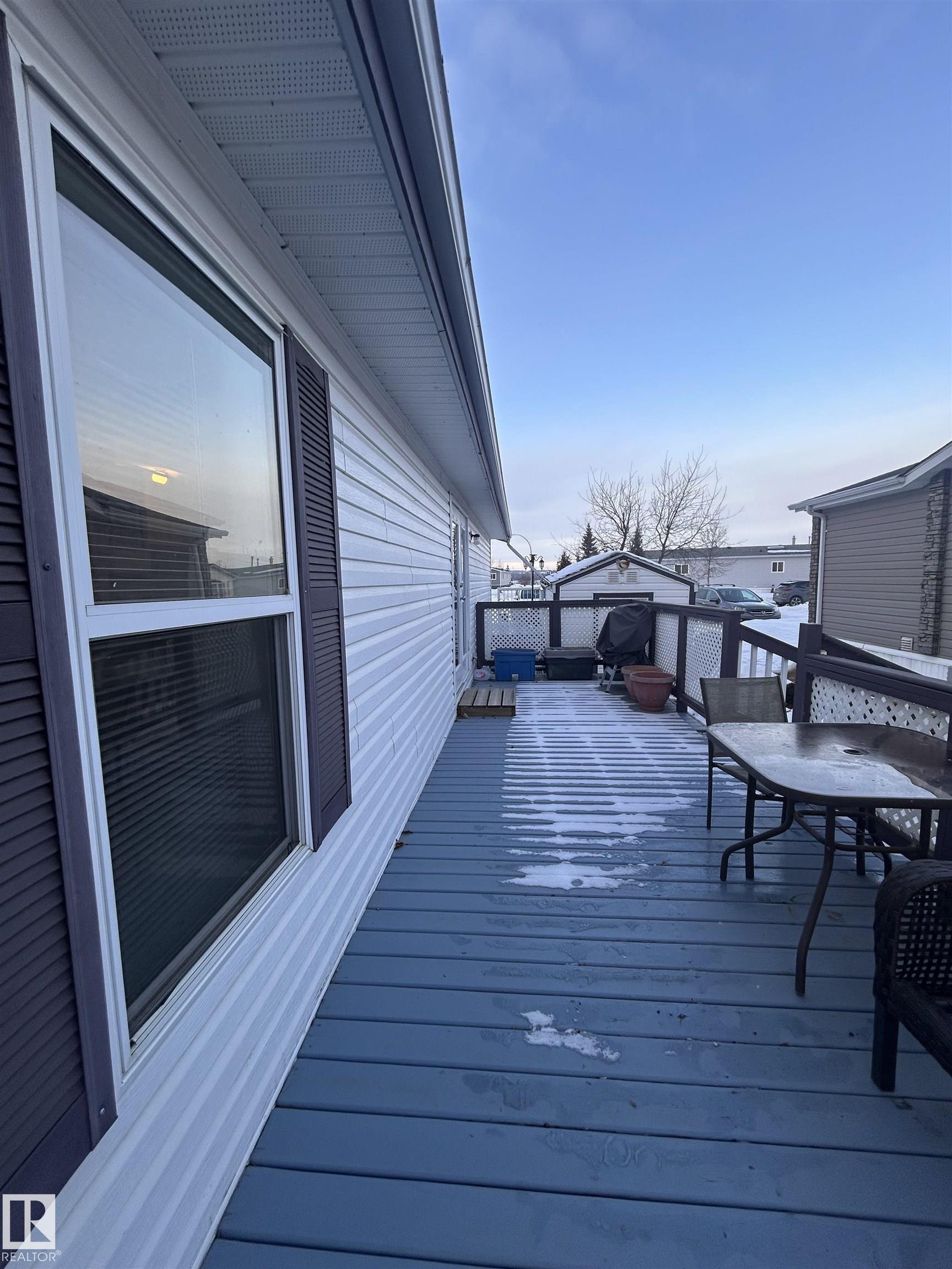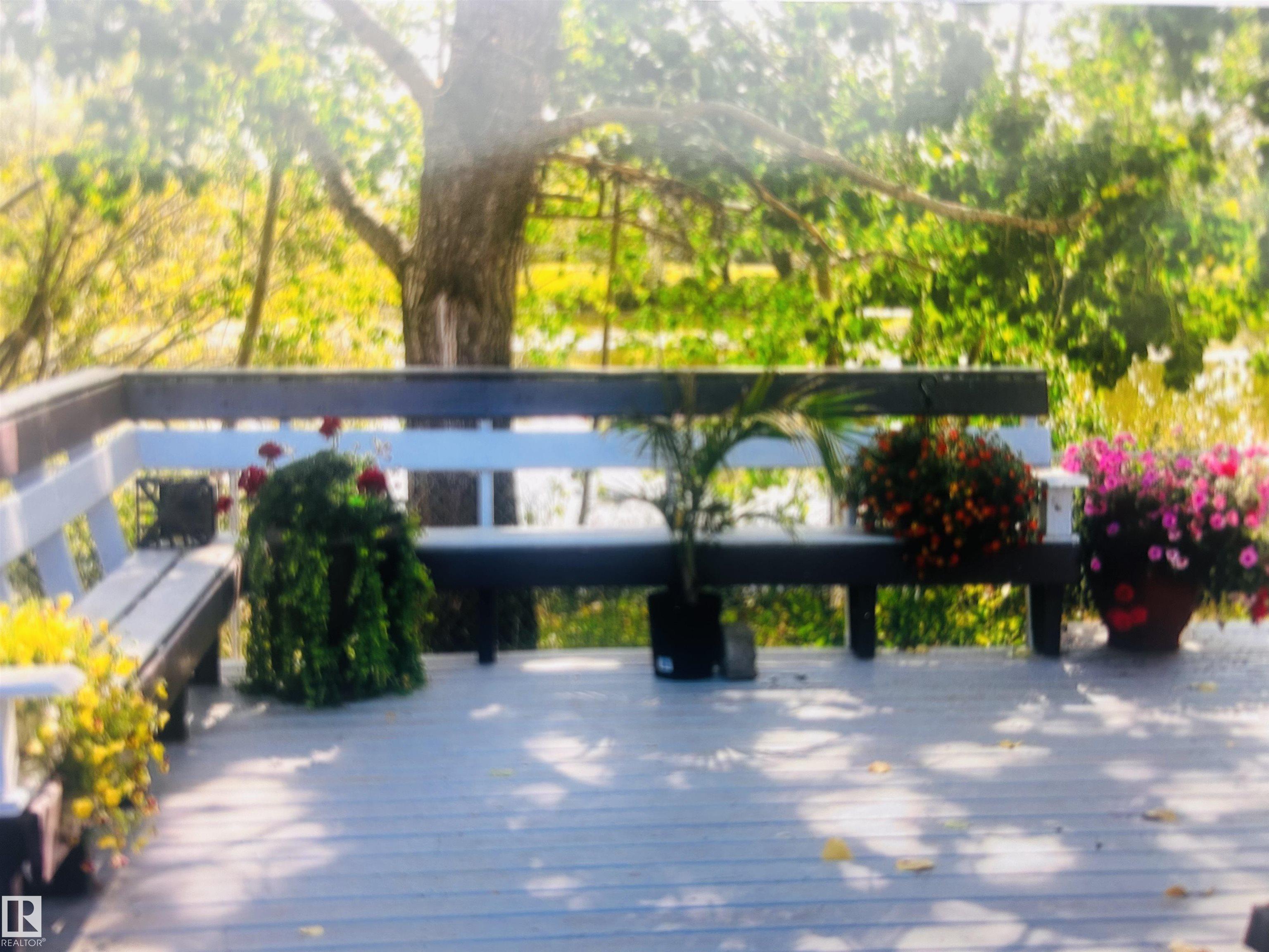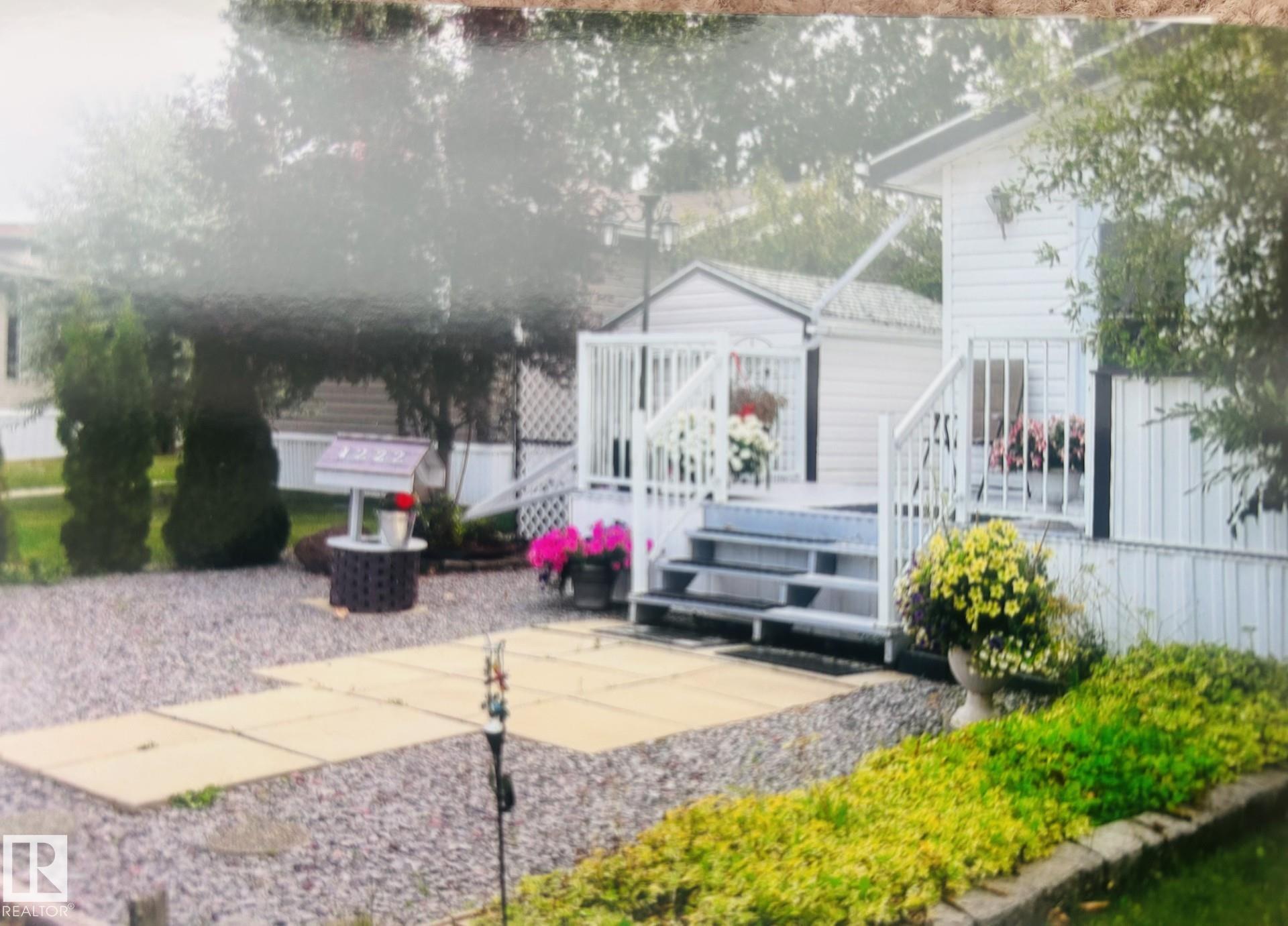 Architectural Custom Built offset double wide in one of the nicest spots in the park! Painted drywall home with vaulted stucco ceilings, skylight, three entrances, corner gas fireplace with mantle. Front entry foyer & living room, plus a family room. 4-pce bathroom. 3 bedrooms, Master en suite jetted tub & walk in closet. Open area kitchen with pantry and island. Many upgrades include a recently renewed asphalt shingle roof, quiet furnace, upright freezer, built in microwave and dishwasher, ceran top electric stove. Walk-a-bay windows in living rooms, and many designer style accents throughout. You will love the extended porch leading to the yard that backs on to the fountain pond with mature trees all around. The home has many deluxe features such as its own laundry room, with a separate entrance. The walk around deck to the back features built in seating; a great place for entertaining guests. Enjoy the privacy at this location with singing birds year round. A real beauty of a house. Hurry to see it!