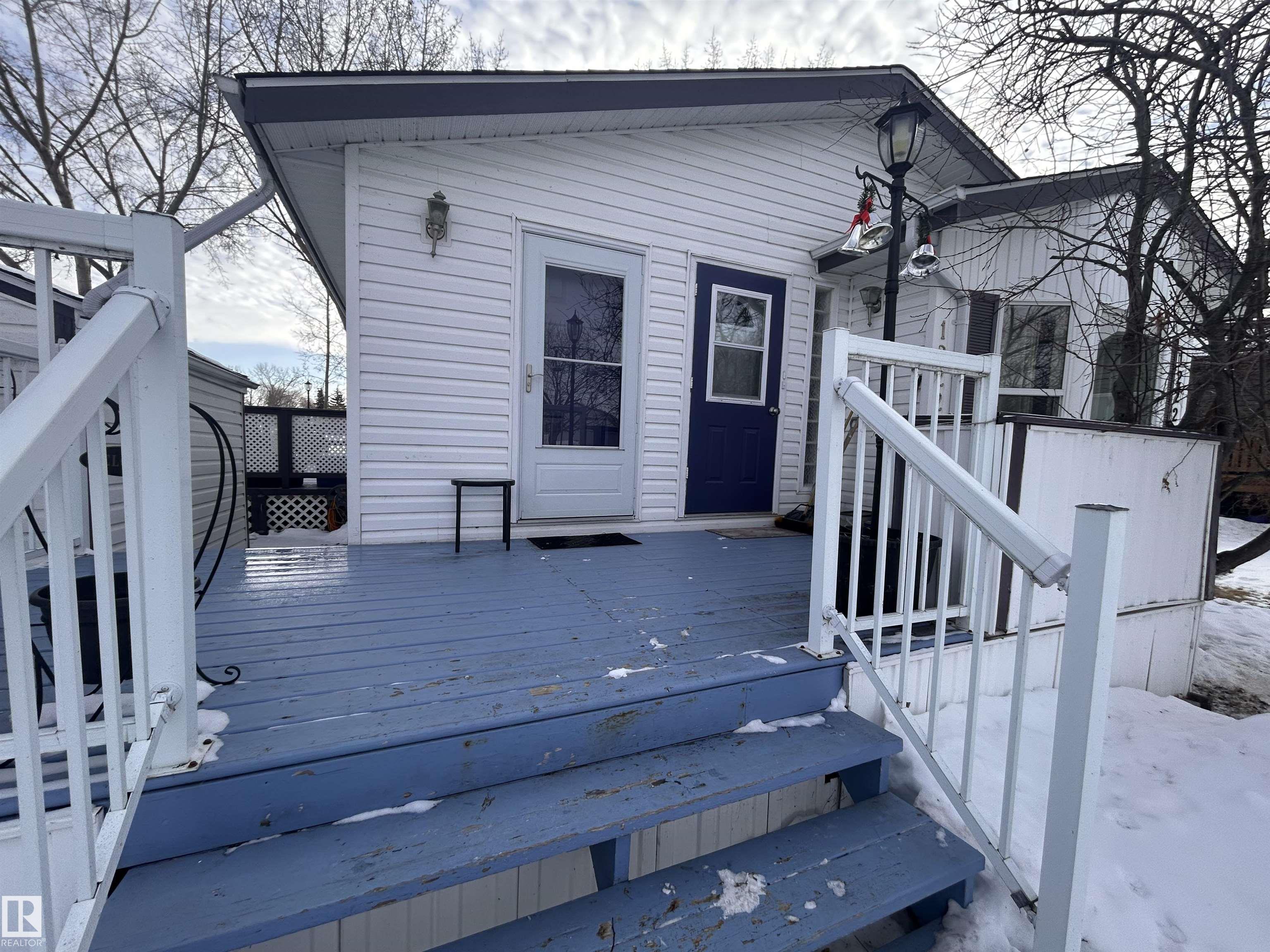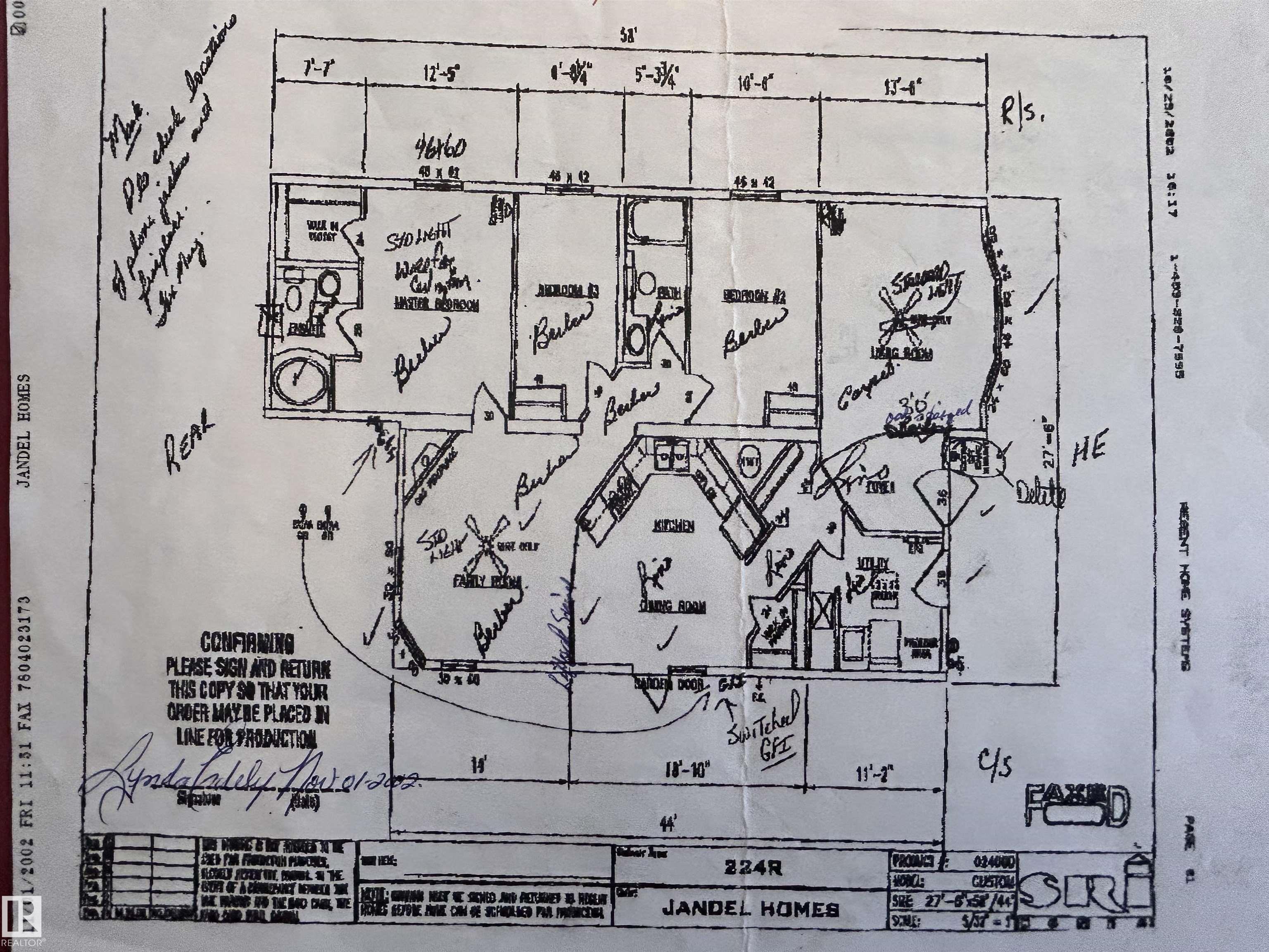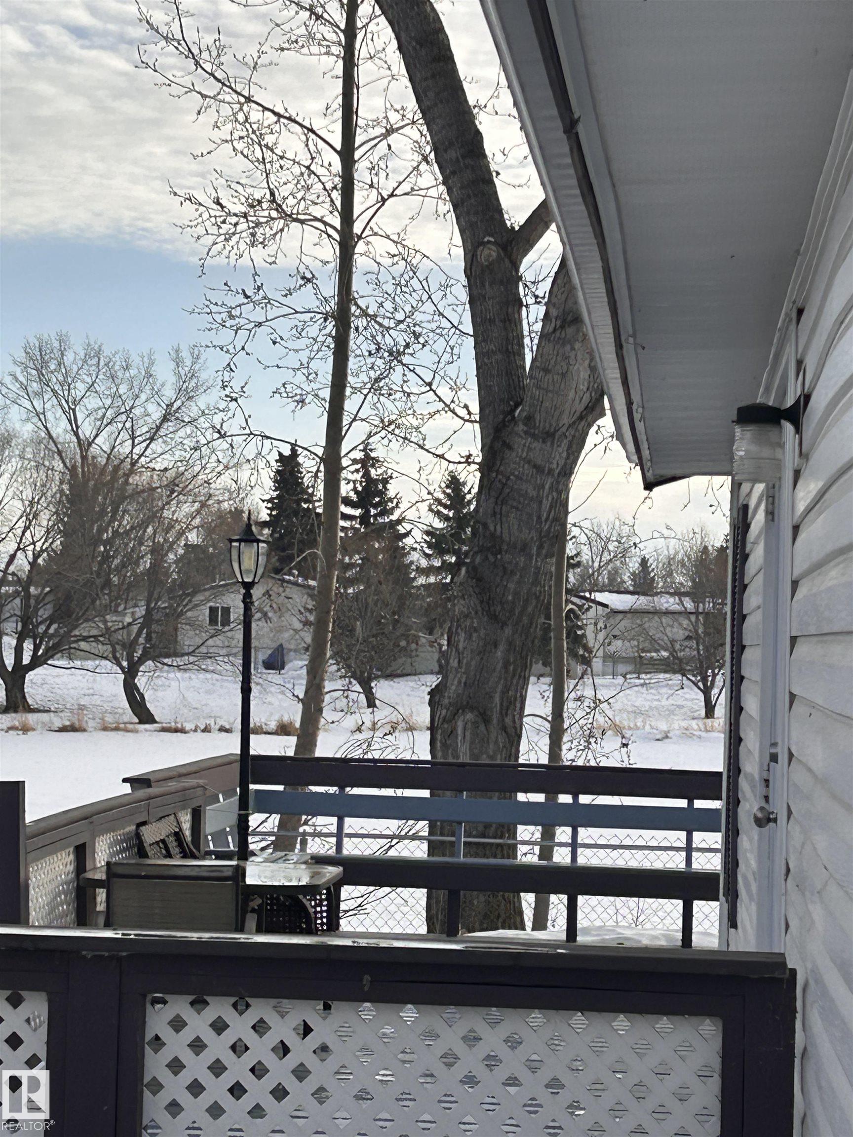 Architectural Custom Built offset double wide in one of the nicest spots in the park! Painted drywall home with vaulted stucco ceilings, skylight, three entrances, corner gas fireplace with mantle. Front entry foyer & living room, plus a family room. 4-pce bathroom. 3 bedrooms, Master en suite jetted tub & walk in closet. Open area kitchen with pantry and island. Many upgrades include a recently renewed asphalt shingle roof, quiet furnace, upright freezer, built in microwave and dishwasher, ceran top electric stove. Walk-a-bay windows in living rooms, and many designer style accents throughout. You will love the extended porch leading to the yard that backs on to the fountain pond with mature trees all around. The home has many deluxe features such as its own laundry room, with a separate entrance. The walk around deck to the back features built in seating; a great place for entertaining guests. Enjoy the privacy at this location with singing birds year round. A real beauty of a house. Hurry to see it!