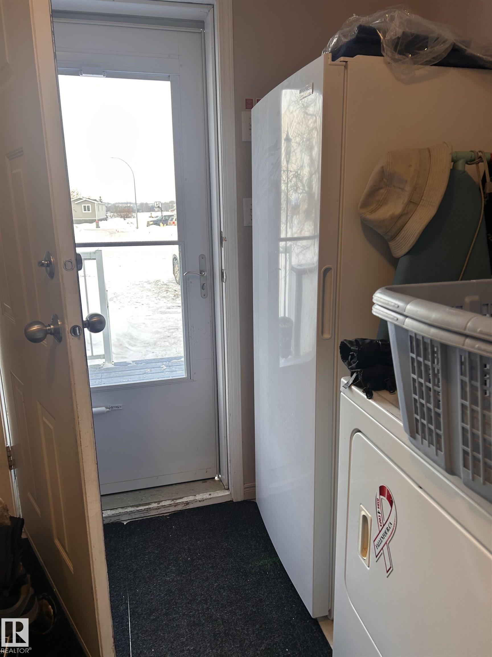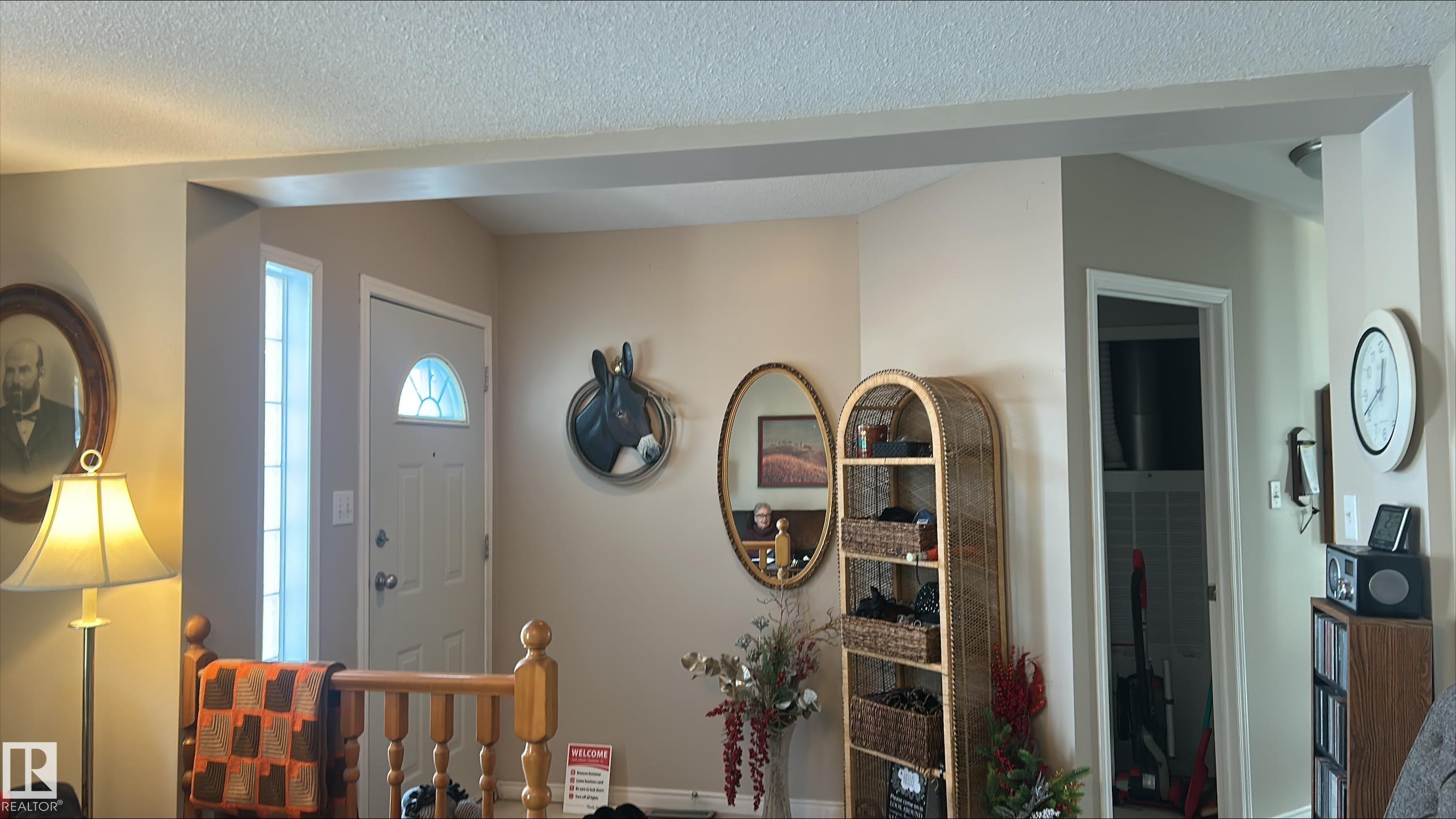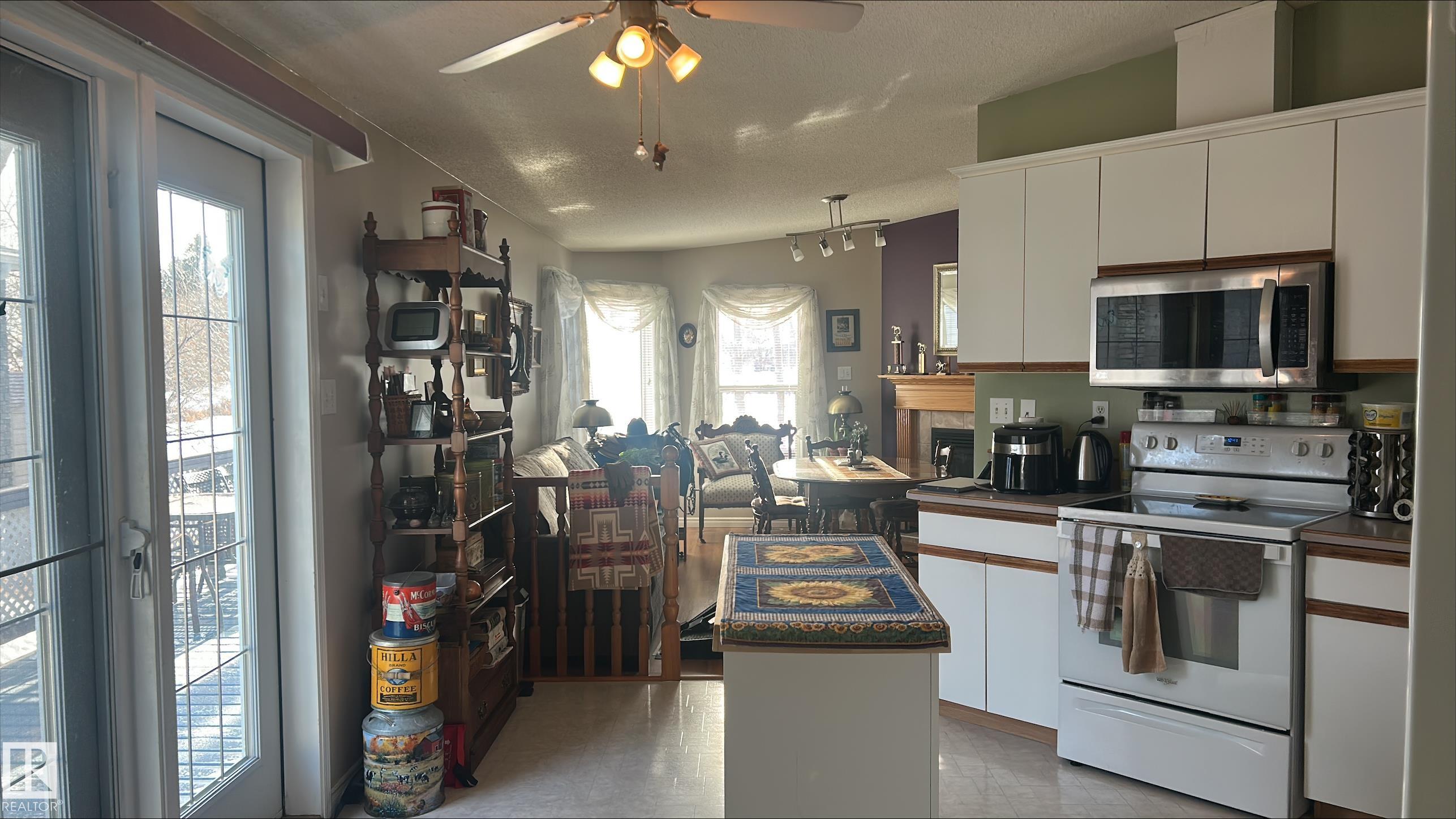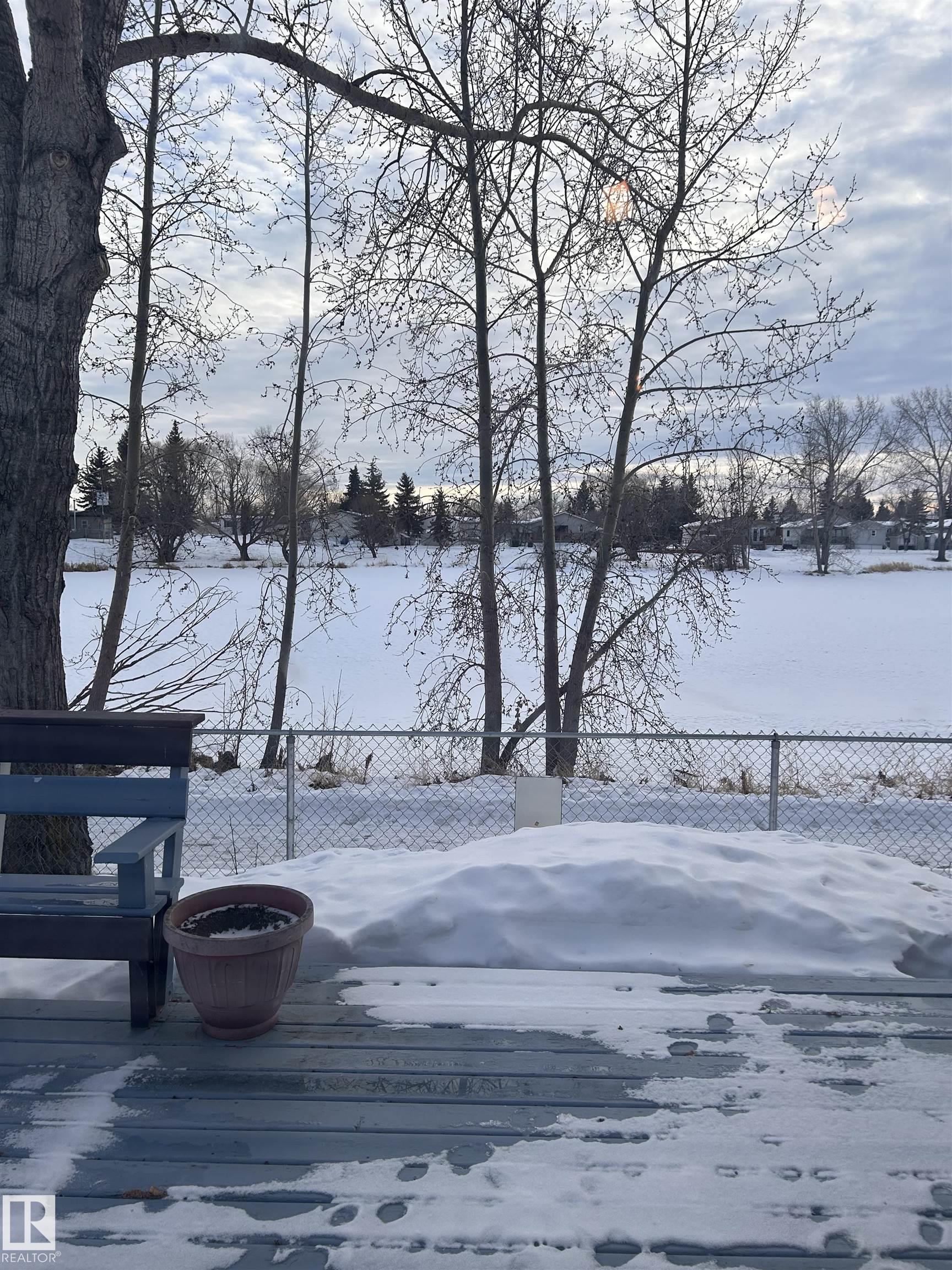 Architectural Custom Built offset double wide in one of the nicest spots in the park! Painted drywall home with vaulted stucco ceilings, skylight, three entrances, corner gas fireplace with mantle. Front entry foyer & living room, plus a family room. 4-pce bathroom. 3 bedrooms, Master en suite jetted tub & walk in closet. Open area kitchen with pantry and island. Many upgrades include a recently renewed asphalt shingle roof, quiet furnace, upright freezer, built in microwave and dishwasher, ceran top electric stove. Walk-a-bay windows in living rooms, and many designer style accents throughout. You will love the extended porch leading to the yard that backs on to the fountain pond with mature trees all around. The home has many deluxe features such as its own laundry room, with a separate entrance. The walk around deck to the back features built in seating; a great place for entertaining guests. Enjoy the privacy at this location with singing birds year round. A real beauty of a house. Hurry to see it!