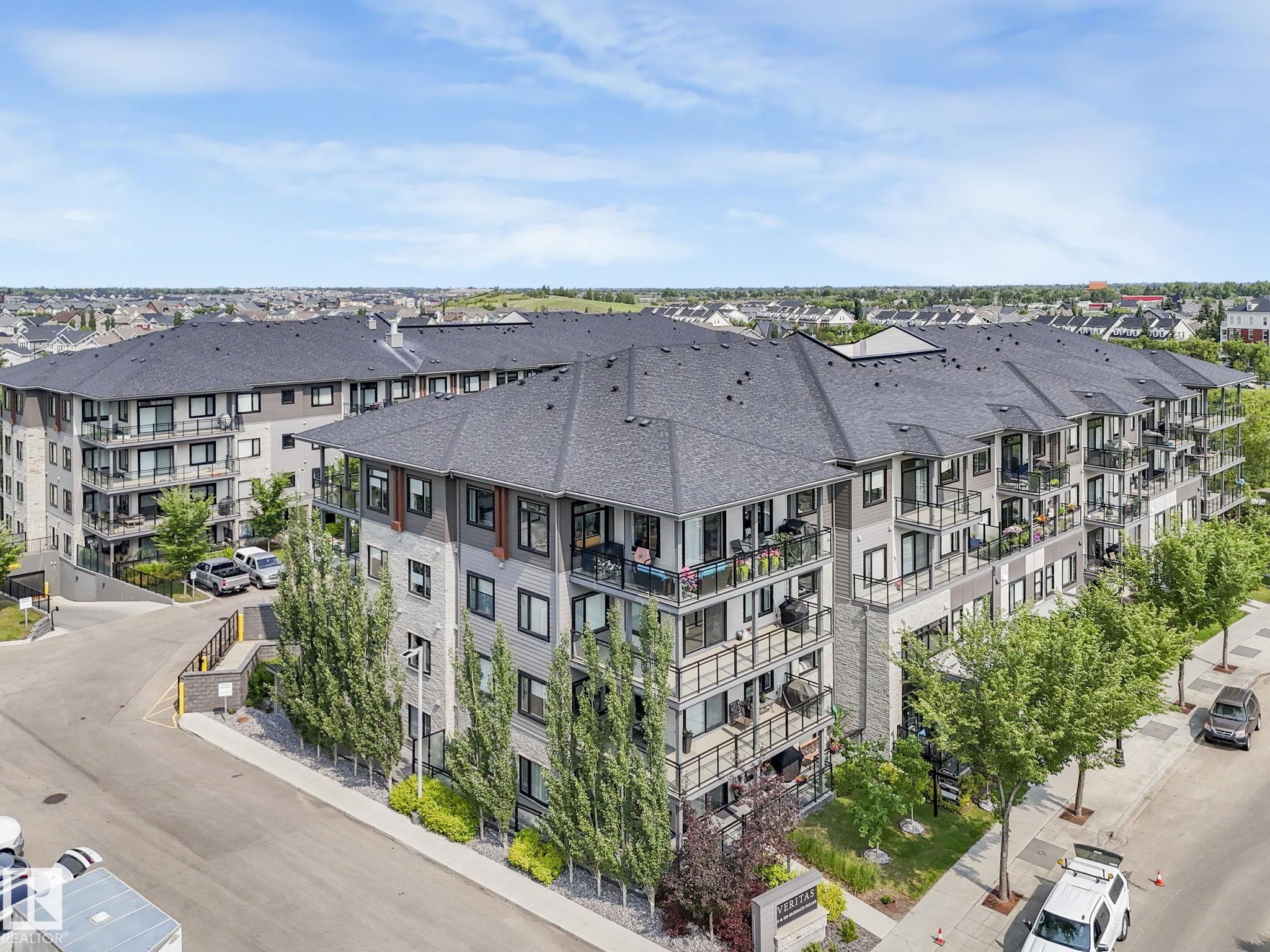 Pristine Original Owner 2 Bed, 2 Bath + Den Condo. Step into Style & Taste! Featuring 1316 sf, 9' Ceilings, Expansive Windows w/Custom Blinds, Kitchen w/Quartz Counter Top, 10' Island, SS Appliances & Crisp White Shaker Cabinets w/ Extended Uppers. The Open Layout is Perfect for Entertaining w/ Seating at the Island, Large Dining Space, Welcoming Living Rm & Huge 545 sf Wrap Around Patio w/West & North Exposures & Gas BBQ line for Year Round Grilling. Thoughtfully Designed w/Spacious Primary Featuring a Gorgeous 4pc. Ensuite & Lg. Walk-In Closet, Functional & Bright Den w/ Lake View & Sliding Privacy Doors, Guest Bed w/its Own Walk-In Closet, Full Size Laundry Rm w/ Quartz Counter-Top & Upper Cabinets. Add'l Upgrades & Features; Closet Organizers, Central A/C & 2 Titled Parking Stalls incl. 1 Underground w/Storage Cage & 1 Surface Right Outside your Patio. One of Edmonton's Premiere Communities Surrounded by Over 5km of Walking Trails, Lakes, Amenities, Shops & Dining. Shows 10/10!