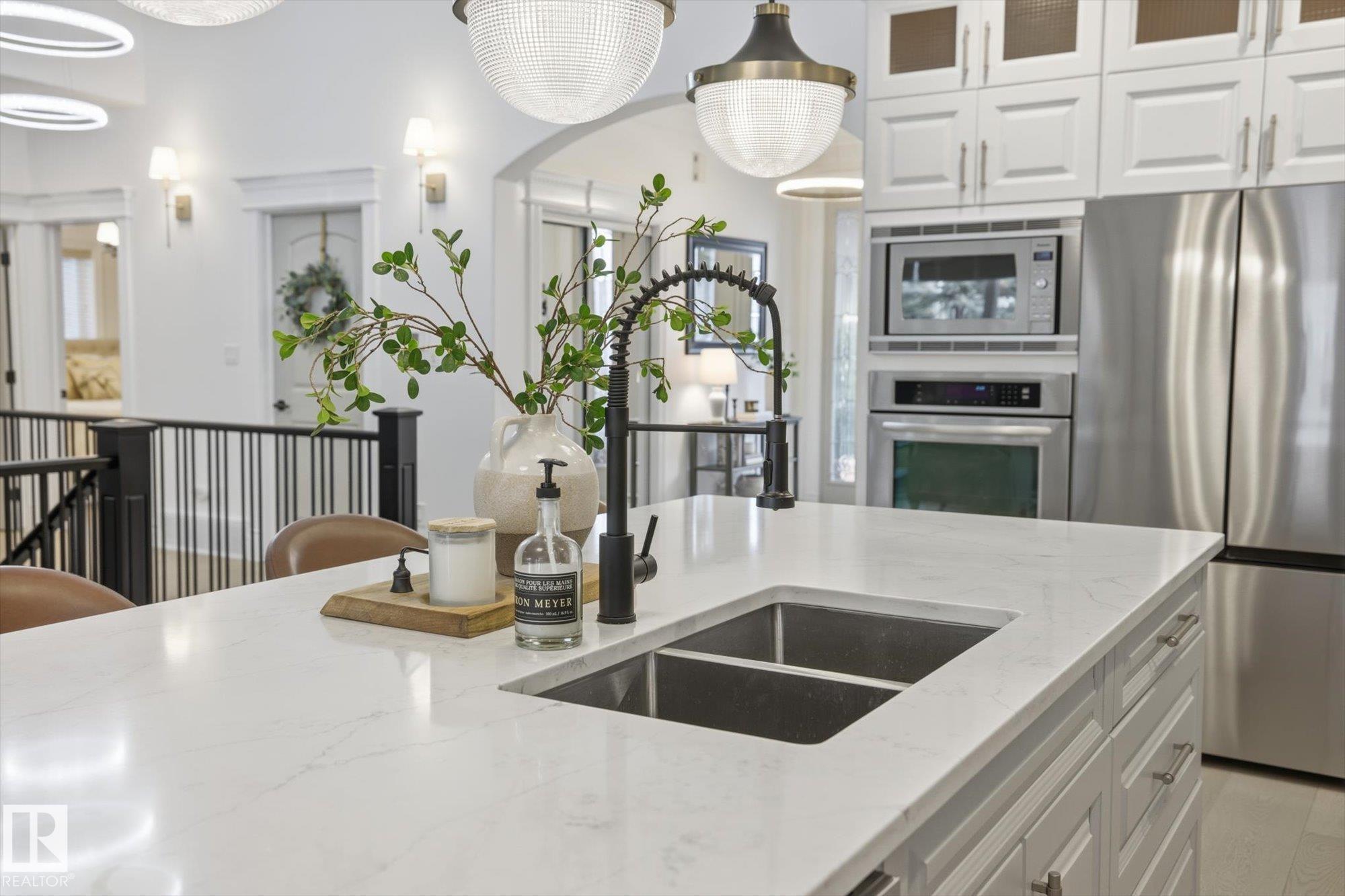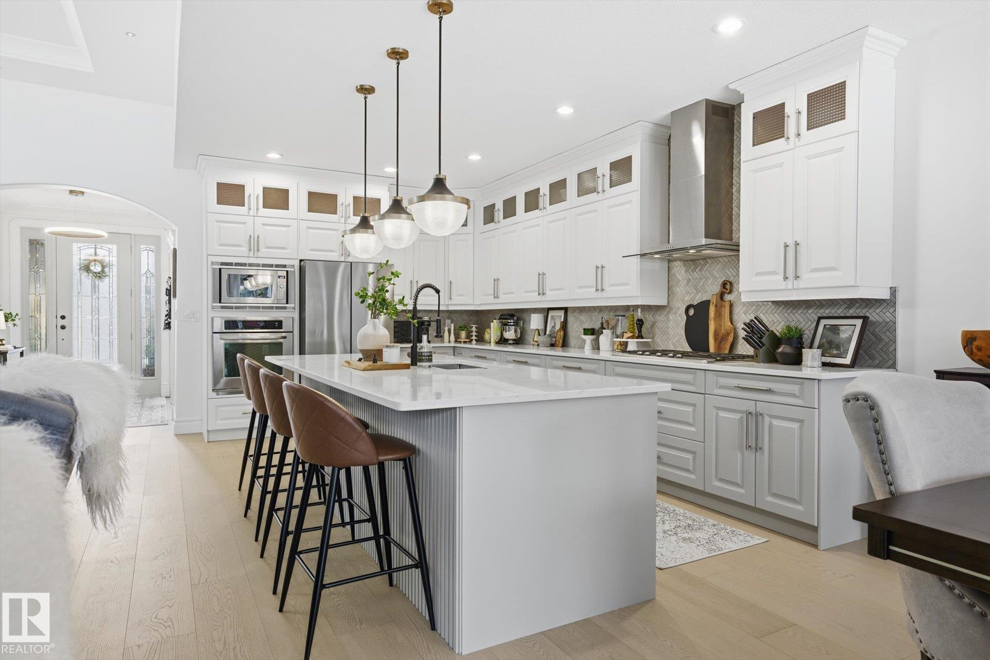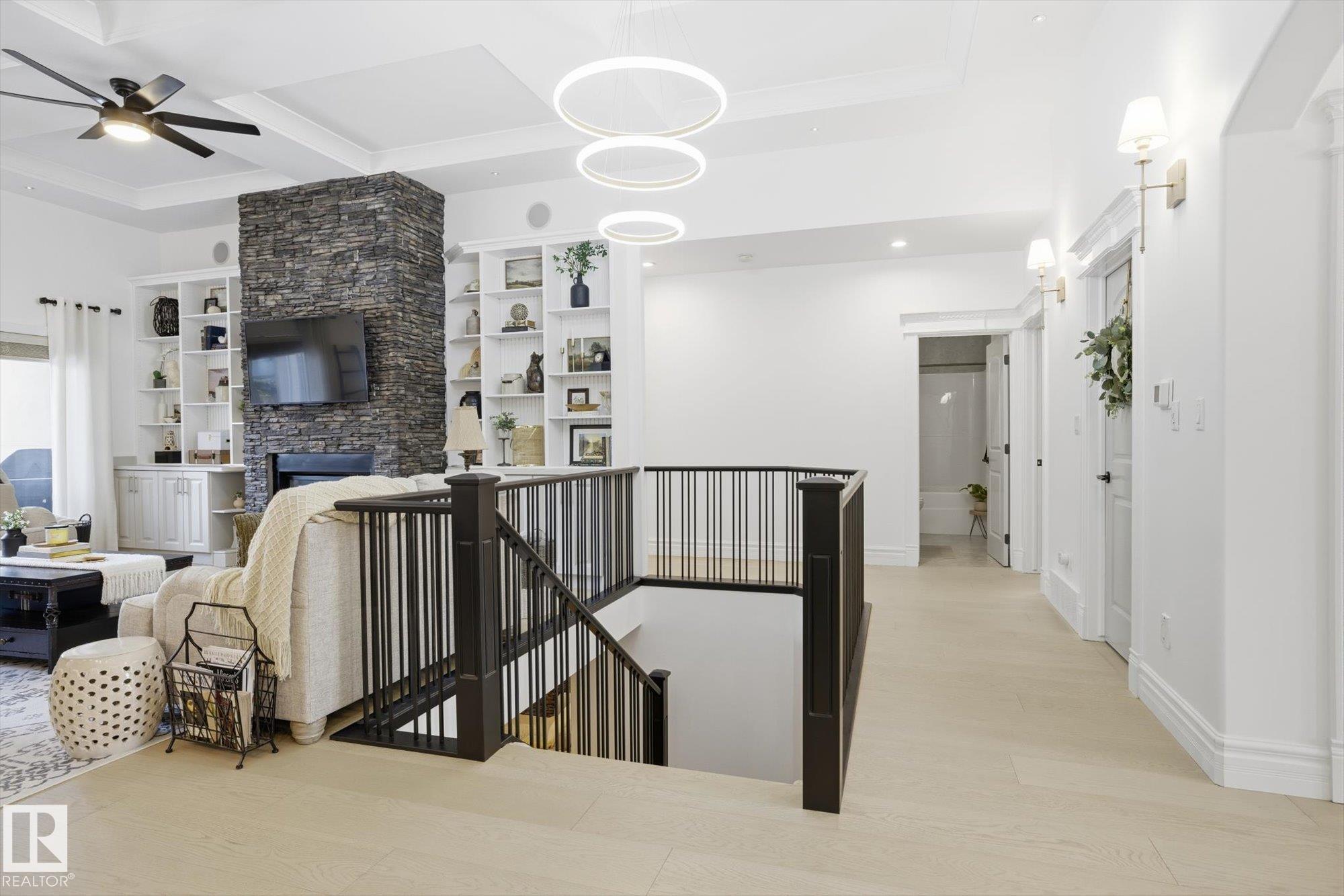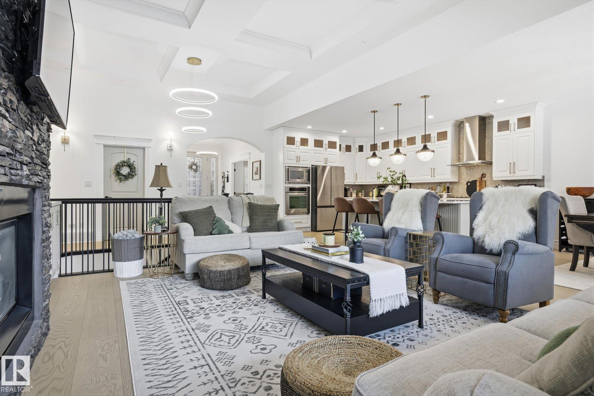 Fully renovated executive bungalow offering nearly 3,700 sq ft of finished living space in the exclusive gated community of Ravines of Richford. The open-concept main floor features 11? coffered ceilings, stacked-stone NG FP, custom built-ins, & new 9? white oak hardwood flooring throughout. Recent updates include fresh paint, lighting, tilework, refinished cabinetry, & upgraded appliances, creating a bright, cohesive aesthetic. The kitchen offers granite countertops, a large island, & flows into the dining area overlooking a fully fenced, landscaped pie-shaped lot. The primary suite is generously sized w/ a 5-piece ensuite & walk-in closet. A den with French doors, second bedroom, full bath, & spacious laundry/mudroom complete the main level. The finished lower level includes a large games room, wet bar w/ beverage cooler, media/theatre room w/ surround sound, 2 bedrooms, full bath, & ample storage. 2025 high-efficiency furnace, humidifier, & water-conditioner plus it comes w/ AC & double att. garage!