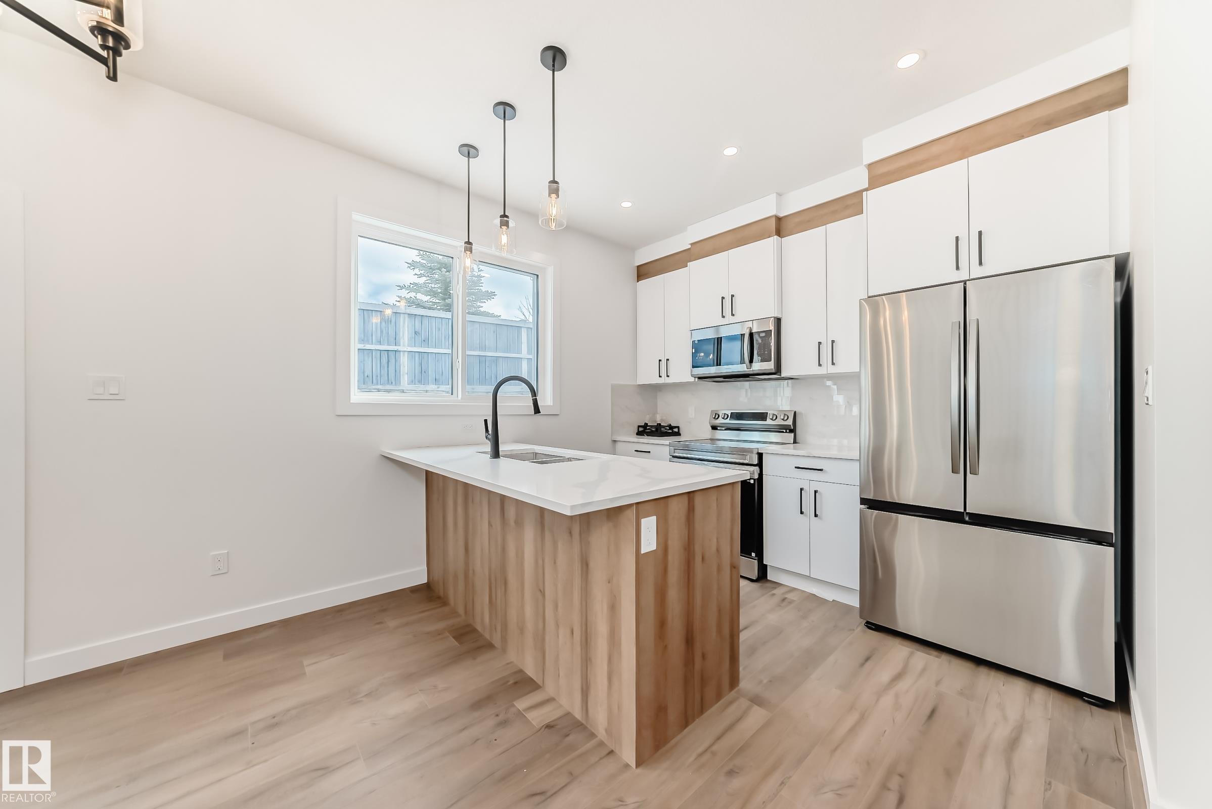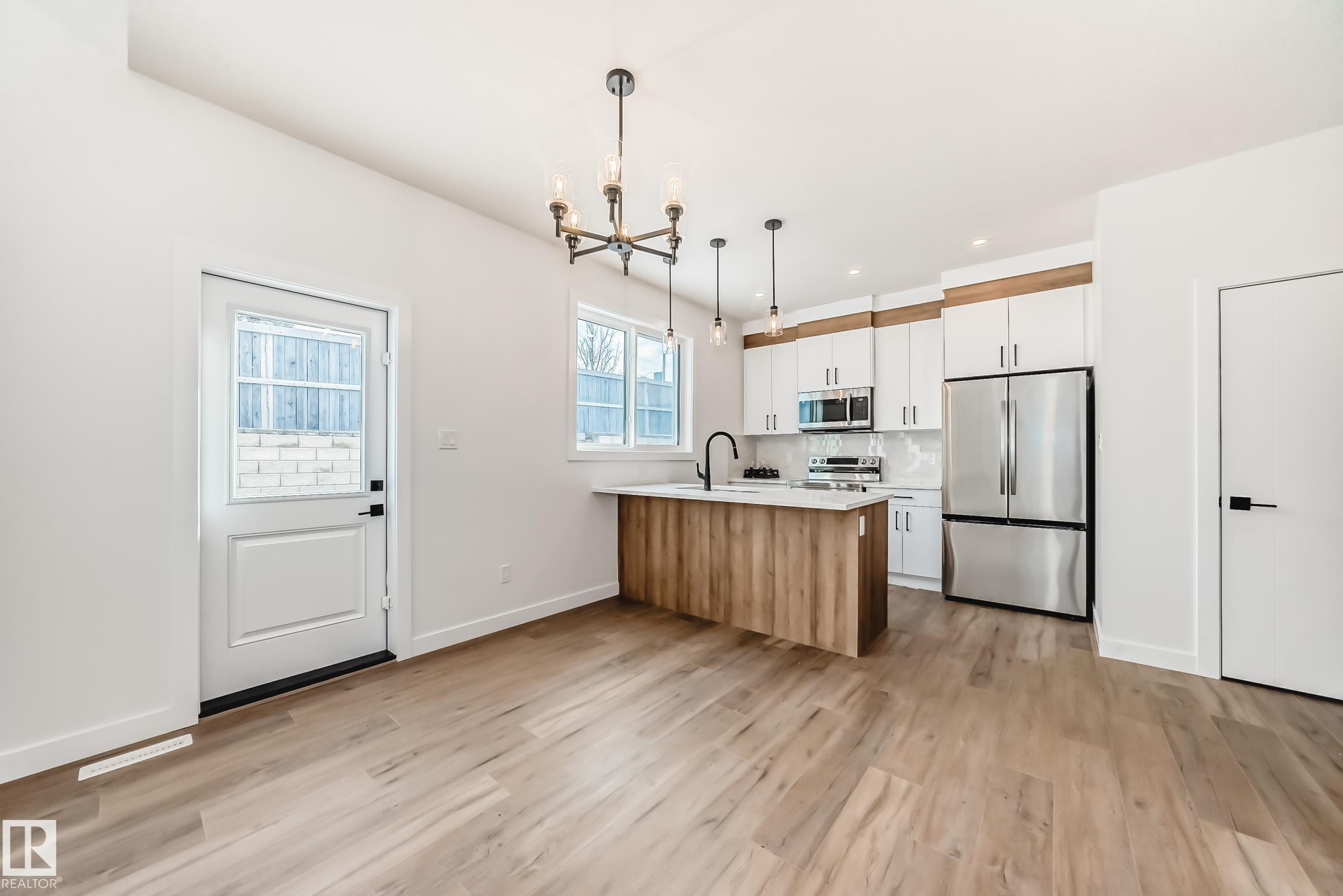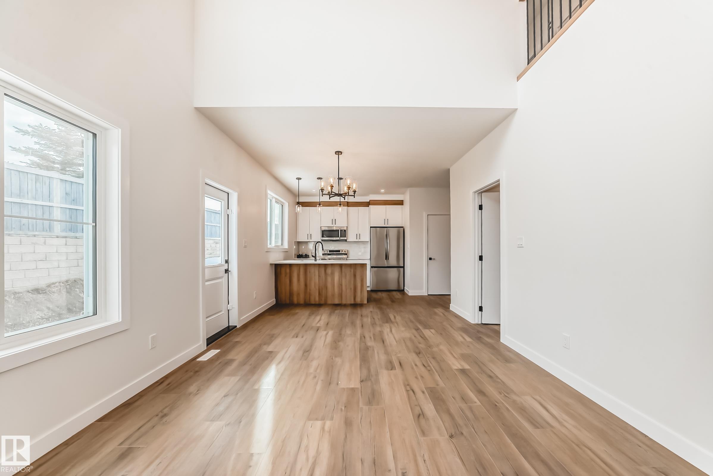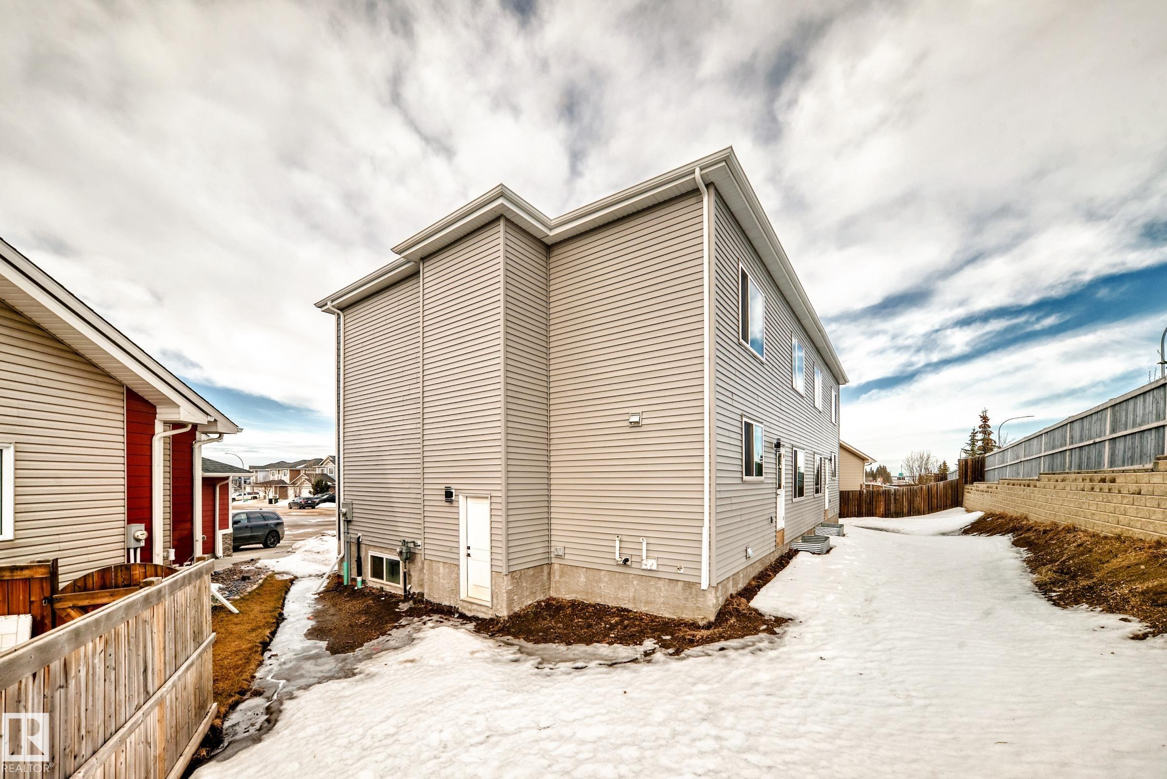 Welcome to this beautifully upgraded half duplex located on a rare large pie-shaped lot in the heart of Hilldowns. Offering over 1,730 sq. ft. of modern, functional living space, this home features an impressive open-to-below living room, creating a bright and airy first impression. The main floor showcases a stylish kitchen with center island, spacious dining area, and a convenient mudroom with direct access to the double attached garage. A main-floor bedroom/den and full bathroom make this layout ideal for guests, a home office, or multi-generational living. Upstairs, you?ll find three generously sized bedrooms, including a spacious primary suite with walk-in closet and private ensuite, along with a bonus room and upper-floor laundry for added convenience. The home also offers a separate side entrance and two large basement windows, providing excellent potential for a future basement suite. Ideally located close to schools, parks, walking trails, shopping, and the transit centre, with quick access to