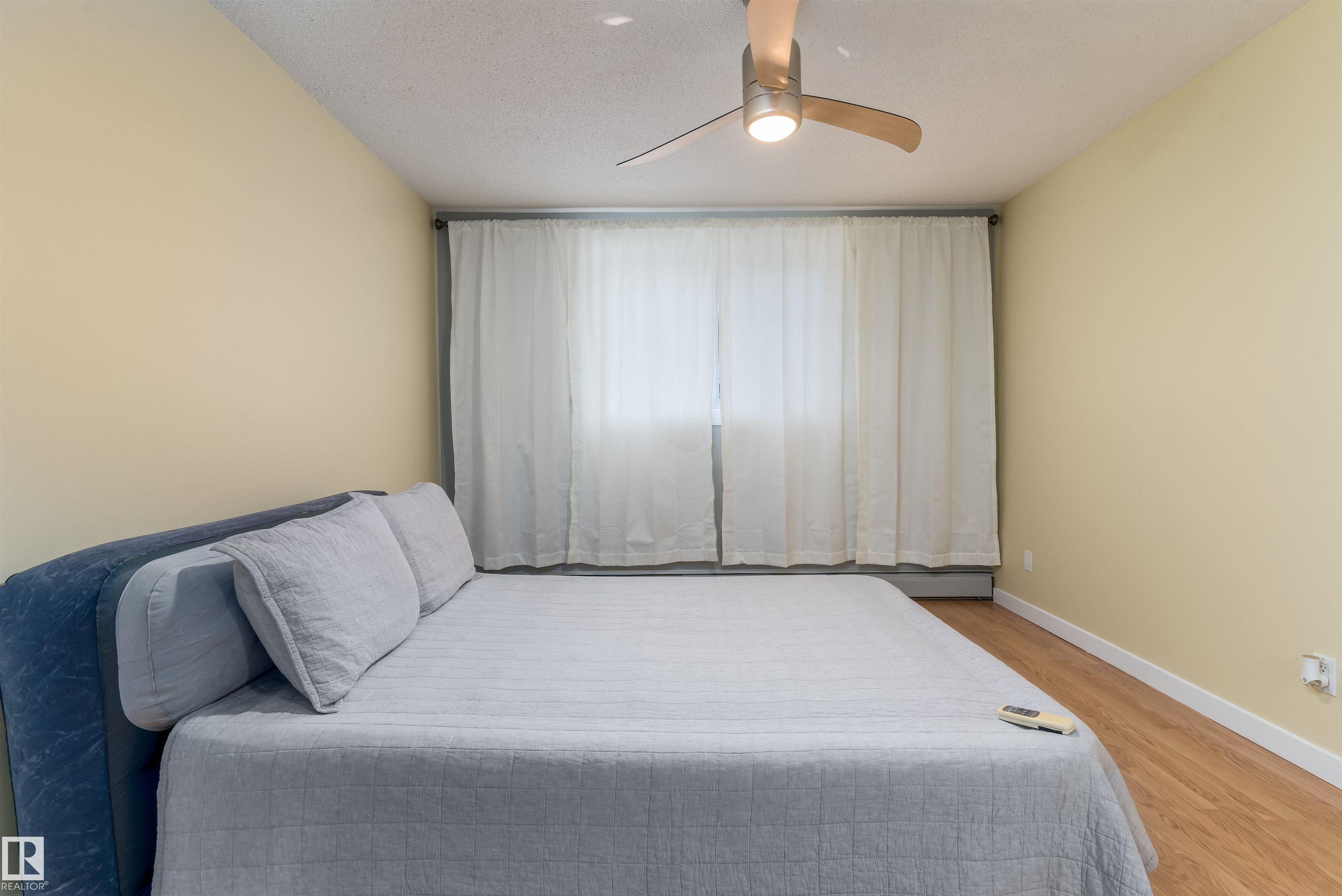 Exciting opportunity for students, investors or first time home buyers. This 924 sq ft 2 bedroom home is situated close to the University of Alberta. It has been renovated for those seeking stylish and convenient living. With many modern upgrades this property has fibre optic, granite countertops in both the kitchen and bathroom, new upgraded faucets, and beautiful cabinetry. There are no carpets for easy maintenance. A separate space adds the convenience of In-suite laundry and storage. The south facing windows flood the space with natural sunlight. The building is well managed and has a strong reserve fund. The location is unbeatable-situated just north of Whyte Avenue in a trendy and walkable neighborhood. It is steps away from shopping, transportation, restaurants, cafes and the River Valley. HEAT, WATER, MAINTENANCE, common area INSURANCE, and PROPERTY MGMT INCLUDED in condo fee. Virtually Staged.