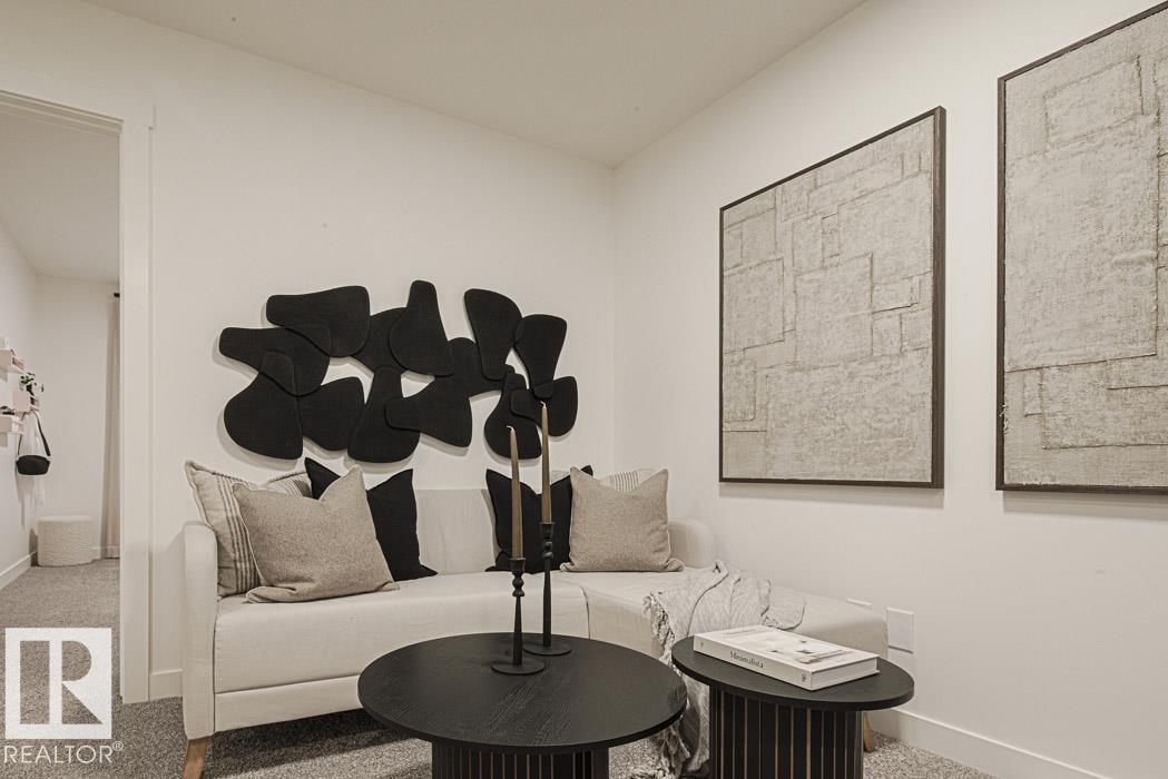 Built by Sterling Homes, this beautifully finished duplex in SouthCreek offers bright, modern living in a peaceful community surrounded by parks, ponds, and walking trails. Triple pane windows and 9? ceilings create a warm, airy feel throughout the open-concept main floor, complemented by luxury vinyl plank flooring. The kitchen features quartz countertops, a central island with seating, upgraded cabinetry, a corner pantry, chimney hood fan, full-height tile backsplash, and a built-in microwave?ideal for everyday living and entertaining. The great room includes an electric fireplace, large rear windows, and a patio door leading to the future deck and backyard. Upstairs, a central bonus room adds flexible space, while the primary suite offers a walk-in closet and private 3-piece ensuite. Two additional bedrooms, a full bath, upper-floor laundry, double attached garage with floor drain, separate side entrance, and basement rough-ins complete this thoughtfully designed home in Stony Plain.