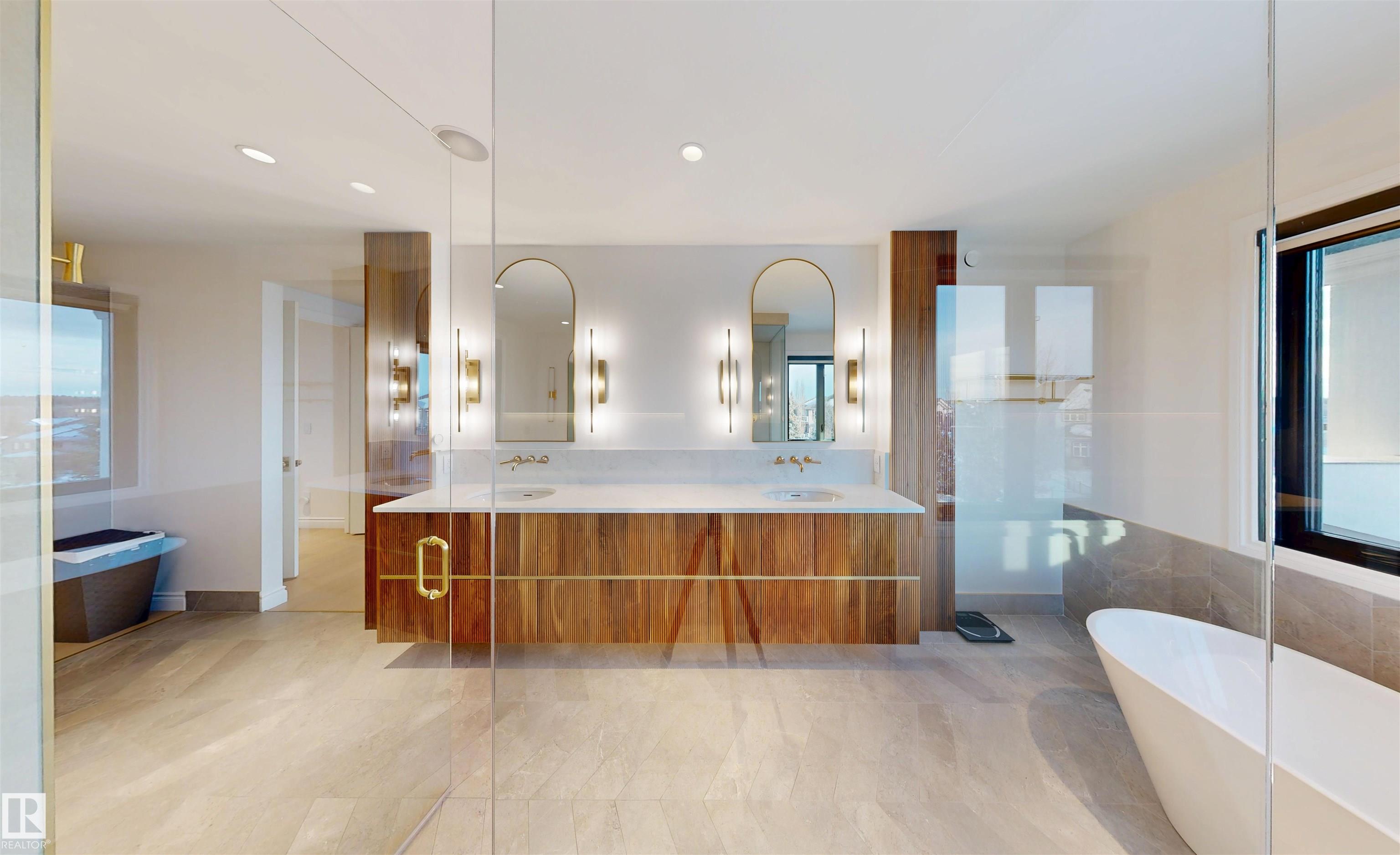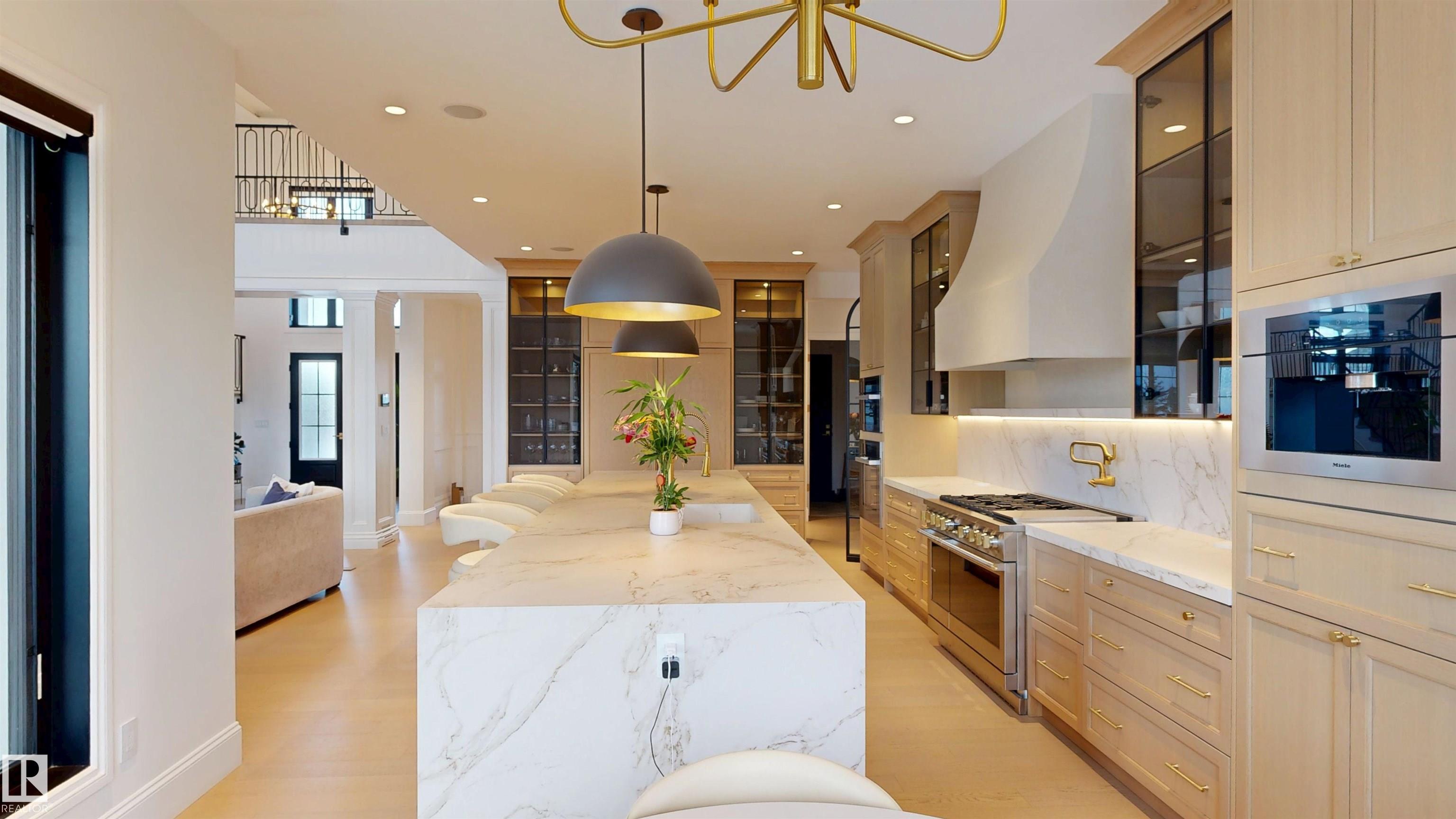 LUXURY MANSION IN RIVERSTONE POINTE, A NEWLY-BUILT 5200+ sq. ft. 2-Storey Walkout! Meticulous Superior Finishes: * Grand Entrance Double-Height Foyer, Statement Chandelier, & Travertine Fireplace * Custom Forge 53 Metal Railing & French Doors * Curated Gallery * 3-Floor Elevator * Chef's & Butlers' Kitchens * Ultra High-end Miele (et al.) Appliances * Italian Island Waterfall Countertop * Soundproof Office + LED Cabinetry * Heated Tiles & Oak-Engineered Floors * Auto Remote Window Blinds * White Marble Vanities * His & Her Walk-in Closets * Huge 2000+ sq. ft. Private Balcony + Rooftop Terrace (Valley & City Views) * Premium Brizo & Riobel Fixtures * Triple-Glazed Floor-Ceiling Windows + Black-Clad Finish * Lower Level: Gym, Studio, Game Area, Theatre, & Cigar / Wine Room * Guest Suite + Nanny Suite * Integrated Audio & Visual Intercom * 2 A/C Units * TELSCO Alarm Security: 360° PTZ & 14 Extra Cameras * 1600+ sq. ft. Heated Garage Space (East & West Wings with 2 EV Chargers) * Large Driveway & 0.75 Acres!