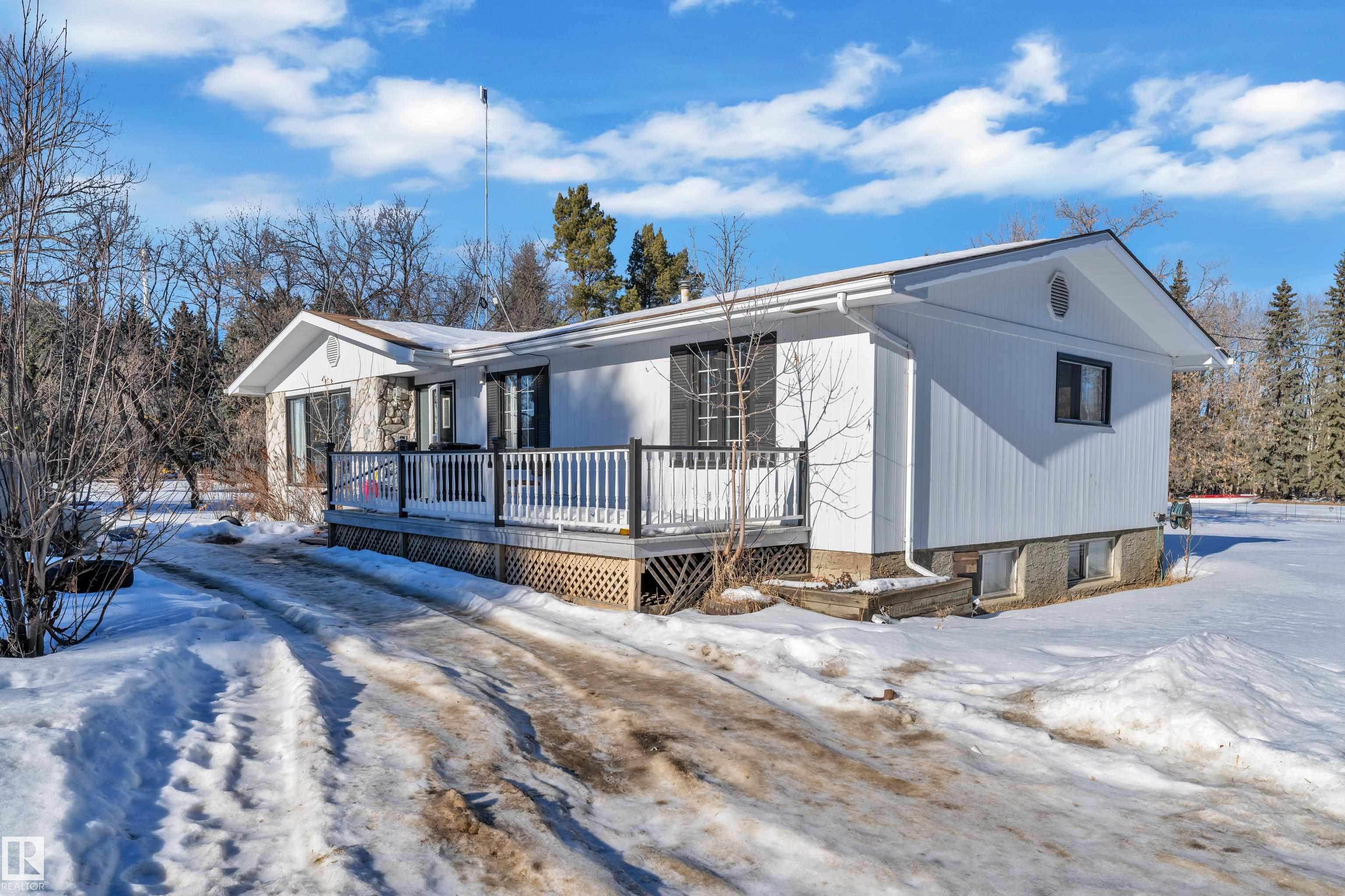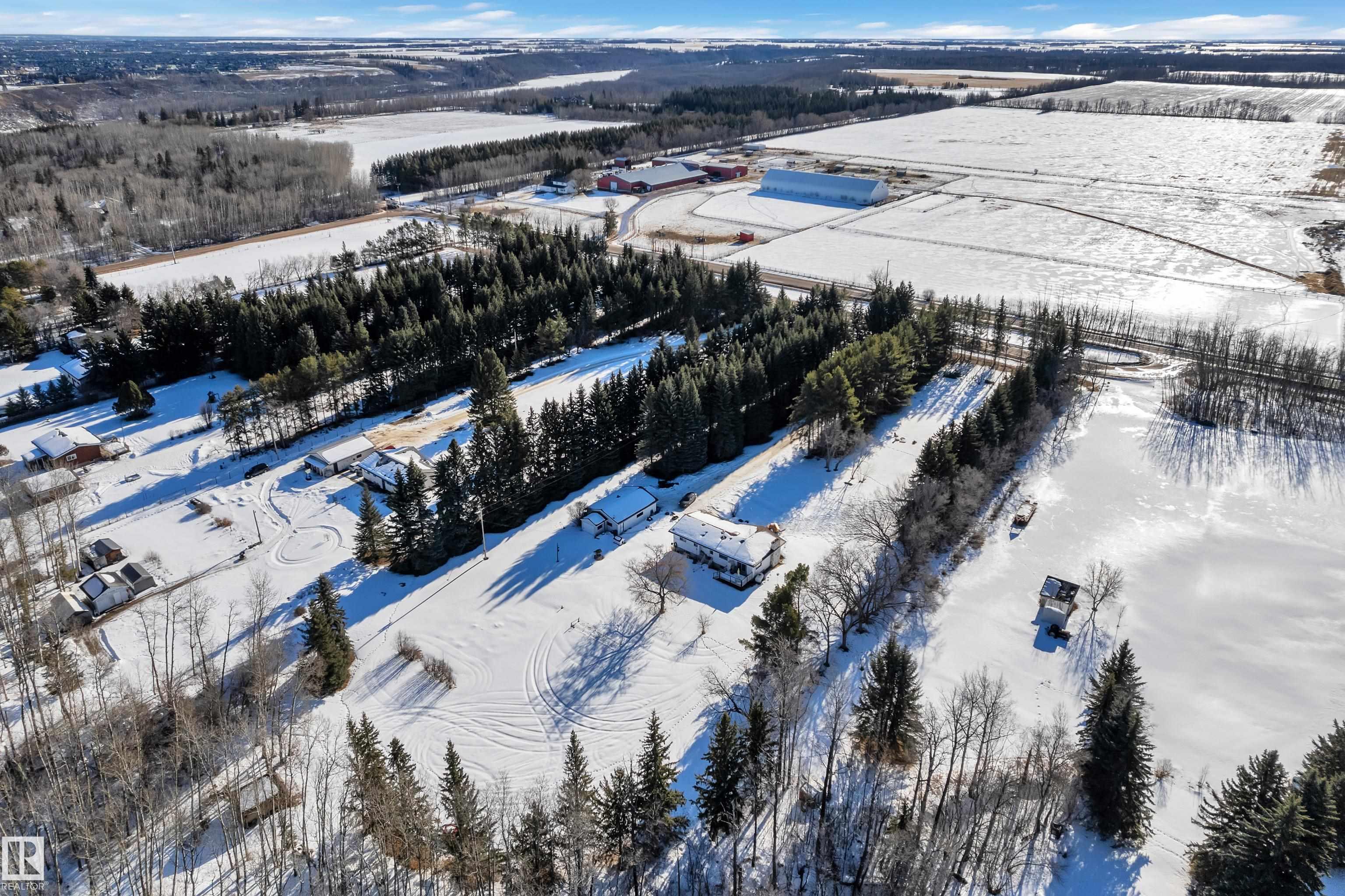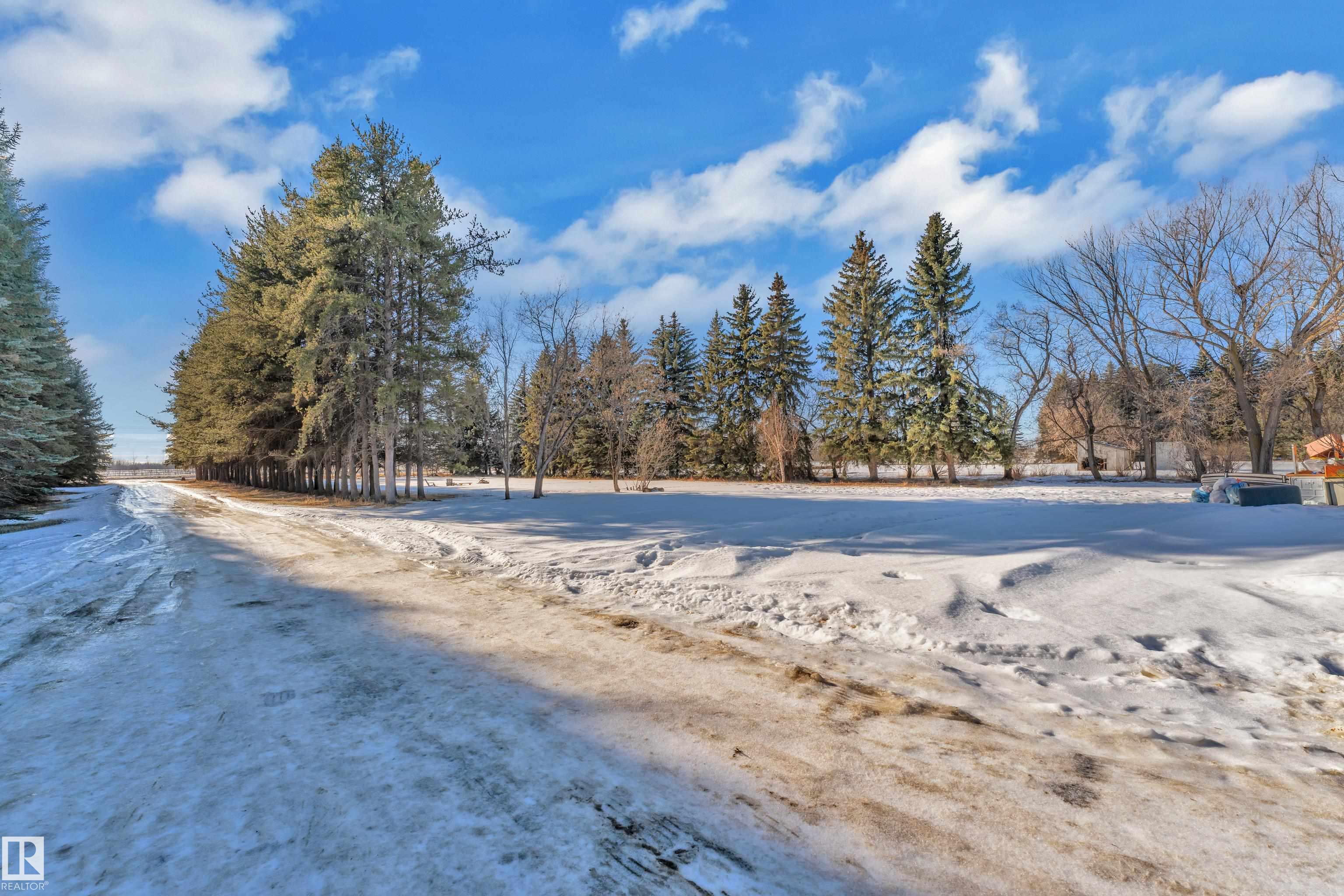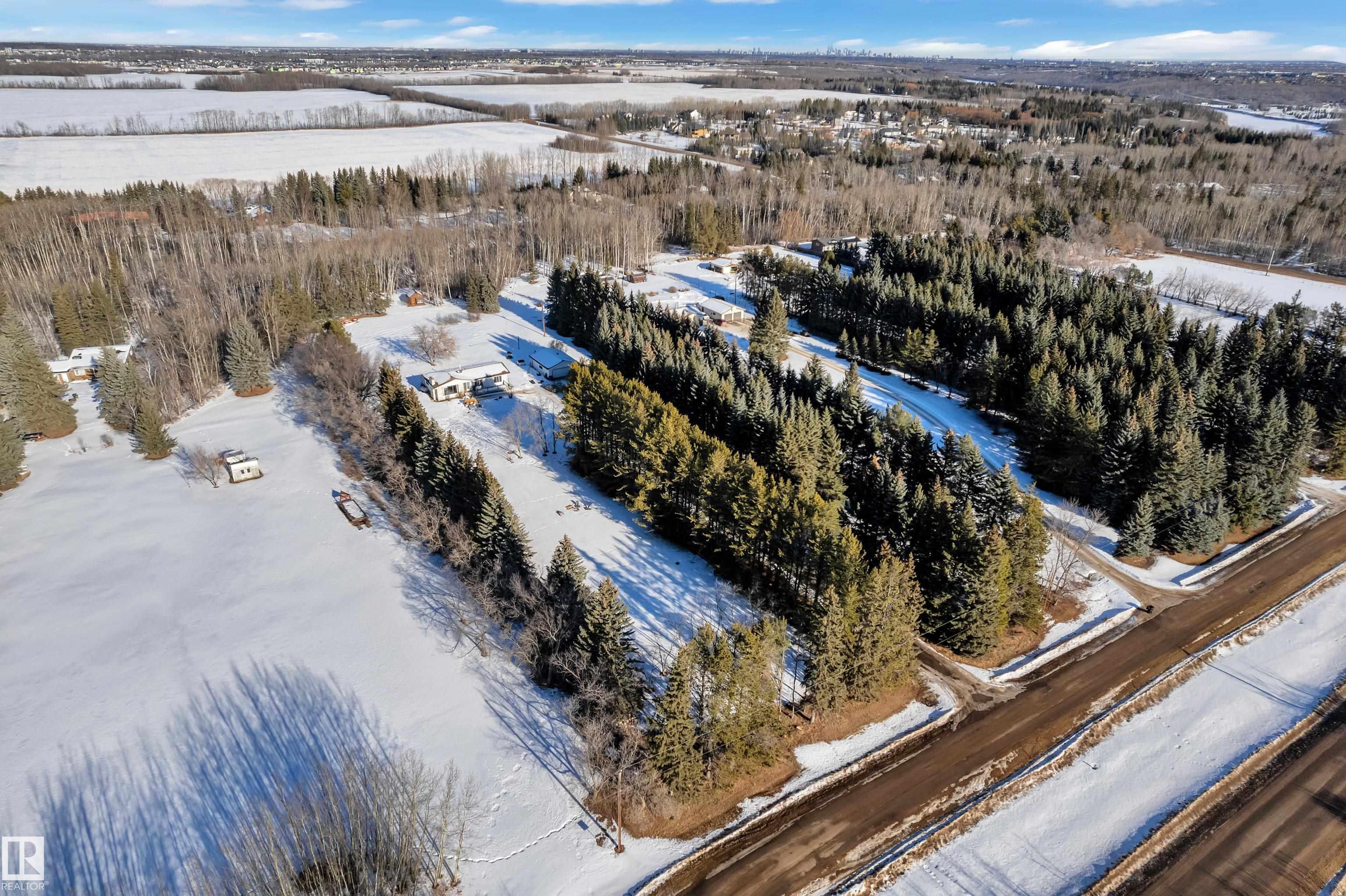Rare opportunity to own a 3.25-acre acreage within Edmonton city limits, backing directly onto a ravine and offering the perfect blend of urban convenience and private, country-style living just minutes from grocery stores, Costco, coffee shops, and Anthony Henday. This spacious bungalow features three bedrooms on the main level, a bright south-facing living room with a wood-burning fireplace, a well-sized kitchen with eating area and access to the north-facing patio, a full 4-piece bathroom, and a 2-piece ensuite. The fully developed lower level offers a large family room with a gas fireplace, an additional bedroom, 2-piece bathroom, oversized laundry room, and ample storage. Enjoy outdoor living with a south-facing front deck and a private rear deck overlooking a beautifully landscaped, park-like yard with direct ravine access. Completing the property is a large 24? x 34? garage with parking for up to three vehicles, offering exceptional space, privacy, and versatility in a truly unique city setting
