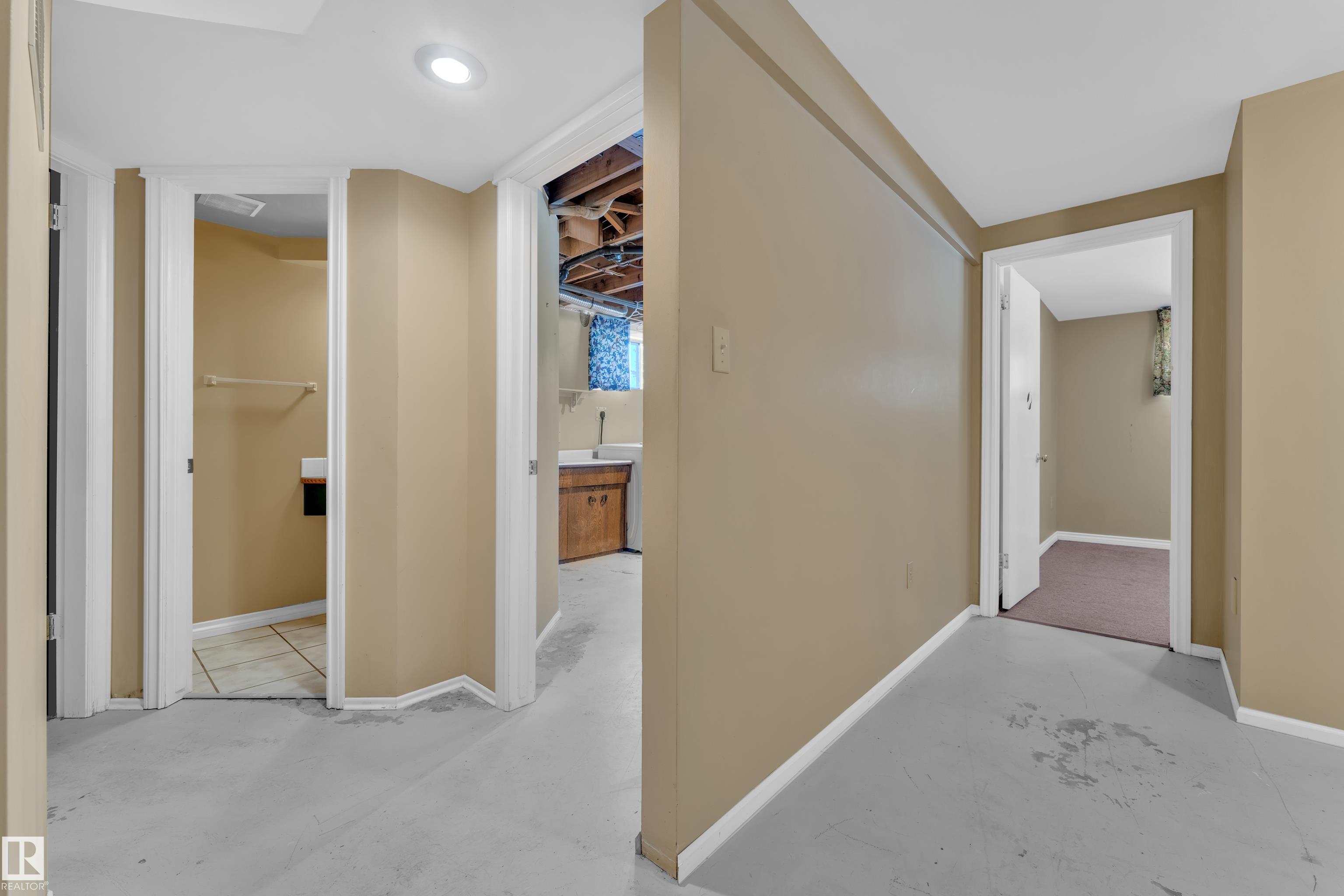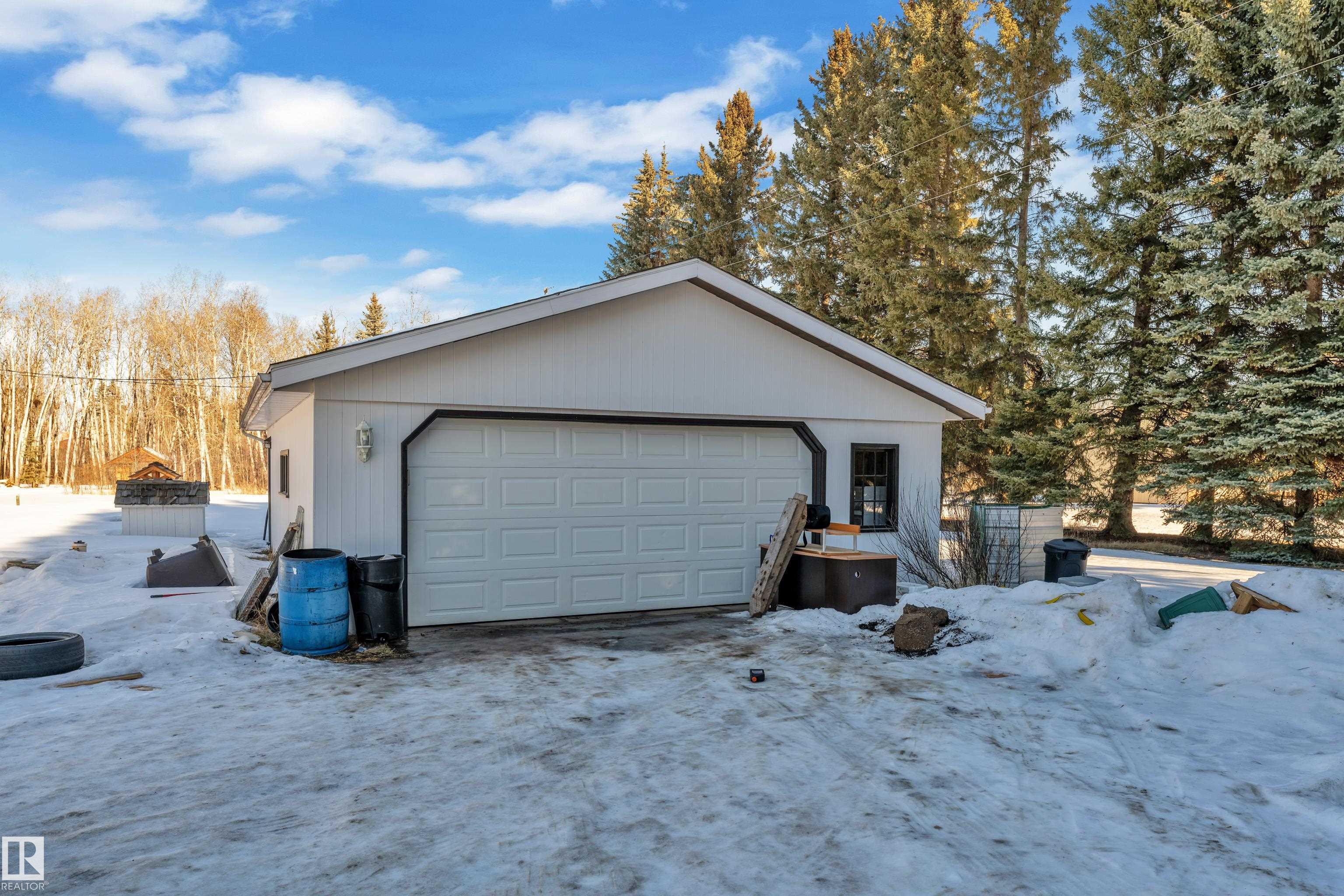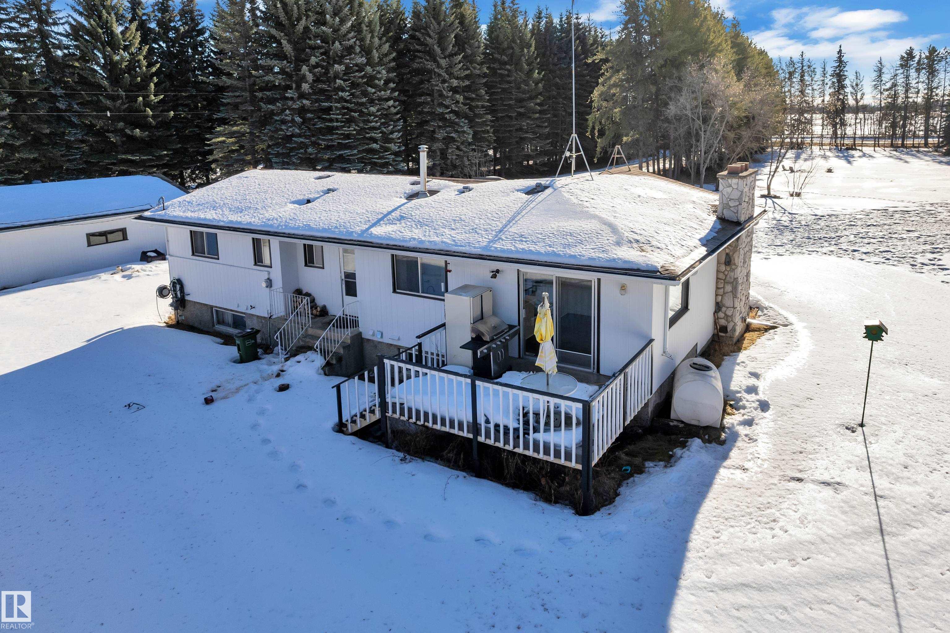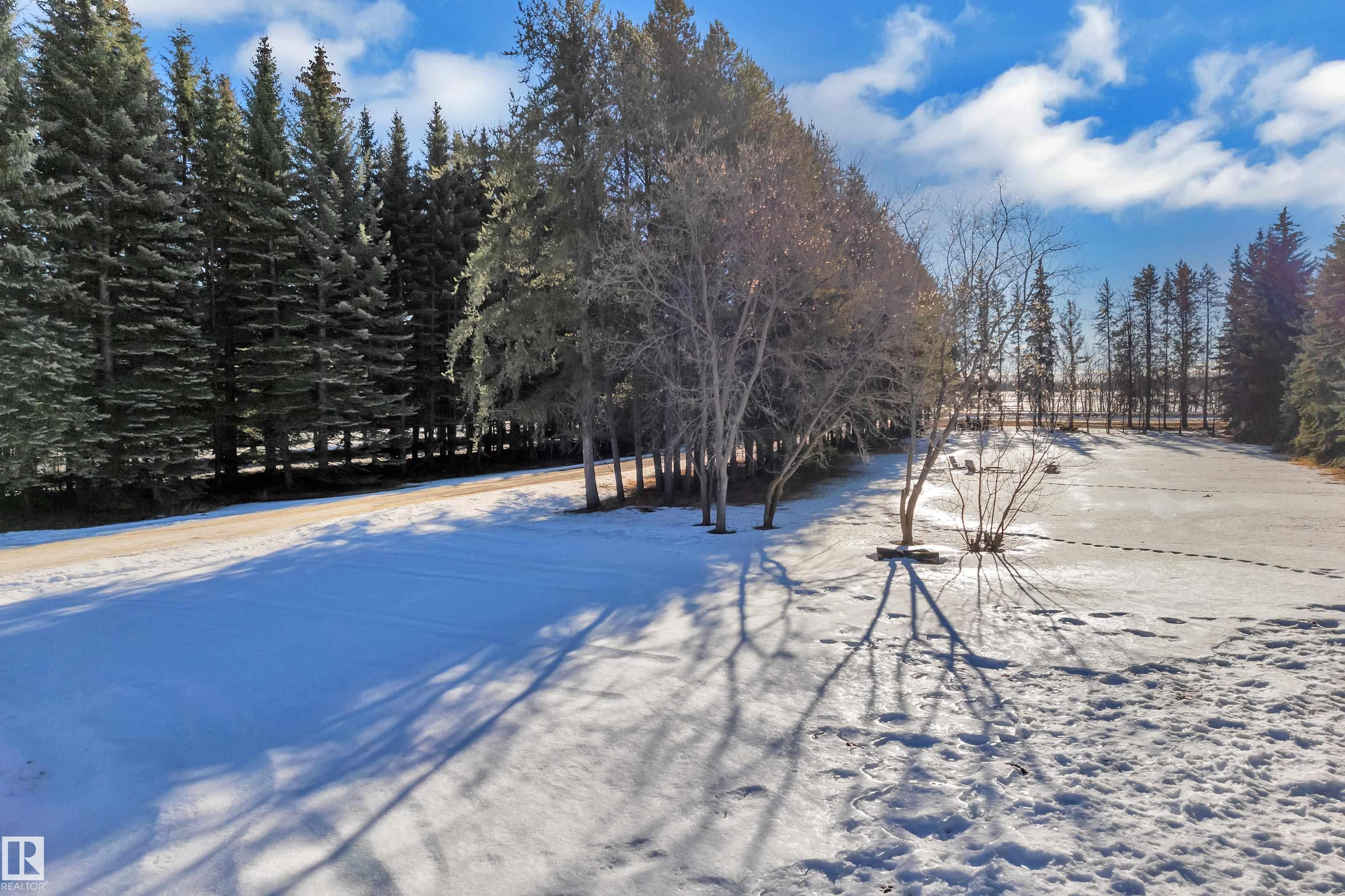 Rare opportunity to own a 3.25-acre acreage within Edmonton city limits, backing directly onto a ravine and offering the perfect blend of urban convenience and private, country-style living just minutes from grocery stores, Costco, coffee shops, and Anthony Henday. This spacious bungalow features three bedrooms on the main level, a bright south-facing living room with a wood-burning fireplace, a well-sized kitchen with eating area and access to the north-facing patio, a full 4-piece bathroom, and a 2-piece ensuite. The fully developed lower level offers a large family room with a gas fireplace, an additional bedroom, 2-piece bathroom, oversized laundry room, and ample storage. Enjoy outdoor living with a south-facing front deck and a private rear deck overlooking a beautifully landscaped, park-like yard with direct ravine access. Completing the property is a large 24? x 34? garage with parking for up to three vehicles, offering exceptional space, privacy, and versatility in a truly unique city setting