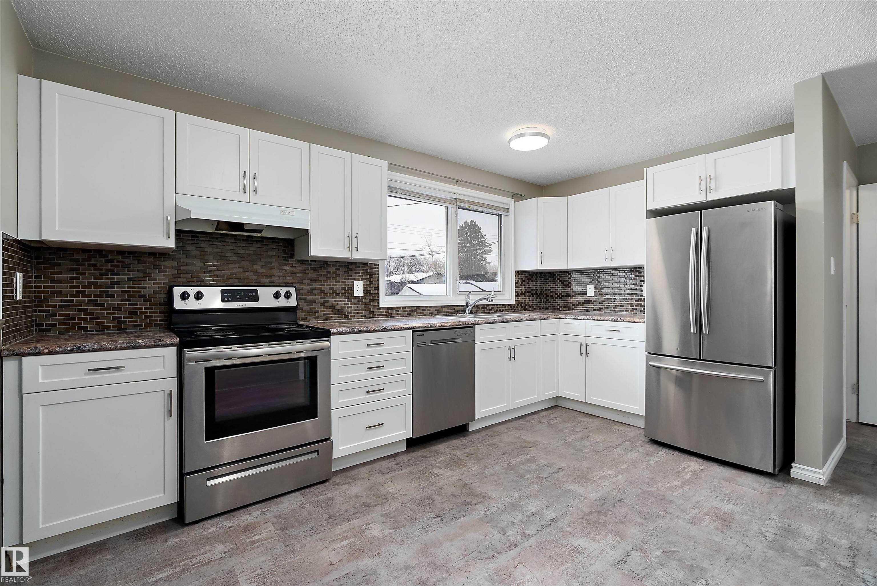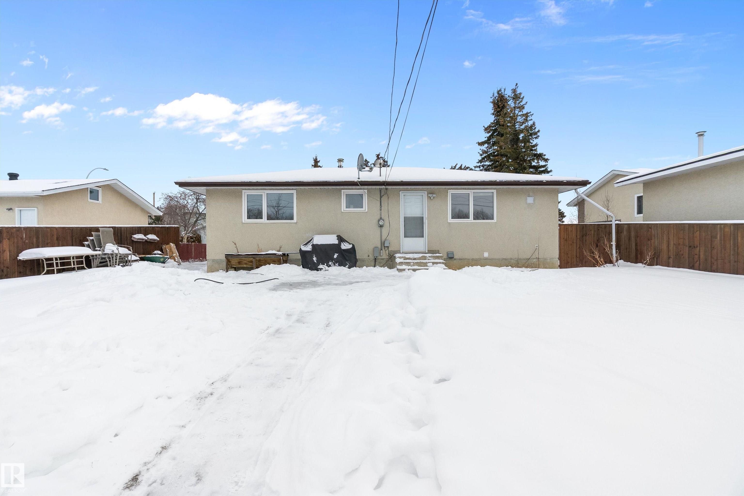 Welcome to this beautifully renovated bungalow in the charming town of Devon - where small-town warmth meets endless outdoor adventure. Located on a quiet, family-friendly street and surrounded by scenic trails throughout town, this bright & spacious home offers comfort, style, and convenience in every corner! Showcasing over 2200sqft of fully finished living space, this bungalow features 4 bedrooms & 3 bathrooms, making it perfect for families, downsizers, or anyone seeking a move-in-ready home. The main floor showcases a fresh white kitchen with stainless steel appliances, modern finishes, new flooring and plenty of natural light. The fully finished basement expands your living options with generous recreation space, a bedroom, bathroom, and ample storage. Outside, enjoy a large backyard with room to build a future garage, complemented by back alley access and newer shingles (2019) for peace of mind. Just a short drive in to Edmonton and quick access to EIA it is the perfect place to call home.