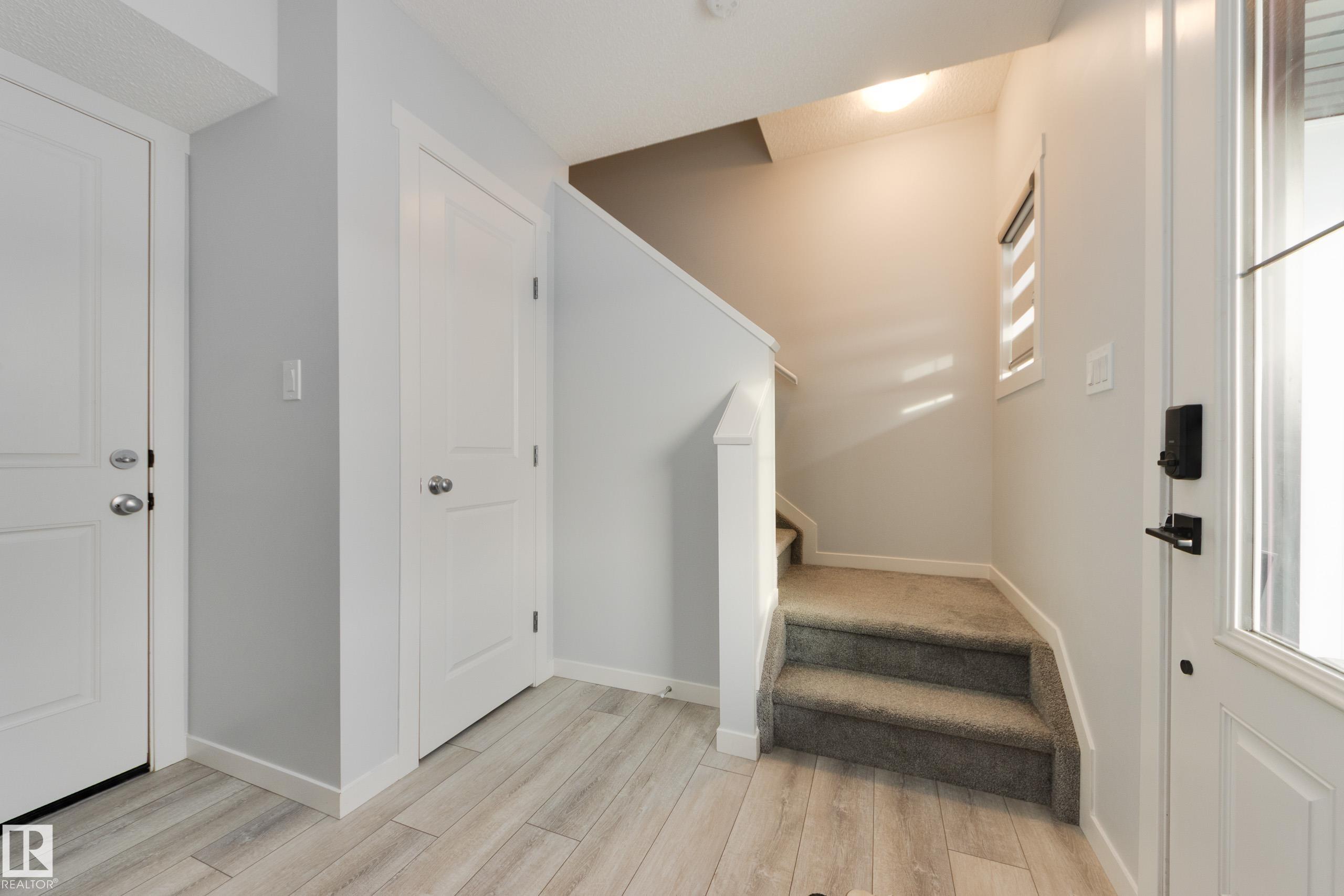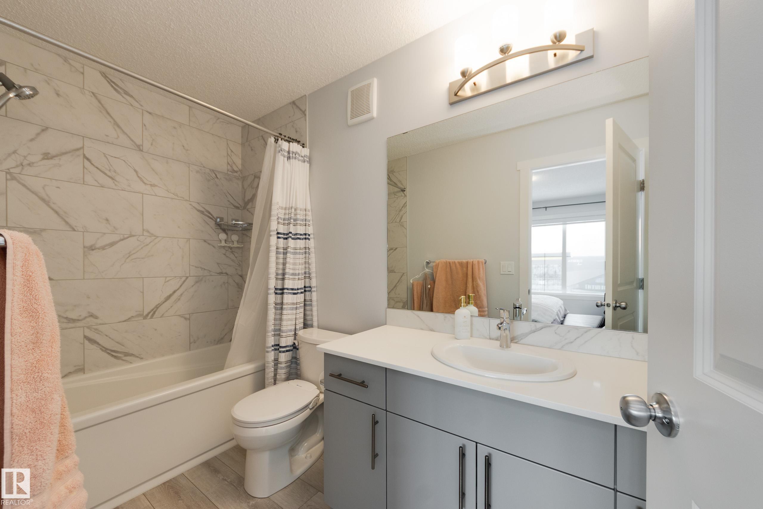 Step into a welcoming ground-level entry of this stylish three-story townhome perfectly located close to shopping & amenities in Secord and right across the street from the the St. Josephine Bakhita K-9 school. The main level offers a perfectly designed kitchen with quartz counter tops & a large island with flush eating bar, plus there are extra cabinets. There is a bright, open living rm with balcony & a dining space with a convenient two-piece bathroom, ideal for everyday living and guests. Upstairs, the well-designed upper level features three comfortable bedrooms. The primary suite includes a walk-in closet and a full four-piece ensuite, while a second four-piece bathroom serves the additional bedrooms. Enjoy the comfort of over 1,300 sq. ft. of thoughtfully planned living space, along with the ease of an attached garage and off street parking pad. A fantastic blend of function and location in a vibrant community PLUS THERE ARE NO CONDO FEES!