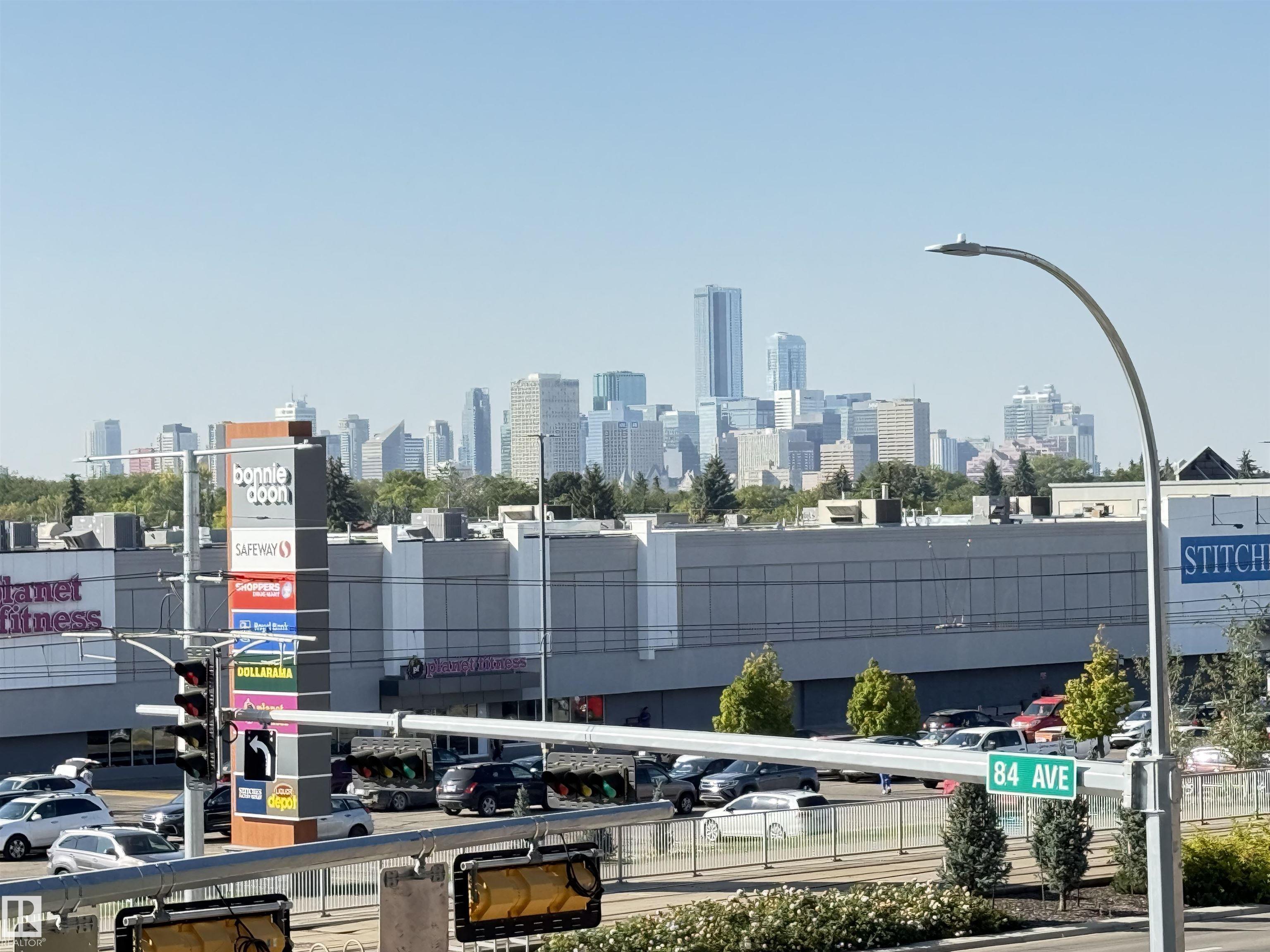 Adult 50+ 2 bedroom, 2 bathroom unit with a city view. Nice open layout. Living room with gas fireplace, vinyl plank floors and sliding doors opening to a large balcony. Primary bedroom has 4 piece ensuite. Insuite laundry, social room, and handicap accessible. Front entry is monitored with a security surveillance camera. Heated underground parking with extra storage and car wash. Conveniently located across from Bonnie Doon Mall and bowling lanes. Close to bus stop, LRT, Idylwylde Public Library and Bonnie Doon indoor swimming pool. GREAT VALUE!
