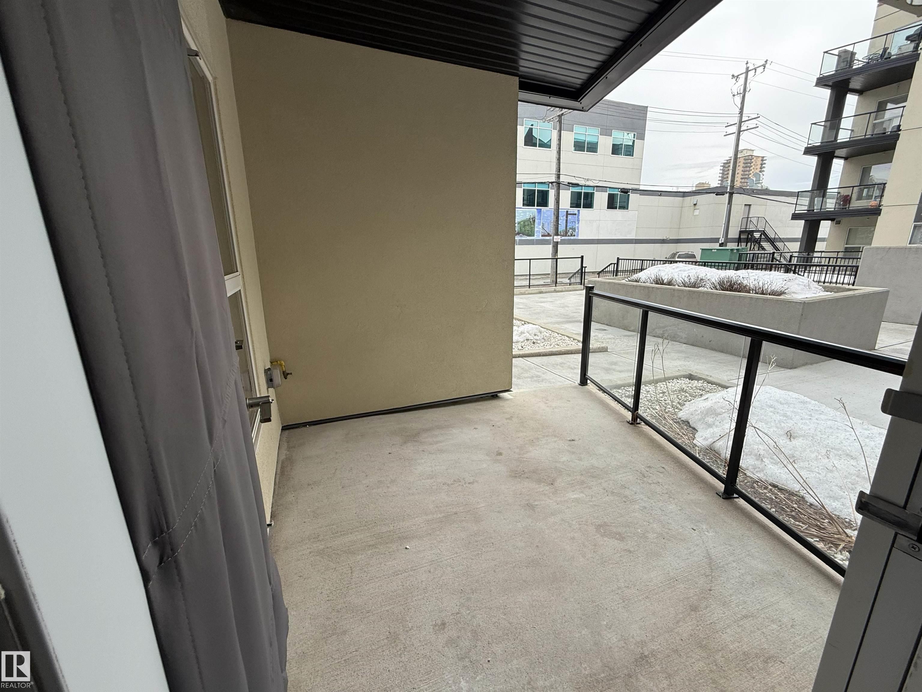 PRIME LOCATION! Welcome to this stylish main floor 1 bedroom condo, perfectly situated just steps from Edmonton?s lively Brewery District and the trendy shops and cafés along 124 Street. Bright and inviting, the open-concept layout features a modern chef inspired island kitchen with stainless steel appliances, rich hardwood flooring, cozy bedroom carpet, a 4 piece bathroom with in suite laundry. Enjoy effortless indoor outdoor living with your walk-out patio, ideal for BBQs, relaxing and entertaining. Stay comfortable year-round with air conditioning on those warm summer days. This pet friendly well managed building offers a shared rooftop patio deck and a titled heated underground parking stall. Just minutes from Downtown, MacEwan University, dog parks and walking distance to the future Valley Line LRT, this is urban living at its finest.