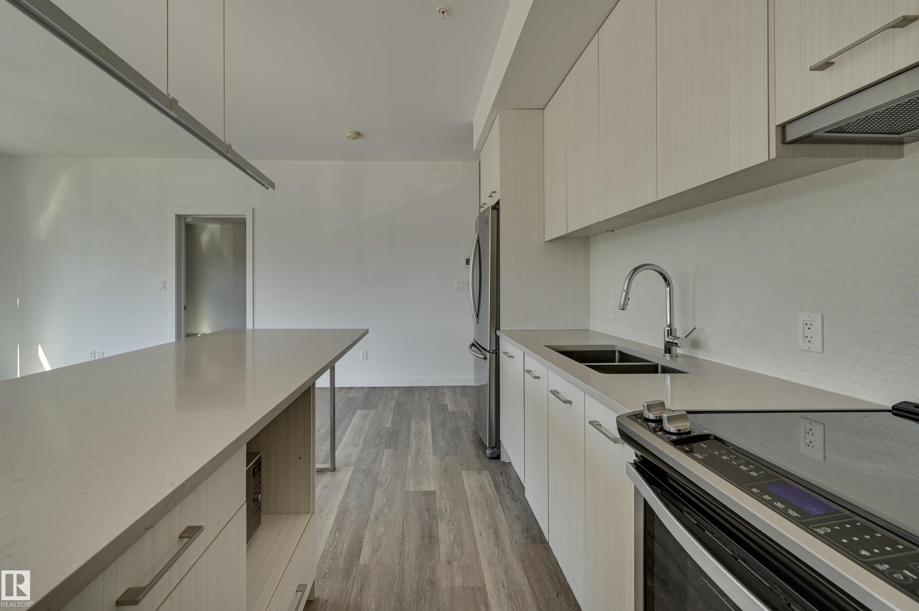 The LAST SW CORNER developer unit available now! Steps away from Whyte Ave and a short walk to the University of Alberta, William Off Whyte is a trendy boutique building in one of Edmonton?s most desirable communities. Don?t miss your chance for a superior unit on the SW corner. This unit has so much natural light coming from the many windows and a large SW deck with views towards 109 St and the UofA campus. Features include 9' ceilings, quartz countertops, upgraded lighting, luxury vinyl plank flooring, stainless appliances, titled underground parking and ample in-suite storage. One of the most desirable floorplans available with open concept living area for great entertaining and California split bedrooms allowing for privacy. Reasonable condo fees make this building a good investment for first time buyers or investors. Don't miss your chance to own the last SW corner unit!