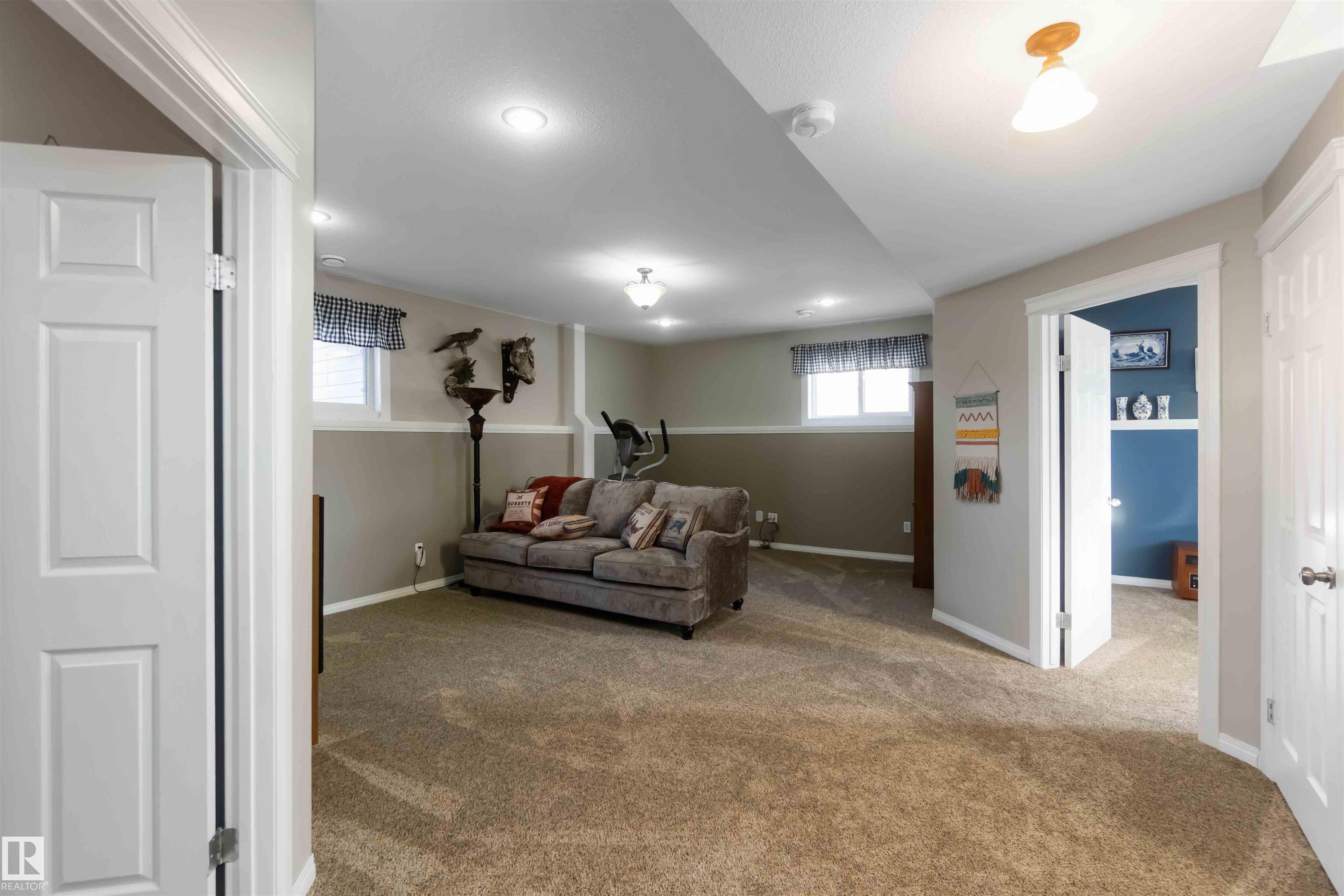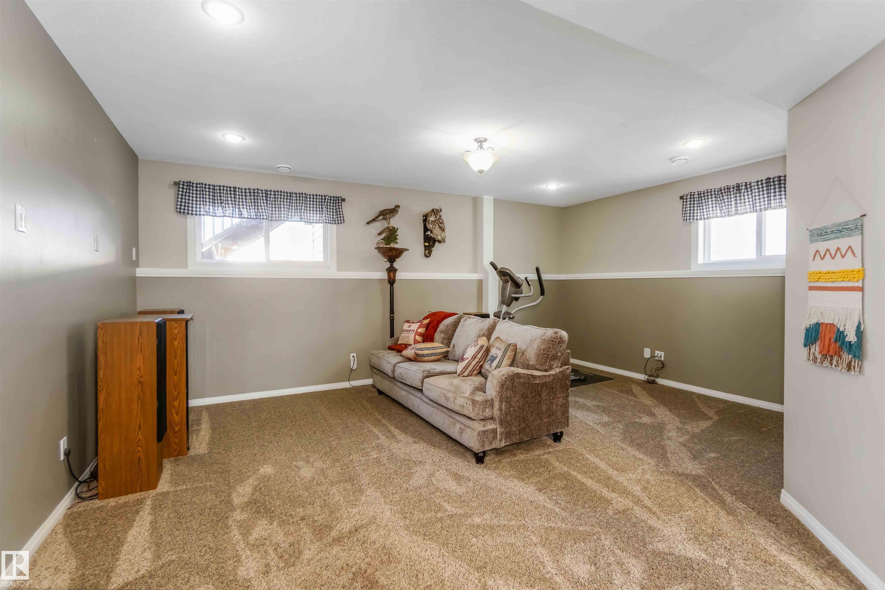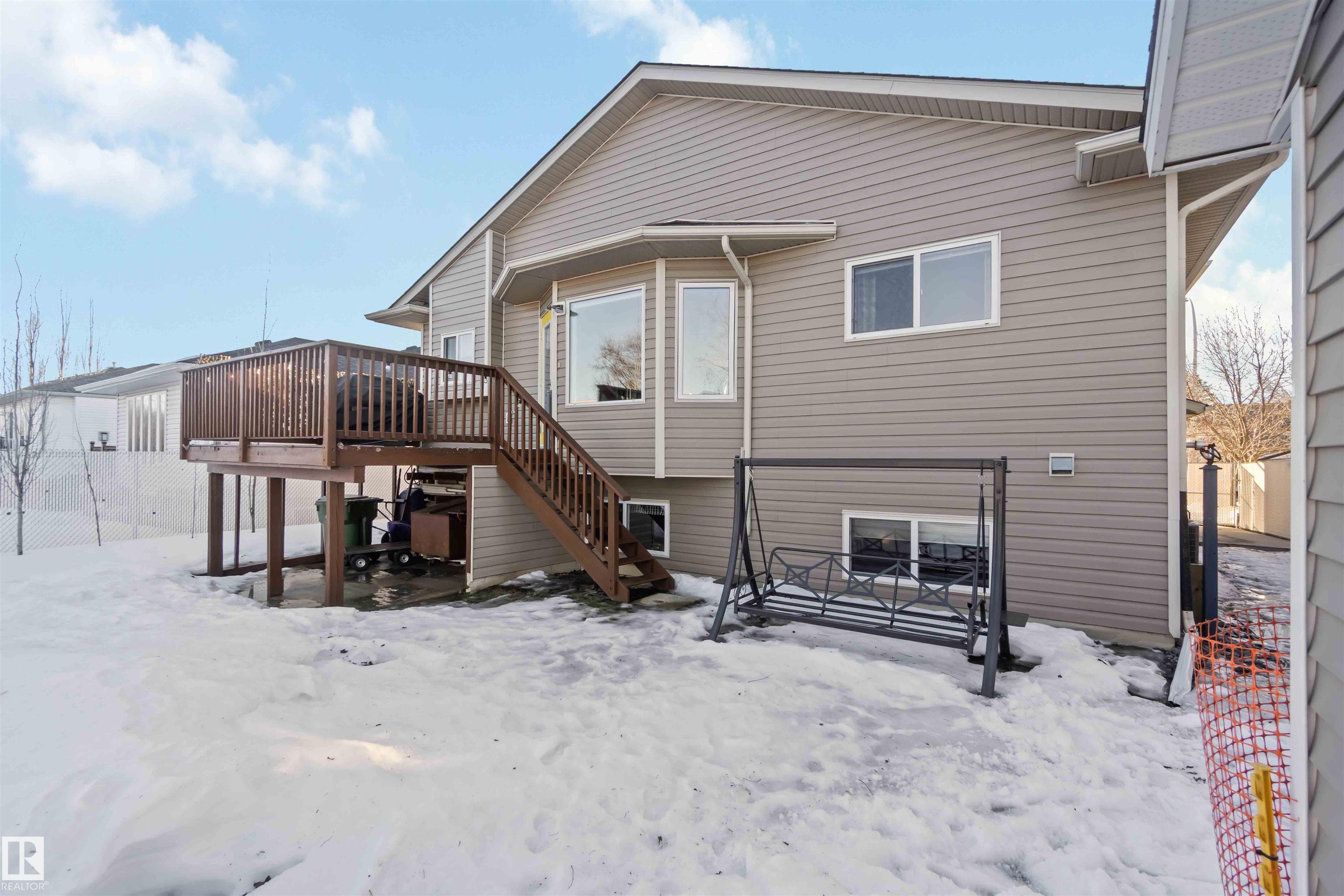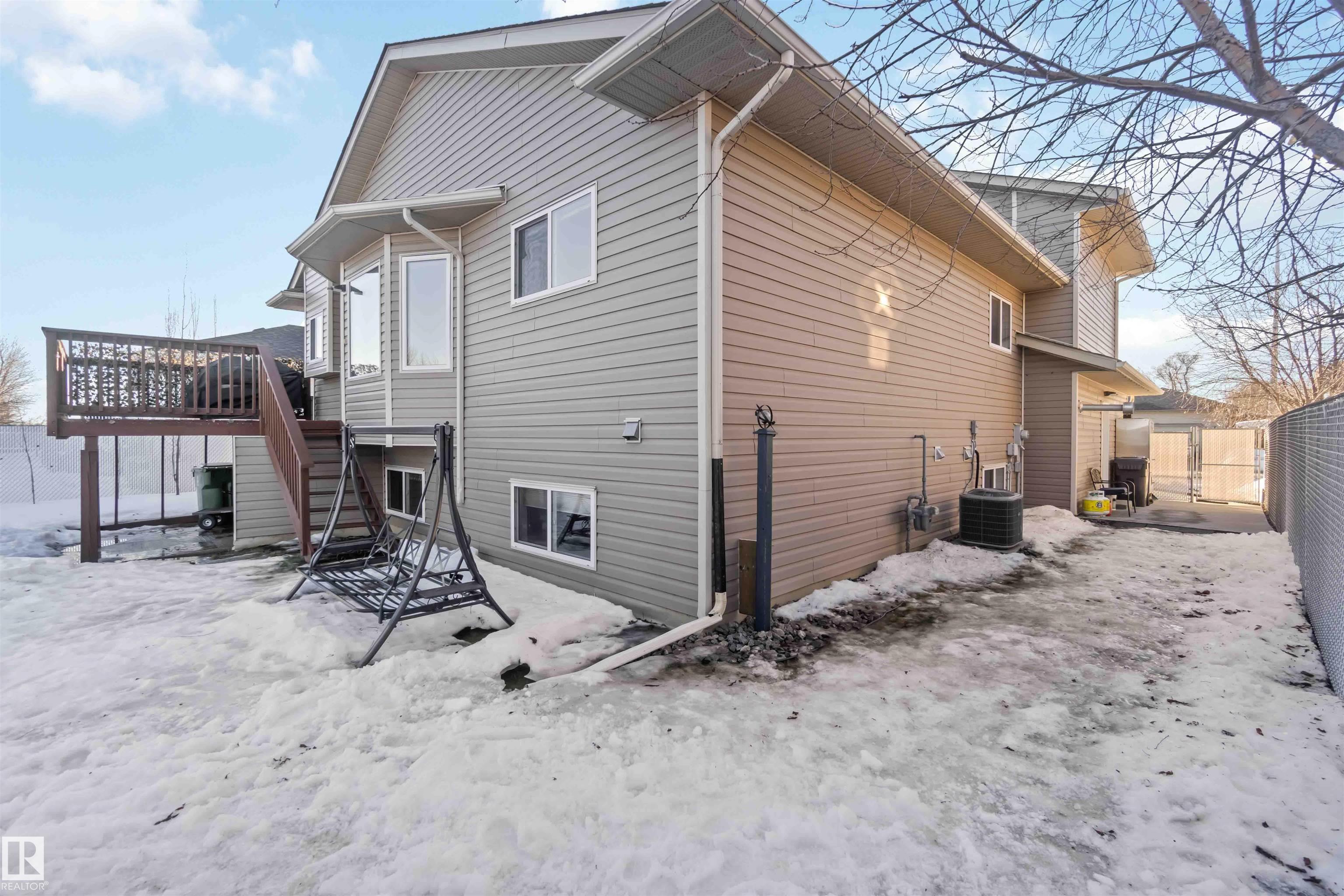 Fully developed bi-level with no rear neighbors. This home currently offers 4 bedrooms, with the flexibility to easily convert back to 5 bedrooms by relocating the laundry to the basement. The main floor features a bright living room with a corner gas fireplace, a dining area, and a kitchen with great views and direct access to the deck. Also on the main level are a laundry room, a 4-piece bathroom, and one bedroom. The primary suite is located above the garage and includes a walk-in closet and a spacious 5-piece ensuite with a jetted tub and standalone shower. The fully finished basement offers two additional bedrooms, a large recreation room, a 3-piece bathroom, a generous utility room, and plenty of storage space. The heated attached garage is fully finished with durable industrial vinyl plank flooring and equipped with water taps. Recent upgrades include central air conditioning, select windows, and some appliances.