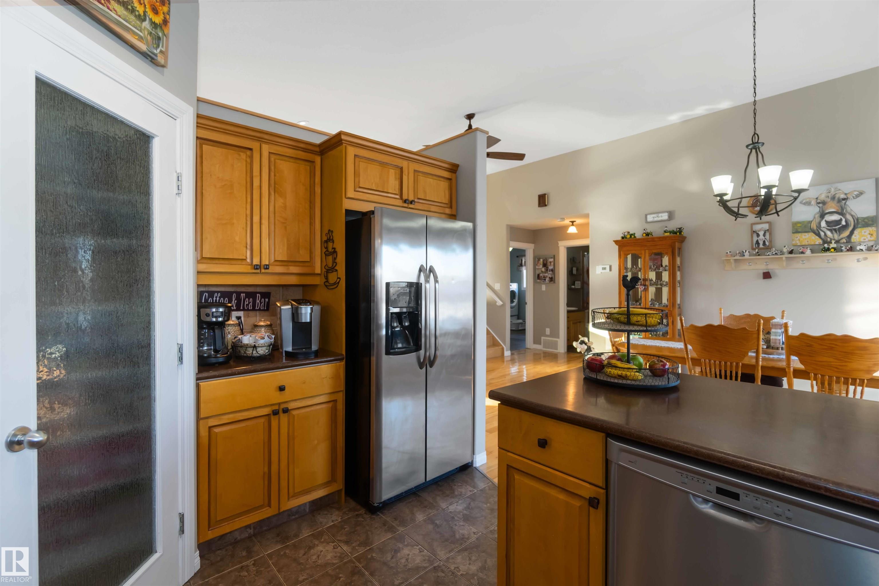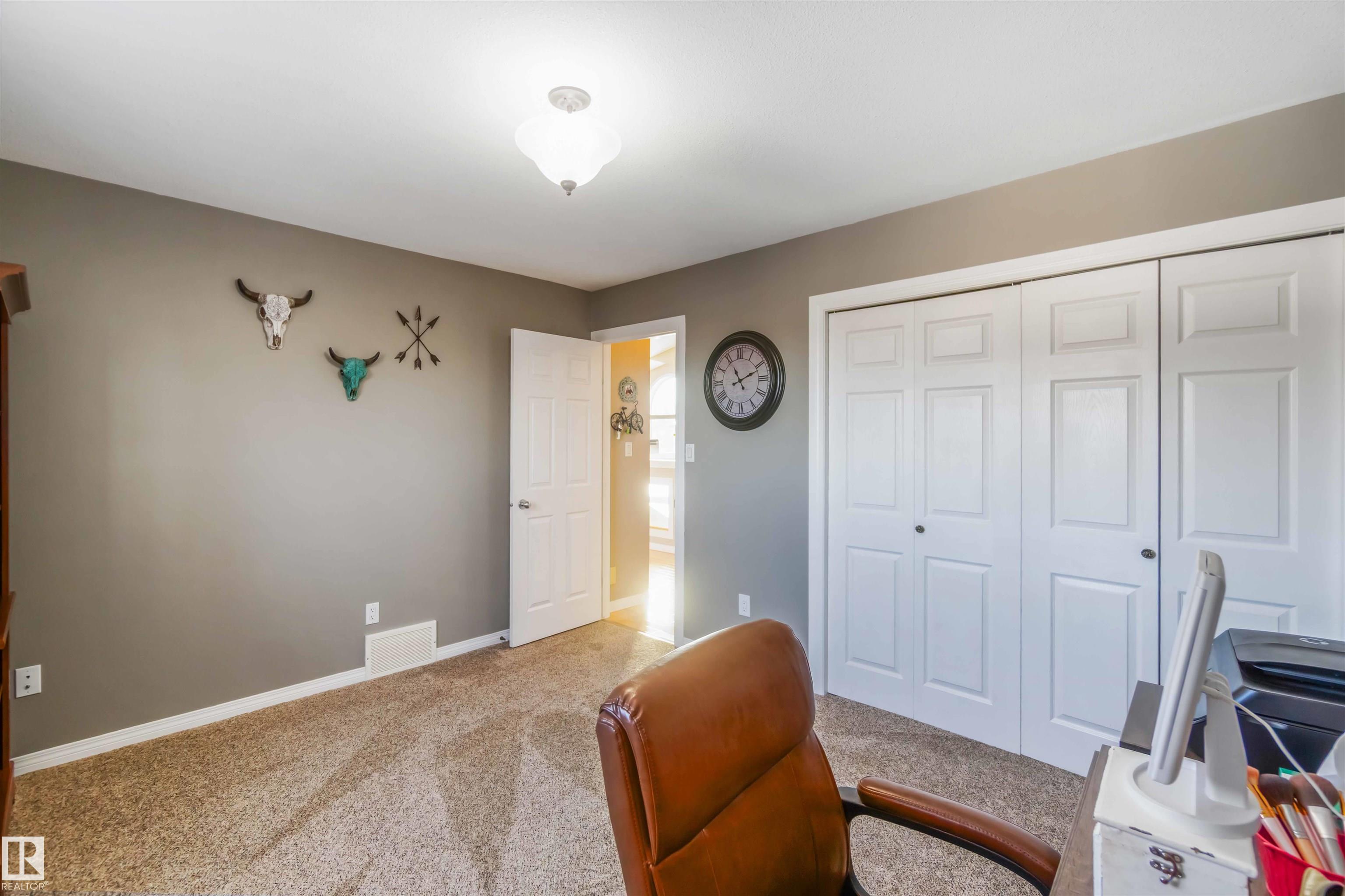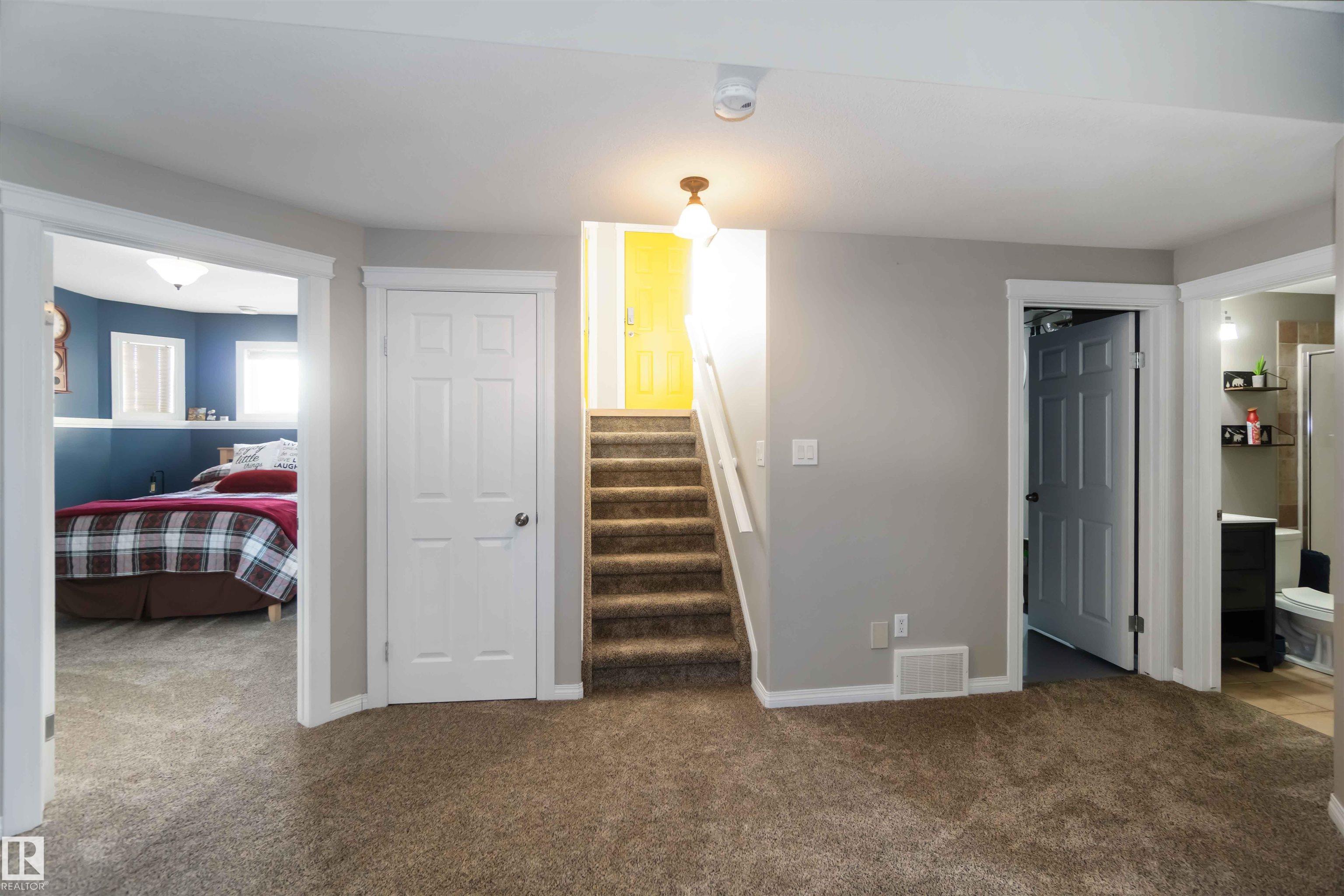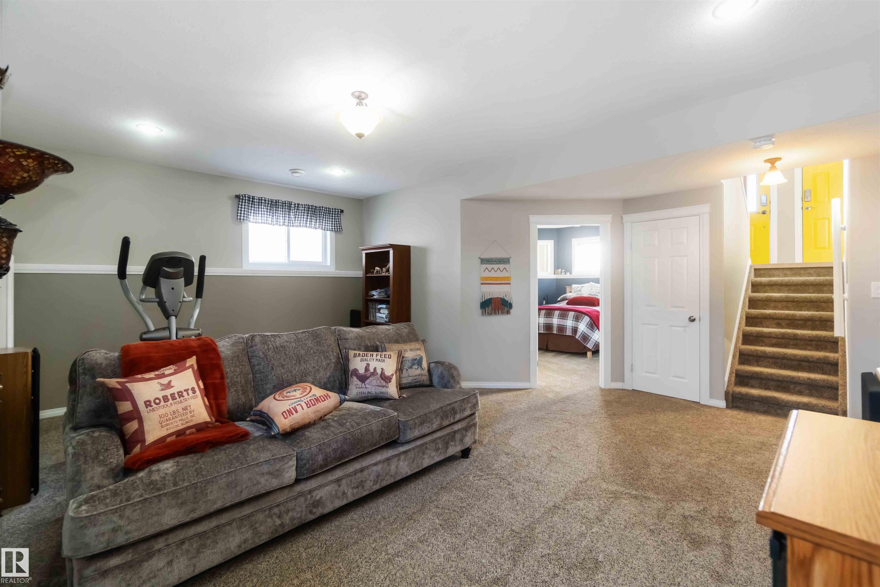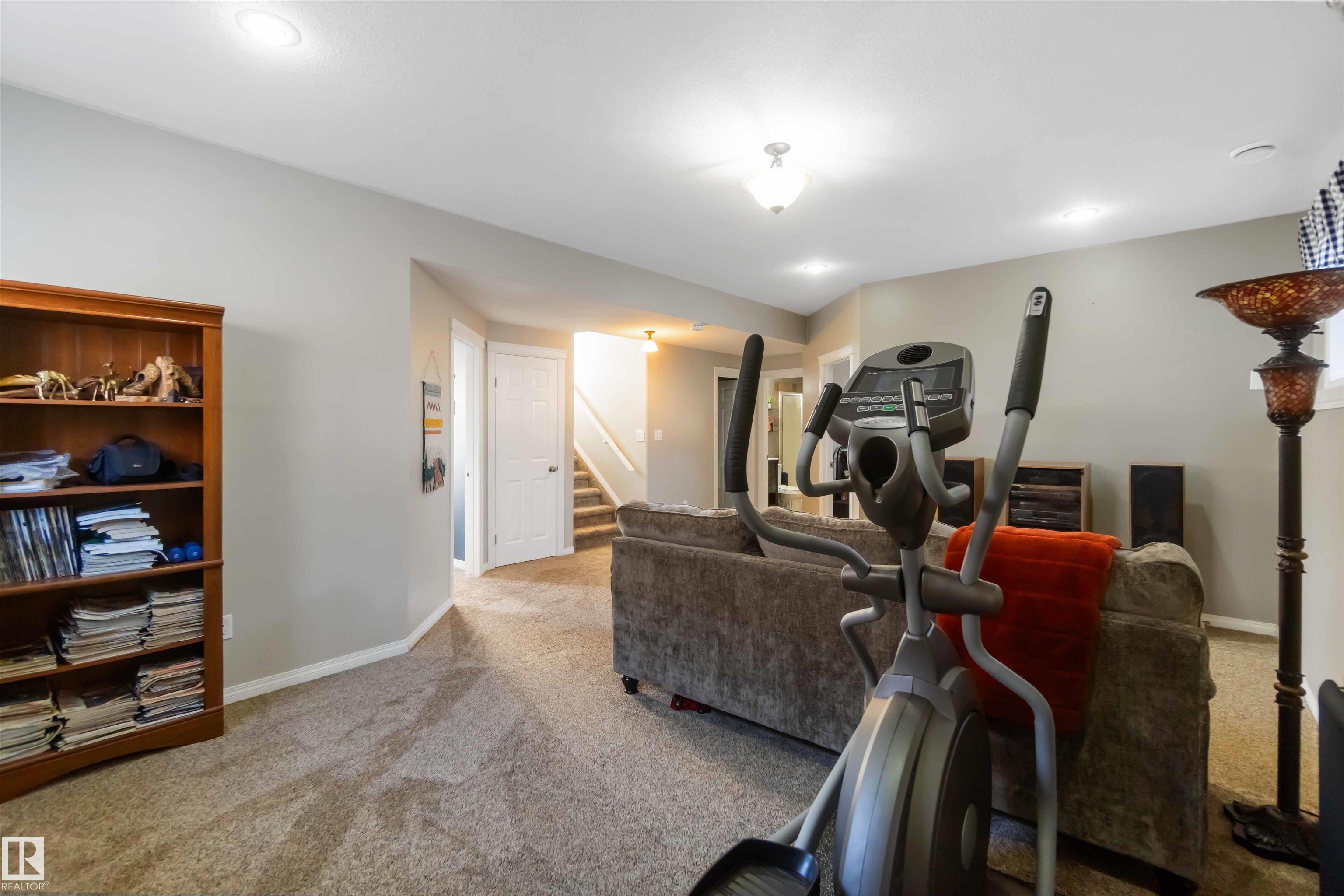 Fully developed bi-level with no rear neighbors. This home currently offers 4 bedrooms, with the flexibility to easily convert back to 5 bedrooms by relocating the laundry to the basement. The main floor features a bright living room with a corner gas fireplace, a dining area, and a kitchen with great views and direct access to the deck. Also on the main level are a laundry room, a 4-piece bathroom, and one bedroom. The primary suite is located above the garage and includes a walk-in closet and a spacious 5-piece ensuite with a jetted tub and standalone shower. The fully finished basement offers two additional bedrooms, a large recreation room, a 3-piece bathroom, a generous utility room, and plenty of storage space. The heated attached garage is fully finished with durable industrial vinyl plank flooring and equipped with water taps. Recent upgrades include central air conditioning, select windows, and some appliances.