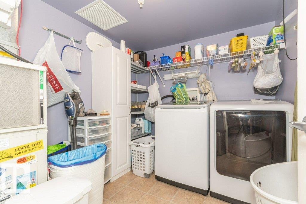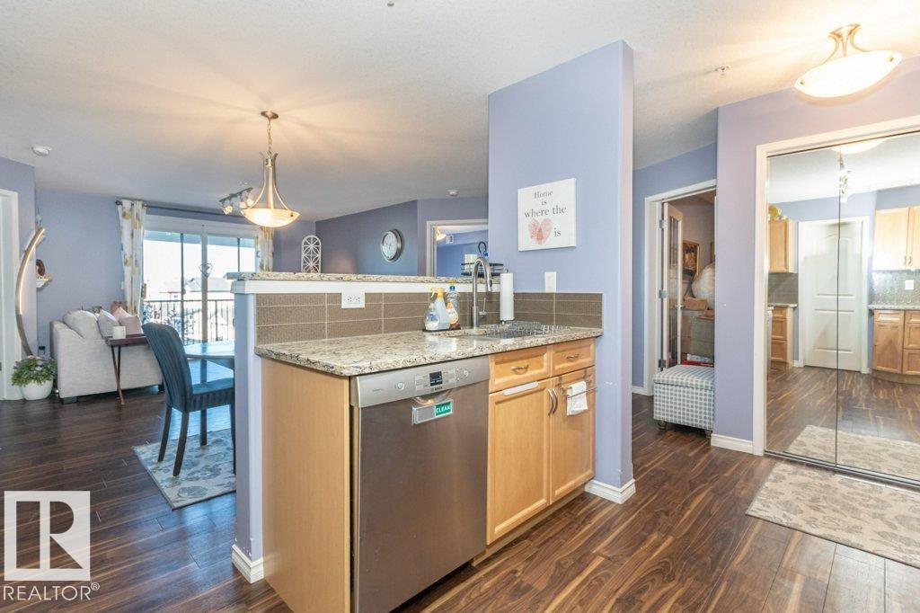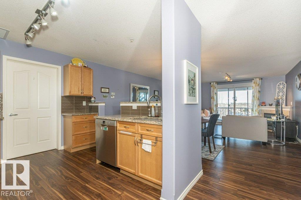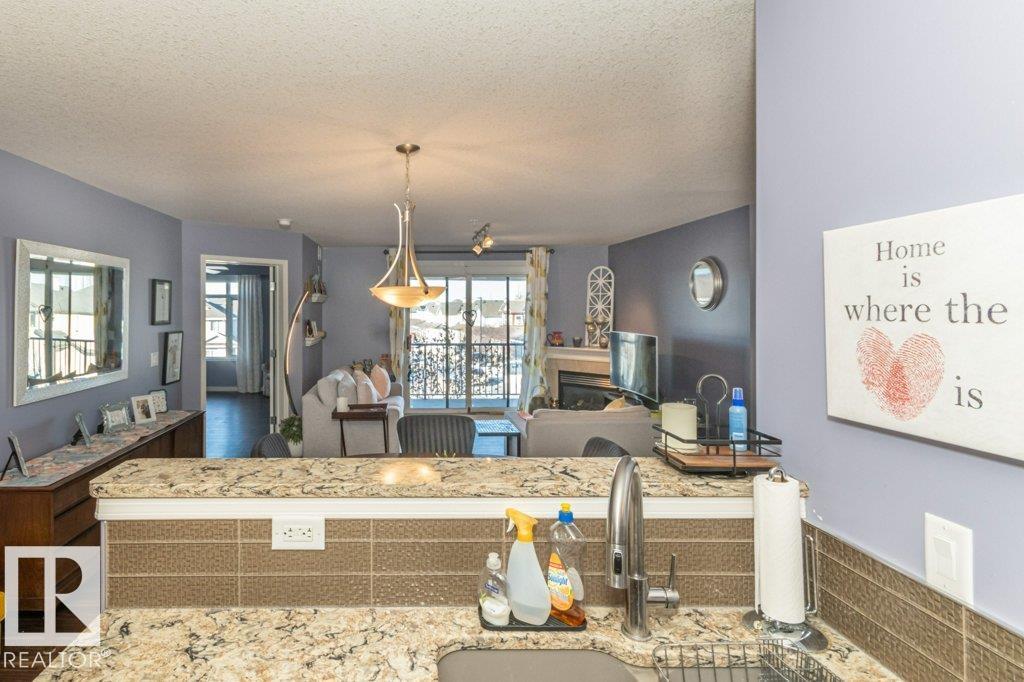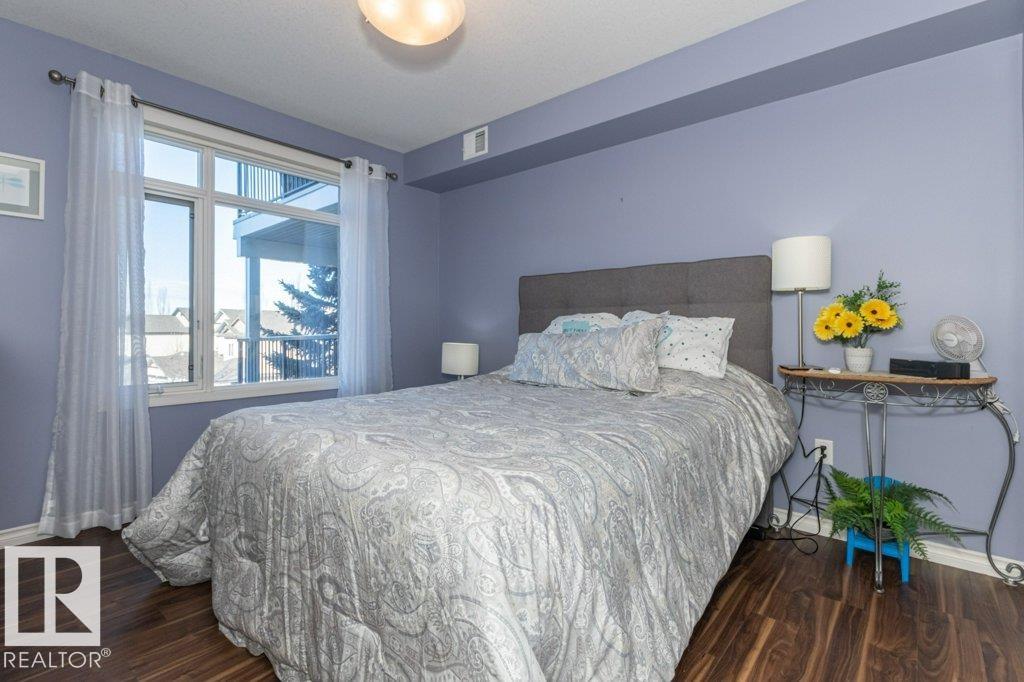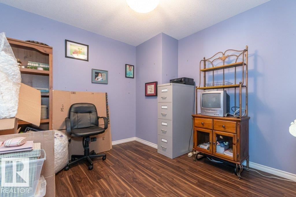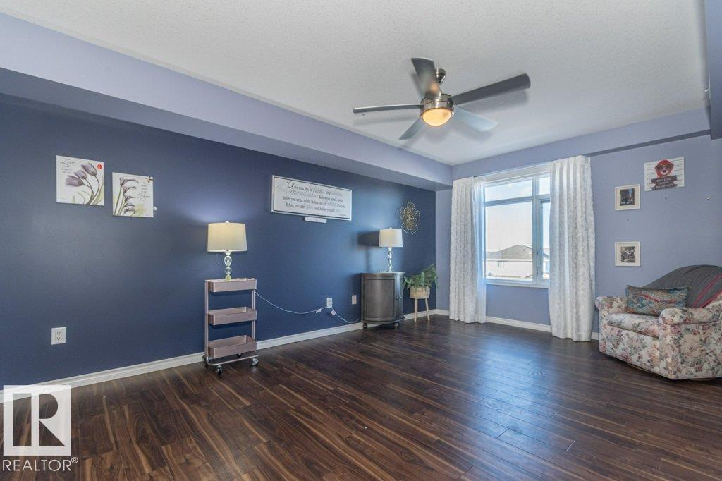Welcome to Glastonbury Village, an established adult living (18+) community conveniently located on Edmonton?s west side steps from public transportation, parks, trails, shopping and more! The building welcomes you with a grand foyer that leads to the social room on the main level, and up the curved stairs to the guest suite + fitness room on the 2nd level. This updated and loved home feat. a very desirable 2 bdrm PLUS den layout! Home features include an open plan w/updated vinyl plank floors, warm colours, and renovated kitchen w/newer SS appl. (inc. full-size fridge), updated cabinets, stone counters + tile backsplash. There are 2 bdrms that are a very nice size, with the master suite featuring his + her closets and a 3pc ensuite w/large walk-in shower. Completing the plan is a spacious living/dining area w/corner gas F/P, den/office + laundry/storage room. West facing balcony with sunset and community views. Home comes with A/C, 1 titled U/G parking stall and storage cage. Well managed building.