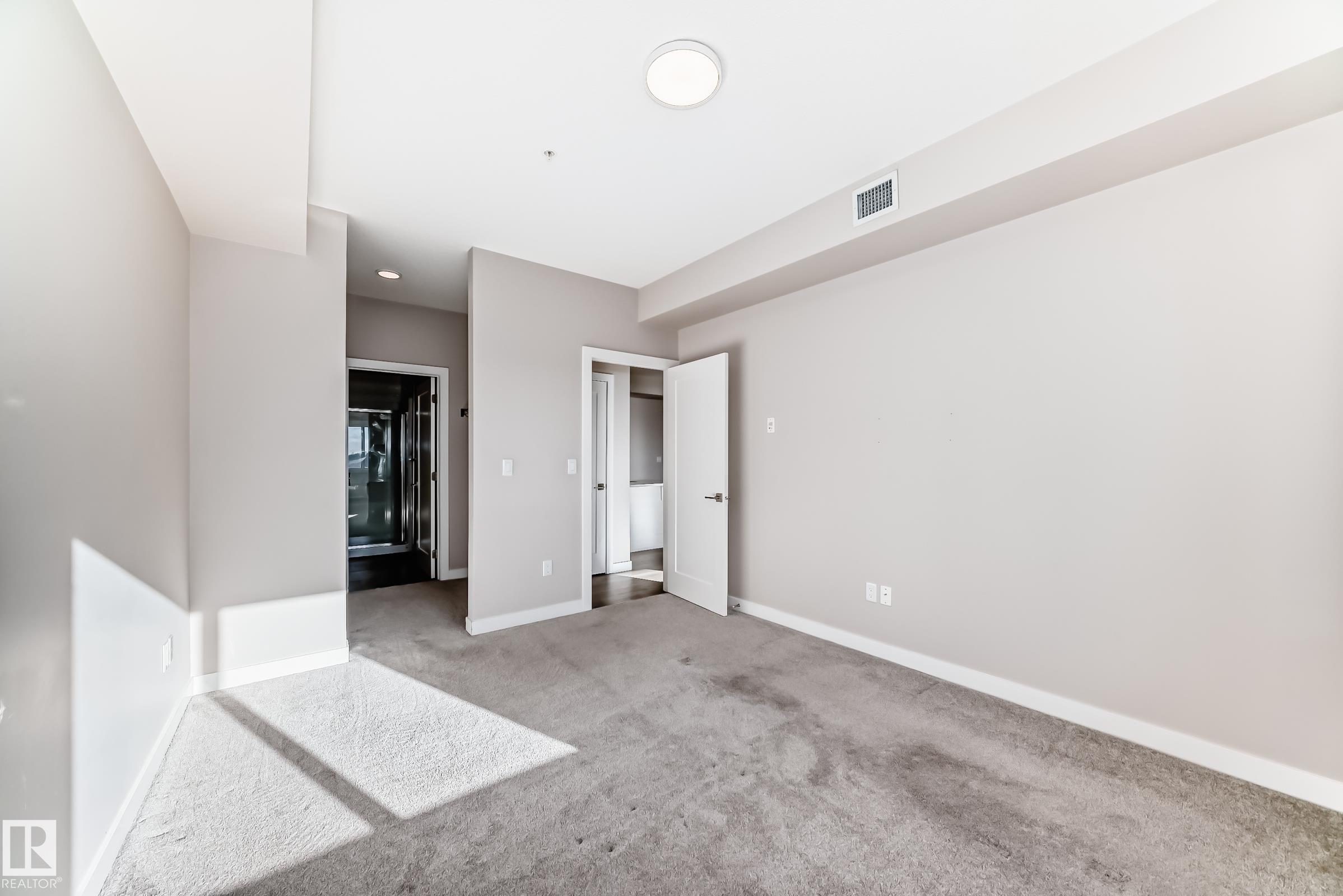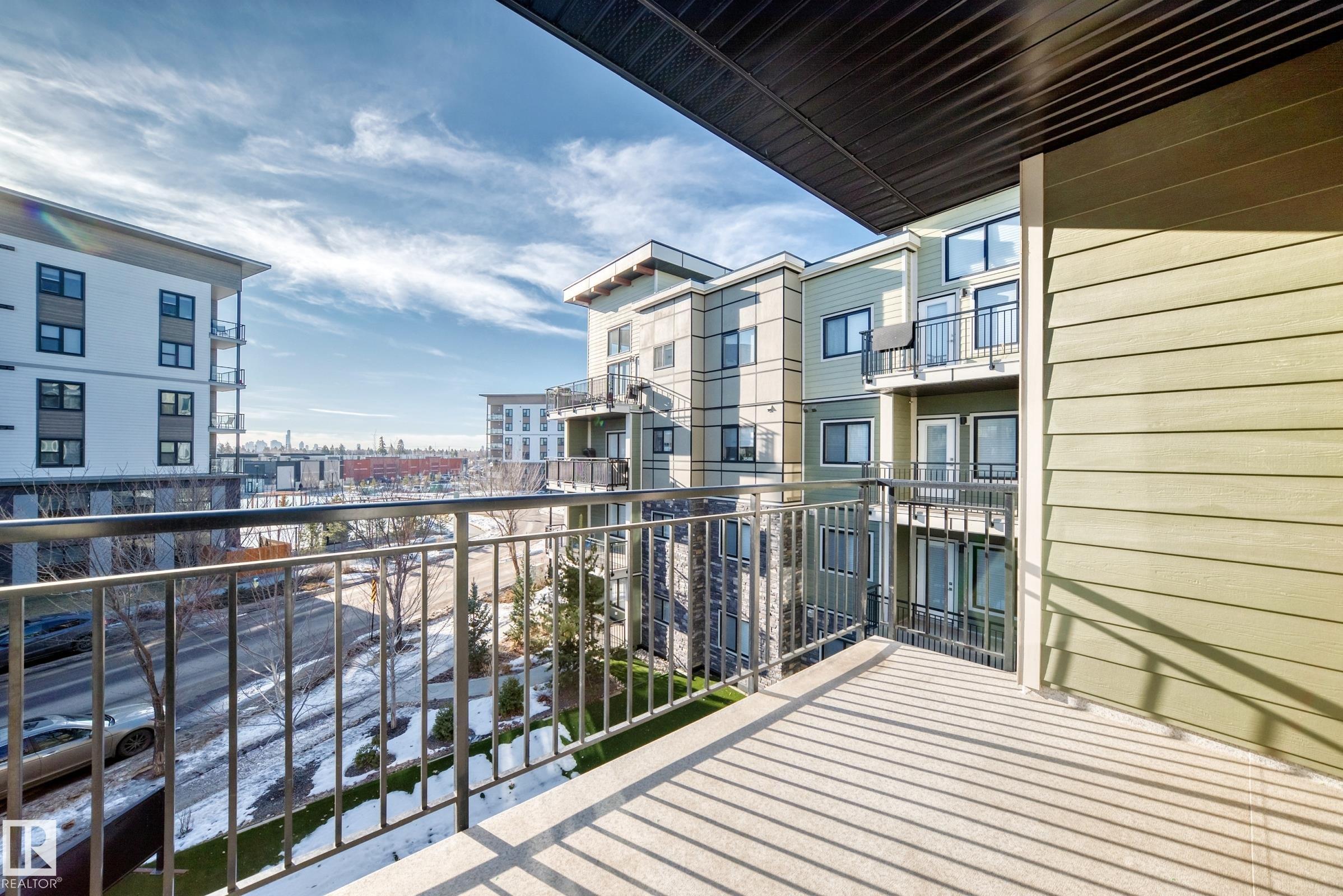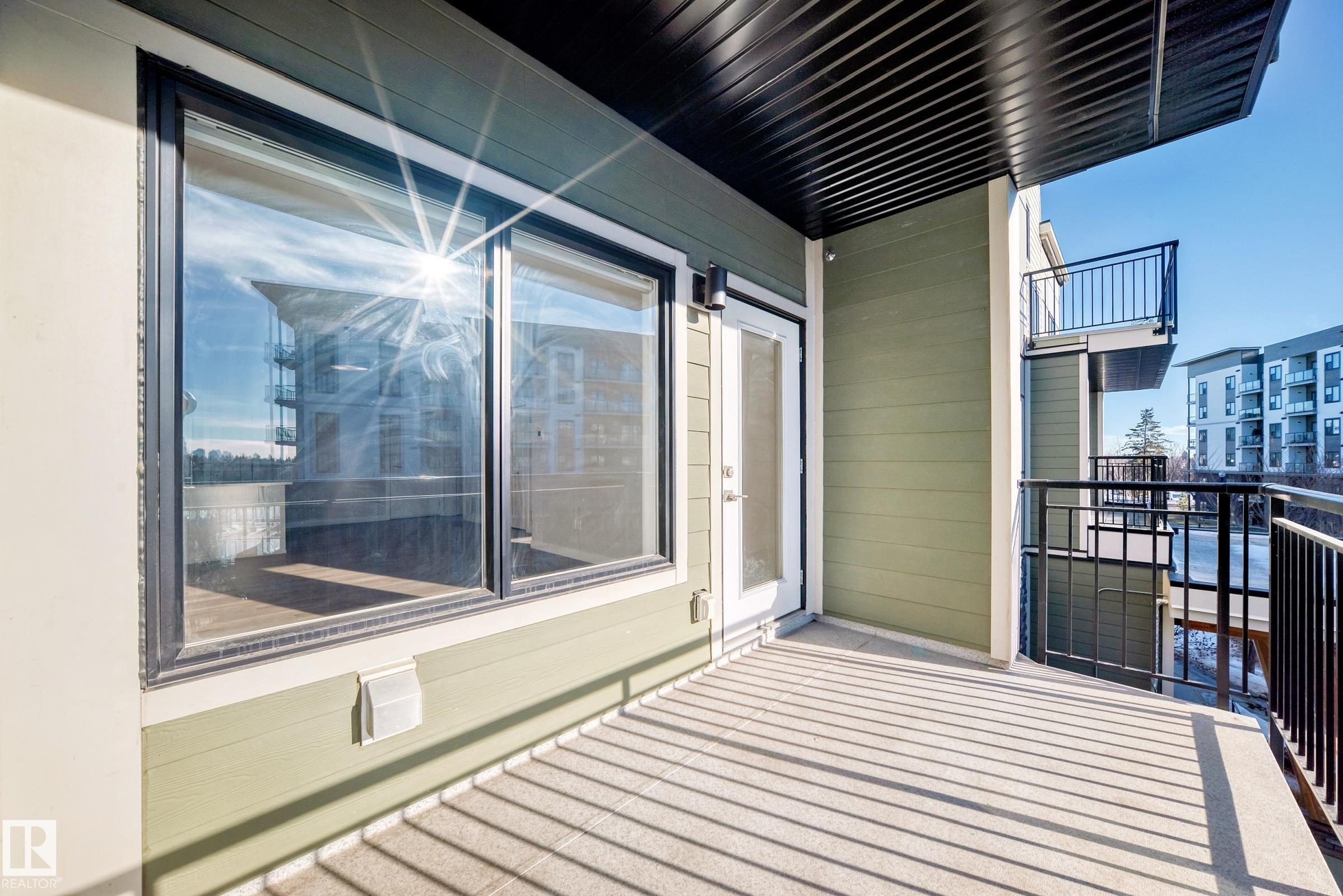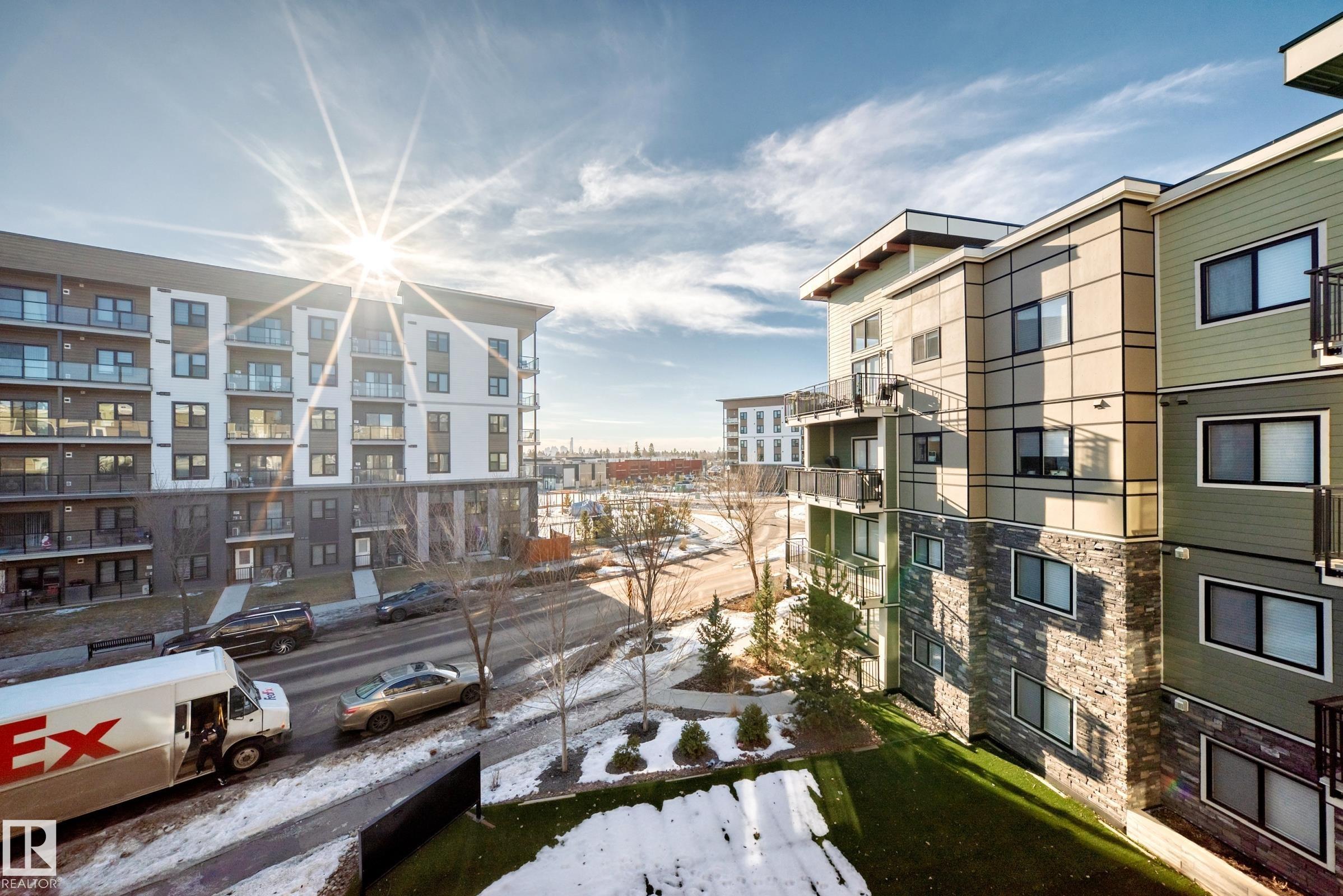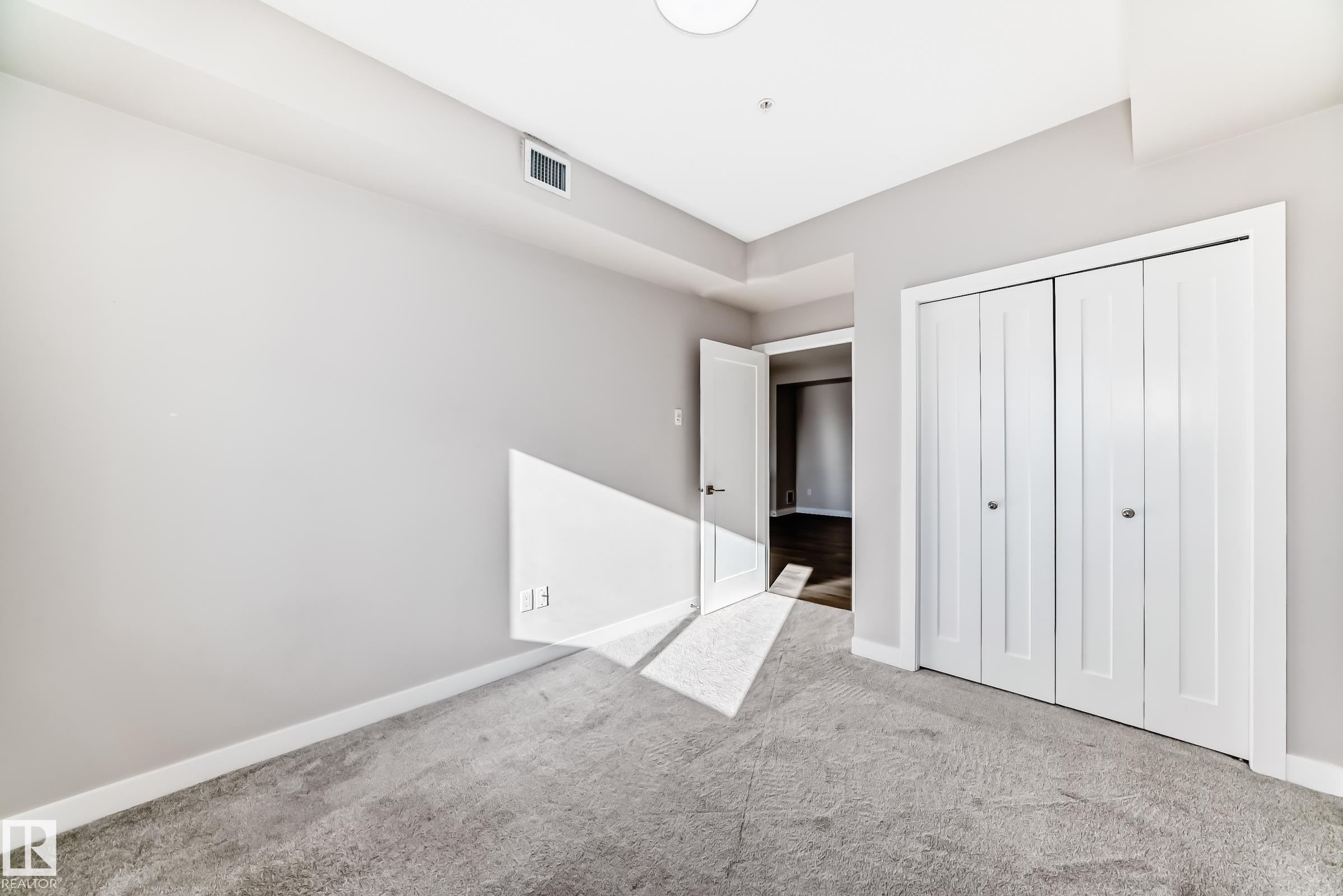 Welcome home to this bright and well-appointed third-floor, south-facing 2 bed, 2 bath suite offering excellent natural light and everyday convenience. With a builder?s size of 1000 SQ FT, the open-concept layout features quartz countertops, soft-close cabinetry, and durable vinyl plank flooring in the main living areas, with plush carpet in the bedrooms. The thoughtfully designed floor plan provides great bedroom separation for privacy, while the desirable south exposure keeps the space warm and inviting. Located just steps from the elevator, this unit offers easy access without long walks down the hallway. Enjoy the spacious balcony with a natural gas BBQ hookup. Building amenities include a fitness centre, social and amenity room, library, car wash bay, and secure key fob entry. Additional features include stainless steel appliances, window coverings, in-suite laundry, and one underground stall with storage. Award winning Griesbach is filled with amenities, minutes away from downtown & the Henday.