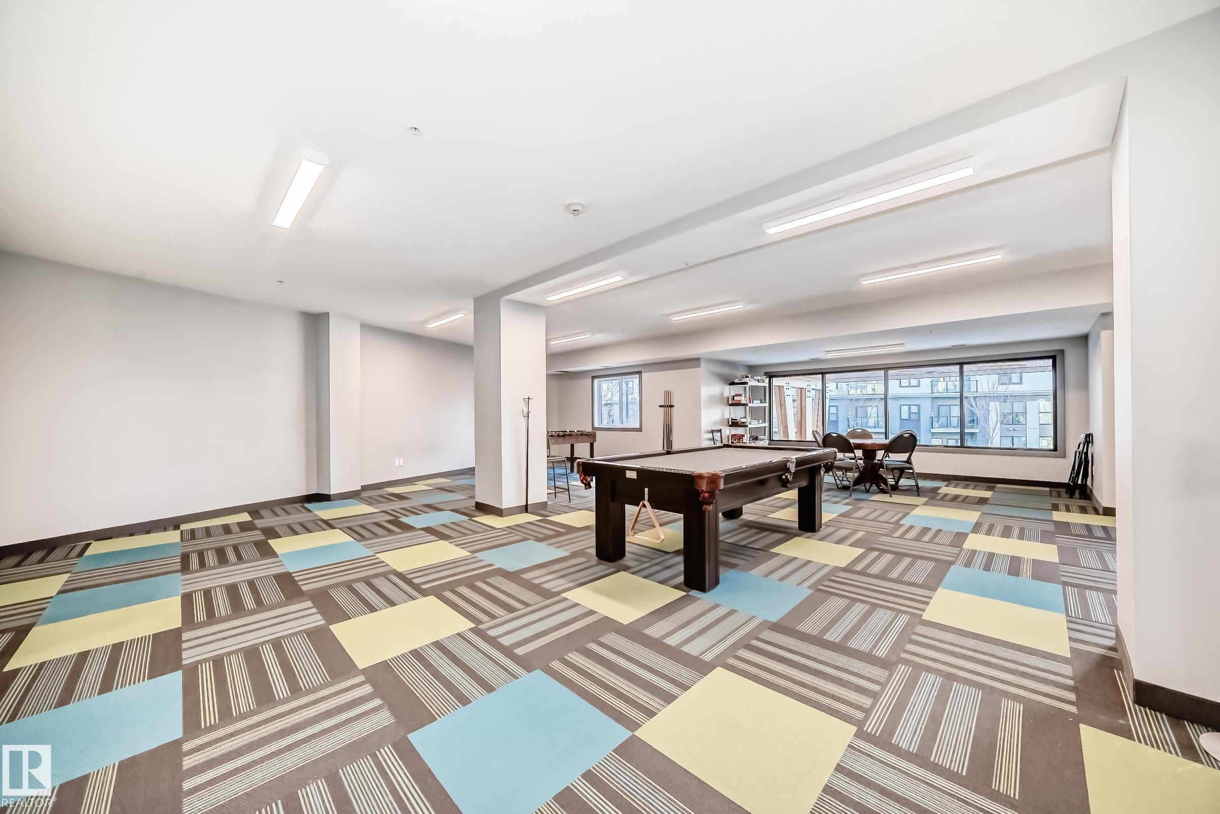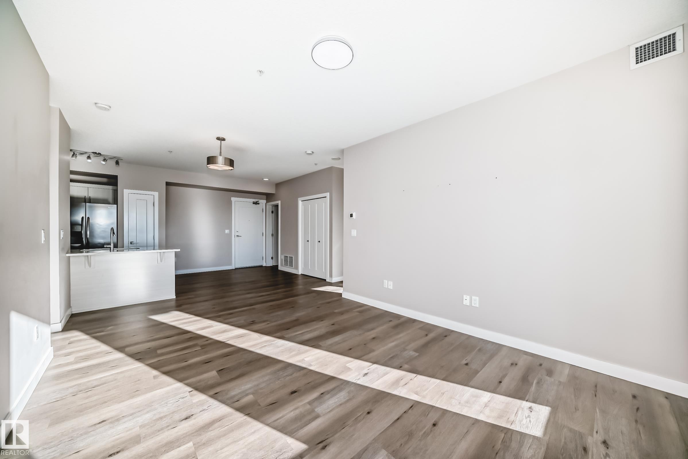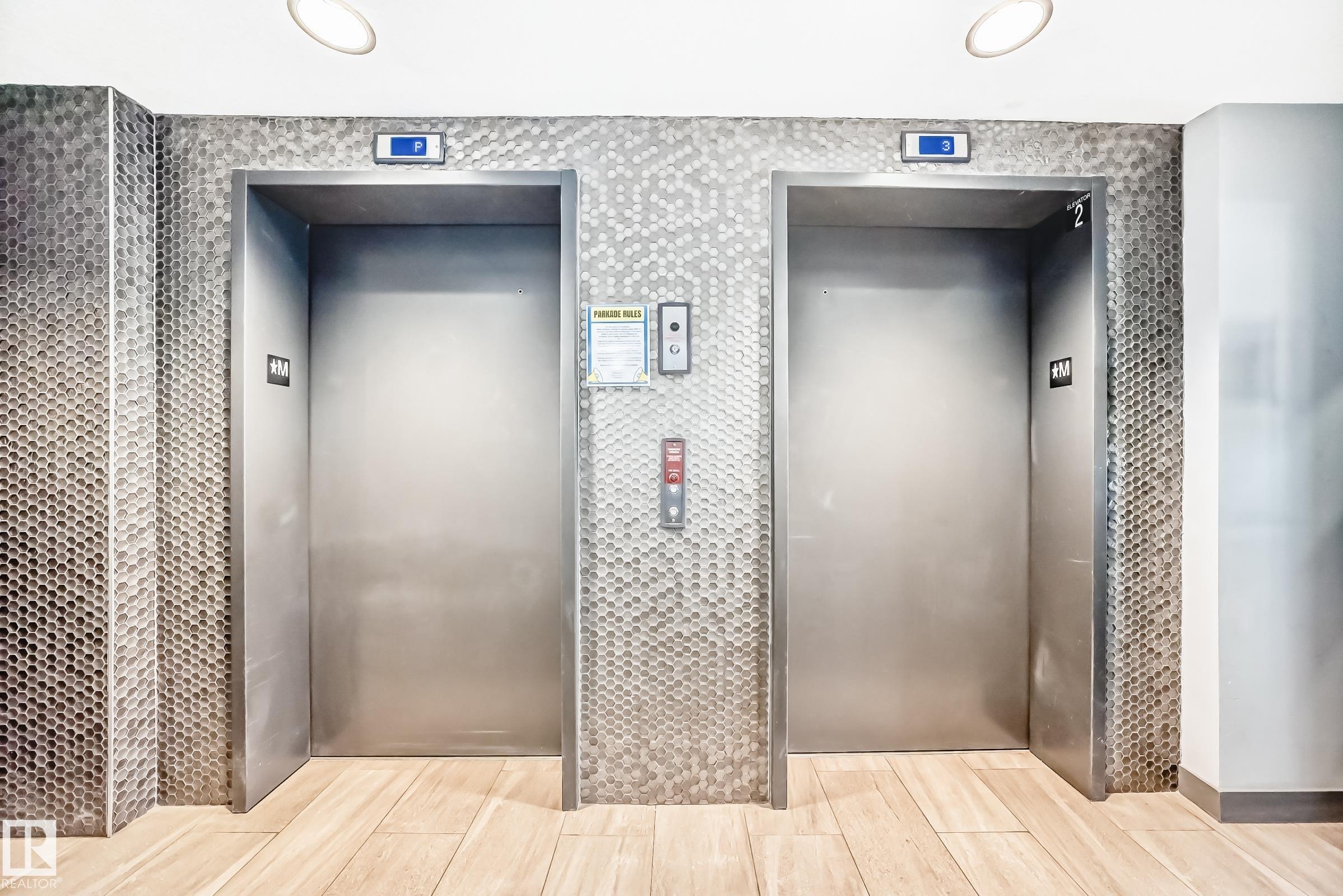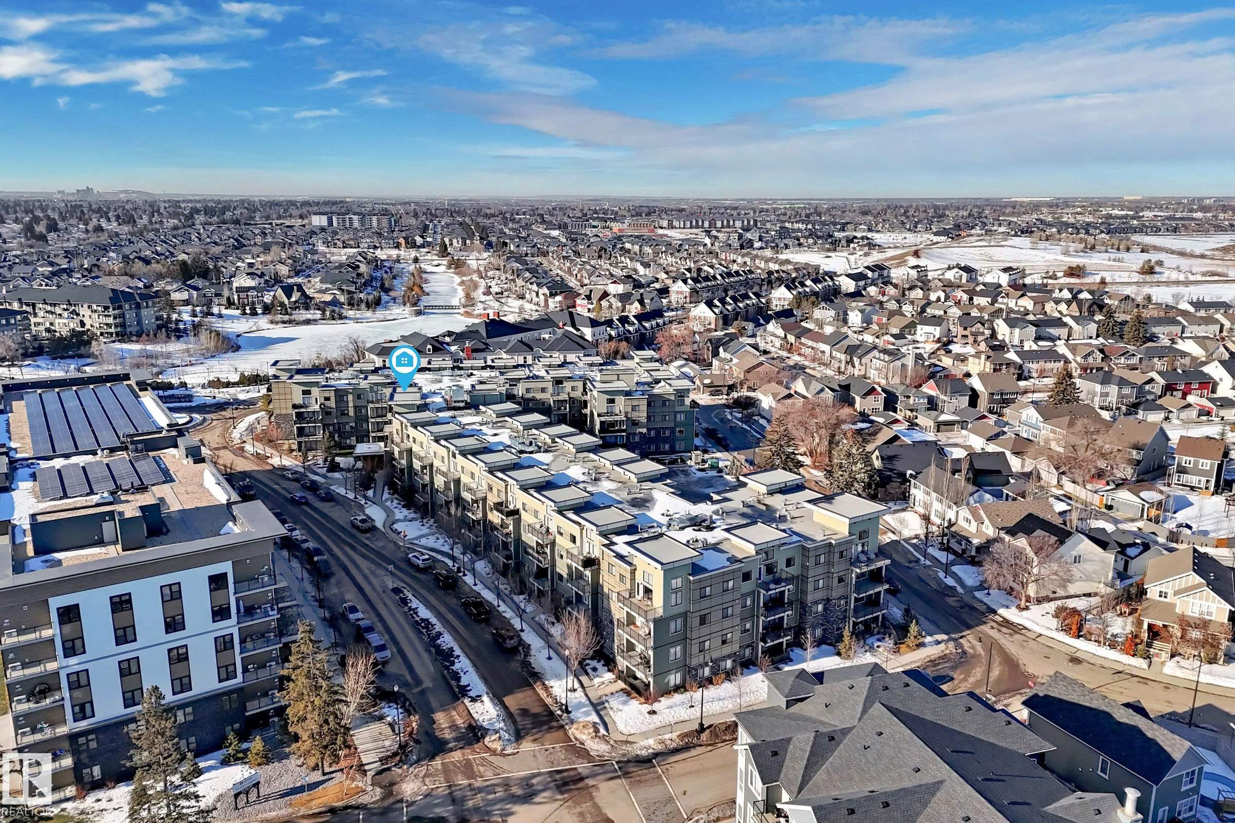 Welcome home to this bright and well-appointed third-floor, south-facing 2 bed, 2 bath suite offering excellent natural light and everyday convenience. With a builder?s size of 1000 SQ FT, the open-concept layout features quartz countertops, soft-close cabinetry, and durable vinyl plank flooring in the main living areas, with plush carpet in the bedrooms. The thoughtfully designed floor plan provides great bedroom separation for privacy, while the desirable south exposure keeps the space warm and inviting. Located just steps from the elevator, this unit offers easy access without long walks down the hallway. Enjoy the spacious balcony with a natural gas BBQ hookup. Building amenities include a fitness centre, social and amenity room, library, car wash bay, and secure key fob entry. Additional features include stainless steel appliances, window coverings, in-suite laundry, and one underground stall with storage. Award winning Griesbach is filled with amenities, minutes away from downtown & the Henday.