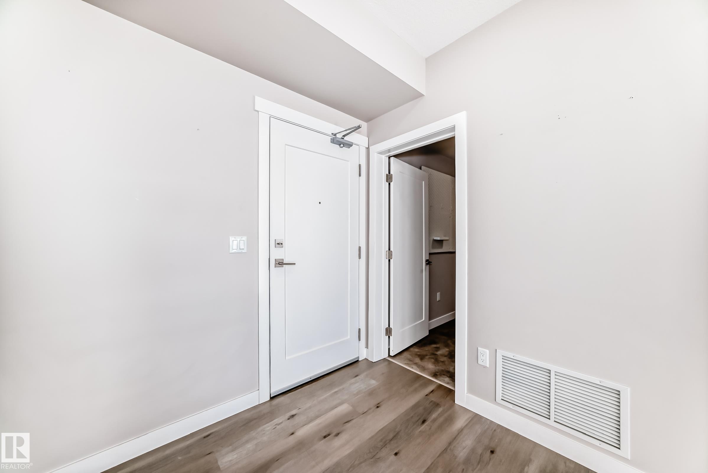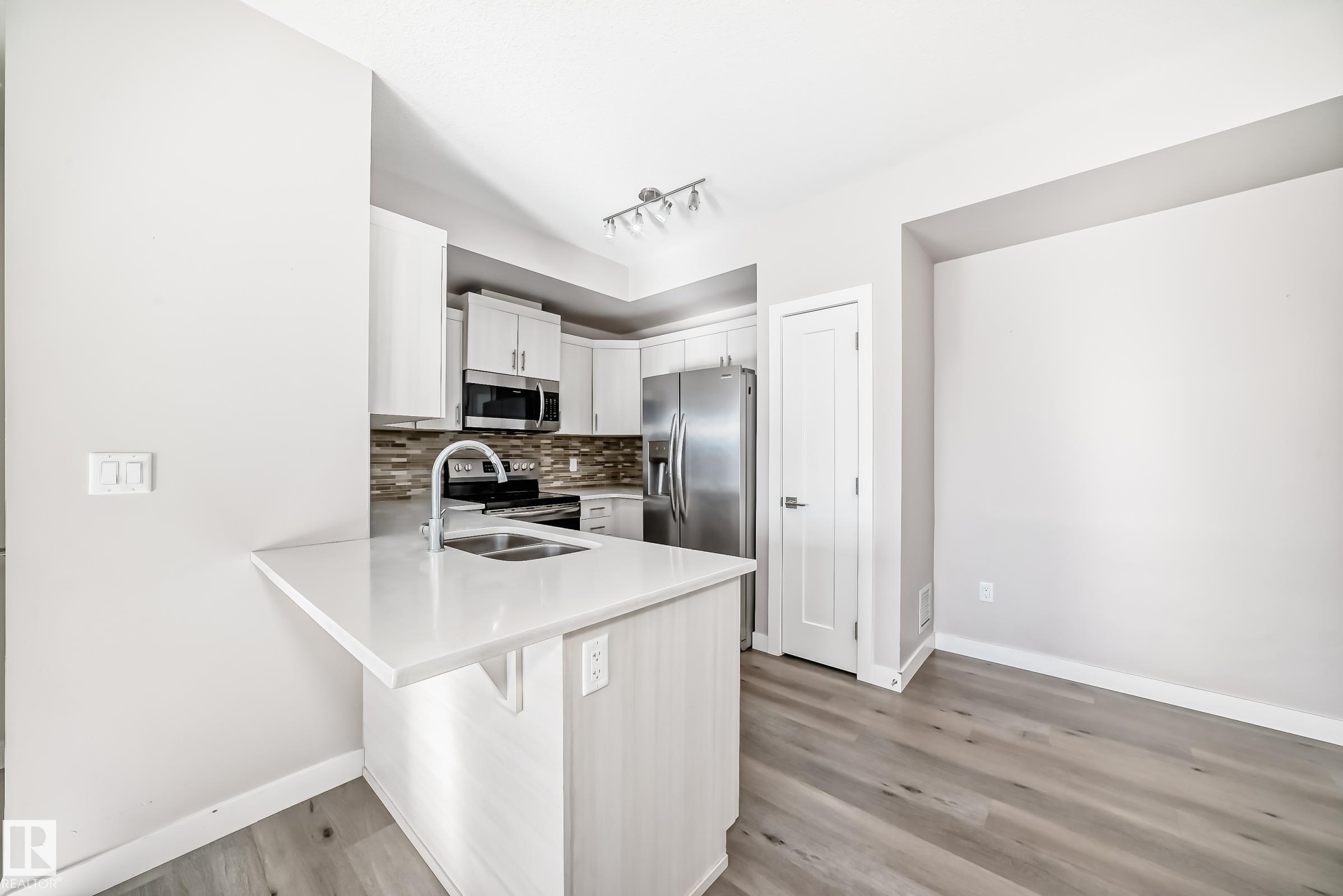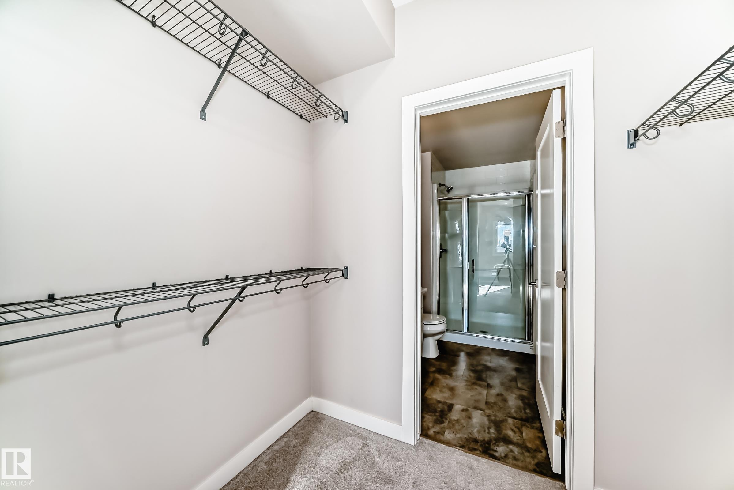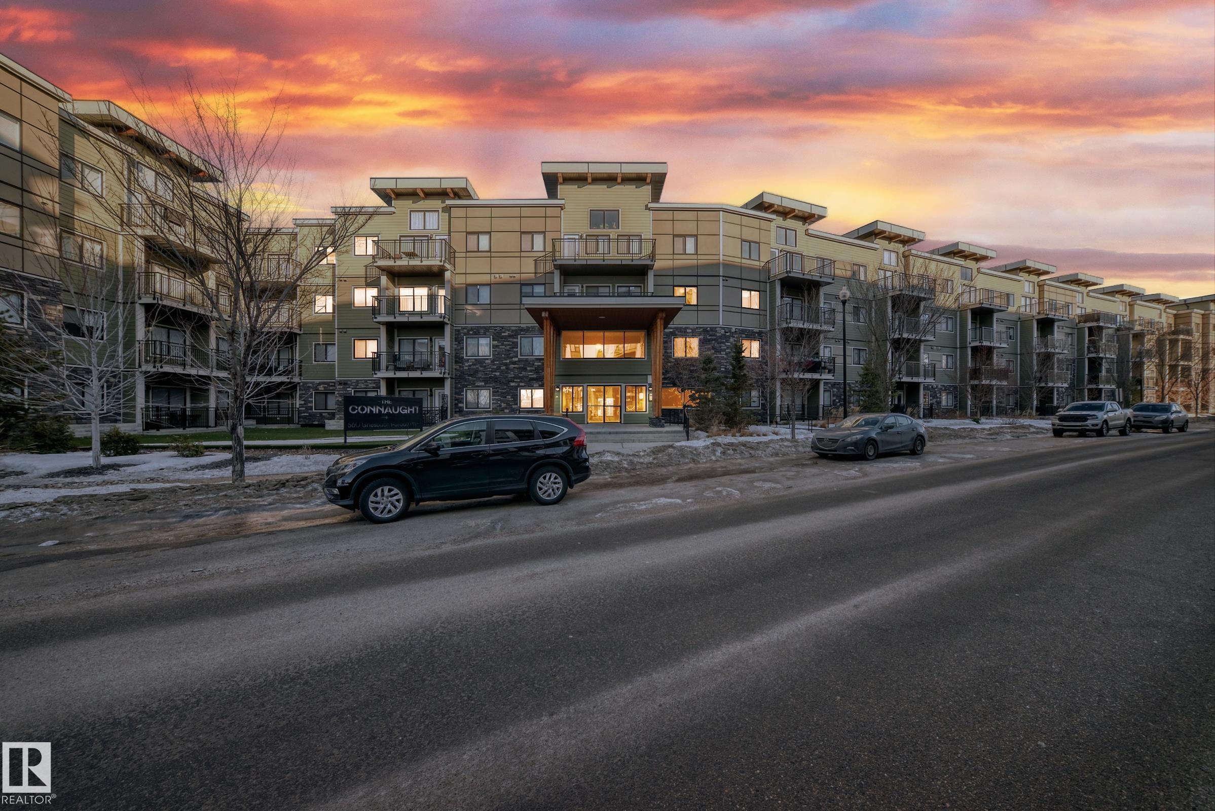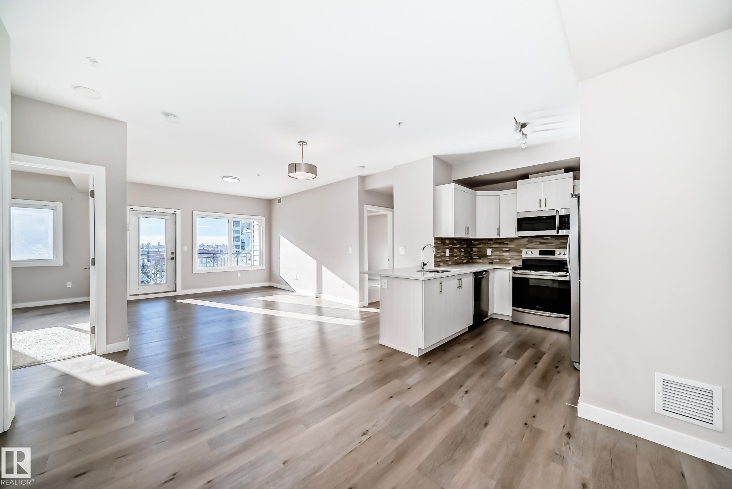 Welcome home to this bright and well-appointed third-floor, south-facing 2 bed, 2 bath suite offering excellent natural light and everyday convenience. With a builder?s size of 1000 SQ FT, the open-concept layout features quartz countertops, soft-close cabinetry, and durable vinyl plank flooring in the main living areas, with plush carpet in the bedrooms. The thoughtfully designed floor plan provides great bedroom separation for privacy, while the desirable south exposure keeps the space warm and inviting. Located just steps from the elevator, this unit offers easy access without long walks down the hallway. Enjoy the spacious balcony with a natural gas BBQ hookup. Building amenities include a fitness centre, social and amenity room, library, car wash bay, and secure key fob entry. Additional features include stainless steel appliances, window coverings, in-suite laundry, and one underground stall with storage. Award winning Griesbach is filled with amenities, minutes away from downtown & the Henday.
