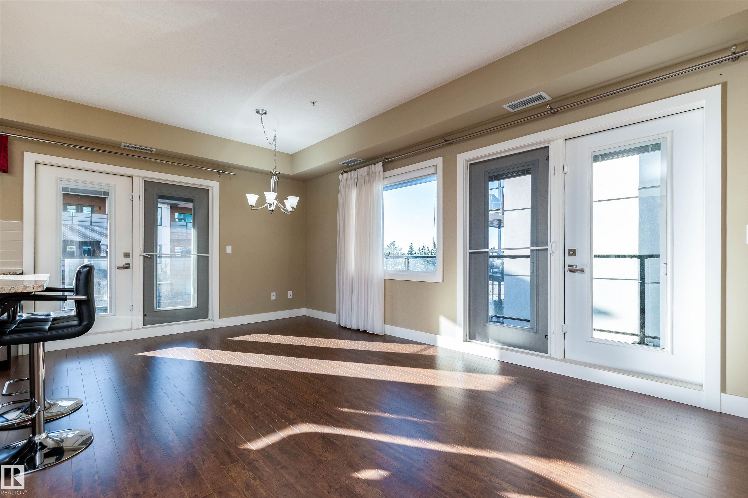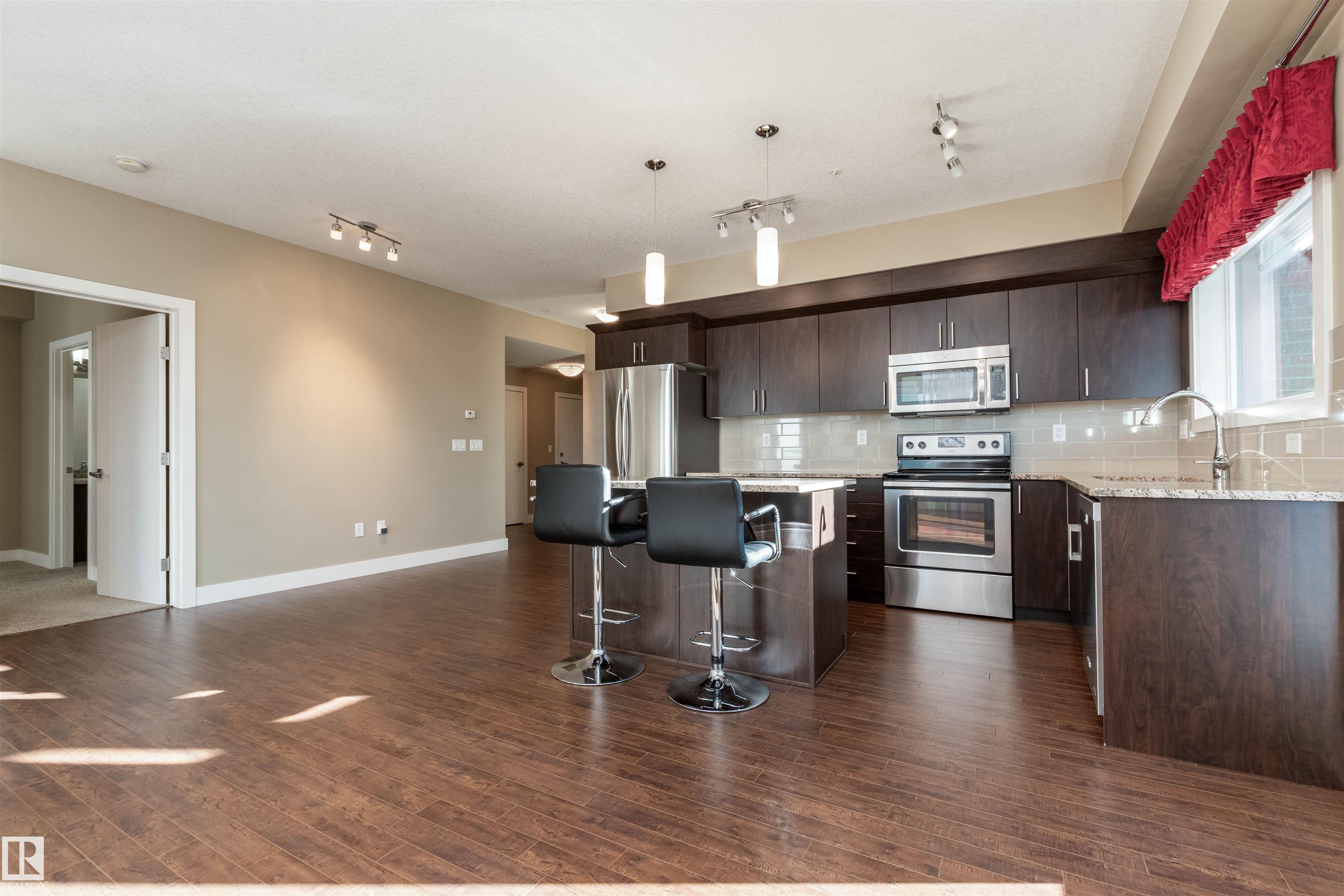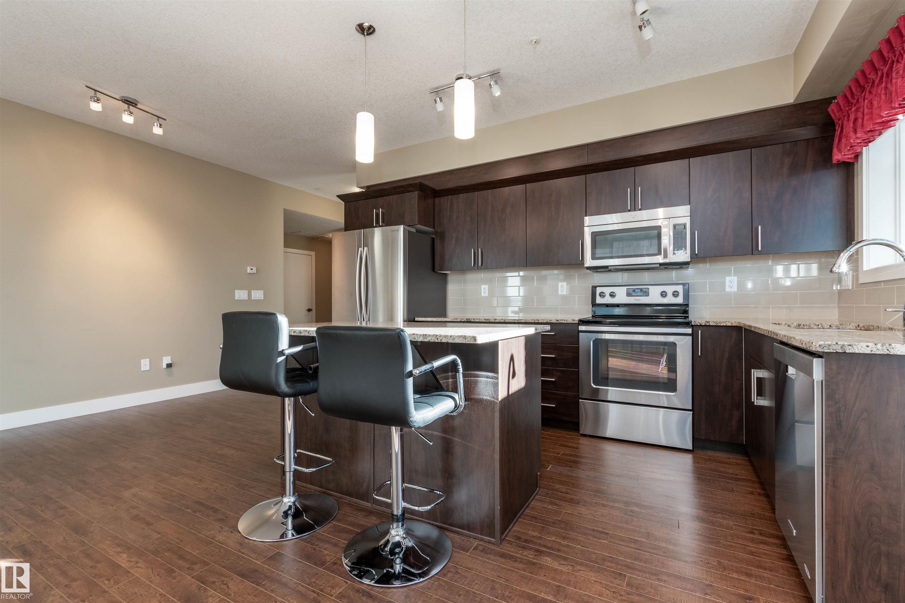 CORNER UNIT WITH SOUTHWEST EXPOSURE! Welcome to Reflections in Sherwood Park! This spacious and bright condo features an open floor plan with 1025 square feet. 2 Bedrooms and 2 bathrooms. Beautiful and modern kitchen with gorgeous granite counter tops, island, all appliances plus a large dining area. Living room with laminate flooring, and 2 BALCONIES to enjoy the sunny views! Lovely 3 piece ensuite and walk-in closet in the Primary Bedroom. Full 4 piece bathroom. Convenient in-suite laundry with stacked washer & dryer. AIR-CONDITIONING via heat pump. One UNDERGROUND TITLED PARKING STALL and assigned storage cage plus a car wash. Condo fees include professional management, heat and water. Exercise room is on the main level. Prime location just steps to Festival Place, Broadmoor Lake, The Library, restaurants and various amenities including the Sherwood Park Mall. Immediate possession is available! Visit REALTORŪ website for information.
