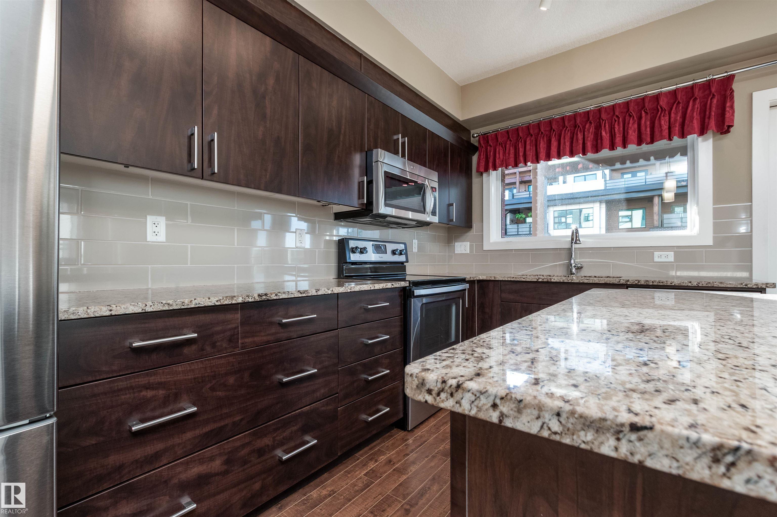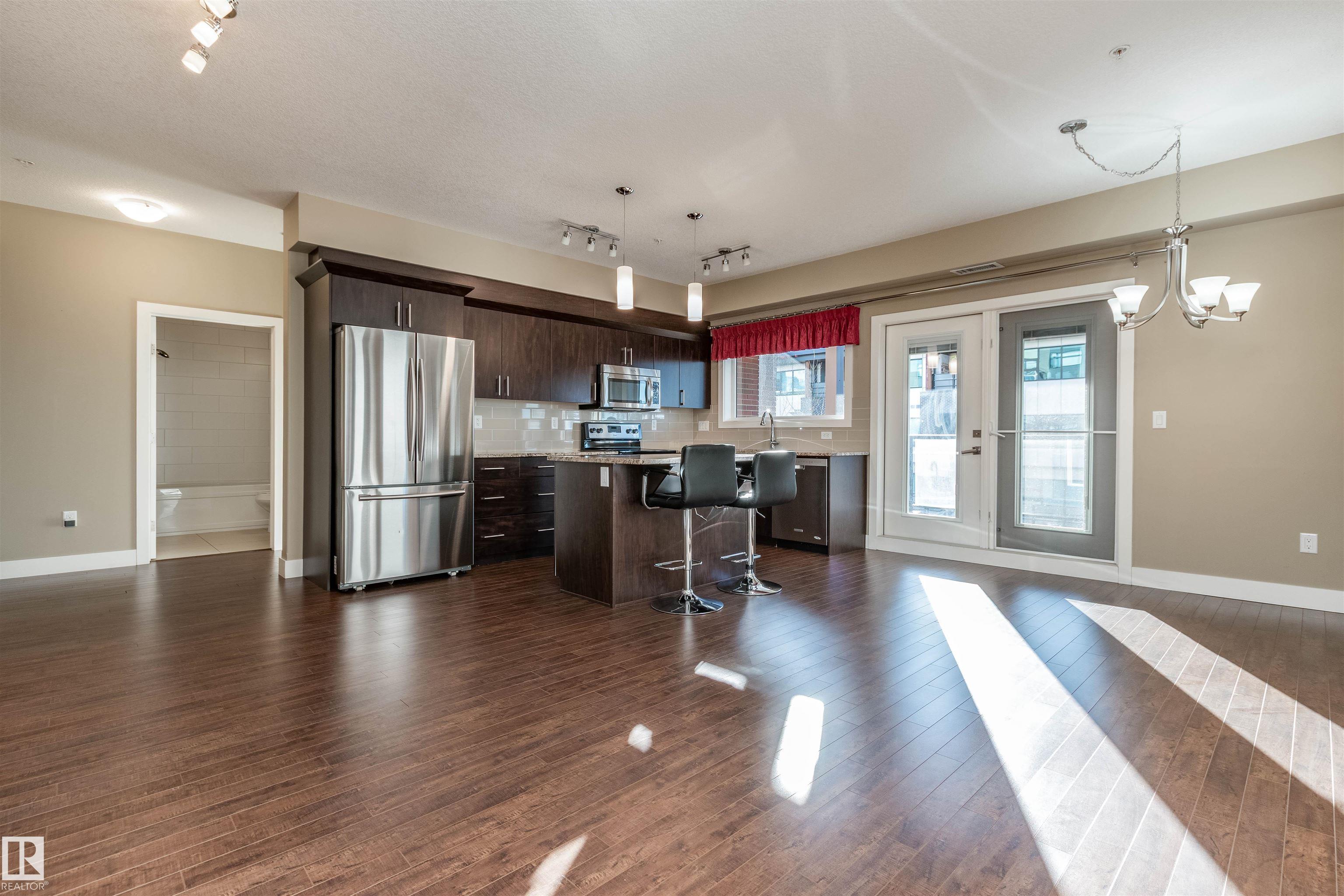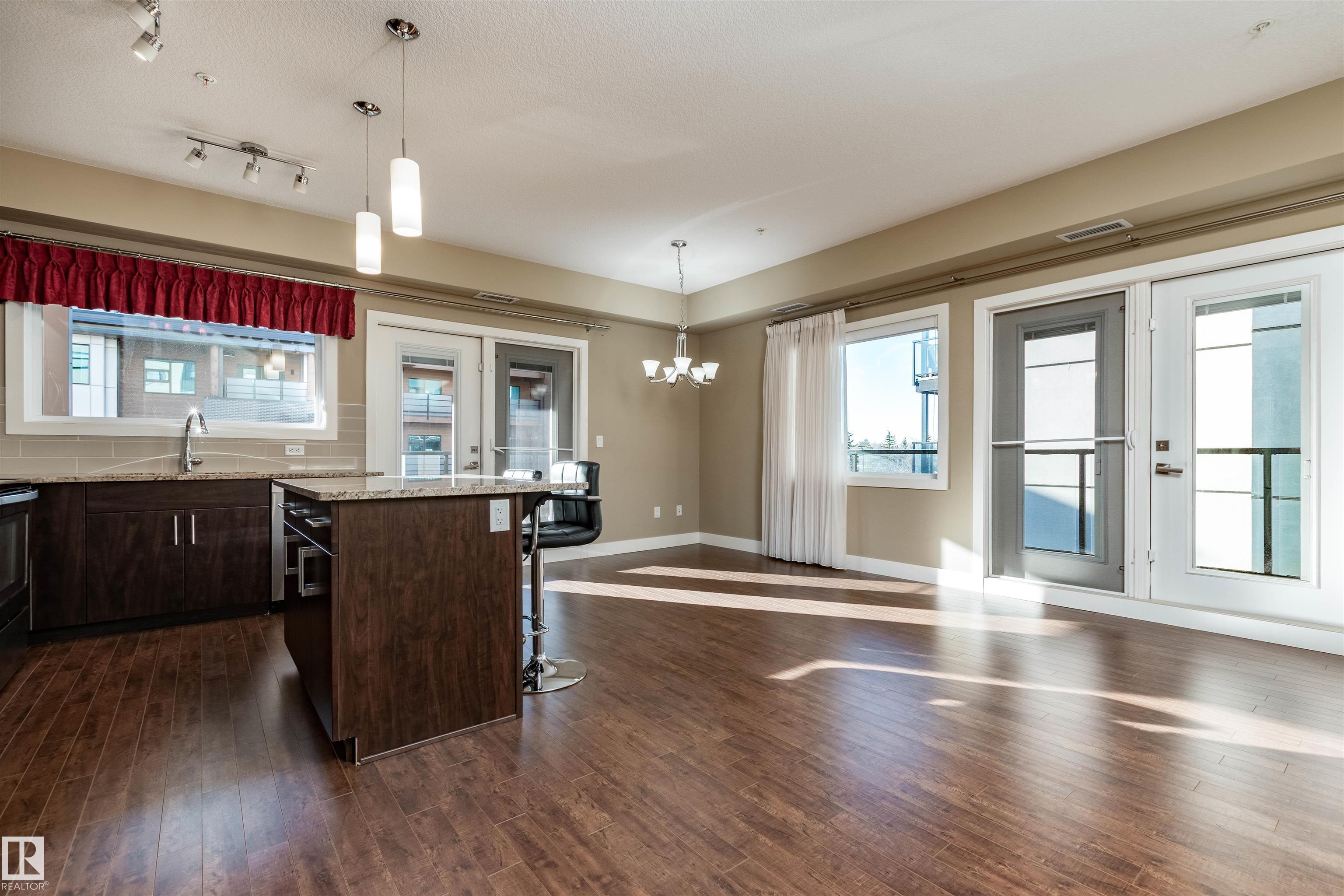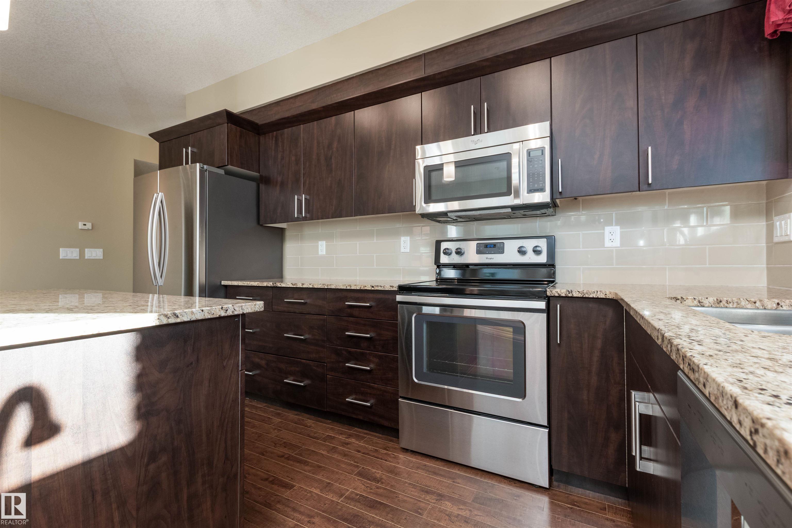 CORNER UNIT WITH SOUTHWEST EXPOSURE! Welcome to Reflections in Sherwood Park! This spacious and bright condo features an open floor plan with 1025 square feet. 2 Bedrooms and 2 bathrooms. Beautiful and modern kitchen with gorgeous granite counter tops, island, all appliances plus a large dining area. Living room with laminate flooring, and 2 BALCONIES to enjoy the sunny views! Lovely 3 piece ensuite and walk-in closet in the Primary Bedroom. Full 4 piece bathroom. Convenient in-suite laundry with stacked washer & dryer. AIR-CONDITIONING via heat pump. One UNDERGROUND TITLED PARKING STALL and assigned storage cage plus a car wash. Condo fees include professional management, heat and water. Exercise room is on the main level. Prime location just steps to Festival Place, Broadmoor Lake, The Library, restaurants and various amenities including the Sherwood Park Mall. Immediate possession is available! Visit REALTORŪ website for information.