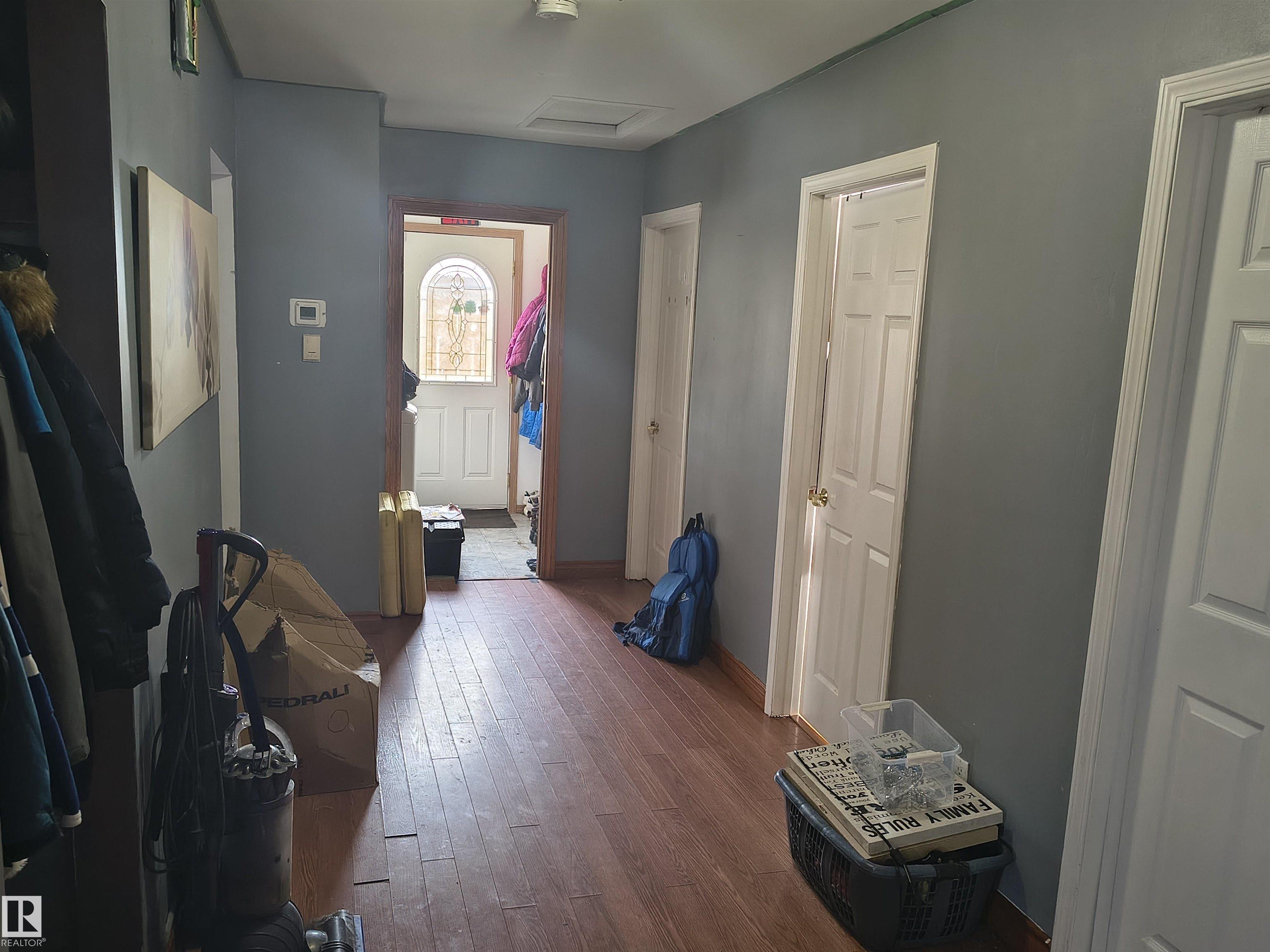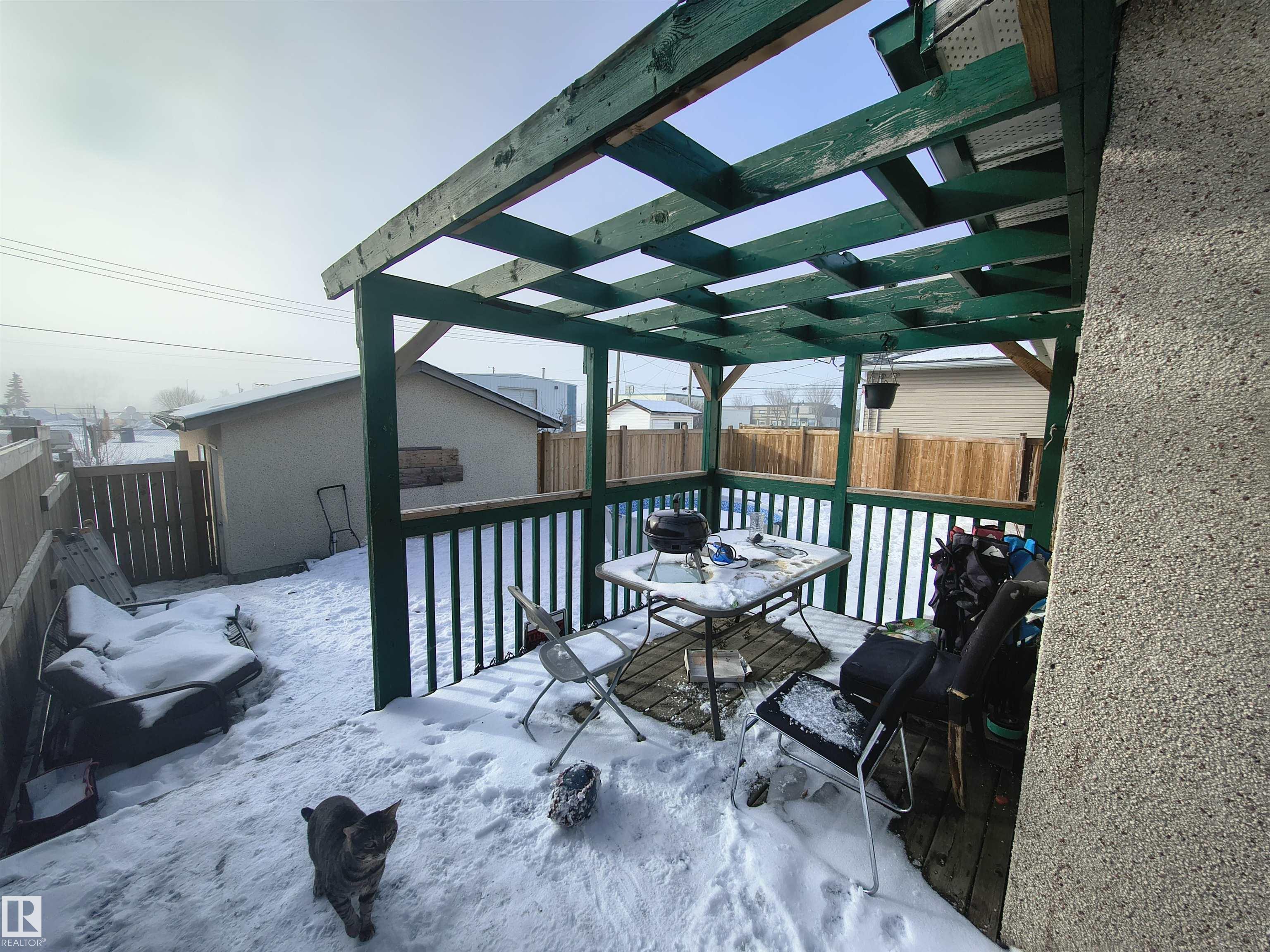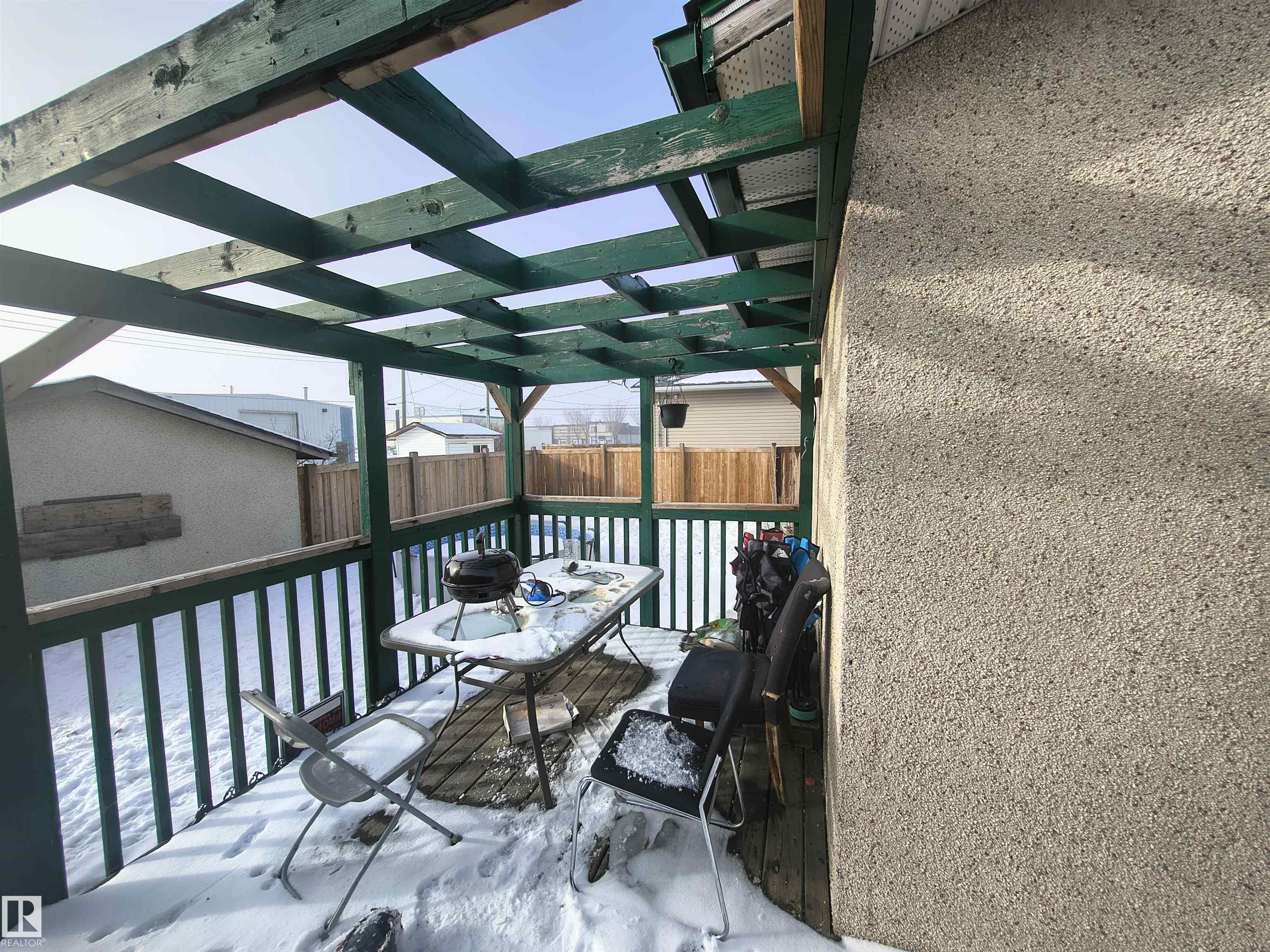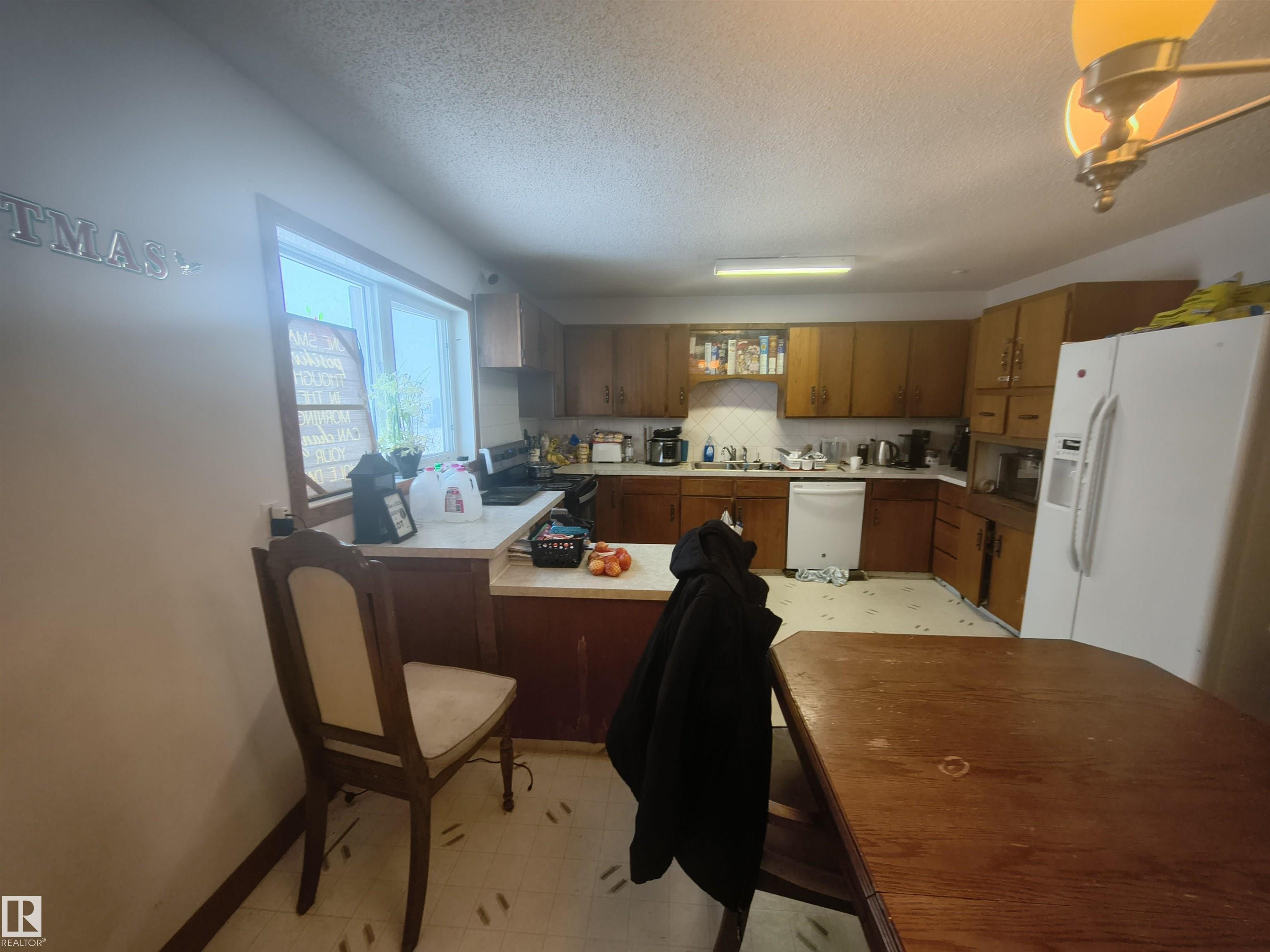 Fully finished 5-bedroom, 2-bathroom bungalow with numerous upgrades in the friendly community of Mundare. Recent improvements include a new roof (2024) and new tankless hot water system (2024). The fully developed basement features a second kitchen, offering excellent flexibility for extended family or guests. Additional upgrades include in-floor heating, updated laminate flooring, concrete work, and weeping tile. Enjoy a spacious fenced yard with partial wrap-around deck and a single detached garage. Walking distance to amenities and minutes from Whitetail Crossing 18-hole golf course