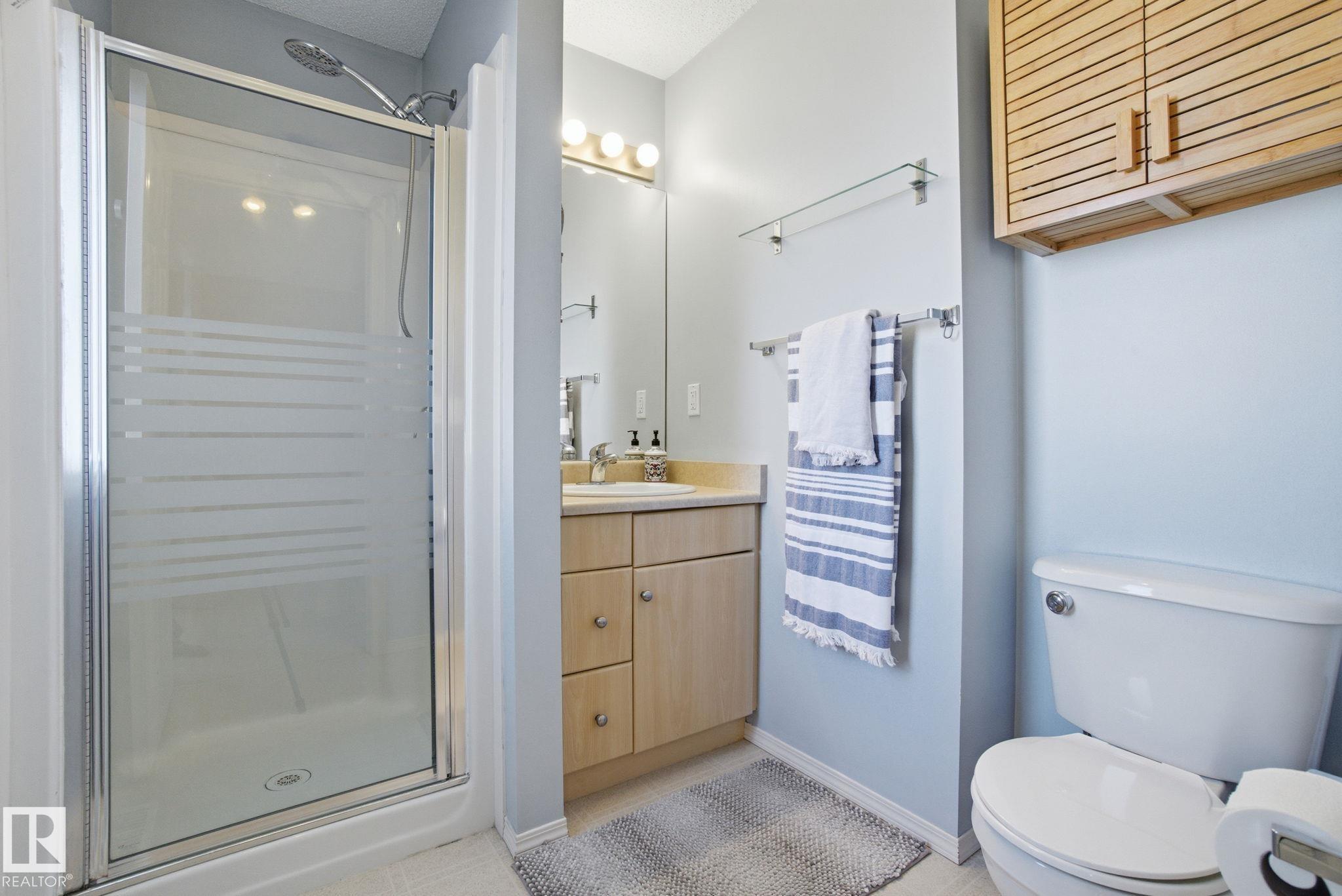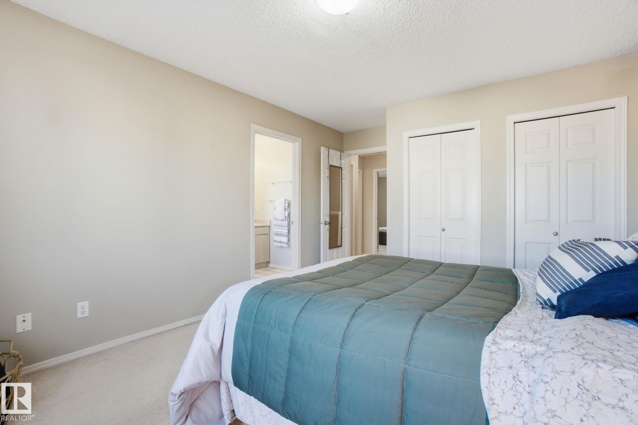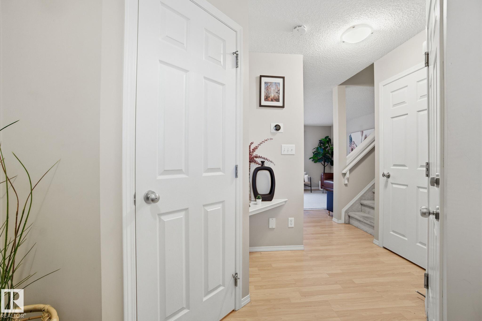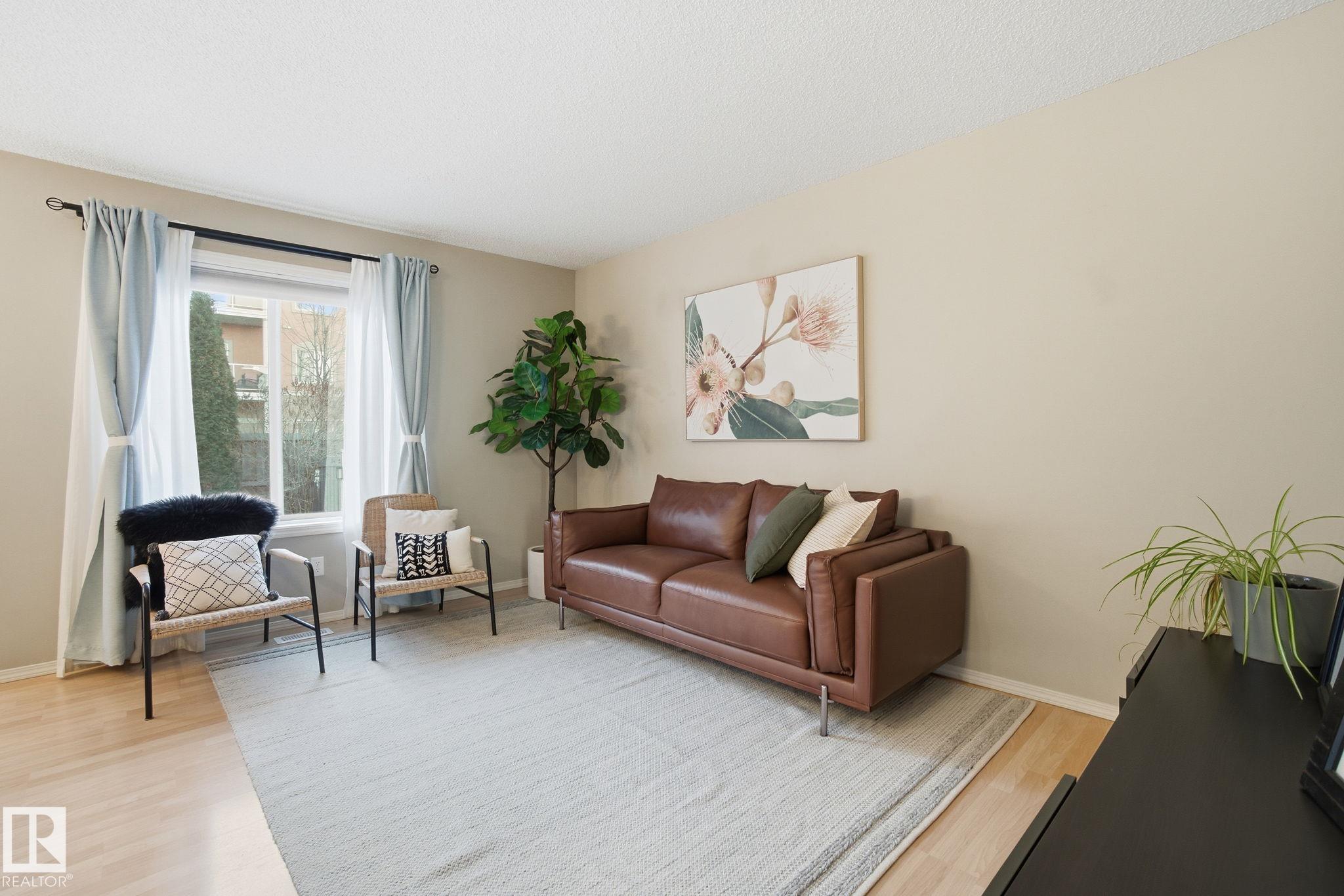 Well kept & nicely updated! This 1300sf 2 story duplex has a finished basement, fenced in yard & attached garage! Open concept floor plan anchored by a beautiful kitchen with dark cabinets, chop block counters, glass subway tile backsplash & an island for extra work space. The dining area features modern lighting & access to the SE facing deck & yard. The living room is a comfortable size & is flexible for furniture placement. Upstairs are 3 bedrooms & 2 full baths. Large primary with ensuite. The basement is finished with a great rec room featuring surround sound & a built-in media unit. Off of this is the utility, laundry & storage area. Single garage with room for another vehicle on the driveway. Lots of room for visitors to park & easy ETS access on Macewan Road a few units down. Great location across the street from Macewan Park, nearby trails & Blackmud Ravine. All amenities walkable on 111th St and Ellerslie. Quick to Henday! New hot water tank, smart electric range, dishwasher & central A/C !