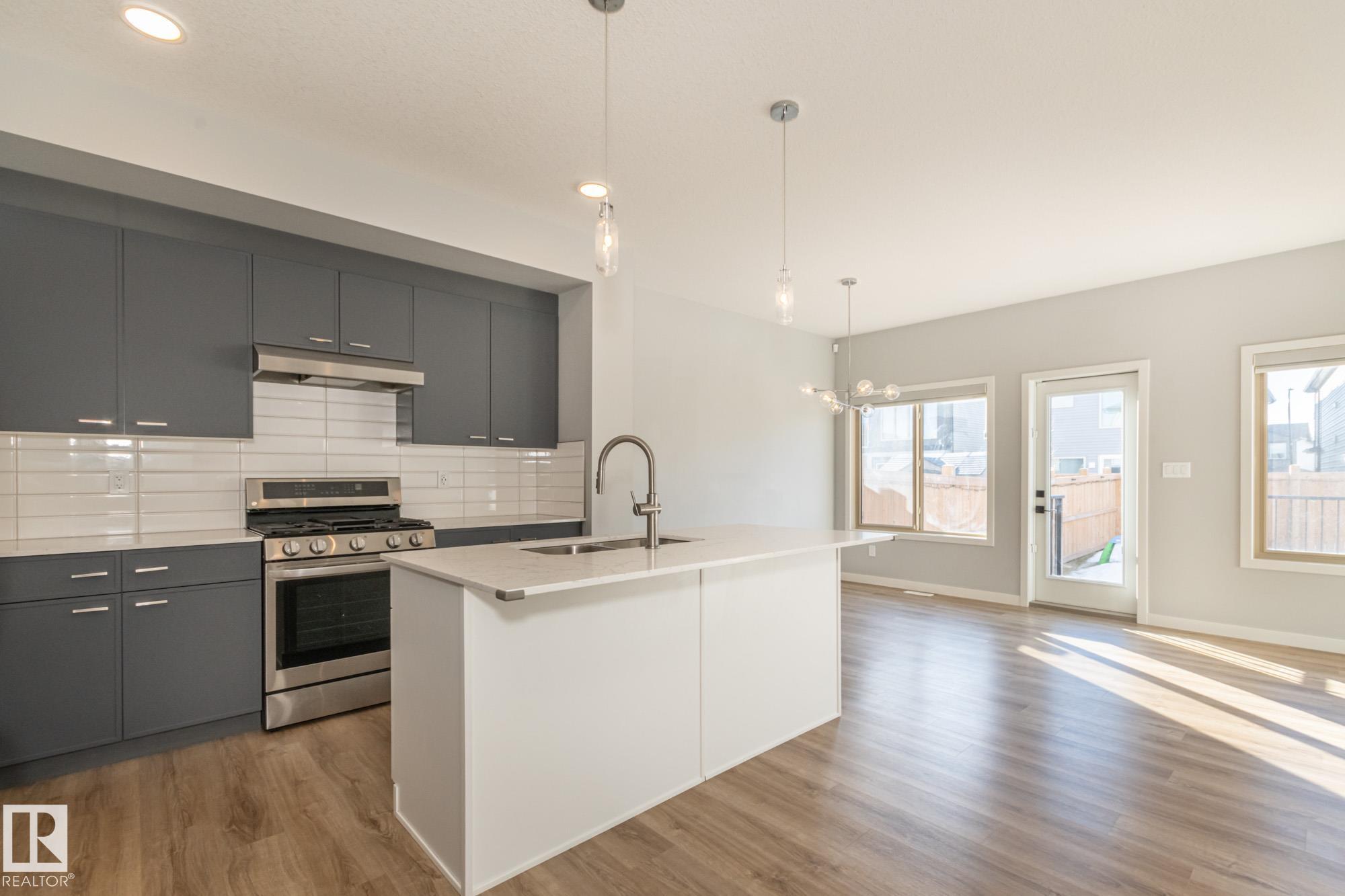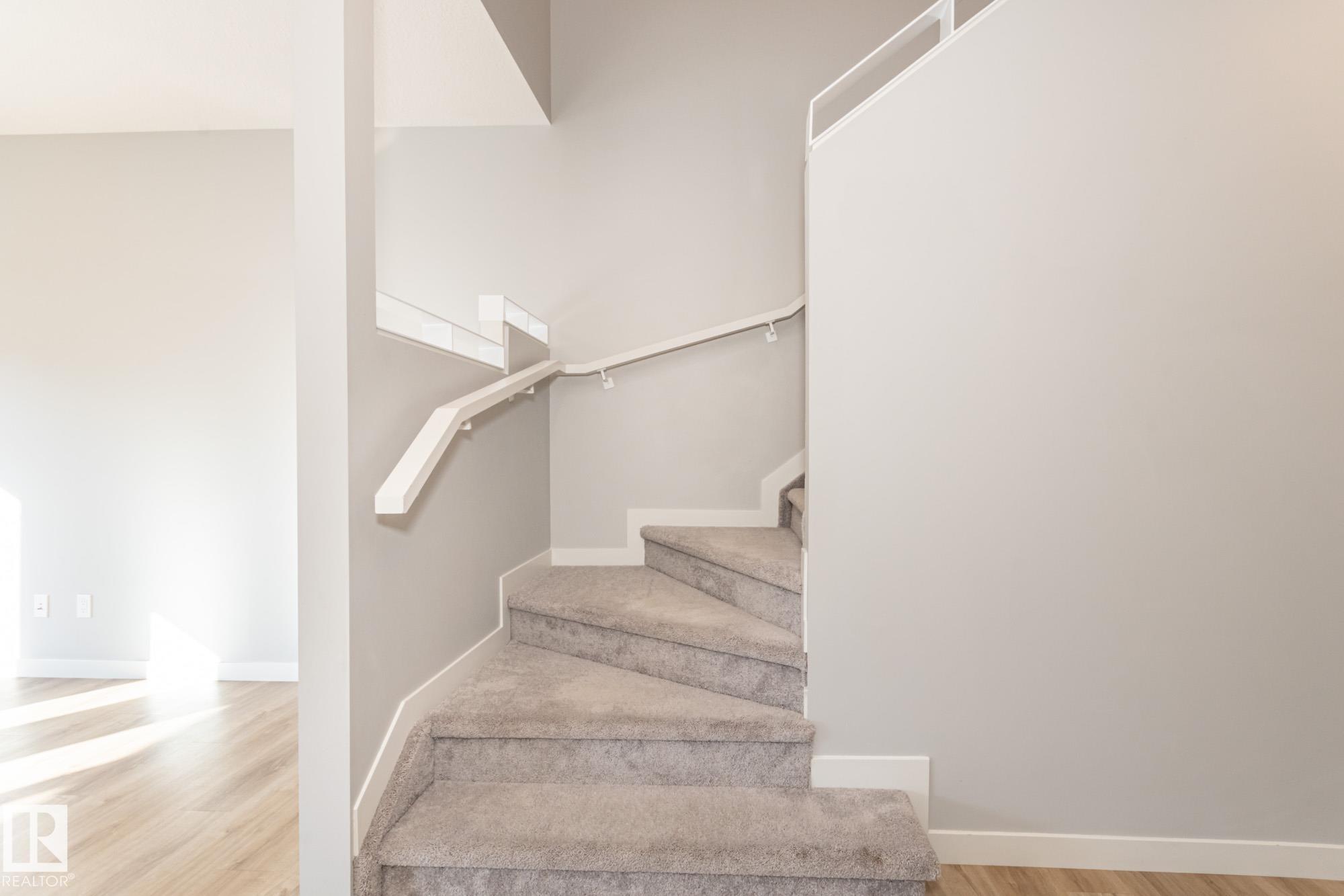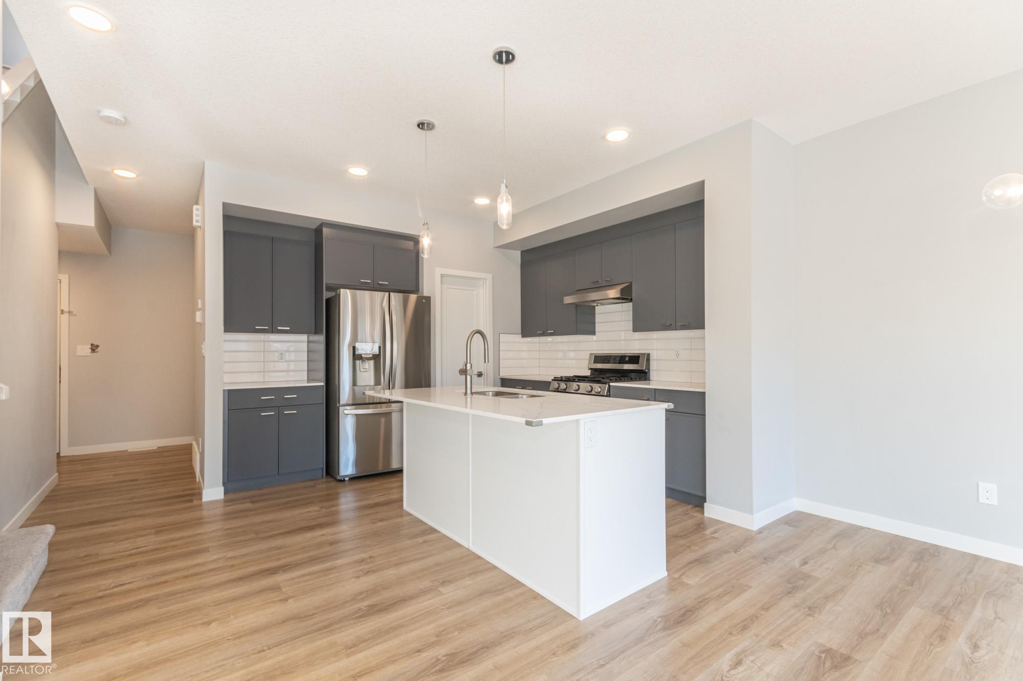 Welcome home to this stunning 3 bed, 2.5 bath half duplex at 103 Garneau Gate, offering 1415 SqFt of sophisticated living in Spruce Grove! Step inside to discover a bright, open-concept main floor boasting a gourmet kitchen. This culinary dream features sleek two-tone flat-panel cabinetry, luxurious quartz countertops with subtle grey veining, high-end stainless steel appliances including a gas range, and a spacious island with an undermount double-bowl sink. A walk-in pantry ensures ample storage. The living & dining areas flow seamlessly, bathed in natural light from large windows & a glass door leading to your private deck. Upstairs, retreat to the generous primary suite with a walk-in closet and a spa-like 3-piece ensuite, complete with a glass-enclosed shower. Two additional well-sized bedrooms, a versatile den, and an upper-level laundry closet provide ultimate convenience
