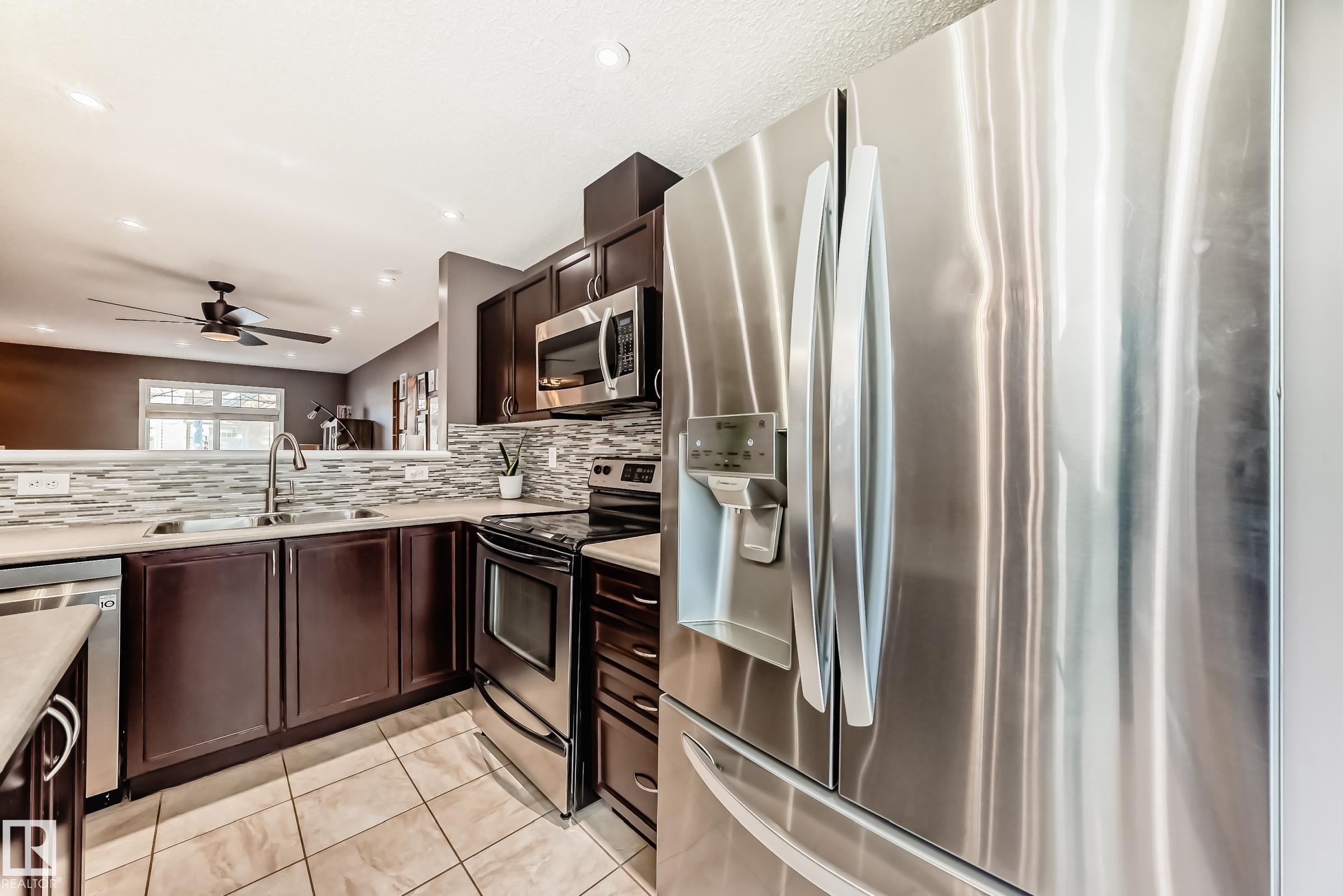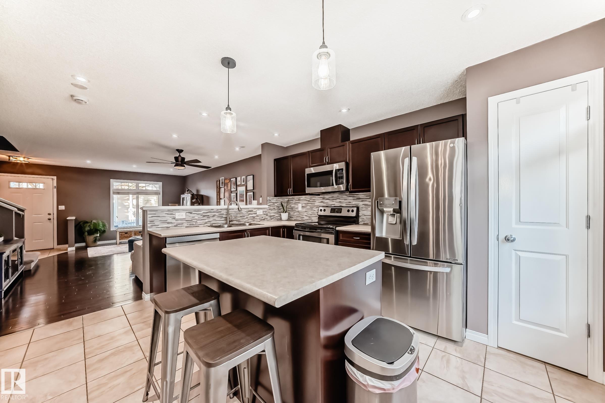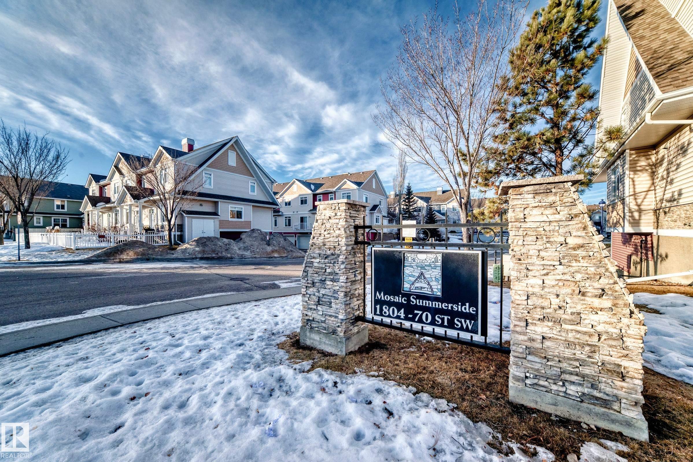 Well-kept dual primary bedroom townhome in desirable SUMMERSIDE! This bright 1,219 sq ft, 2 bed, 2.5 bath unit is ideal for first-time buyers, downsizers or investors. The open-concept main floor features hardwood & tile flooring, 2-pc bath and a stylish kitchen with a large island, stainless steel appliances and dining nook. Upstairs offers two spacious primary suites, each with a walk-in closet and full ensuite. The FINISHED lower level includes laundry, loads of storage, and an attached double garage. Sun-filled location within the complex with ample visitor parking. Enjoy condo-maintained landscaping & snow removal plus exclusive access to Lake Summerside?beaches, parks, and year-round amenities?just steps from schools, shopping, dining, and walking trails - everything you need for comfortable, carefree living in one of Edmonton?s favorite communities!