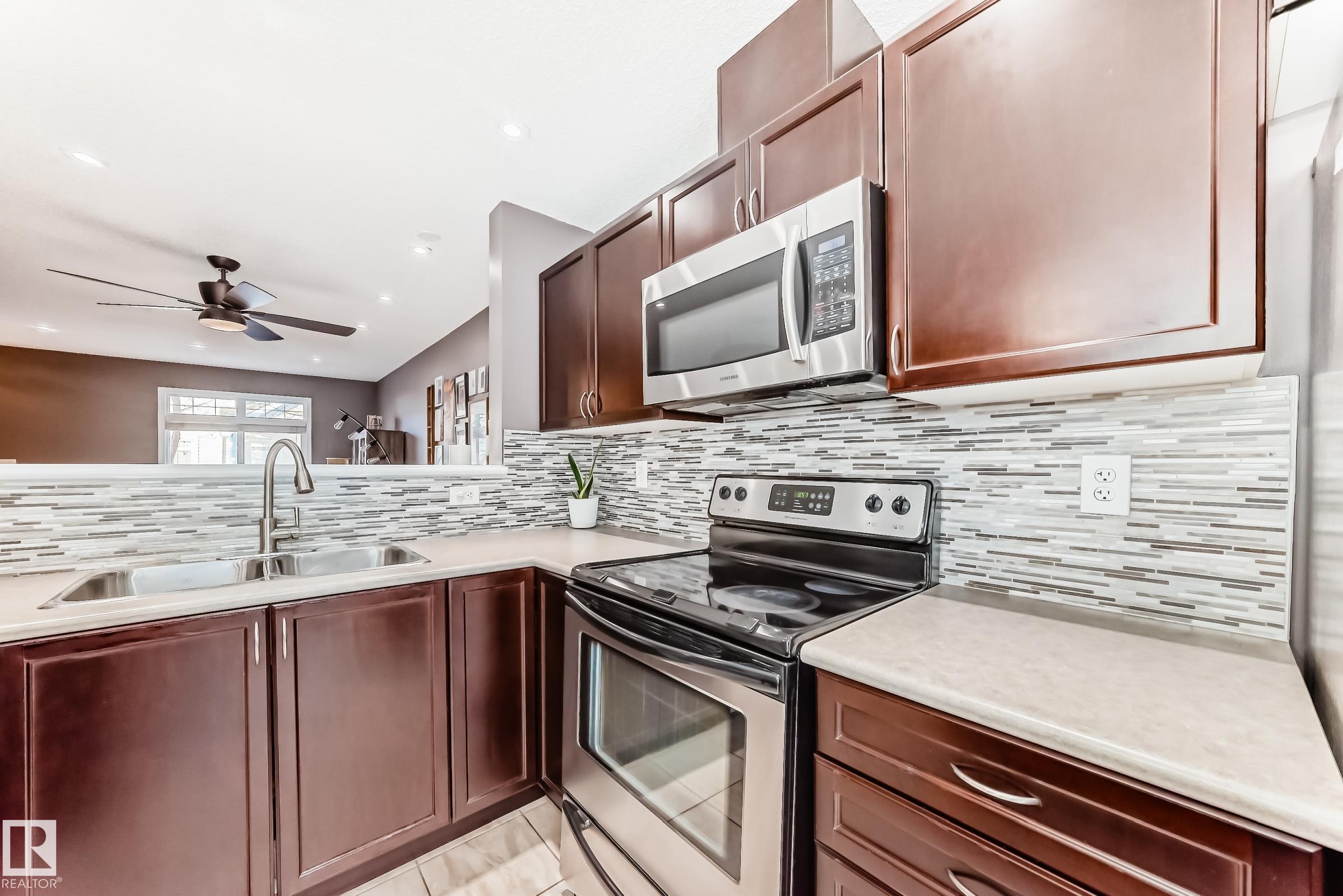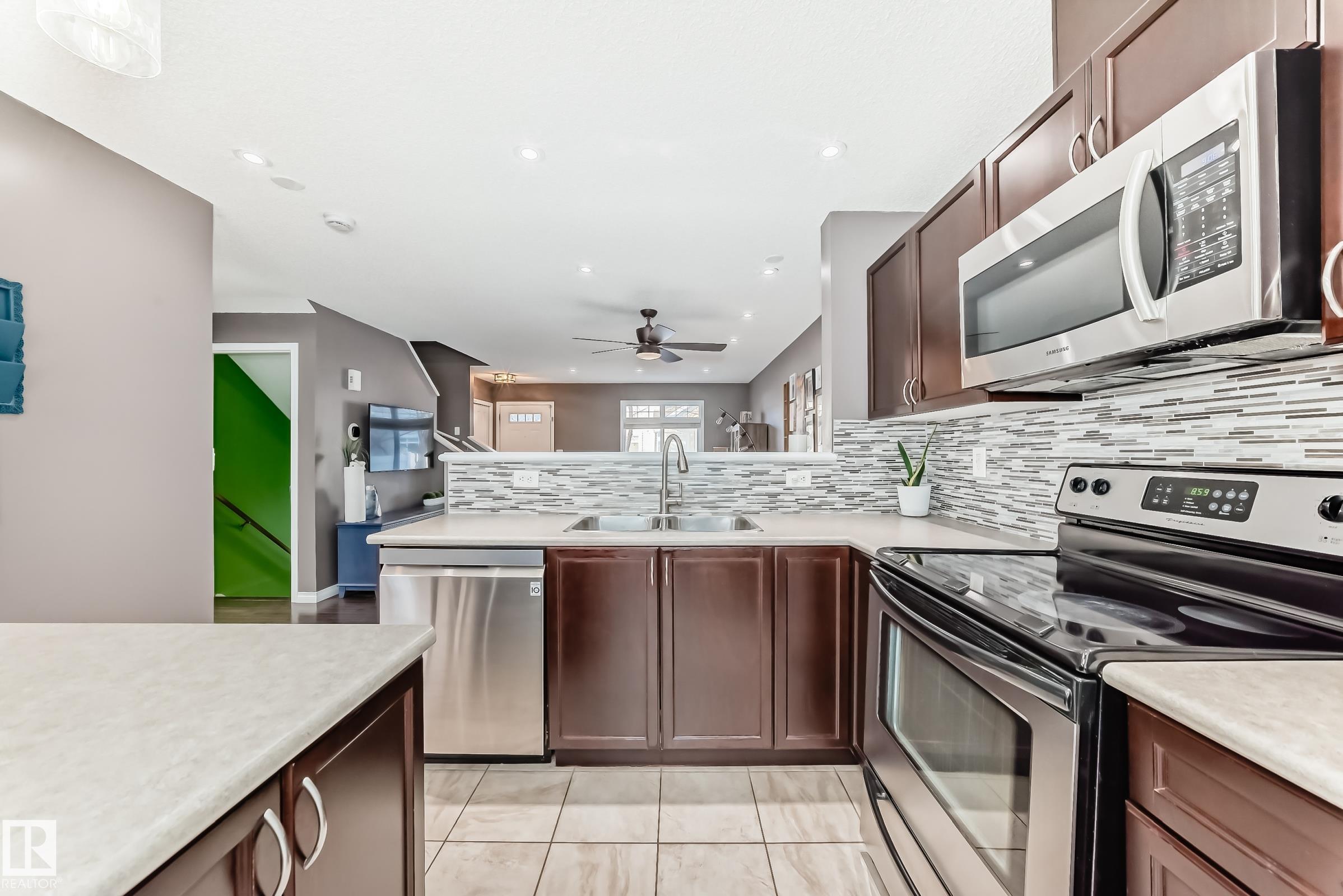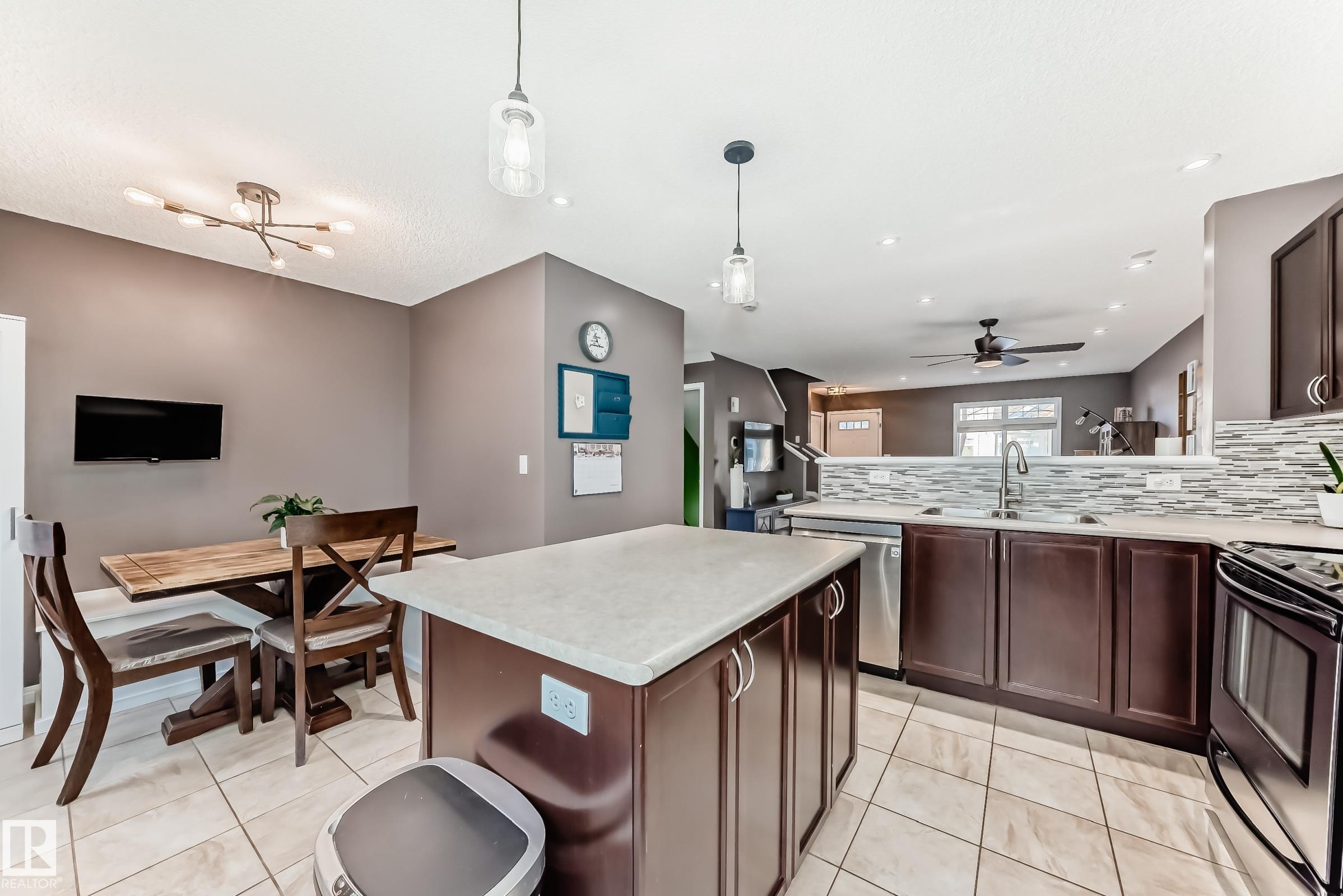 Well-kept dual primary bedroom townhome in desirable SUMMERSIDE! This bright 1,219 sq ft, 2 bed, 2.5 bath unit is ideal for first-time buyers, downsizers or investors. The open-concept main floor features hardwood & tile flooring, 2-pc bath and a stylish kitchen with a large island, stainless steel appliances and dining nook. Upstairs offers two spacious primary suites, each with a walk-in closet and full ensuite. The FINISHED lower level includes laundry, loads of storage, and an attached double garage. Sun-filled location within the complex with ample visitor parking. Enjoy condo-maintained landscaping & snow removal plus exclusive access to Lake Summerside?beaches, parks, and year-round amenities?just steps from schools, shopping, dining, and walking trails - everything you need for comfortable, carefree living in one of Edmonton?s favorite communities!