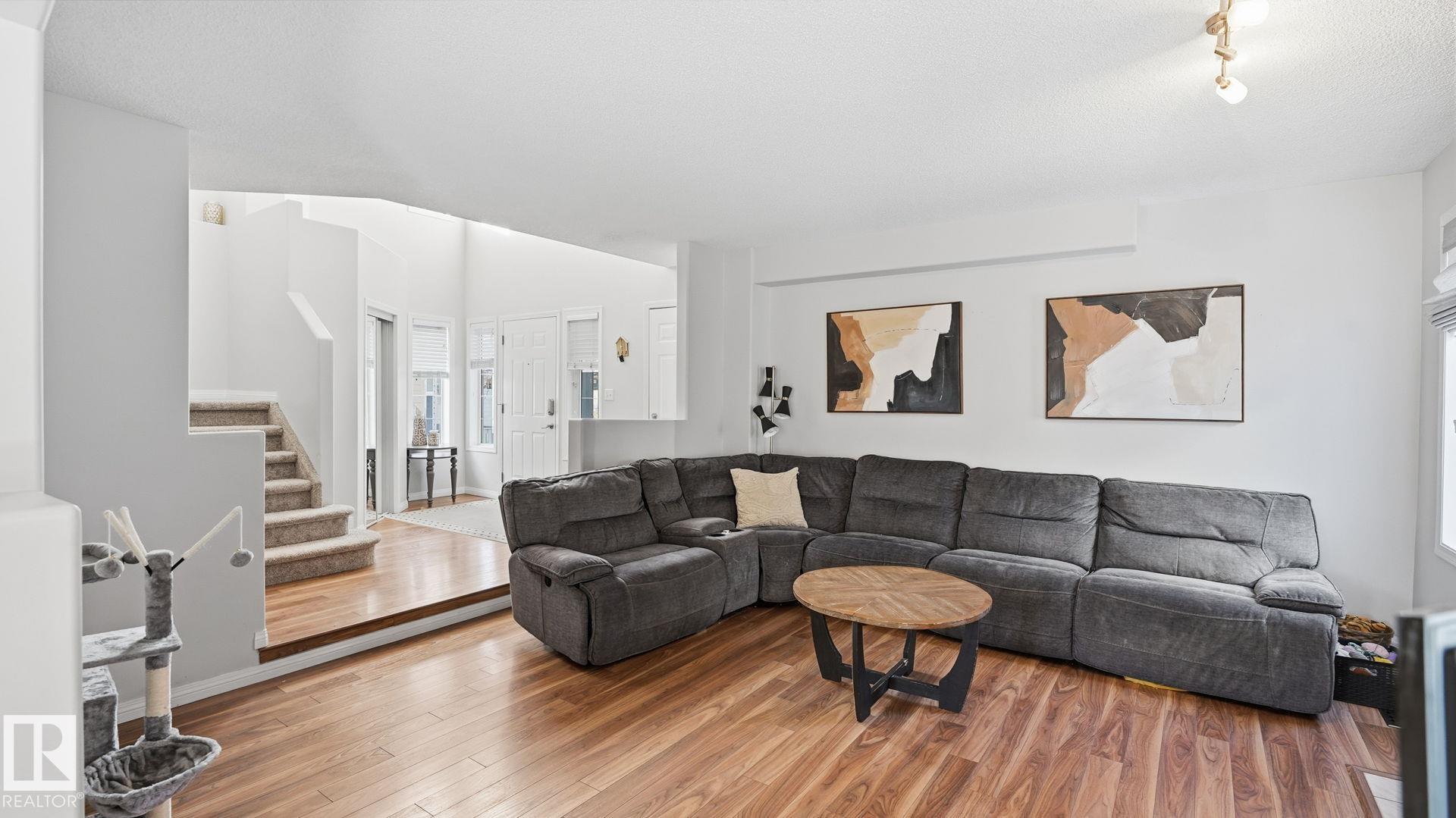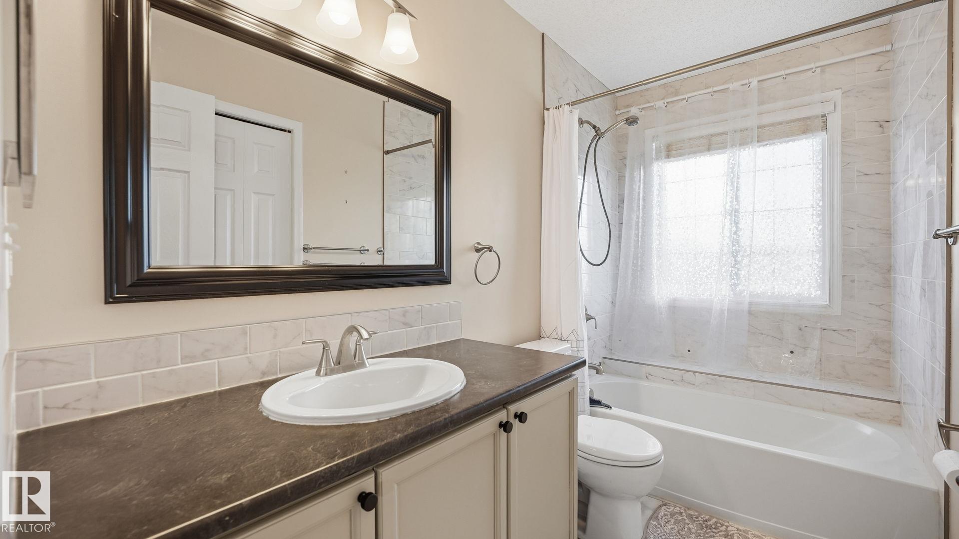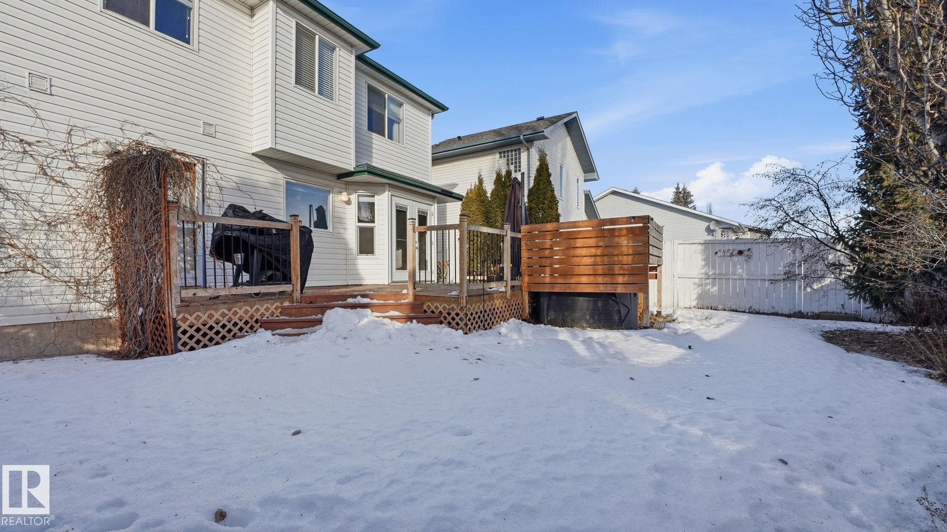 Beautifully maintained in the heart of family-friendly Lakewood! A welcoming foyer w/towering ceilings & soaring vaults sets the tone for this bright, inviting home flooded w/natural light from windows on all sides. The main floor, perfect for everyday living has a spacious living room w/wood-burning fireplace, plus a fully renovated kitchen w/real wood floor/ceiling cabinetry, quartz countertops, undermount sink, SS appliances, center island & a picture window overlooking the backyard. A cozy dinette w/garden doors leads to the cedar deck, ideal for family BBQs. Main level also has durable laminate flring, a 2pc bath & laundry. Upstairs features spacious bedrooms w/no carpet, a 4pc bath & a king-sized primary suite w/4pc ensuite. The fully finished basement adds even more space w/brand new carpet, fresh paint, a rec room, 3pc bath & 4th bedroom. Enjoy the oversized garage, newer shingles, hot water tank (2024), mature trees, hot tub & private yard w/playground, trail system & shopping all nearby